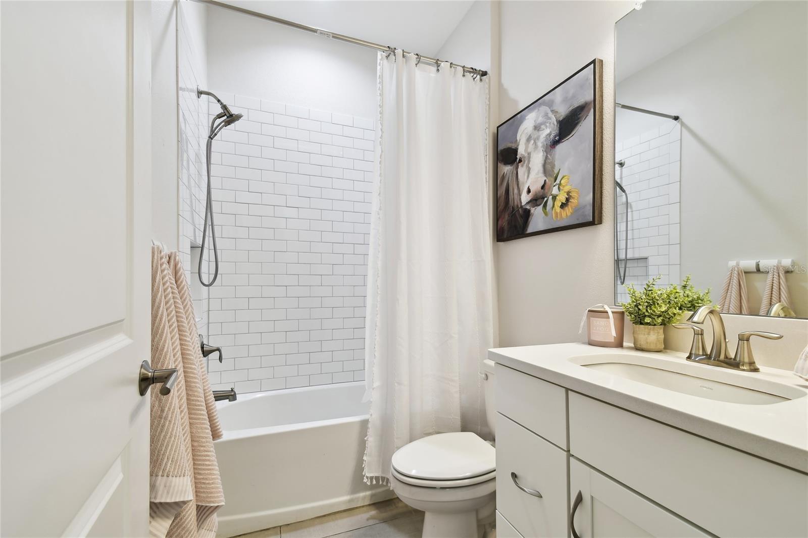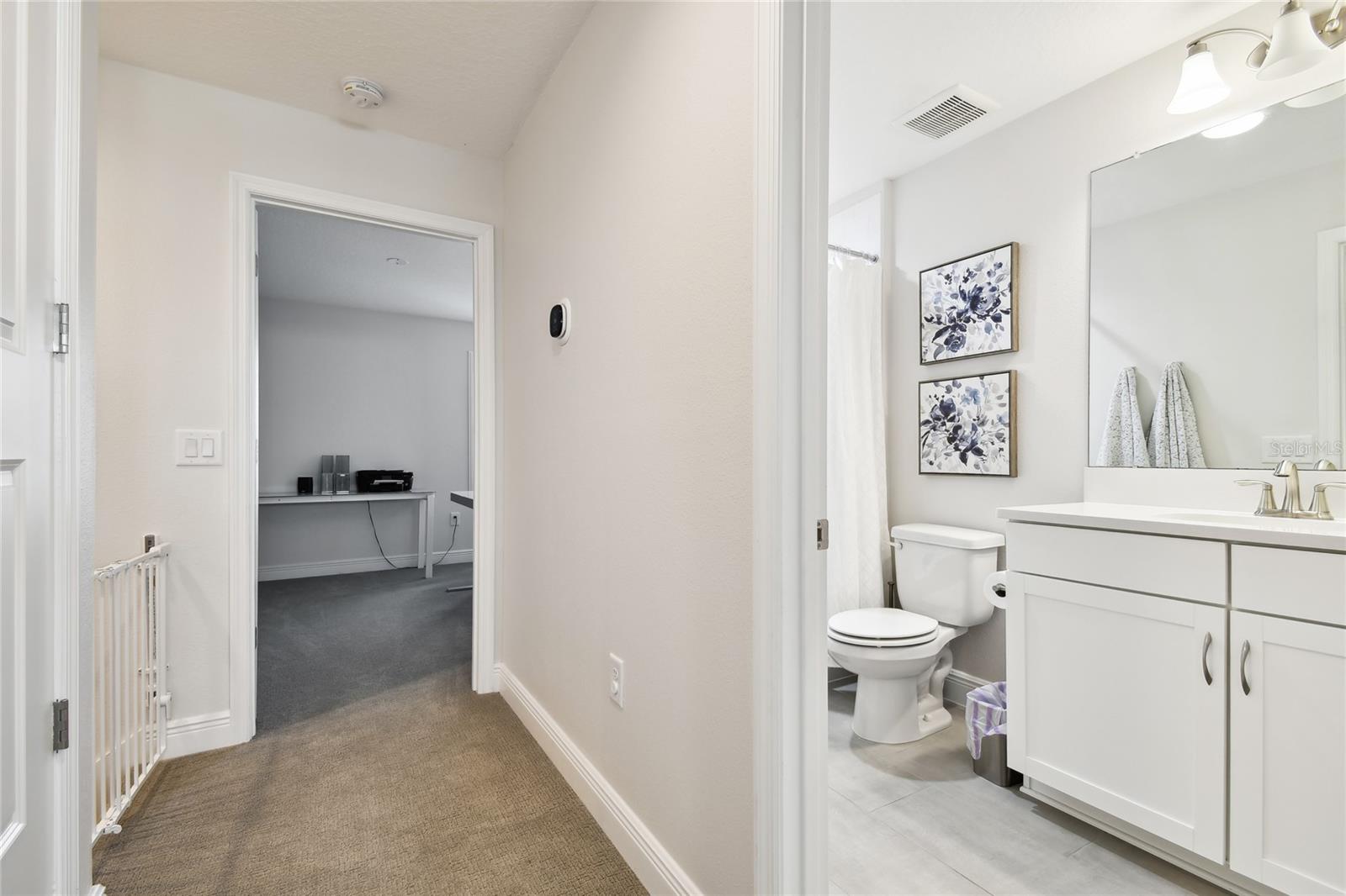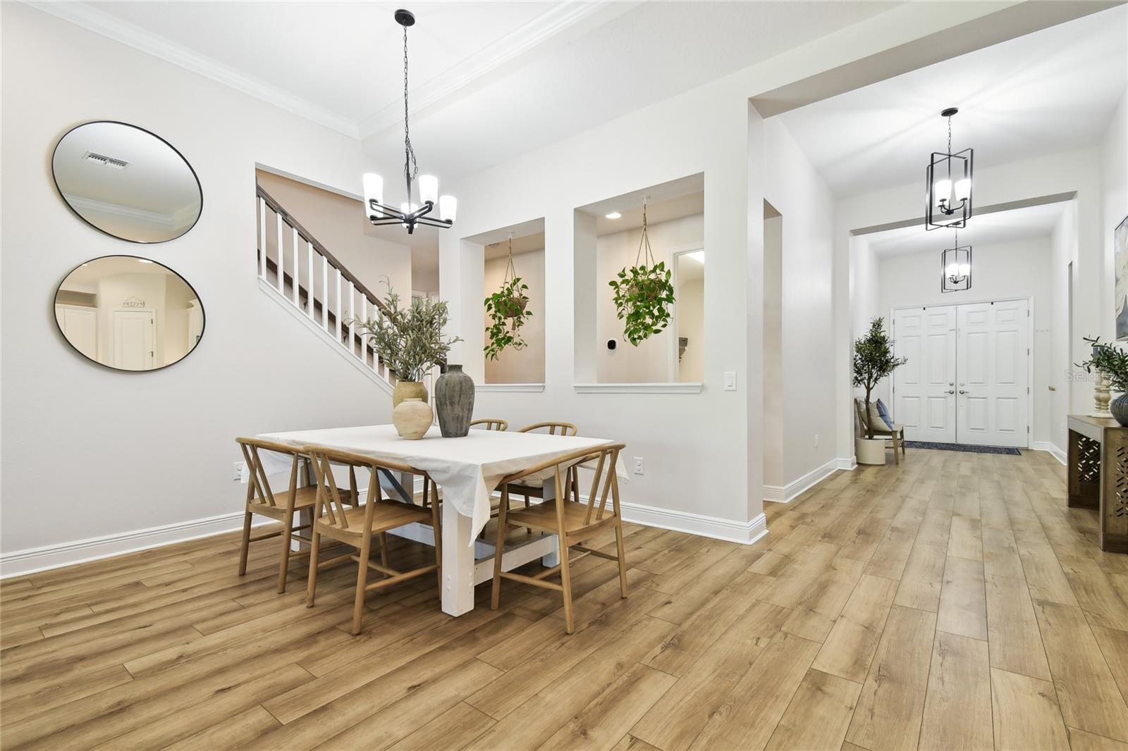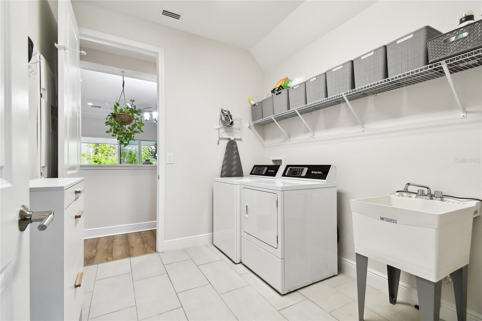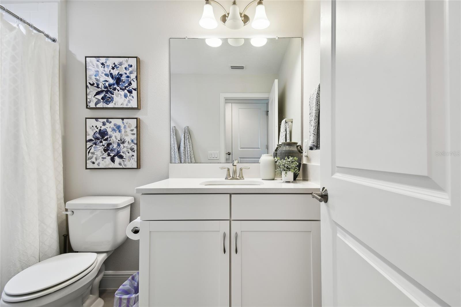 Luxury Living on Oversized Conservation Lot – 5BR/5BA Bayshore II by Homes by West Bay! Experience resort-style living in this stunning 5-bedroom, 5-bathroom Bayshore II, nestled on a rare, oversized .26-acre fully fenced conservation lot in the award-winning Connerton community. This move-in-ready home features 3,283 sq. ft. of meticulously maintained space, an open-concept design, and luxury upgrades throughout. Enjoy easy living with a split-bedroom layout that offers privacy for the owner’s retreat and secondary bedrooms. Step through the 8ft double doors into the wide double foyer into a grand room that seamlessly blends with the deluxe kitchen, casual dining area, and panoramic screened lanai—perfect for entertaining or simply relaxing while enjoying serene nature views. The chef’s kitchen is a showstopper, boasting a massive quartz island with double-sided cabinetry, GE Profile stainless steel appliances, 42” cabinets, subway tile backsplash, farmhouse sink, and a custom walk-in pantry with wood shelving. Tray ceilings, crown molding, luxury vinyl plank flooring, and plantation shutters throughout the main living areas and bedrooms enhance the home’s refined ambiance. The owner’s retreat is tucked away for ultimate privacy and features tray ceilings, crown molding, dual walk-in closets, and a luxurious en-suite bath with quartz countertops, dual vanities, and a spacious walk-in shower. Two secondary bedrooms and a full bath are located off the foyer with upgraded finishes, while a fourth bedroom is privately situated near the laundry room and another full bath. Upstairs, you'll find a versatile bonus room, fifth bedroom, and full bath, perfect for a media room, guest suite, or teen retreat. Step outside to the expansive covered lanai with a panoramic screen enclosure, surround sound system, and full outdoor pool bath—an entertainer’s dream space that’s pre-plumbed for a pool and ready for your custom outdoor oasis. Additional standout features include reclaimed water irrigation, upgraded landscaping, custom light fixtures, a paved driveway, three-car garage, and exceptional curb appeal. Located in the highly desirable Connerton community, this home offers access to world-class amenities including a resort-style pool, splash park, fitness center, clubhouse, sports courts, scenic trails, and year-round resident events. The highly anticipated Pinecrest Academy opens Fall 2025, and a second clubhouse with pool, gym, and six pickleball courts is currently under construction. This is more than just a home—it’s a lifestyle. Don’t miss your opportunity to own one of the most impressive conservation homesites in Connerton.