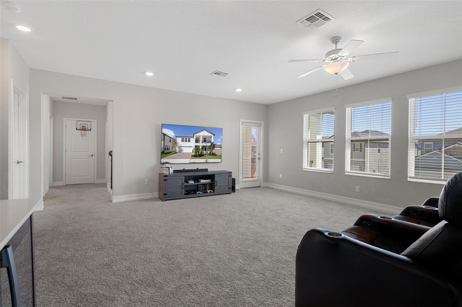 ACT NOW SELLER is offering a buyer's credits towards BUYER'S CLOSING COST/PREPAID FEES. Modern Living, Multigenerational Flexibility & Stylish Upgrades in the Heart of Connerton! This modern two-story home features a SPACIOUS OPEN-CONCEPT layout with peaceful POND VIEWS from the SCREENED-IN CAGE — perfect for relaxing or entertaining. Surrounded by MATURE LANDSCAPING that’s been thoughtfully maintained with regular WEED and PEST CONTROL, the outdoor space provides beauty, privacy, and a true retreat feel. The first floor includes a well-appointed OWNER’S SUITE and a versatile EN-SUITE FLEX ROOM with a WALK-IN CLOSET and full bathroom — ideal as a bedroom, OFFICE, or GUEST SUITE. Upstairs, a third EN-SUITE BEDROOM adds even more flexibility — and is joined by two additional spacious bedrooms, bringing the total to five true bedrooms. You’ll also find a HUGE LOFT upstairs, perfect for a MEDIA ROOM, PLAY AREA, or second living space, complete with an OVERSIZED WET BAR that makes entertaining or multigenerational living easy. Throughout the home, enjoy thoughtful UPGRADES like TRAY CEILINGS, CROWN MOLDING, and UPDATED STAIRCASE SPINDLES. The GOURMET KITCHEN features QUARTZ COUNTERTOPS, an UPDATED BACKSPLASH, COFFEE BAR, and BUTLER’S PANTRY, all flowing seamlessly into the main living areas. CABINET PULL-OUT SHELVES provide easy access and smart storage solutions. All bedrooms are larger than average, providing generous space for comfort, privacy, and versatility. This home combines modern design, functional living, and real value in one of Connerton’s most sought-after neighborhoods.