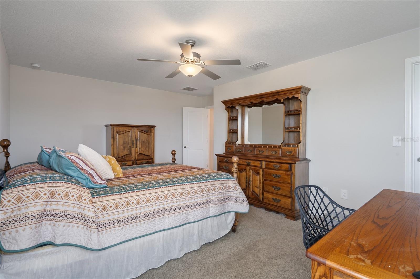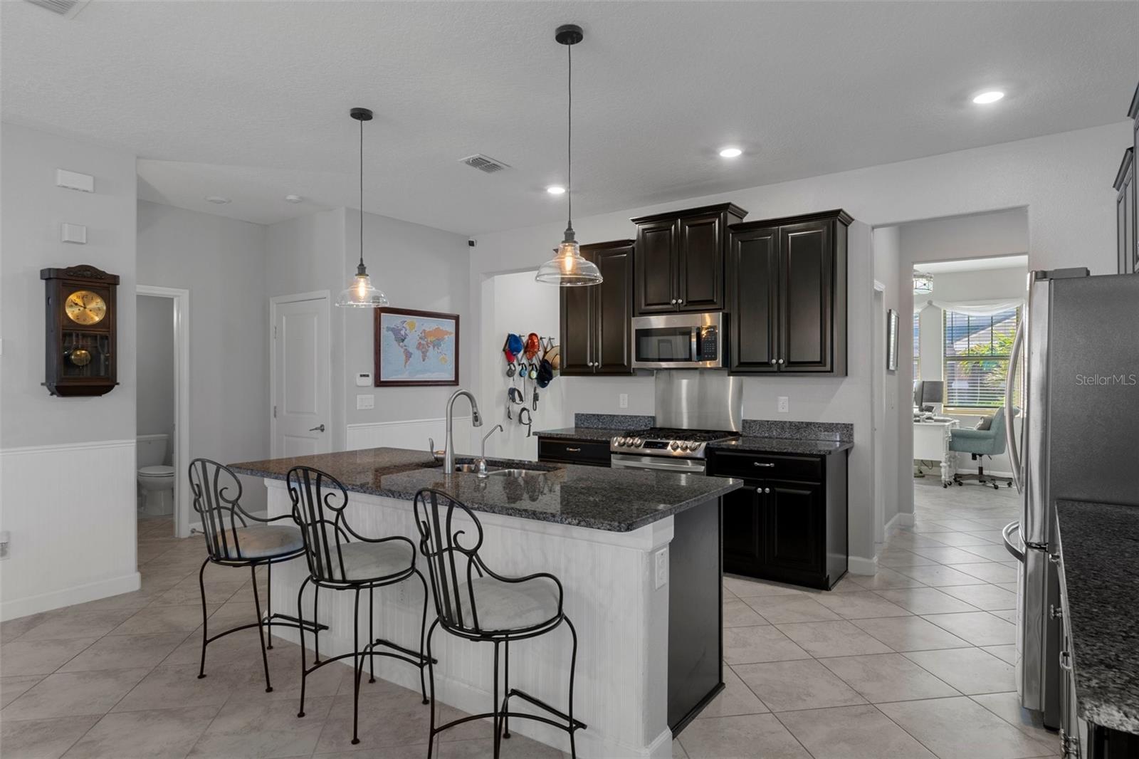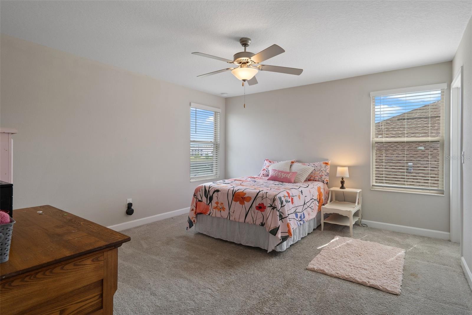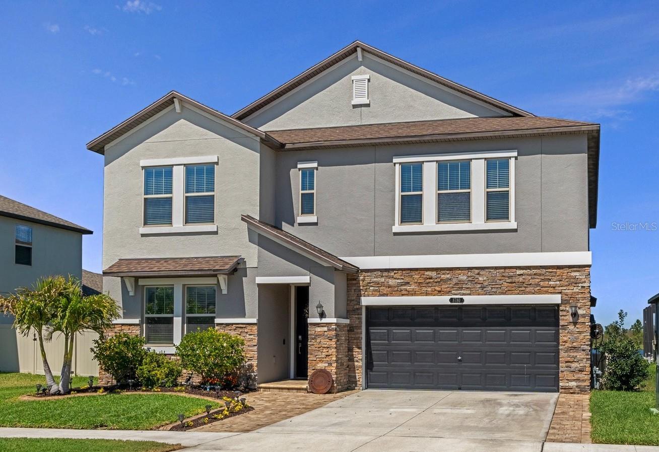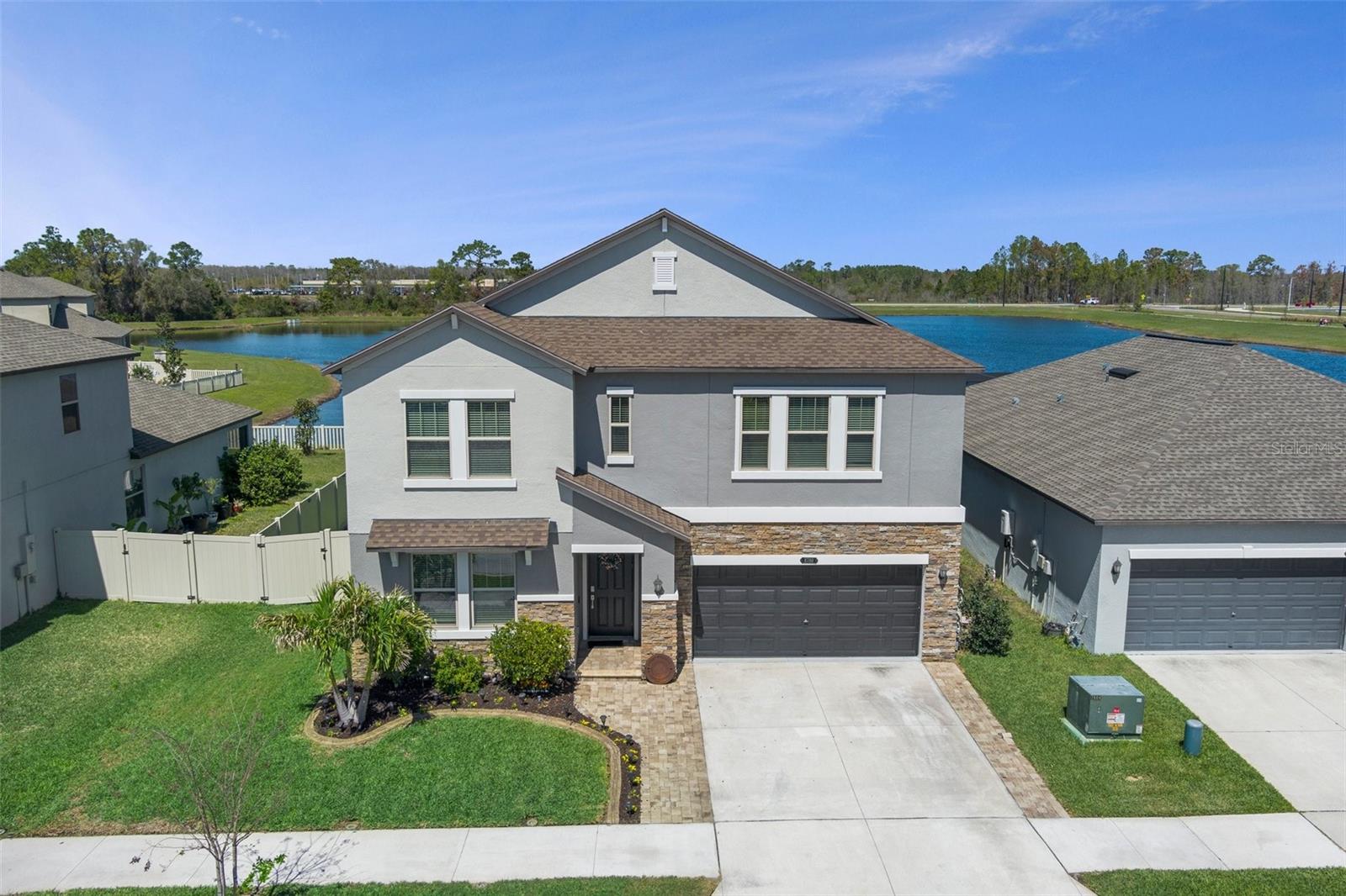 This expansive 5-bedroom, 4-bath residence, featuring a 3-car tandem garage, is located in the highly sought-after Connerton community and boasts numerous enhancements that surpass new builds. The open-concept gourmet kitchen, dining area, and family room offers a versatile living space suitable for any lifestyle. The meticulously designed kitchen includes 42" cabinets, granite countertops with island bar seating, stainless steel appliances, a gas range, a butler's pantry, a walk-in pantry, recessed lighting, and a casual dining area ideal for gatherings of any size. The owner's retreat provides a sanctuary-like ambiance with a generously sized walk-in custom closet, dual sinks, a soaking tub, and a separate walk-in shower. Experience your private oasis with the stunning in-ground pool, complete with a sun shelf, bubbler, and built-in volleyball inserts. Enjoy your morning coffee or evening cocktail while taking in the lake views from the extended paver patio. Additional conveniences include a first-floor half bath and a drop-off zone. Benefit from both first and second-floor laundry facilities, or utilize one of these spaces for additional storage. The upstairs features a spacious loft area perfect for a theater room, game room, study, or library. Four large bedrooms and two full baths, each with dual vanities, complete the second floor. Special features include a tankless water heater, an irrigation system with reclaimed water, ceiling fans, a Wi-Fi-enabled garage opener, a video doorbell, and window blinds. The original owners have also added custom lighting, a whole-house Culligan water softener with a reverse osmosis faucet in the kitchen, a paver driveway extension, and a welcoming path to the front door. The electrical outlet for your EV installed in the garage along with a generator transfer switch means this house is plug-in ready. Residents benefit from an unparalleled lifestyle, with access to a 10,000 sq ft clubhouse featuring a café, state-of-the-art fitness center, lap pool, and a resort-style pool with a waterslide. Additional amenities include nature trails, sports courts for volleyball, tennis, pickleball, and basketball. Furthermore, a second clubhouse is currently under construction which will feature another resort pool, fitness center, and six pickleball courts. Connerton is also a golf-cart-friendly community. This impeccable 4-year-old home has undergone initial and warranty inspections, pool construction, and every extra you could wish for and is available immediately. Do not hesitate; contact us today to schedule your appointment.**