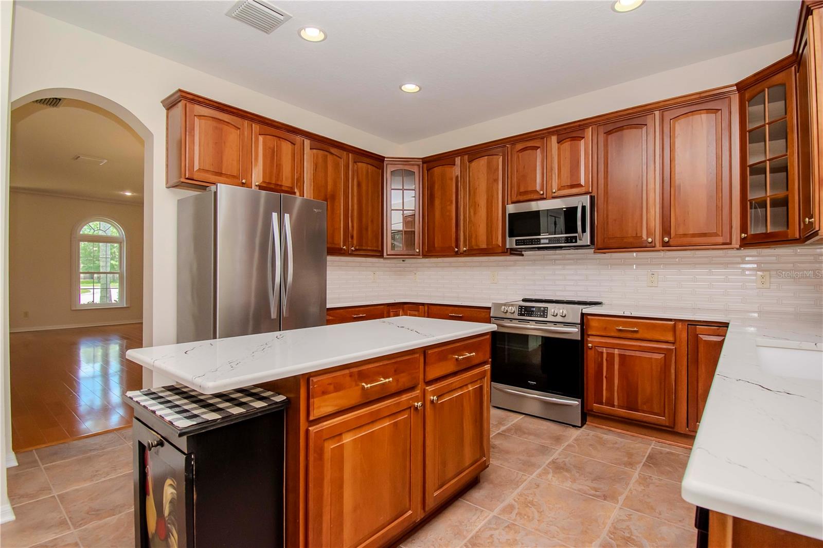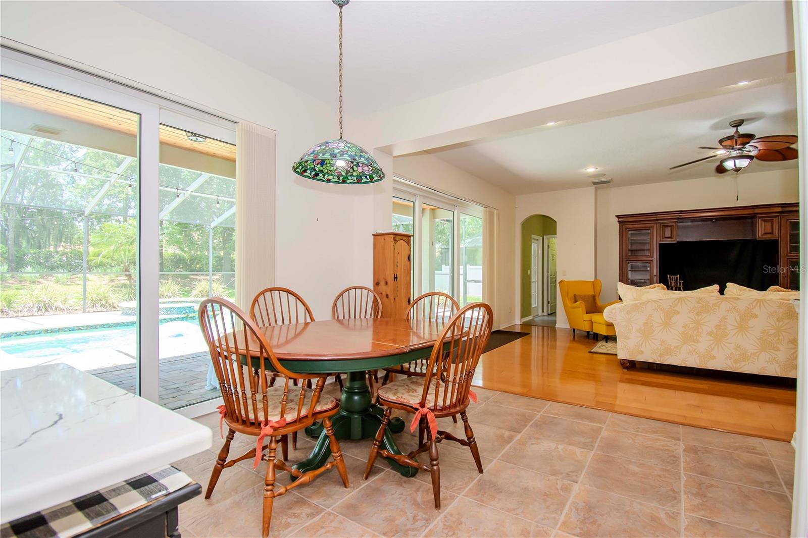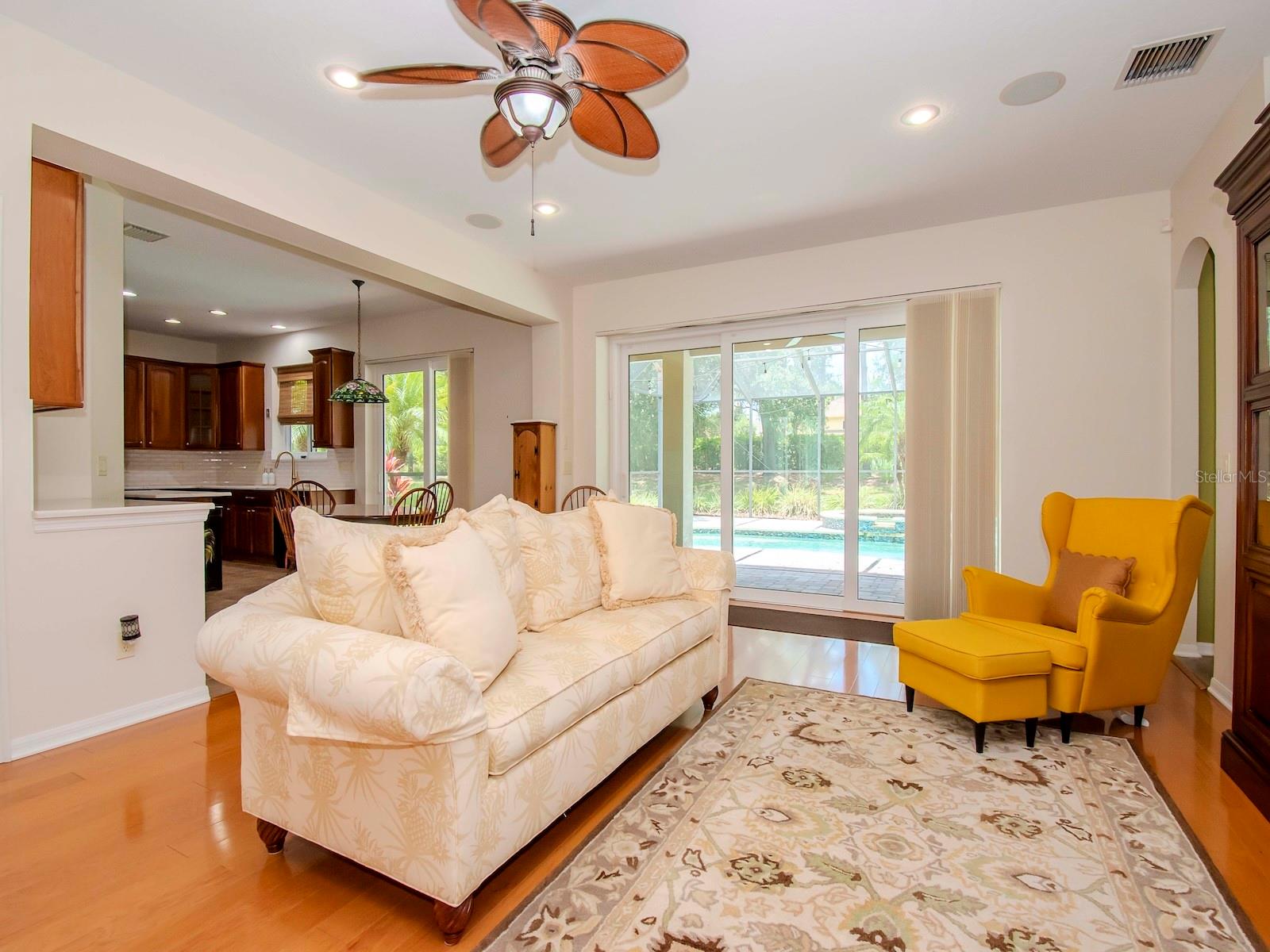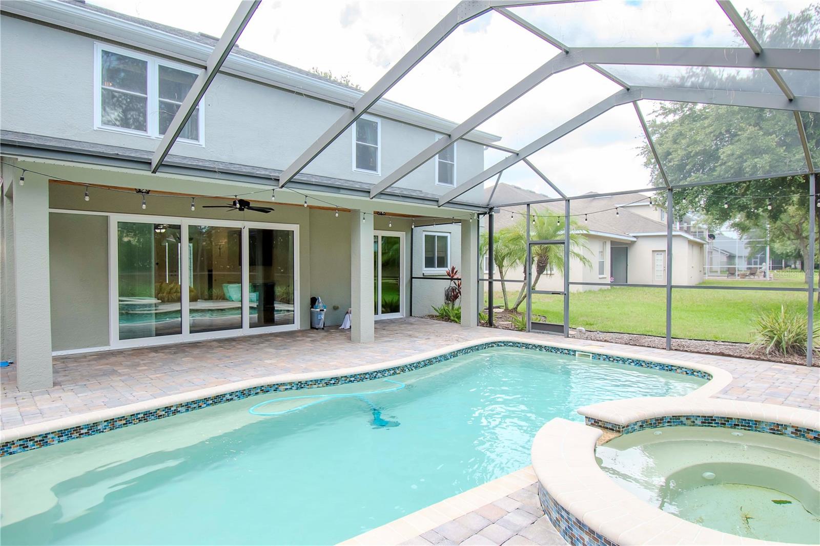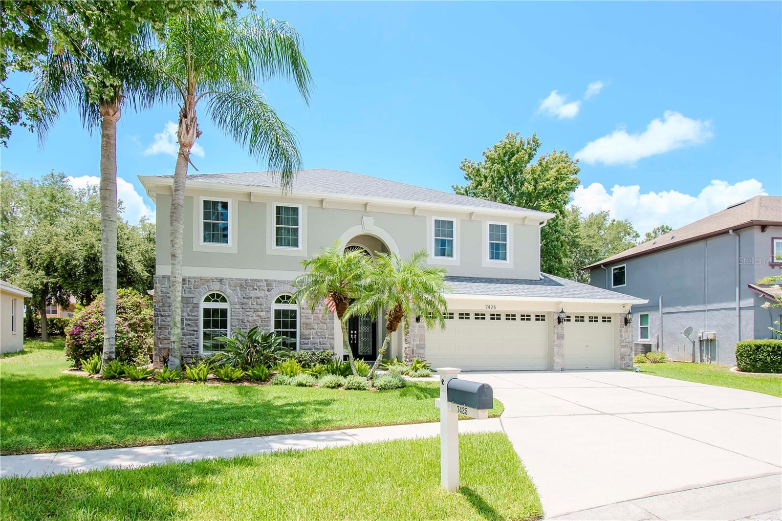 One or more photo(s) has been virtually staged. One or more photo(s) may have been virtually staged. This is "the one". This beautiful Florida traditional home is ready to welcome a second family and the new memories they will surely make. FRESHLY PAINTED EXTERIOR, NEWER WINDOWS, NEW ROOF, NEWER A/C, UPDATED KITCHEN, SALT WATER POOL with NEW PUMPS and CHLORINATOR. The only thing left to do is move in!! The beveled glass entry doors welcome you into a 2-story foyer that opens up into the large formal Living Room / Dining Room each boasting wood flooring, detailed window trim and crown molding throughout. A lovely bay window adds charm to the Dining Room that has convenient access to the Kitchen. The island Kitchen has had a recent transformation with new Quartz countertops and the addition of a coffee bar / dry bar with an under counter refrigerator. A large walk-in pantry has enough room for stocking up on supplies and a bright window at the sink means that you can grow fresh herbs right in your own kitchen. Casual dining can take place between the Kitchen and the Family Room or out on the Lanai that is accessible by 2 sets of double paned sliding glass doors. The sliding doors off of the Family Room has 3 doors and they disappear behind the wall for a seamless connection to the pool area. The covered Lanai has cedar wood plank ceilings and brick pavers that surround the Pool / Spa space. The screening was replaced a few years ago and the pool is very low-maintenance. This backyard is a restful oasis that is perfect for recharging at the end of the day. The Laundry Room is also located on the first floor as is the first of (5) bedrooms and an adjacent full bath all with LVT flooring. The Guest Bedroom is currently fitted as a home Office with built-in desk and shelving from the Container Store. This built-in will STAY and can easily be modified to suit your needs! The beautiful wood staircase leads up to the other (4) bedrooms, (2) bathrooms and a Bonus Room. The Primary Suite has a double door entry and a generous bedroom space that could easily host a private sitting area. Double doors also lead you into the Primary bathroom with dual vanities, large garden tub and shower with private water closet. (2) walk-in closets and a linen closet provide plenty of storage for your wardrobe and necessities. The remaining (3) bedrooms upstairs also have wood floors and are quite roomy with generous closets and a hall closet for linens. The Bonus Room is one step down, carpeted and located over the 3-car garage. This huge room awaits your creativity .... perhaps a workout space, game room, theatre room, home school space .... there are so many options! The 3-car garage is quite sizable and home to a Culligan warranted water softener. Other features include Nest doorbell, Nest based security, 5.1 surround sound in Family Room and Bonus Room, zoned for 2 wired speakers for Living Room and the Lanai. 2020 Samsung washer and dryer with pedastals, 16KW GENERAC propane generator for downstairs lights and a/c and upstairs lights, NETGEAR WiFi mesh system. The community LODGE has 2 pools, fitness center, common space, playground, tennis courts, dock and firepit. There are plenty of sidewalks for walking throughout the community. So much fun to be had and such a warm inviting home to make your own.