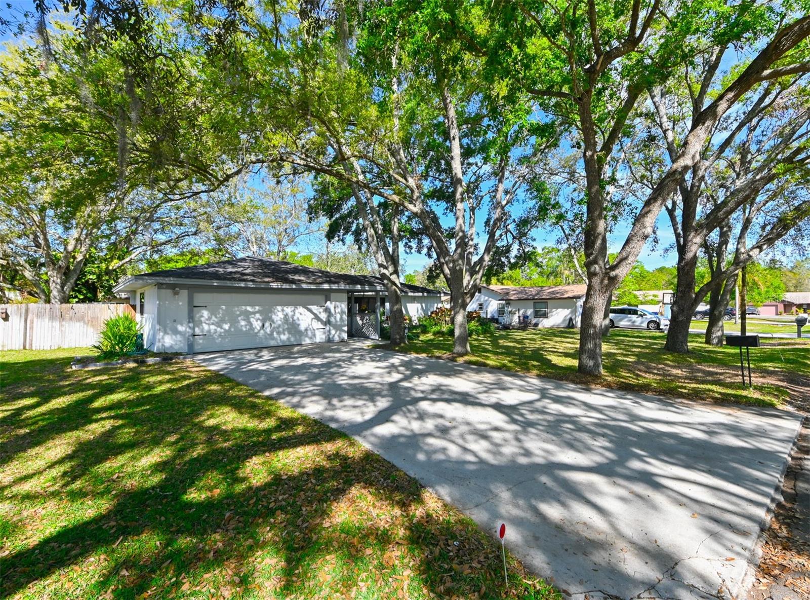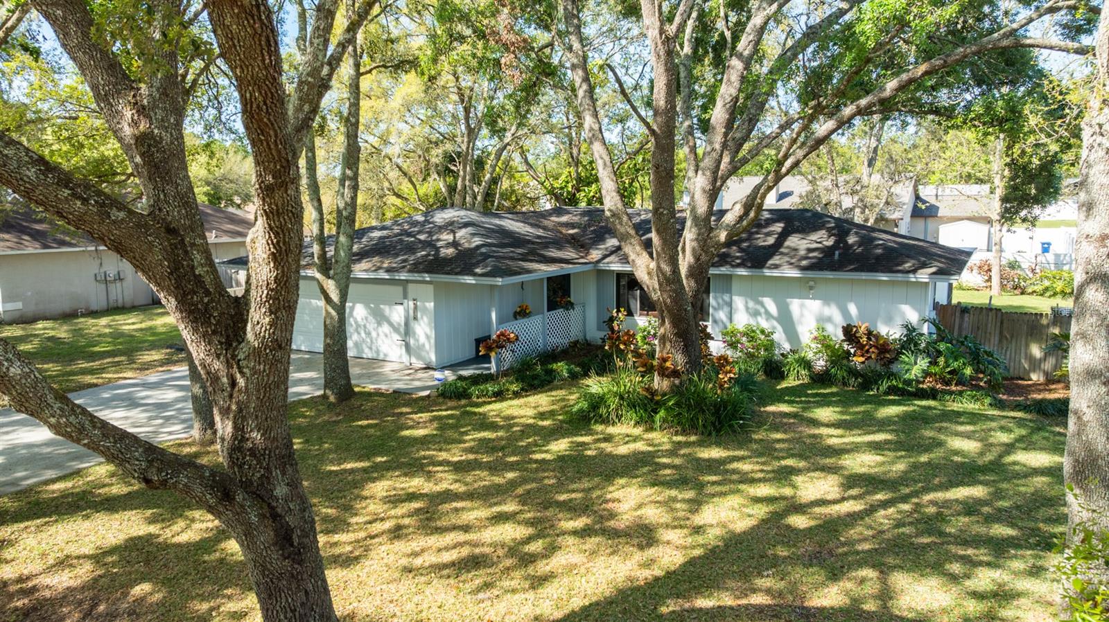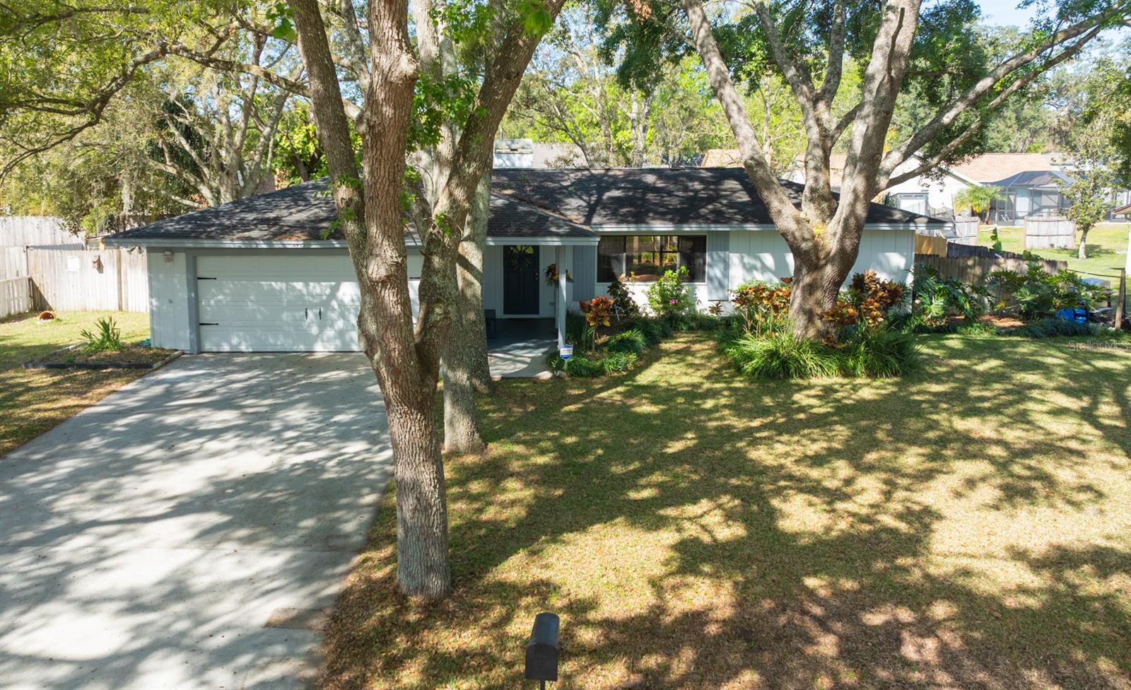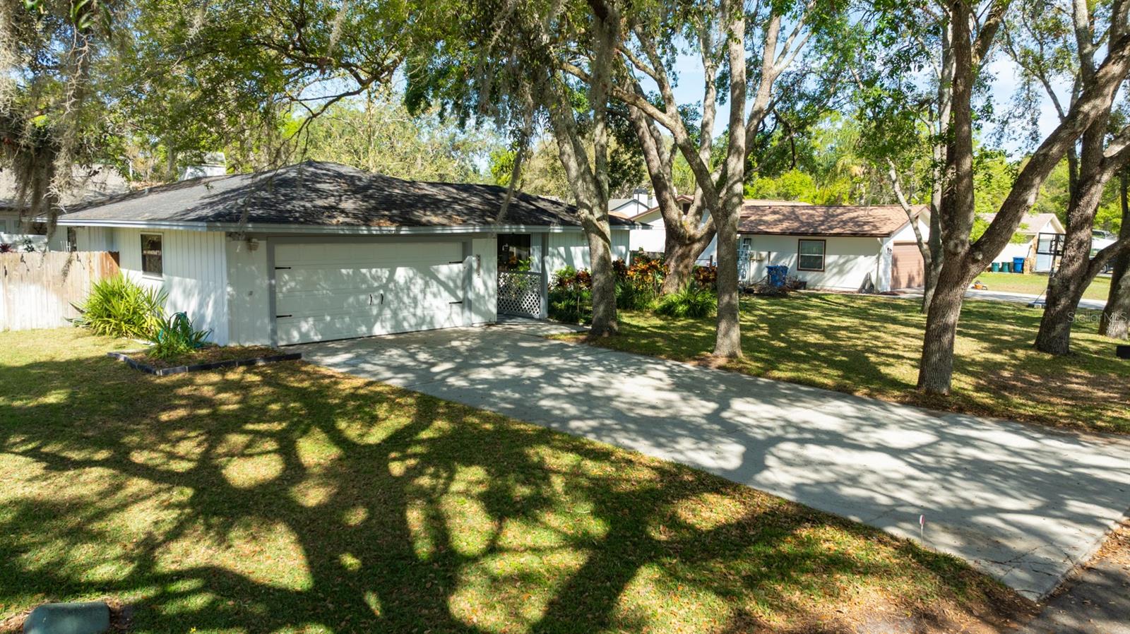 Tucked away in the desirable community of Lake Padgett Estates East, is this charming 3-bedroom, 2-bathroom home with a large two car garage that has additional space for storage or work area! Enjoy the mature oak trees shading the streets and the privacy of a cul-de-sac. This home entry flows right into the Formal Living room/Dining area, in an L shaped space. The kitchen and family room combo separate the Primary Bedroom from the two secondary bedrooms. The primary bedroom with en-suite and walk in closet, also features large sliding glass doors with direct access to a large screened in lanai. The screened in lanai offers a great place to entertain or just enjoy the beauty of the backyard that includes several fruit trees and well-maintained gardens. Bonus features on this property include a recent replacement of Roof (2018), HVAC (2022), Garage Door Opener, Dishwasher and Disposal (2023), and Electric Water Heater (2024). NO CDD fees! Low HOA fee which includes access to the amazing community clubhouse with pool, playgrounds, tennis courts, basketball, and much more. This home is only three miles from a public Golf Course, Land O Lakes Recreation Complex, and public Library. Make your appointment today to see this home!