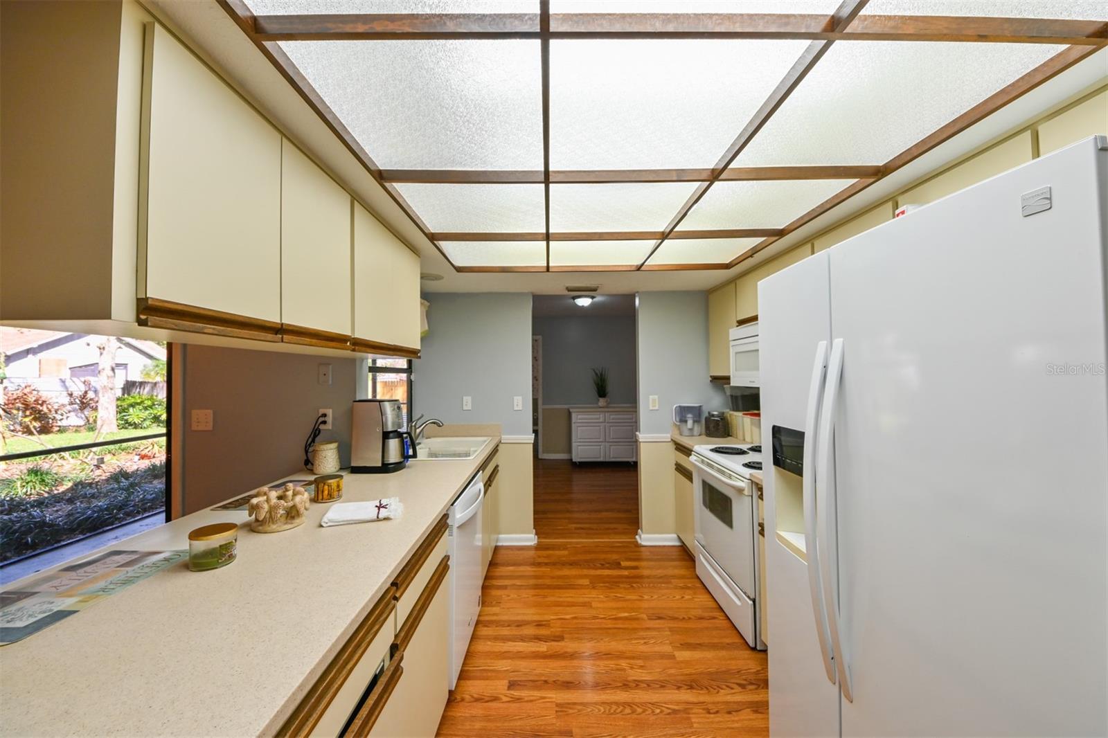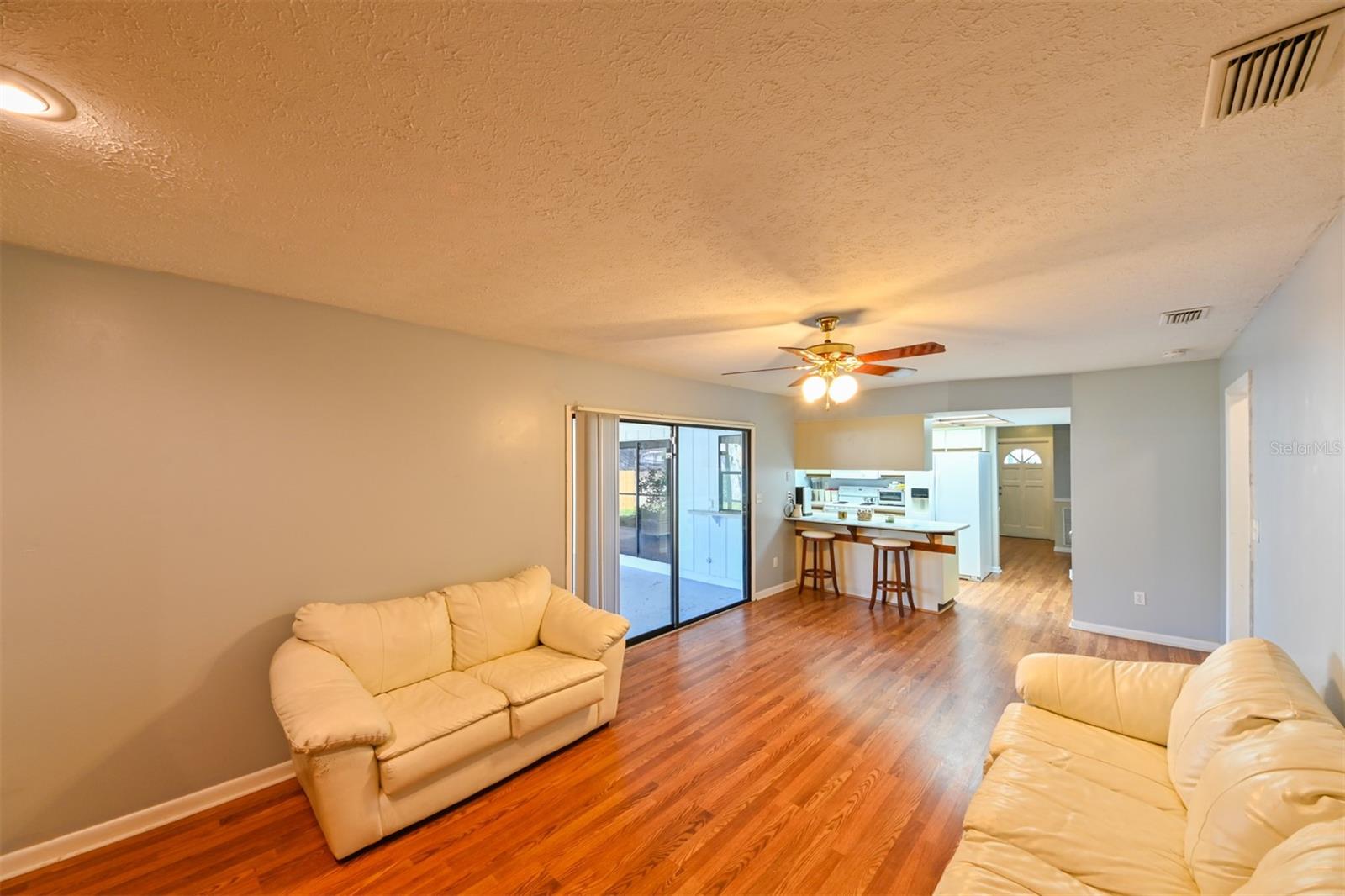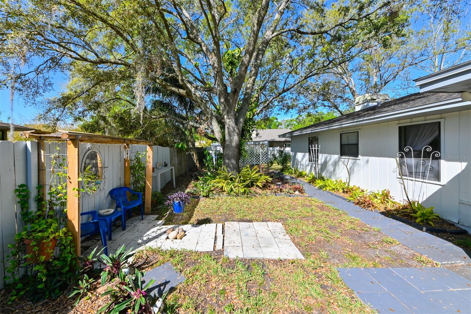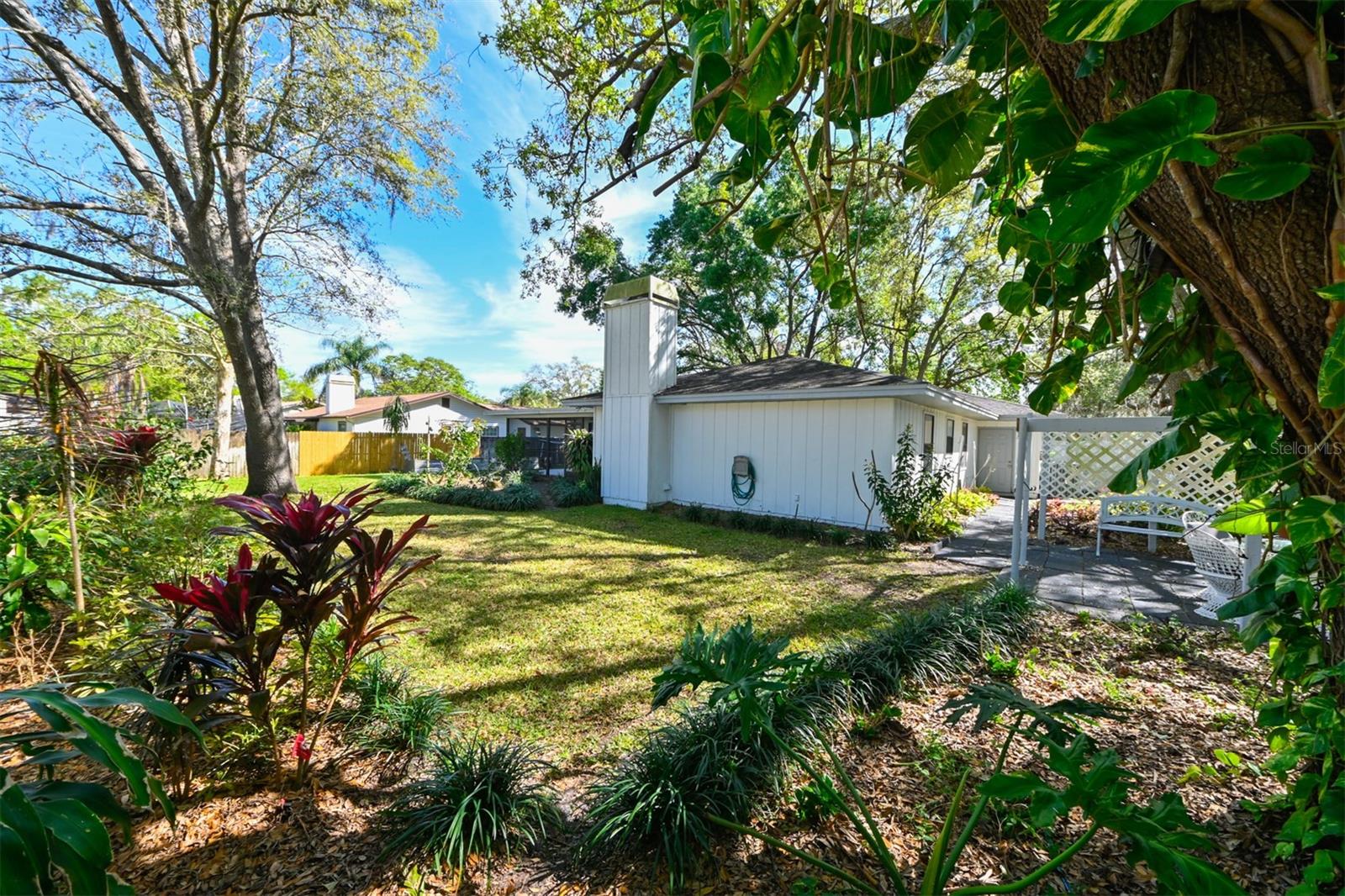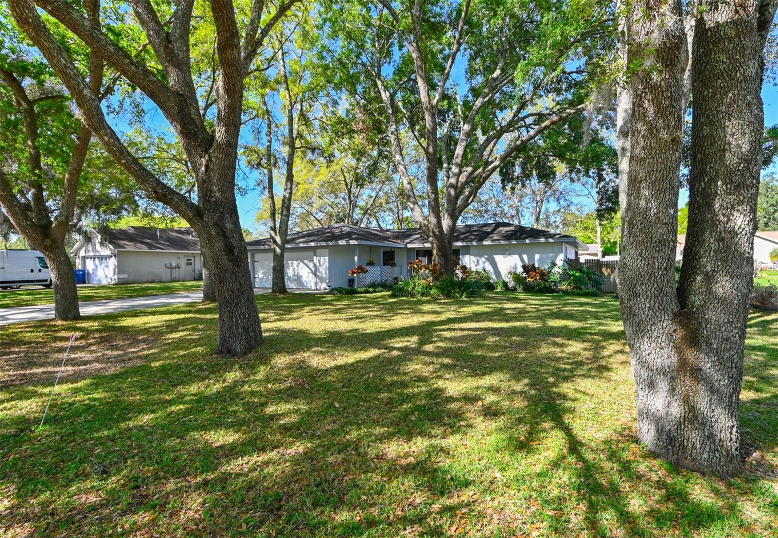 Tucked away in the desirable community of Lake Padgett Estates East, is this charming 3-bedroom, 2-bathroom home with a large two car garage that has additional space for storage or work area! Enjoy the mature oak trees shading the streets and the privacy of a cul-de-sac. This home entry flows right into the Formal Living room/Dining area, in an L shaped space. The kitchen and family room combo separate the Primary Bedroom from the two secondary bedrooms. The primary bedroom with en-suite and walk in closet, also features large sliding glass doors with direct access to a large screened in lanai. The screened in lanai offers a great place to entertain or just enjoy the beauty of the backyard that includes several fruit trees and well-maintained gardens. Bonus features on this property include a recent replacement of Roof (2018), HVAC (2022), Garage Door Opener, Dishwasher and Disposal (2023), and Electric Water Heater (2024). NO CDD fees! Low HOA fee which includes access to the amazing community clubhouse with pool, playgrounds, tennis courts, basketball, and much more. This home is only three miles from a public Golf Course, Land O Lakes Recreation Complex, and public Library. Make your appointment today to see this home!