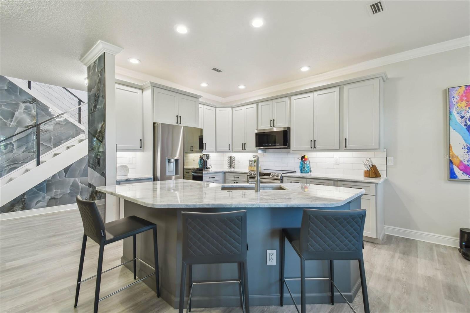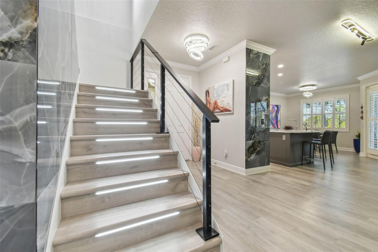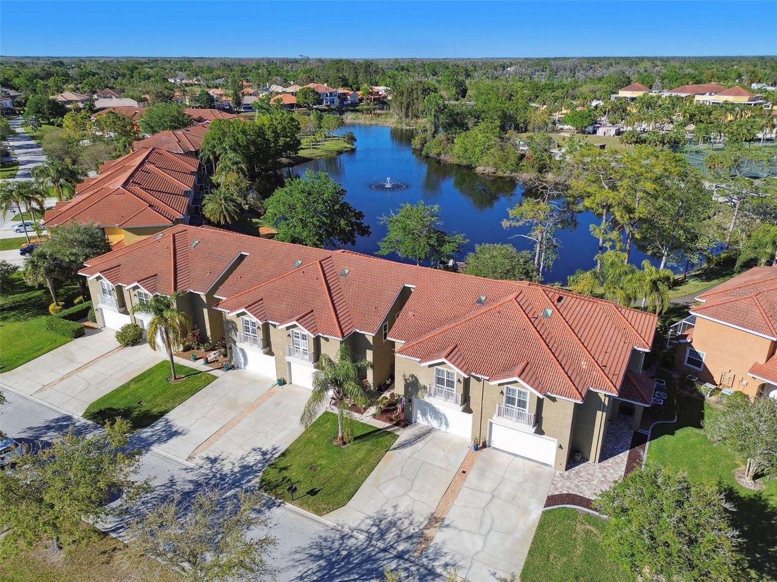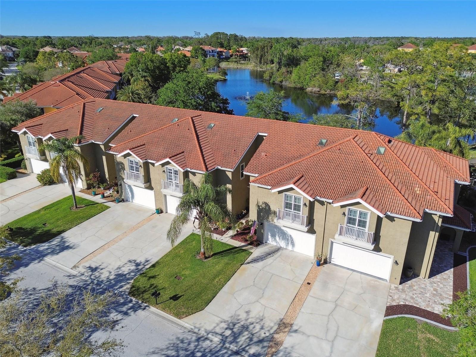 Indulge in the epitome of luxury with this exquisite waterfront Villa in Land o Lakes. Prepare to be captivated by the sheer opulence of this two-story haven, meticulously remodeled to perfection. Boasting a rare gem in the prestigious Caliente community, this Villa is a true treasure, with only 48 units in existence, and seldom does one become available for sale. As you enter through the grand doorway, a world of creative extravagance unfolds before you. Marvel at the custom marble tile walls and the industrial-style staircase adorned with cascading motion-sensing LED lighting. The first floor beckons with an open layout, flooded with natural light, encompassing a gourmet kitchen, dining area, and a living space featuring a bespoke bar with marble accents, custom storage, wine cabinets, and a cutting-edge wine fridge. The kitchen is a masterpiece of modern design, with custom deep drawers, soft-close technology, and top-of-the-line appliances including a Miele dishwasher, Samsung refrigerator with see-thru technology, and a Samsung convection oven with Wi-Fi capabilities. The entire house exudes elegance, with new Sherwin Williams paint, waterproof LVP flooring, and LED lighting enhancing every corner. Upstairs, the three bedrooms and bathrooms have been completely transformed, showcasing marble walls, custom cabinetry, and luxurious fixtures. Each bathroom is a sanctuary in itself. Primary bathroom is featuring an oversized rain shower and a floating bathtub under a skylight. The attention to detail is unparalleled, with too many upgrades to list. Step outside into your personal oasis and be enveloped by the tranquility of the picturesque waterfront views and lush landscaping. This is a sanctuary where you can truly unwind and rejuvenate, leaving all worries behind. The inside of this Villa is spectacular but so is the outside. Enjoy sipping your cocktail and watching the water display in the lake from your huge screened in patio right off the living area or take in the serene and tranquil lake views from the screened in balcony off the master bedroom. Located in the exclusive Caliente community, a clothing-optional gated paradise, residents are treated to a plethora of amenities including live entertainment, nightclubs, bars, restaurants, spa, gym, pools, tennis courts, and a variety of activities. With its proximity to Tampa airport, shopping centers, golf courses, and Gulf Beaches, this Villa offers a lifestyle of unparalleled luxury and convenience. For the discerning buyer, the option to purchase this Villa fully furnished is available. Embrace the extraordinary and make this luxurious retreat your own.