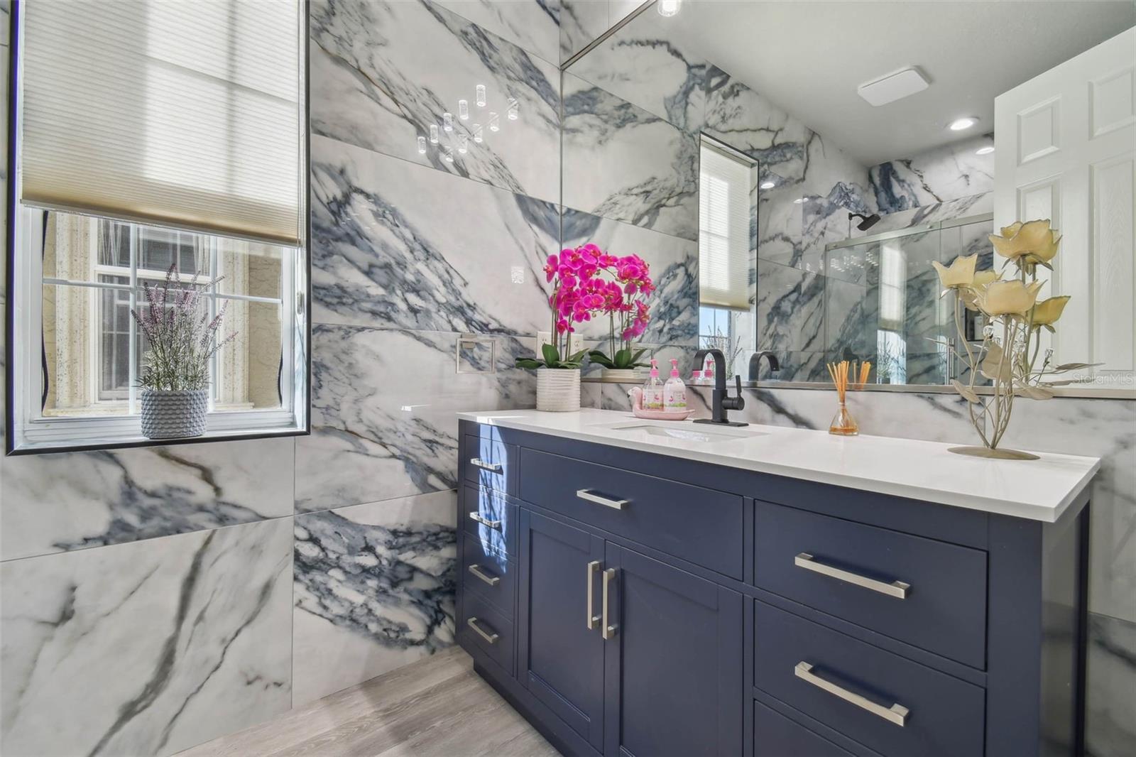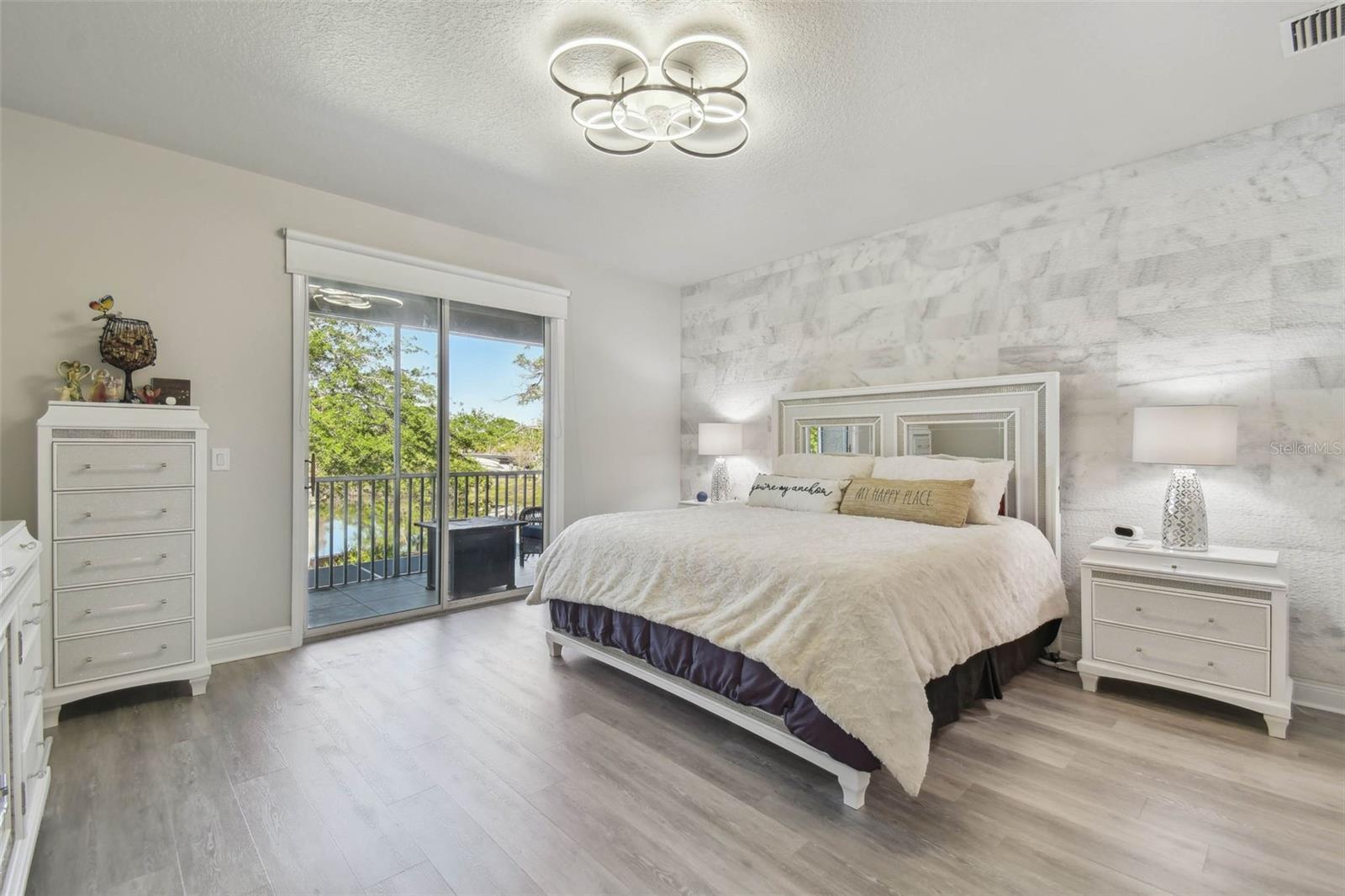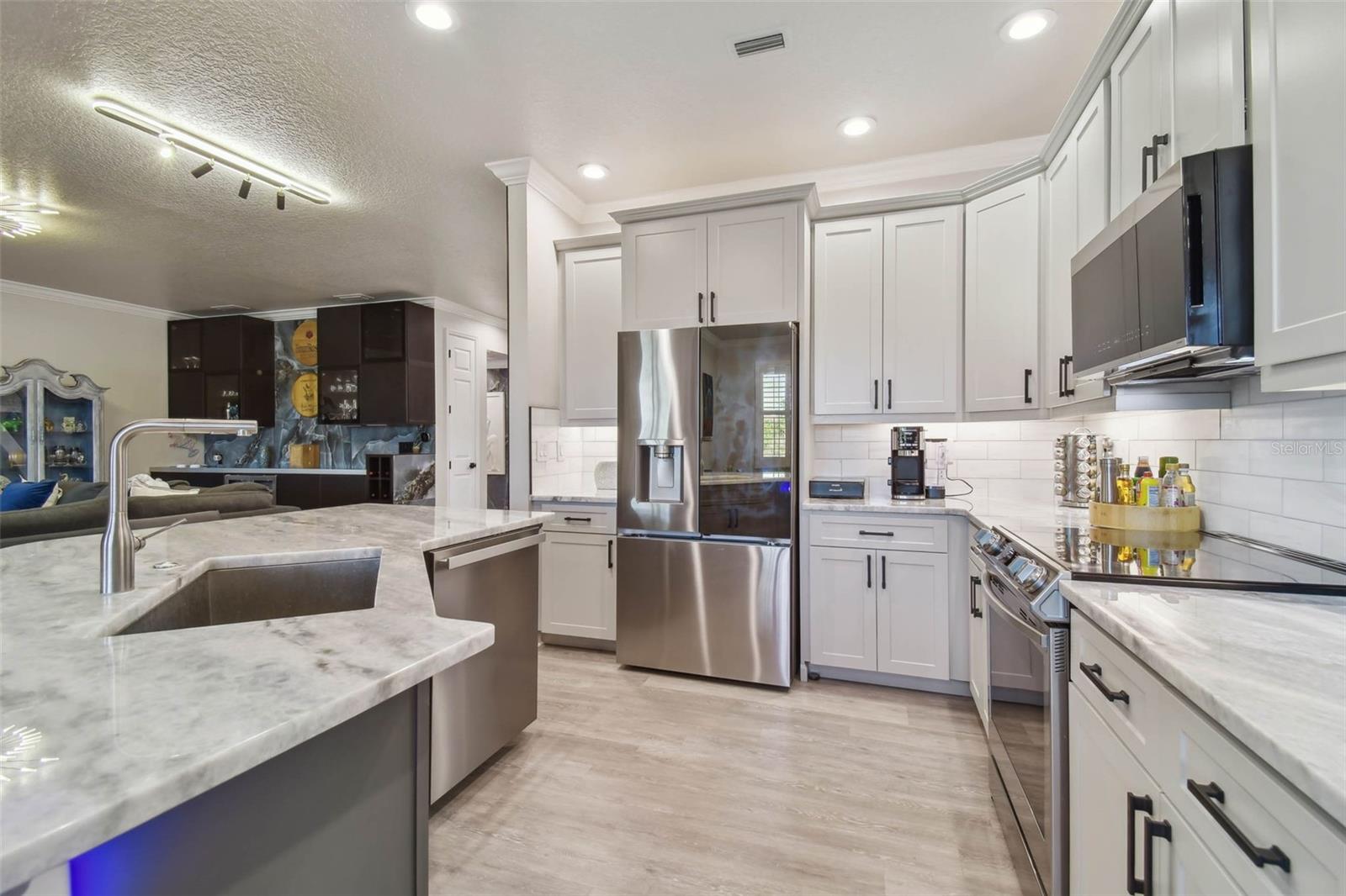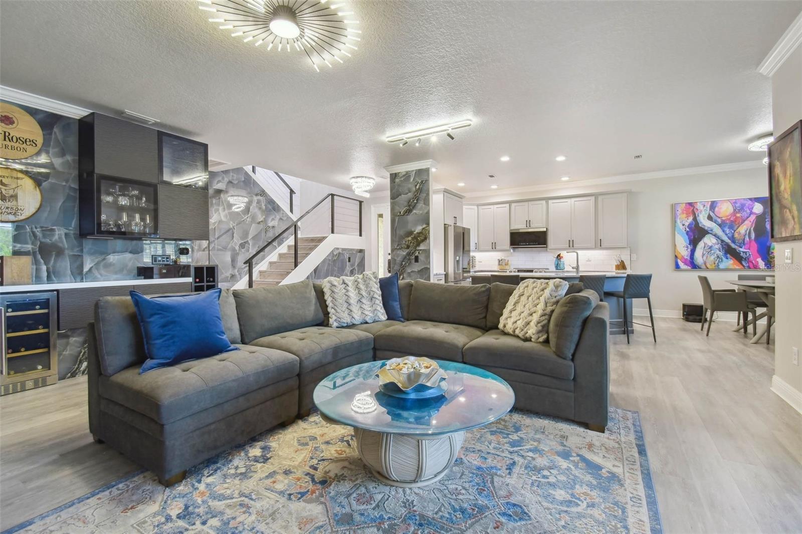 Indulge in the epitome of luxury with this exquisite waterfront Villa in Land o Lakes. Prepare to be captivated by the sheer opulence of this two-story haven, meticulously remodeled to perfection. Boasting a rare gem in the prestigious Caliente community, this Villa is a true treasure, with only 48 units in existence, and seldom does one become available for sale. As you enter through the grand doorway, a world of creative extravagance unfolds before you. Marvel at the custom marble tile walls and the industrial-style staircase adorned with cascading motion-sensing LED lighting. The first floor beckons with an open layout, flooded with natural light, encompassing a gourmet kitchen, dining area, and a living space featuring a bespoke bar with marble accents, custom storage, wine cabinets, and a cutting-edge wine fridge. The kitchen is a masterpiece of modern design, with custom deep drawers, soft-close technology, and top-of-the-line appliances including a Miele dishwasher, Samsung refrigerator with see-thru technology, and a Samsung convection oven with Wi-Fi capabilities. The entire house exudes elegance, with new Sherwin Williams paint, waterproof LVP flooring, and LED lighting enhancing every corner. Upstairs, the three bedrooms and bathrooms have been completely transformed, showcasing marble walls, custom cabinetry, and luxurious fixtures. Each bathroom is a sanctuary in itself. Primary bathroom is featuring an oversized rain shower and a floating bathtub under a skylight. The attention to detail is unparalleled, with too many upgrades to list. Step outside into your personal oasis and be enveloped by the tranquility of the picturesque waterfront views and lush landscaping. This is a sanctuary where you can truly unwind and rejuvenate, leaving all worries behind. The inside of this Villa is spectacular but so is the outside. Enjoy sipping your cocktail and watching the water display in the lake from your huge screened in patio right off the living area or take in the serene and tranquil lake views from the screened in balcony off the master bedroom. Located in the exclusive Caliente community, a clothing-optional gated paradise, residents are treated to a plethora of amenities including live entertainment, nightclubs, bars, restaurants, spa, gym, pools, tennis courts, and a variety of activities. With its proximity to Tampa airport, shopping centers, golf courses, and Gulf Beaches, this Villa offers a lifestyle of unparalleled luxury and convenience. For the discerning buyer, the option to purchase this Villa fully furnished is available. Embrace the extraordinary and make this luxurious retreat your own.