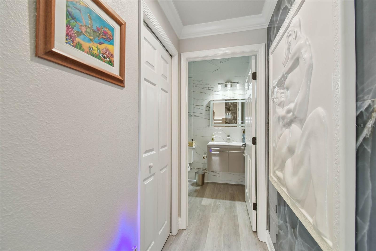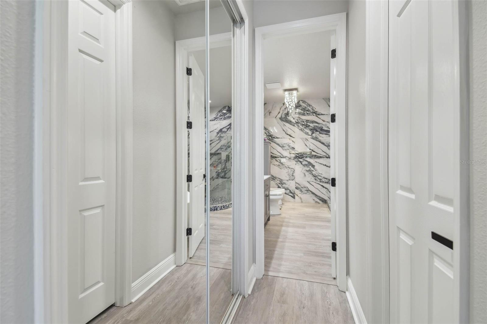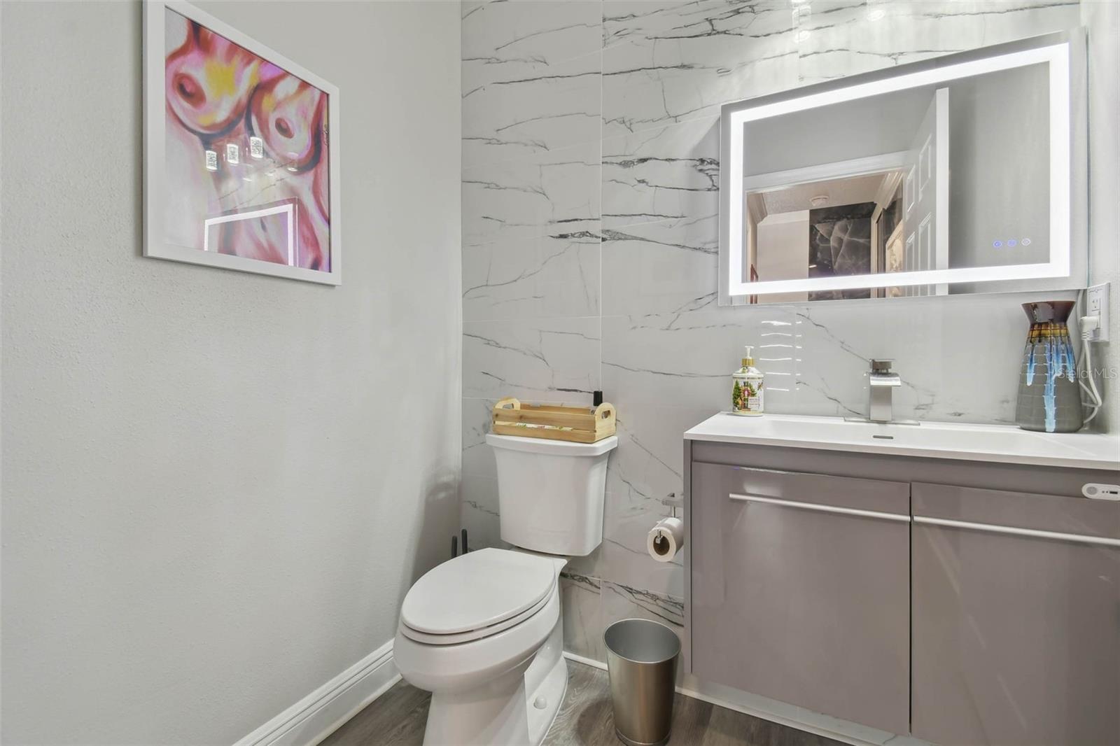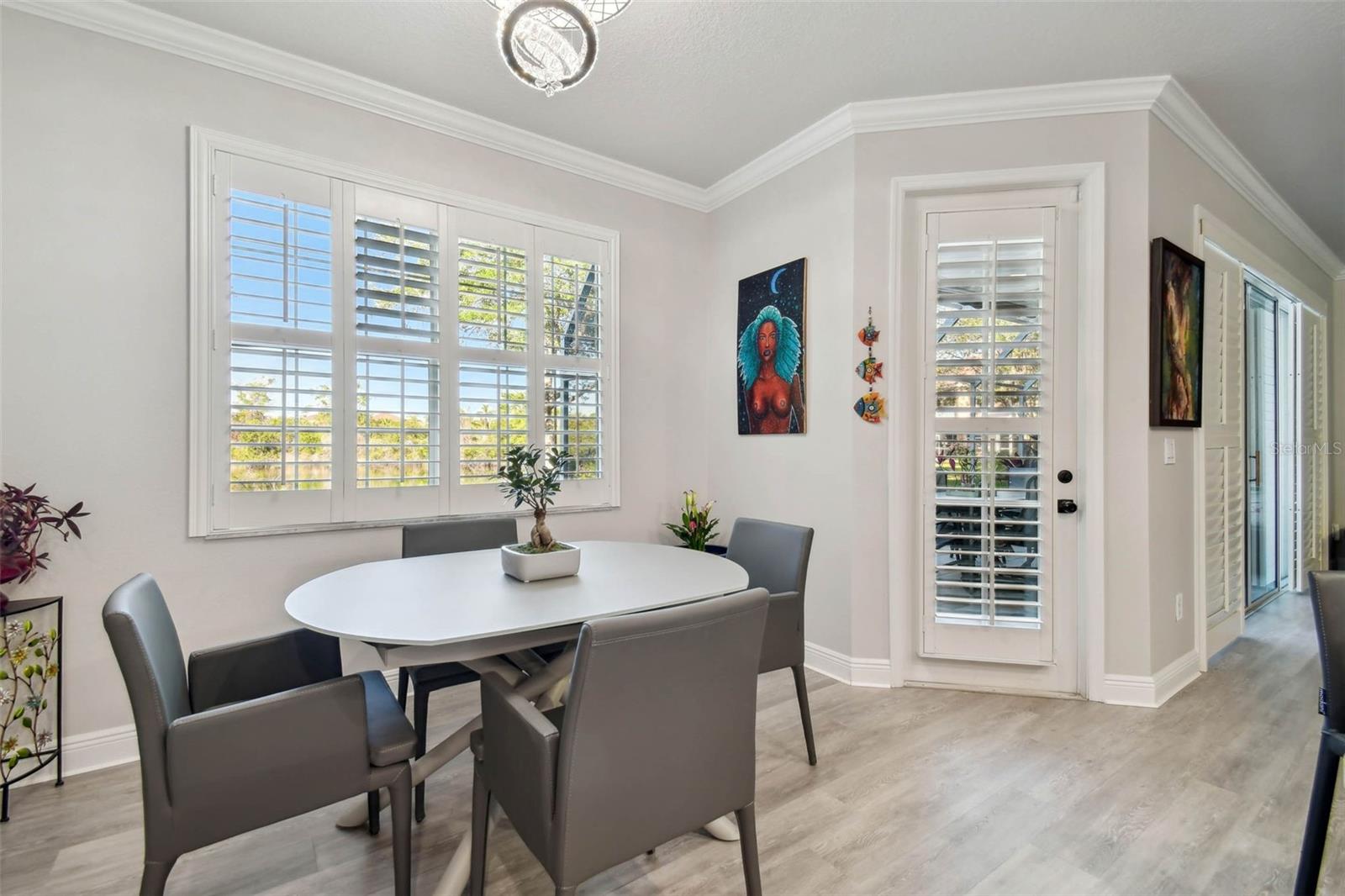 Indulge in the epitome of luxury with this exquisite waterfront Villa in Land o Lakes. Prepare to be captivated by the sheer opulence of this two-story haven, meticulously remodeled to perfection. Boasting a rare gem in the prestigious Caliente community, this Villa is a true treasure, with only 48 units in existence, and seldom does one become available for sale. As you enter through the grand doorway, a world of creative extravagance unfolds before you. Marvel at the custom marble tile walls and the industrial-style staircase adorned with cascading motion-sensing LED lighting. The first floor beckons with an open layout, flooded with natural light, encompassing a gourmet kitchen, dining area, and a living space featuring a bespoke bar with marble accents, custom storage, wine cabinets, and a cutting-edge wine fridge. The kitchen is a masterpiece of modern design, with custom deep drawers, soft-close technology, and top-of-the-line appliances including a Miele dishwasher, Samsung refrigerator with see-thru technology, and a Samsung convection oven with Wi-Fi capabilities. The entire house exudes elegance, with new Sherwin Williams paint, waterproof LVP flooring, and LED lighting enhancing every corner. Upstairs, the three bedrooms and bathrooms have been completely transformed, showcasing marble walls, custom cabinetry, and luxurious fixtures. Each bathroom is a sanctuary in itself. Primary bathroom is featuring an oversized rain shower and a floating bathtub under a skylight. The attention to detail is unparalleled, with too many upgrades to list. Step outside into your personal oasis and be enveloped by the tranquility of the picturesque waterfront views and lush landscaping. This is a sanctuary where you can truly unwind and rejuvenate, leaving all worries behind. The inside of this Villa is spectacular but so is the outside. Enjoy sipping your cocktail and watching the water display in the lake from your huge screened in patio right off the living area or take in the serene and tranquil lake views from the screened in balcony off the master bedroom. Located in the exclusive Caliente community, a clothing-optional gated paradise, residents are treated to a plethora of amenities including live entertainment, nightclubs, bars, restaurants, spa, gym, pools, tennis courts, and a variety of activities. With its proximity to Tampa airport, shopping centers, golf courses, and Gulf Beaches, this Villa offers a lifestyle of unparalleled luxury and convenience. For the discerning buyer, the option to purchase this Villa fully furnished is available. Embrace the extraordinary and make this luxurious retreat your own.