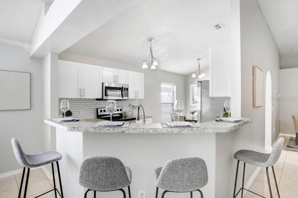 Charming 4-Bedroom Home in The Enclave – Move-In Ready! Welcome to this beautifully updated 4-bedroom, 2-bathroom home with 1,874 sq. ft. of living space in the highly desirable community of The Enclave in Land O’ Lakes! Brand-new roof 2025, no CDD fees, and low HOA dues, this home is a rare find! Step inside to soaring vaulted ceilings and fresh interior and exterior paint, creating a bright and airy ambiance. The updated kitchen is a chef’s dream, featuring white cabinetry, a subway tile backsplash, brushed nickel hardware, stainless steel appliances, and a breakfast bar perfect for casual dining. The spacious master suite boasts an updated en-suite bathroom with modern barn doors, while the tile flooring throughout adds both style and easy maintenance. Enjoy Florida living at its finest in the large screened patio, overlooking an expansive backyard with serene wooded conservation views—a perfect setting for relaxation and outdoor entertaining. Additional highlights include a 2-car garage, washer & dryer included, and a prime location close to shopping including the Tampa Premium Outlet & Wiregrass Mall, dining, and major highways. Don’t miss this incredible opportunity—schedule your showing today!