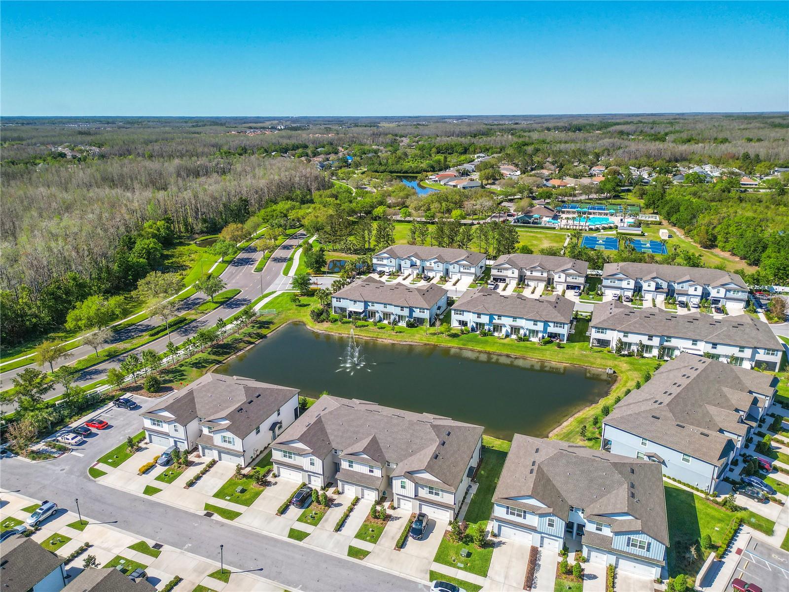 This Townhome, built in 2021, offers a move-in-ready living space with numerous upgrades not typically found at this price. Situated in one of Pasco County’s most desirable neighborhoods, the home provides easy access to Highways 54, 41, and the Veterans Expy/Suncoast Pkwy. Outdoor lovers will appreciate the 2.5-mile walking and bike path just outside the community gate. The home is secured with a front door keypad for easy access to this two-story, lakeview property. The floor plan features 2 bedrooms, 2 full baths upstairs, a convenient half bath on the main level, and an attached one-car garage Inside. The main floor is finished with tile flooring, and the spacious kitchen, thick granite countertops, a subway tile backsplash, and stainless steel appliances, making it practical and convenient. A triple glass sliding patio door leads to the patio, offering a beautiful lake view. Storage is abundant with space under the staircase and two additional pantry-style closets. Upstairs, the master suite features wall-to-wall closets and an en suite bathroom with, shower box, dual sinks, and granite countertops. A second bedroom, full bath, and loft area provide plenty of living space.An optional membership to the community recreation center is also available. https://www.oaksteadcdd.org/