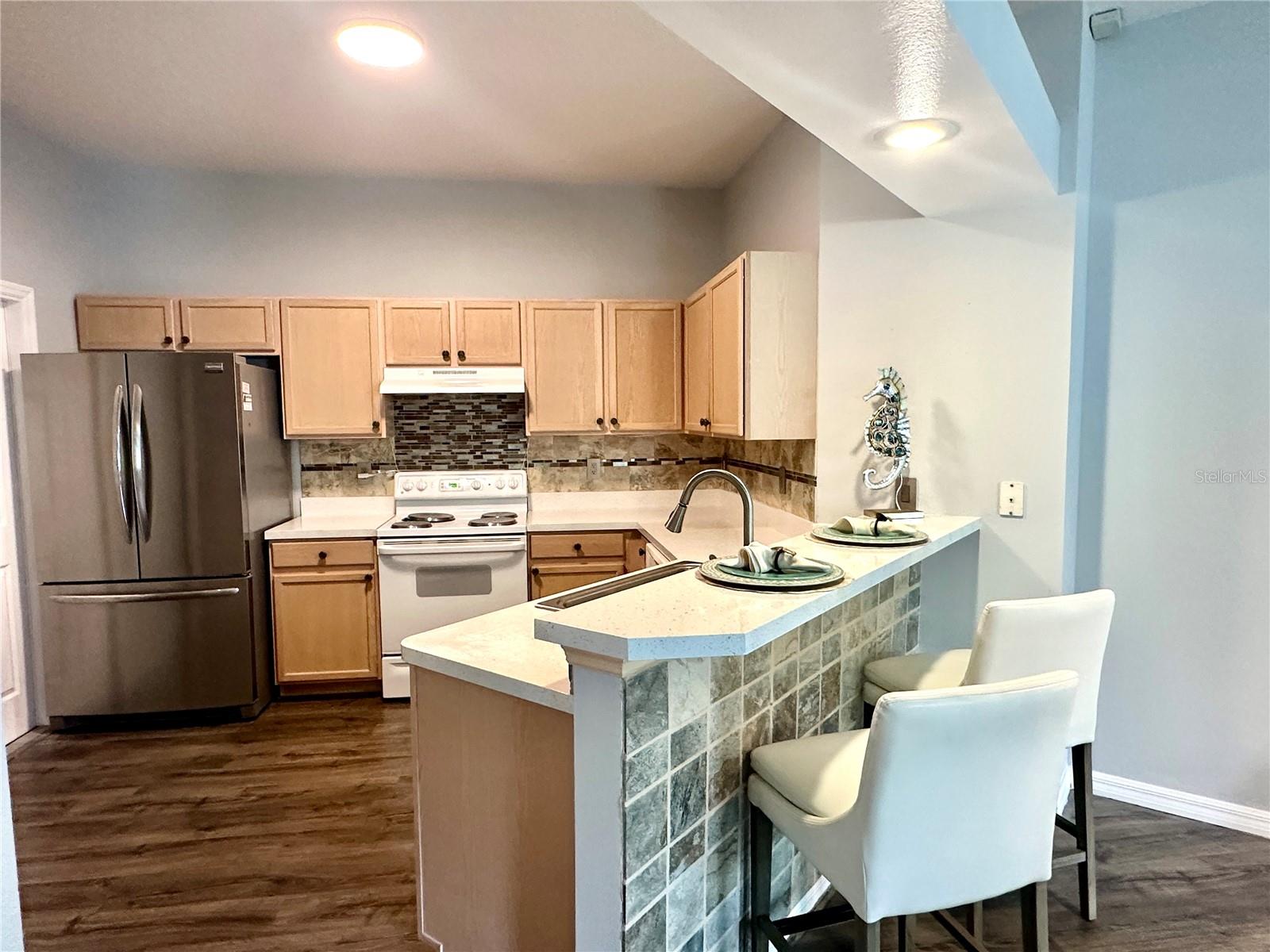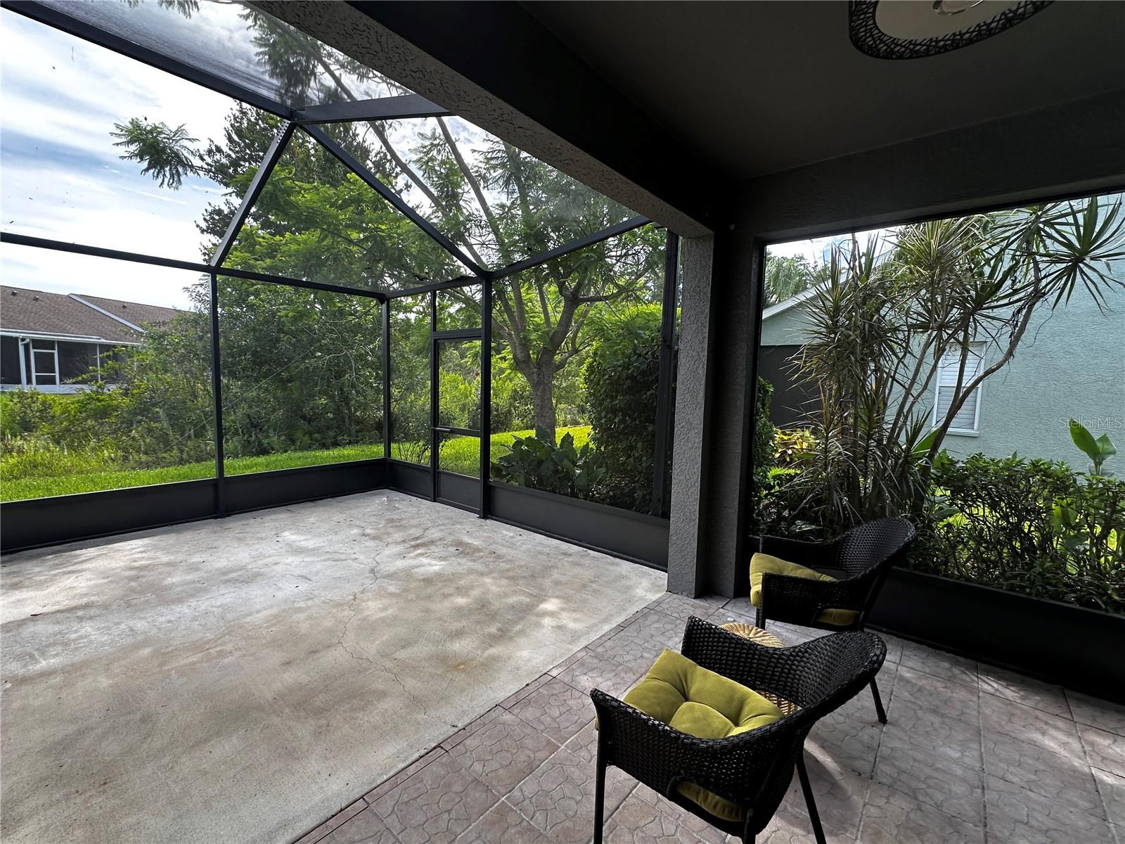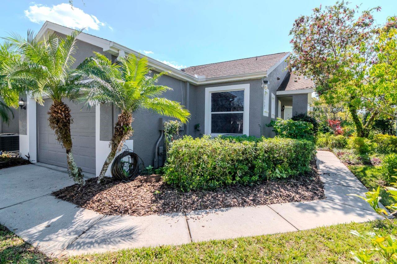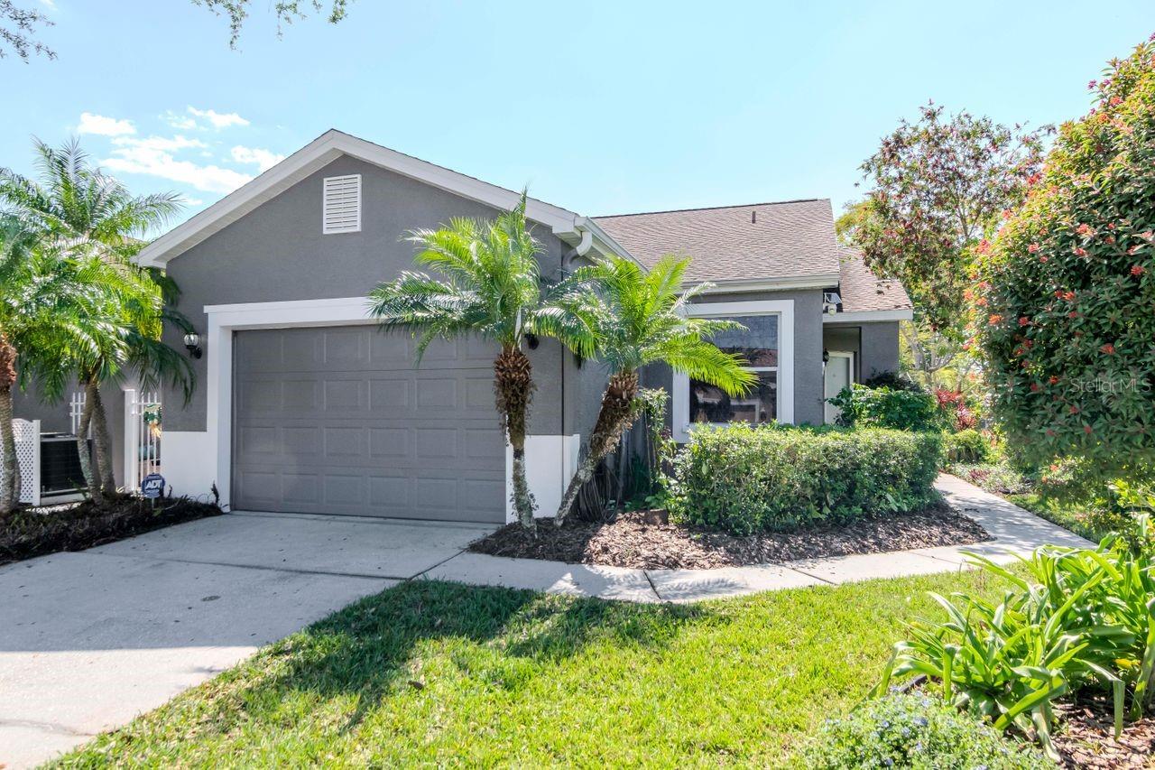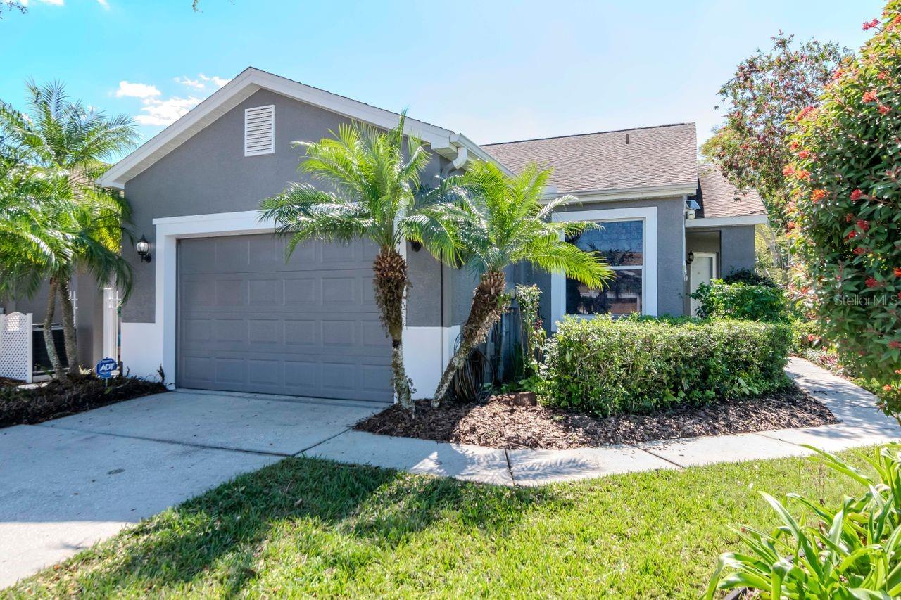 PRICE IMPROVEMENT! Don’t miss this must-see opportunity to own a beautifully refreshed villa in the highly sought-after gated 55+ golf community of The Groves. This move-in ready home has just been updated to shine, with fresh interior paint, brand-new carpet in both bedrooms, modern light fixtures, a granite vanity top in the primary bath, and other thoughtful upgrades that make it truly turnkey. Set on a premium corner lot backing to a peaceful conservation area, the home offers rare privacy and serene natural views. The oversized, extended lanai is a standout feature—perfect for relaxing, entertaining, or simply enjoying the tranquil preserve setting, and a true highlight in this price range. Inside, the open-concept design flows easily from the welcoming courtyard entry into a spacious living and dining area, then out to the lanai. The kitchen offers wood cabinetry, a convenient breakfast bar, and plenty of functionality. A split-bedroom floor plan provides comfort and privacy, with the primary suite boasting conservation views, a walk-in closet, and a refreshed en-suite featuring a walk-in shower and updated granite vanity. The guest bedroom and adjacent full bath are ideal for visitors or hobby space. Additional features include Pergo flooring in the main living areas, a newer roof (2019), a brand-new water heater (Dec 2024), exterior paint (2022), and even a golf cart included with the sale—making it easier than ever to enjoy the active lifestyle The Groves is known for. Residents of this vibrant community enjoy a championship golf course, pickleball, tennis, bocce, fitness classes, social events, and a full-service clubhouse with a restaurant. The HOA fee covers lawn care, Spectrum TV & Internet, roof replacement, exterior painting, and all community amenities, making for a truly low-maintenance lifestyle. Ideally located just minutes from shopping, dining, and medical centers—and only 30 minutes to Tampa International Airport and 40 minutes to the Gulf beaches—this villa offers the perfect combination of comfort, convenience, and community. Schedule your private showing today and discover one of the best values in The Groves!