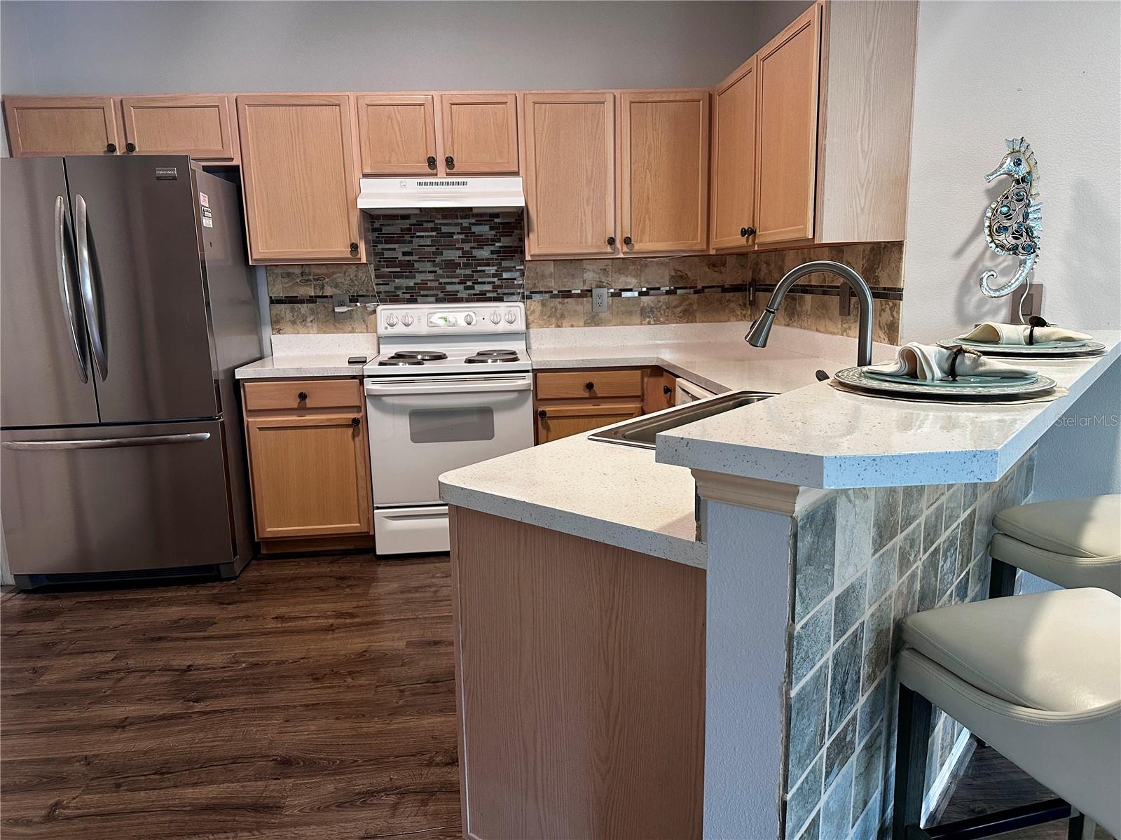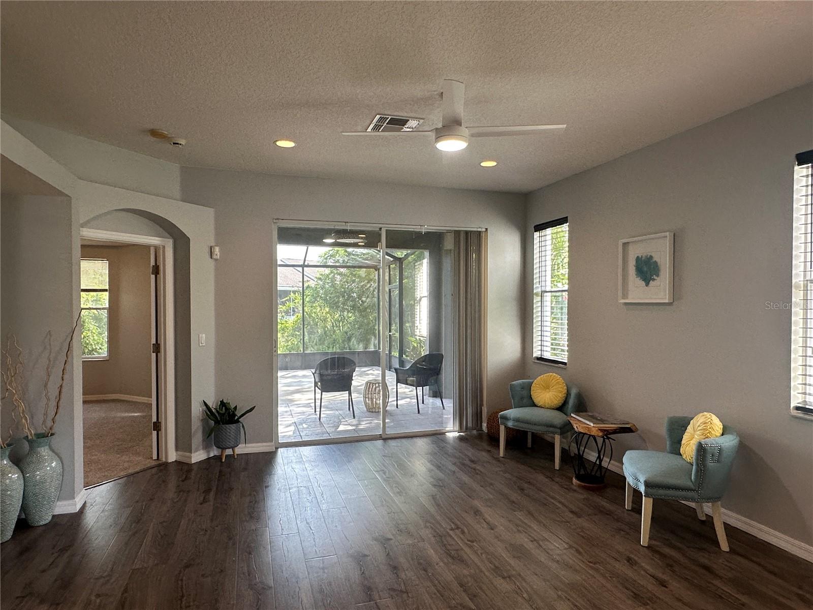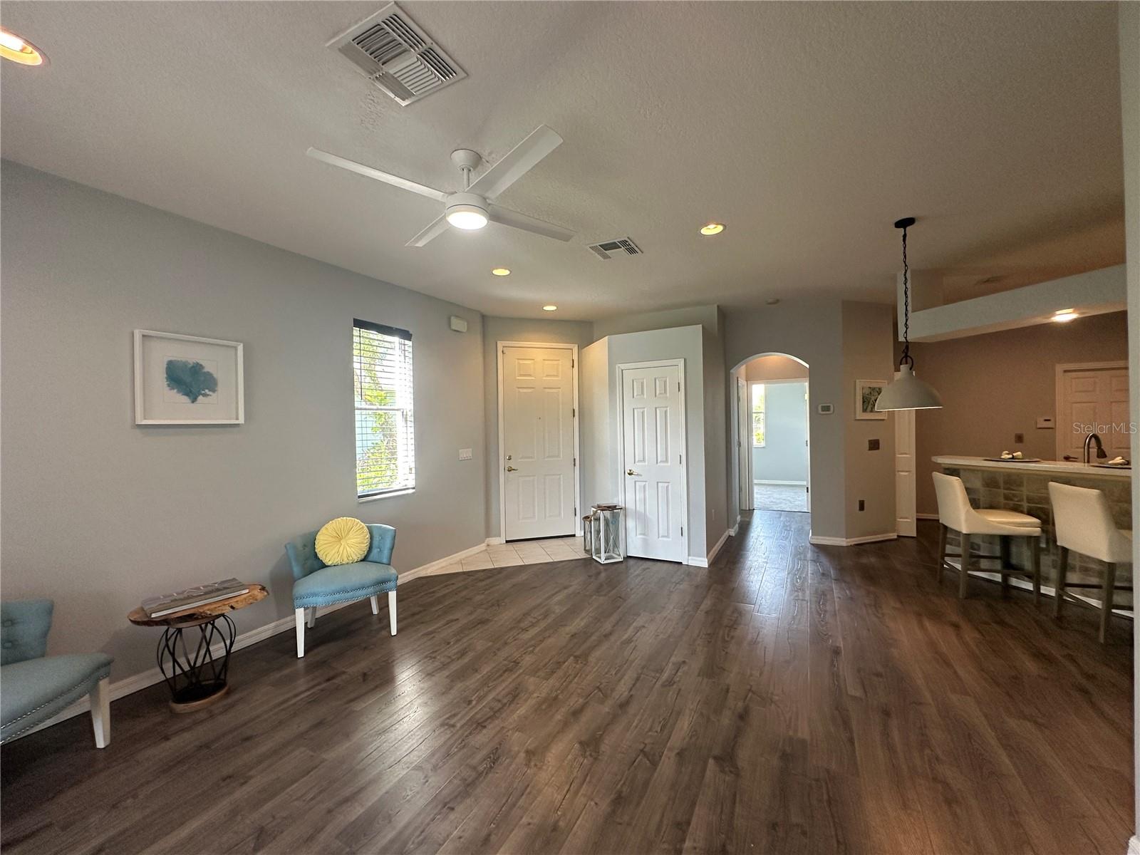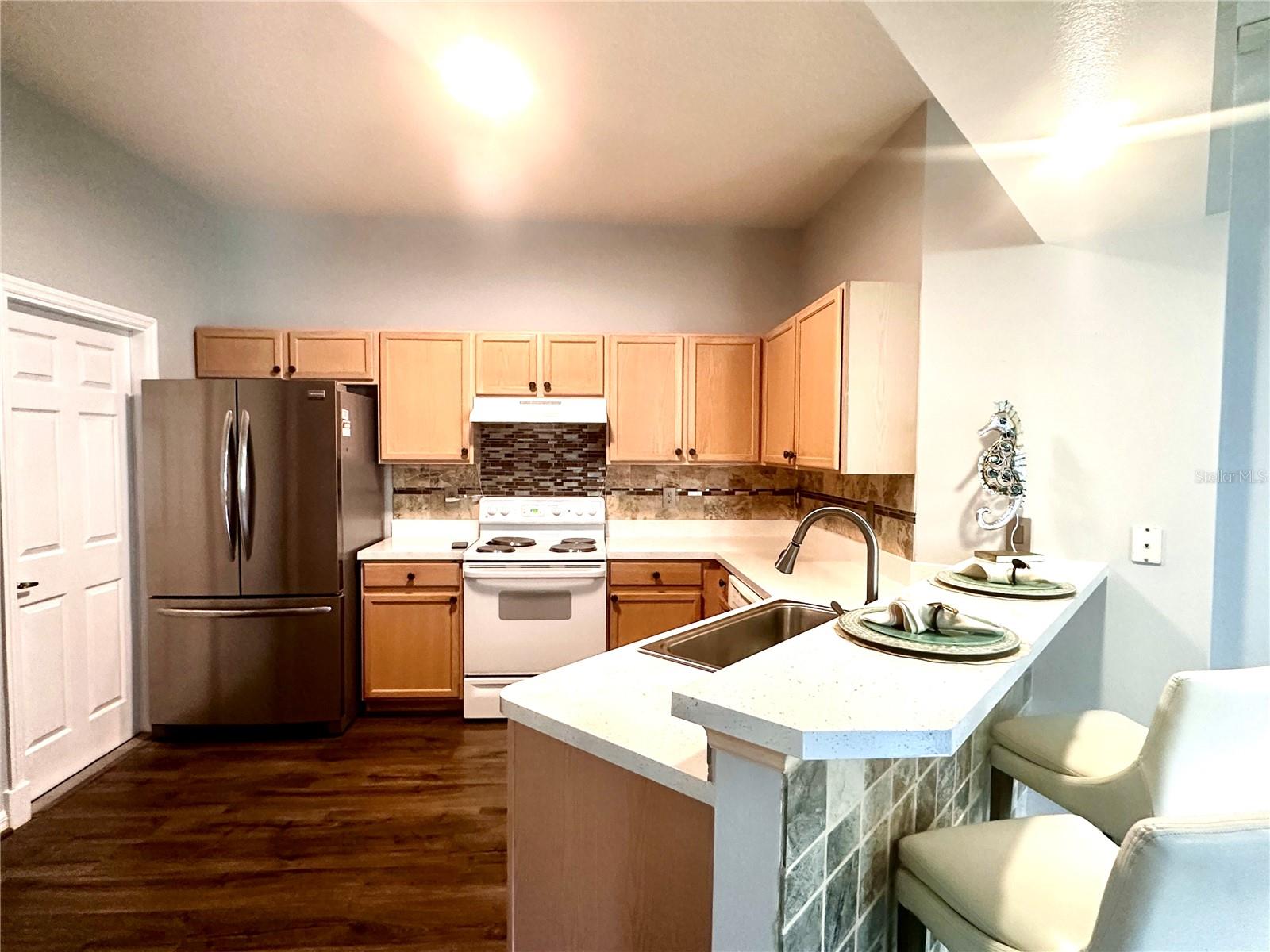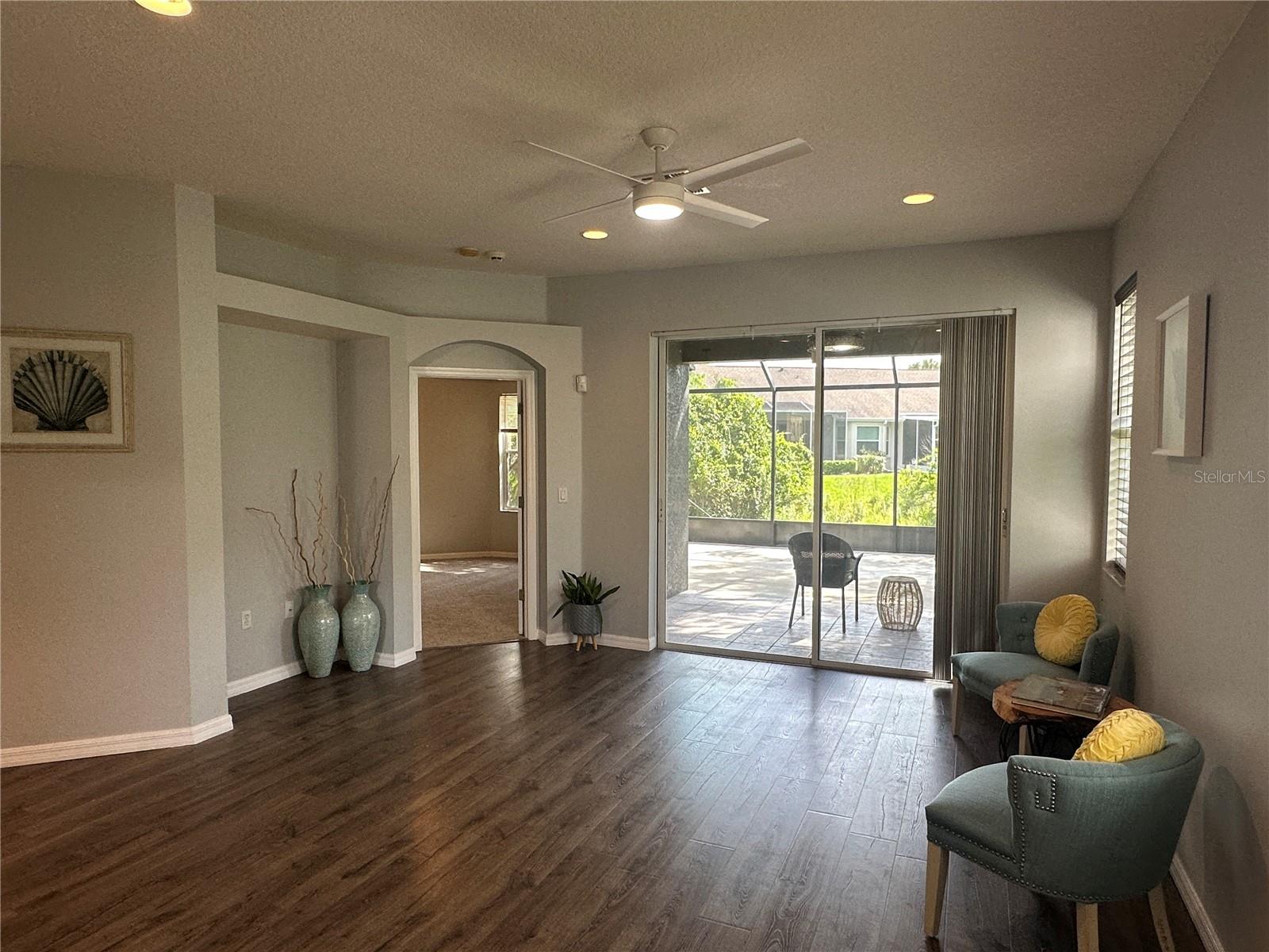 PRICE IMPROVEMENT! Don’t miss this must-see opportunity to own a beautifully refreshed villa in the highly sought-after gated 55+ golf community of The Groves. This move-in ready home has just been updated to shine, with fresh interior paint, brand-new carpet in both bedrooms, modern light fixtures, a granite vanity top in the primary bath, and other thoughtful upgrades that make it truly turnkey. Set on a premium corner lot backing to a peaceful conservation area, the home offers rare privacy and serene natural views. The oversized, extended lanai is a standout feature—perfect for relaxing, entertaining, or simply enjoying the tranquil preserve setting, and a true highlight in this price range. Inside, the open-concept design flows easily from the welcoming courtyard entry into a spacious living and dining area, then out to the lanai. The kitchen offers wood cabinetry, a convenient breakfast bar, and plenty of functionality. A split-bedroom floor plan provides comfort and privacy, with the primary suite boasting conservation views, a walk-in closet, and a refreshed en-suite featuring a walk-in shower and updated granite vanity. The guest bedroom and adjacent full bath are ideal for visitors or hobby space. Additional features include Pergo flooring in the main living areas, a newer roof (2019), a brand-new water heater (Dec 2024), exterior paint (2022), and even a golf cart included with the sale—making it easier than ever to enjoy the active lifestyle The Groves is known for. Residents of this vibrant community enjoy a championship golf course, pickleball, tennis, bocce, fitness classes, social events, and a full-service clubhouse with a restaurant. The HOA fee covers lawn care, Spectrum TV & Internet, roof replacement, exterior painting, and all community amenities, making for a truly low-maintenance lifestyle. Ideally located just minutes from shopping, dining, and medical centers—and only 30 minutes to Tampa International Airport and 40 minutes to the Gulf beaches—this villa offers the perfect combination of comfort, convenience, and community. Schedule your private showing today and discover one of the best values in The Groves!