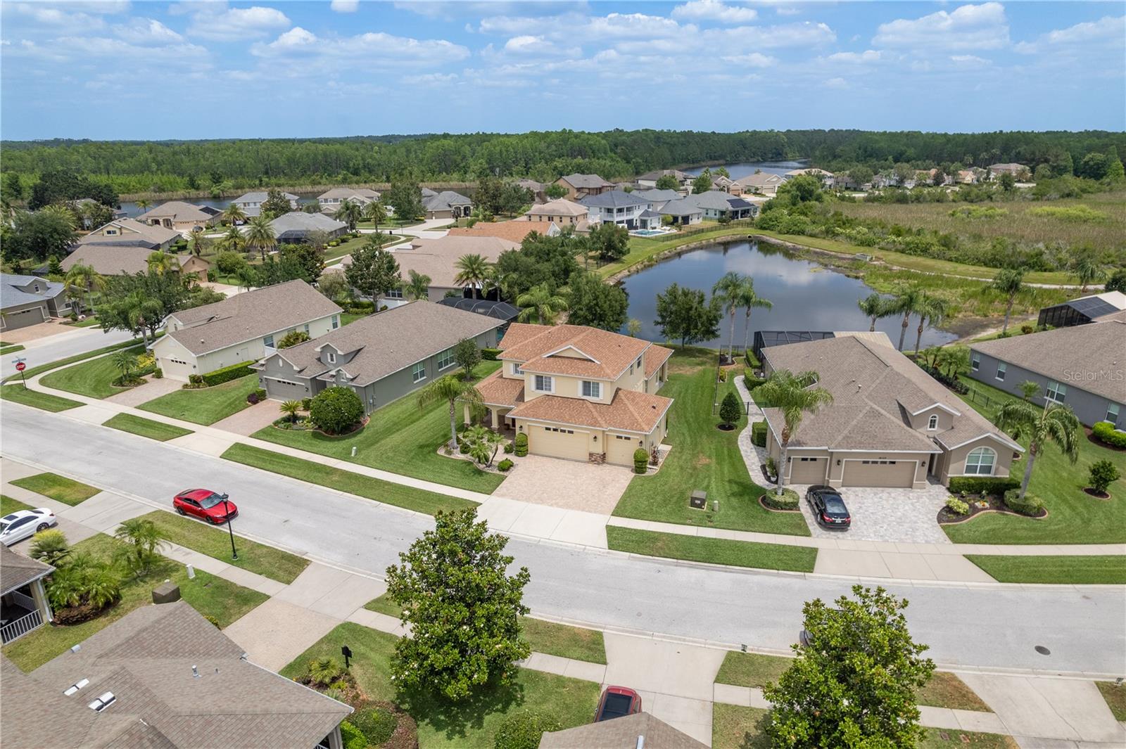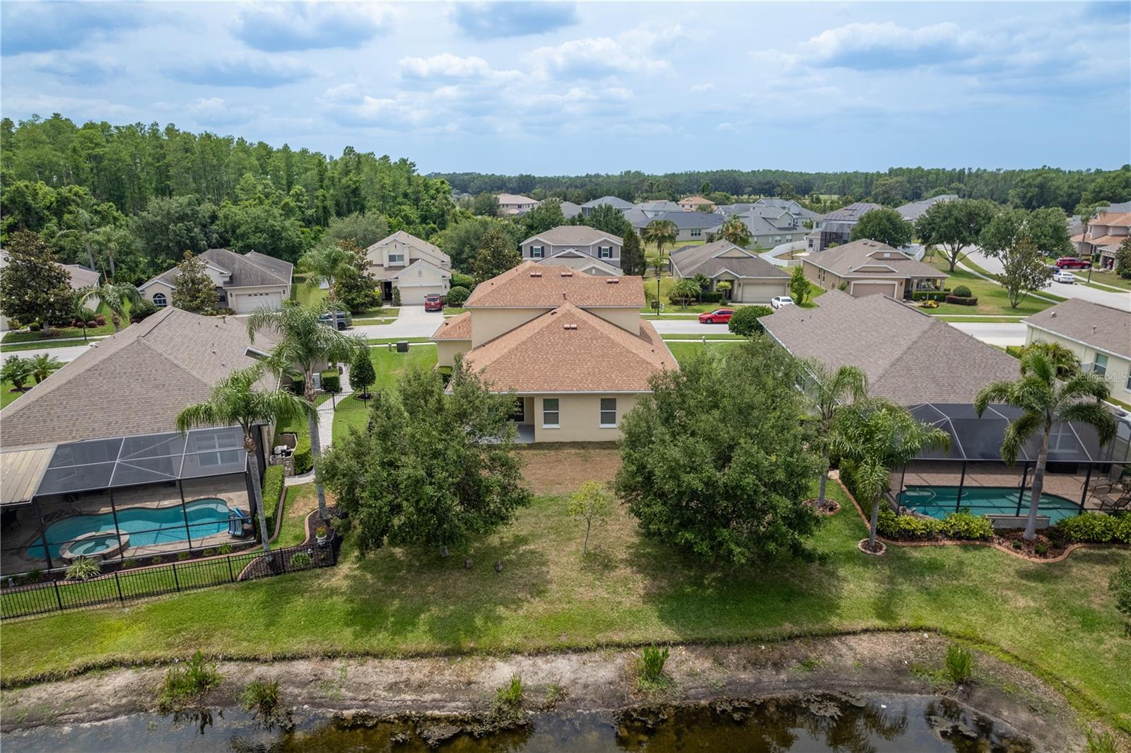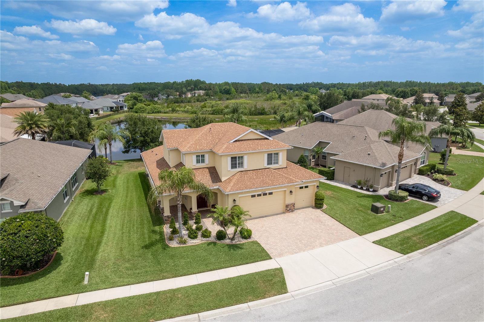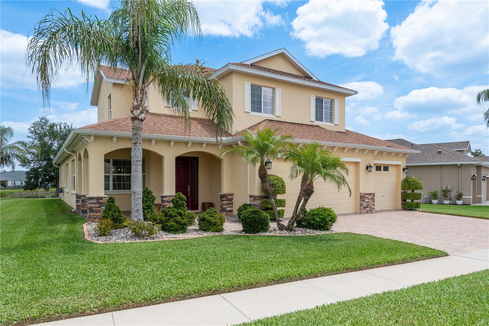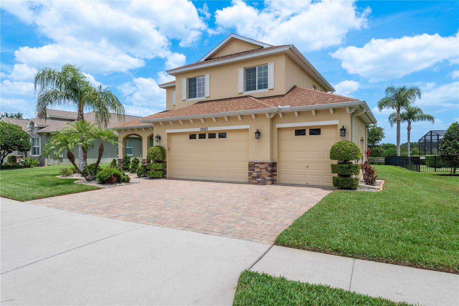 One or more photo(s) has been virtually staged. Explore Endless Possibilities in This Thoughtfully Designed Home. Step into a meticulously maintained four-bedroom, two-and-a-half-bathroom residence that blends flexibility, functionality, and fresh updates to suit your lifestyle. With fresh interior paint throughout, a new water heater installed in December 2024, and a new water softener added in April 2025, this home is ready for move-in and designed for comfort. On the first floor, enjoy a formal living room and dining room, both adaptable spaces that cater to your needs. The dining room features two pocket sliding doors, making it ideal for a private office. Meanwhile, the living room can easily transform into a secondary dining area or a cozy sitting space. The primary suite is also located on the first floor, offering a luxurious ensuite and serene pond views through sliding glass doors. Upstairs, you’ll find brand-new carpet throughout three spacious bedrooms and a dedicated office, perfect for remote work or study. One of the bedrooms is generously sized and can be reimagined as a bonus room for entertainment, play, or added privacy. At the heart of the home, an open-concept layout connects the kitchen, dining area, family room, and your choice of living or dining space. Sliding doors in both the family room and primary bedroom frame tranquil views of the large pond, creating a peaceful backdrop for everyday living. Outside, a sprawling backyard offers ample space for outdoor activities or the potential to add a custom pool. A three-car garage provides abundant storage and convenience. Community Highlights: This vibrant, 24-hour gated community features a multi-million-dollar clubhouse with top-tier amenities: • Three swimming pools: resort-style, heated lap, and kiddie pool • 24-hour fitness center, massage room, billiards, and ping-pong area • Basketball court, tennis/pickleball courts, fishing dock, and amphitheater playground • Dedicated dog park and year-round community events HOA fees include cable and high-speed internet. Mailboxes are conveniently located inside the clubhouse for secure, anytime access. Whether you're seeking a peaceful retreat, a flexible layout for work and play, or a vibrant community lifestyle, this home invites you to imagine the possibilities. Schedule your showing today and experience the potential firsthand!