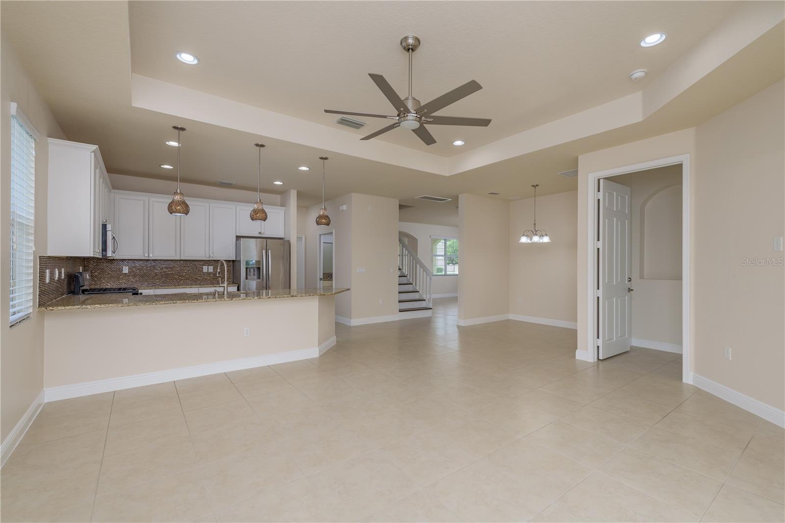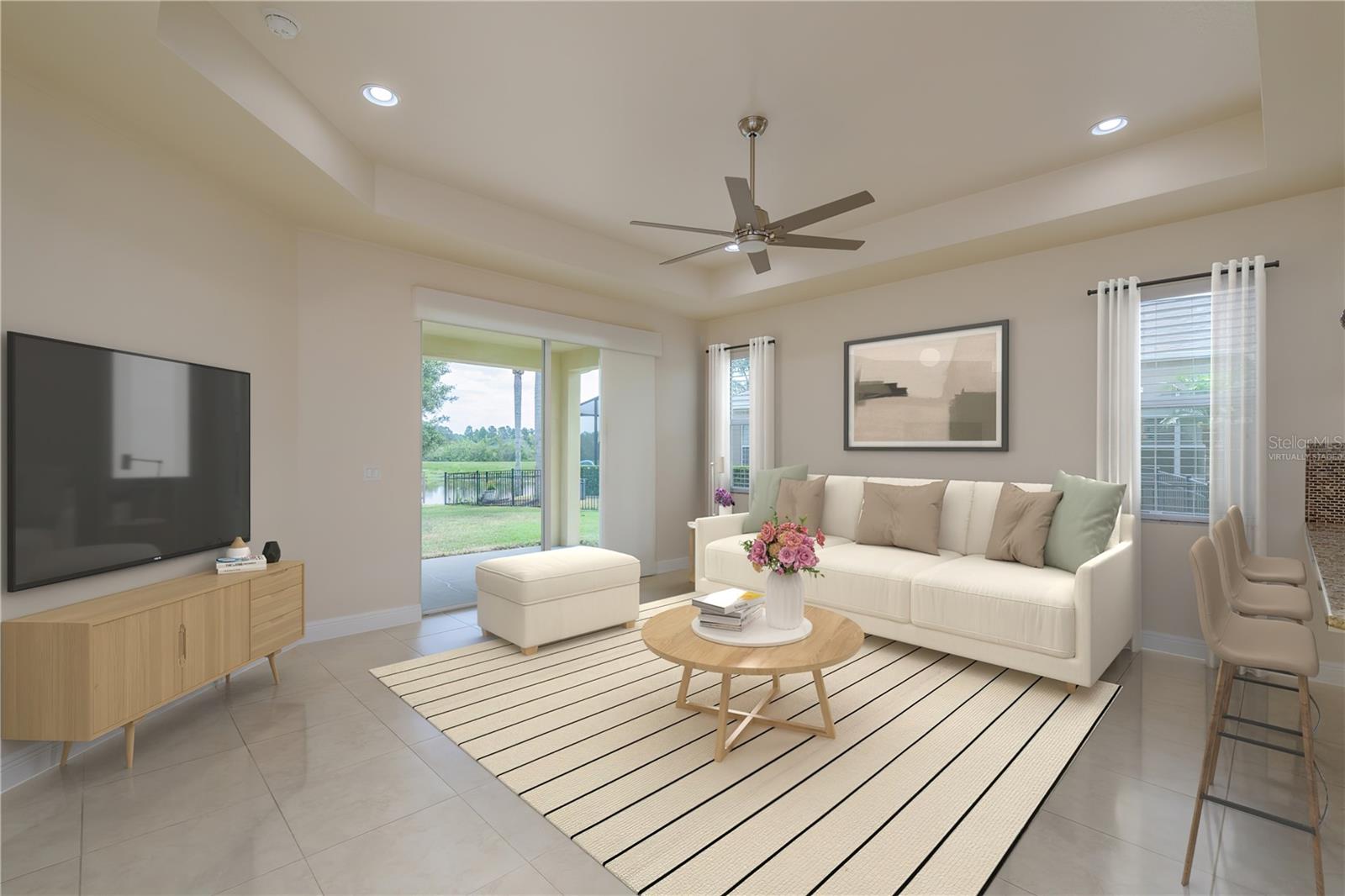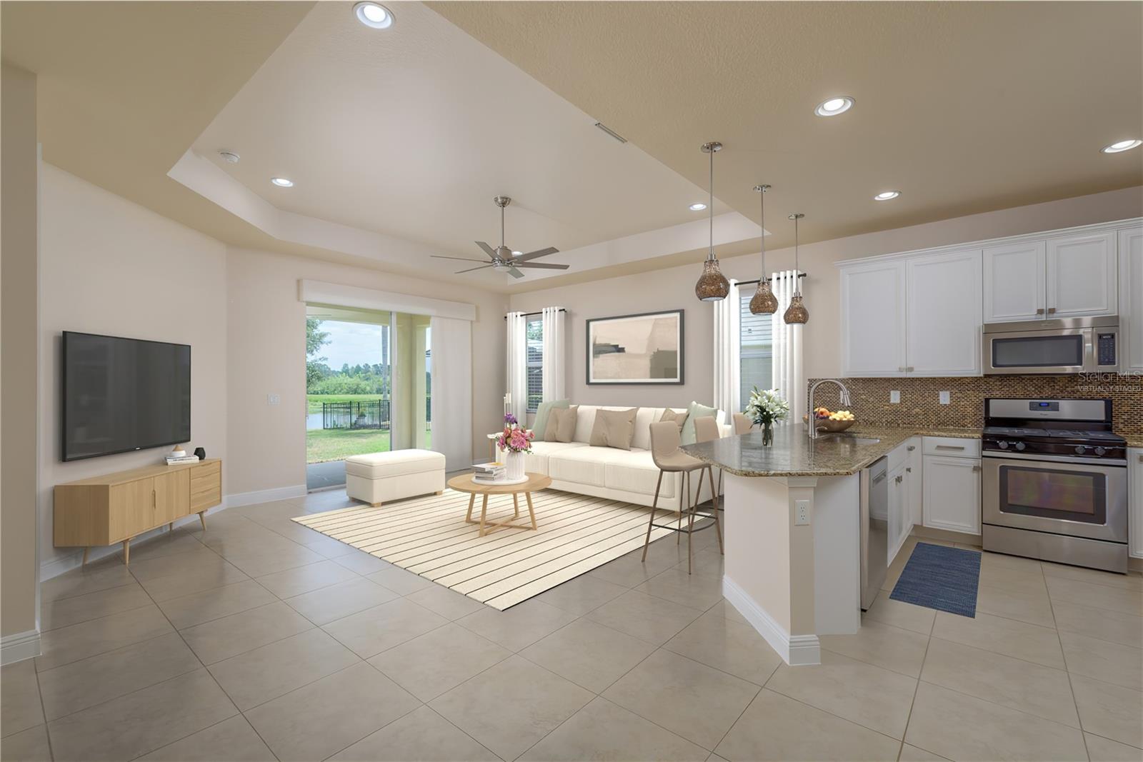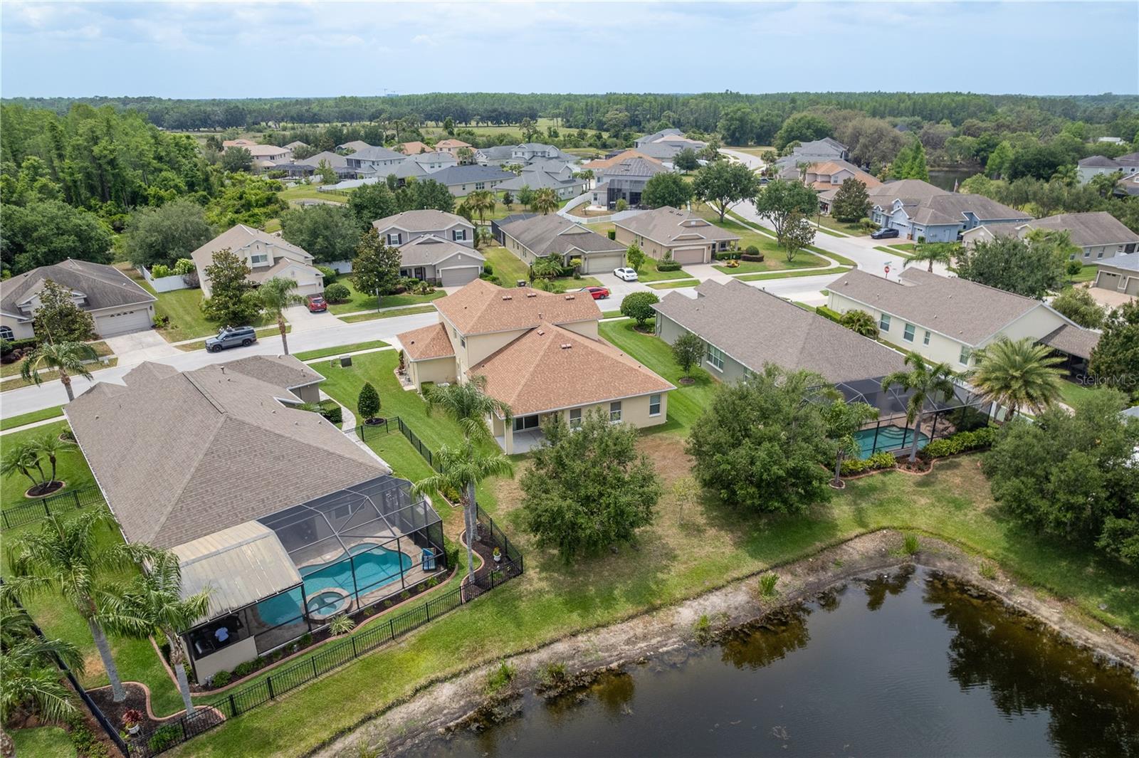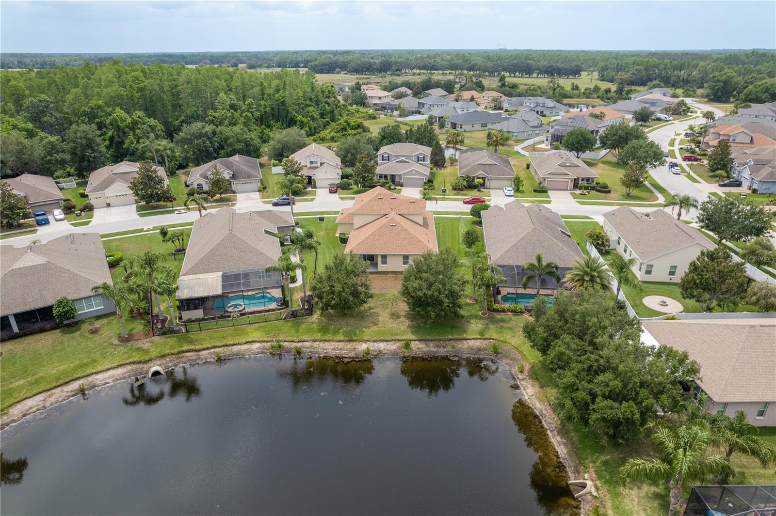 One or more photo(s) has been virtually staged. Explore Endless Possibilities in This Thoughtfully Designed Home. Step into a meticulously maintained four-bedroom, two-and-a-half-bathroom residence that blends flexibility, functionality, and fresh updates to suit your lifestyle. With fresh interior paint throughout, a new water heater installed in December 2024, and a new water softener added in April 2025, this home is ready for move-in and designed for comfort. On the first floor, enjoy a formal living room and dining room, both adaptable spaces that cater to your needs. The dining room features two pocket sliding doors, making it ideal for a private office. Meanwhile, the living room can easily transform into a secondary dining area or a cozy sitting space. The primary suite is also located on the first floor, offering a luxurious ensuite and serene pond views through sliding glass doors. Upstairs, you’ll find brand-new carpet throughout three spacious bedrooms and a dedicated office, perfect for remote work or study. One of the bedrooms is generously sized and can be reimagined as a bonus room for entertainment, play, or added privacy. At the heart of the home, an open-concept layout connects the kitchen, dining area, family room, and your choice of living or dining space. Sliding doors in both the family room and primary bedroom frame tranquil views of the large pond, creating a peaceful backdrop for everyday living. Outside, a sprawling backyard offers ample space for outdoor activities or the potential to add a custom pool. A three-car garage provides abundant storage and convenience. Community Highlights: This vibrant, 24-hour gated community features a multi-million-dollar clubhouse with top-tier amenities: • Three swimming pools: resort-style, heated lap, and kiddie pool • 24-hour fitness center, massage room, billiards, and ping-pong area • Basketball court, tennis/pickleball courts, fishing dock, and amphitheater playground • Dedicated dog park and year-round community events HOA fees include cable and high-speed internet. Mailboxes are conveniently located inside the clubhouse for secure, anytime access. Whether you're seeking a peaceful retreat, a flexible layout for work and play, or a vibrant community lifestyle, this home invites you to imagine the possibilities. Schedule your showing today and experience the potential firsthand!