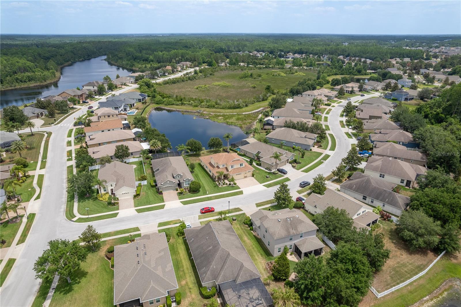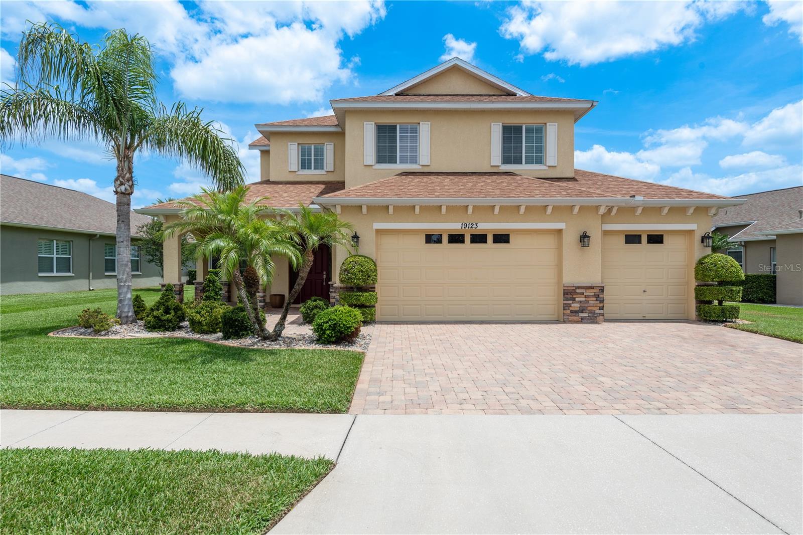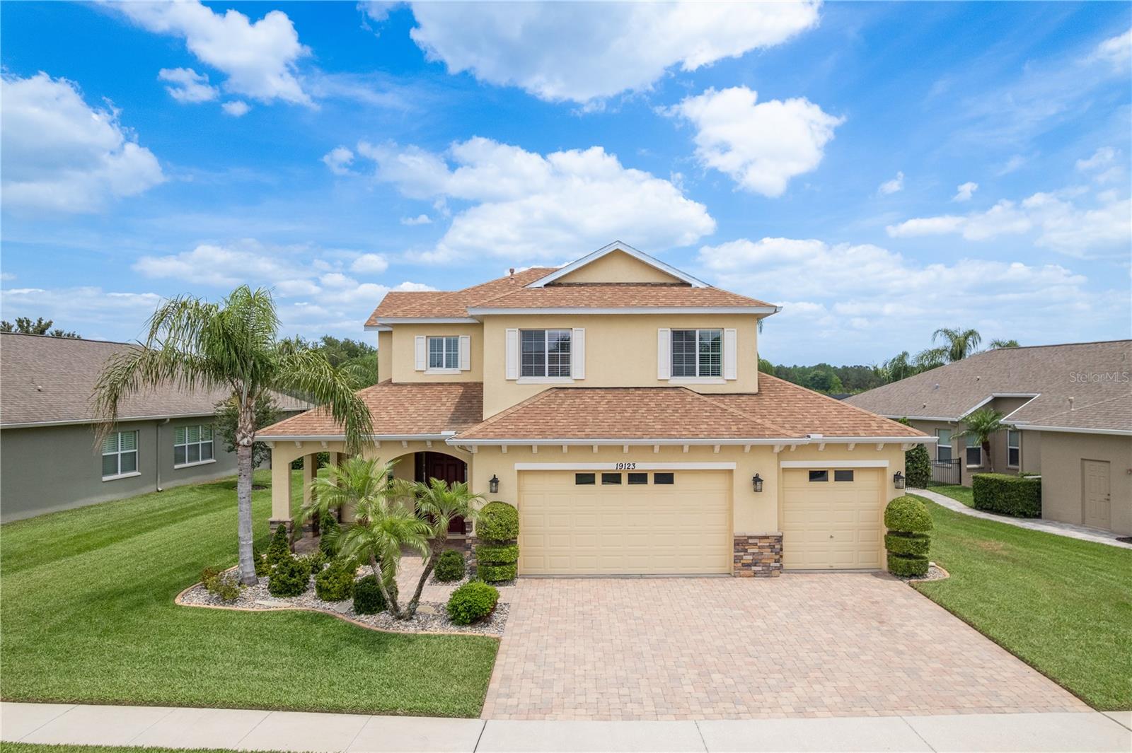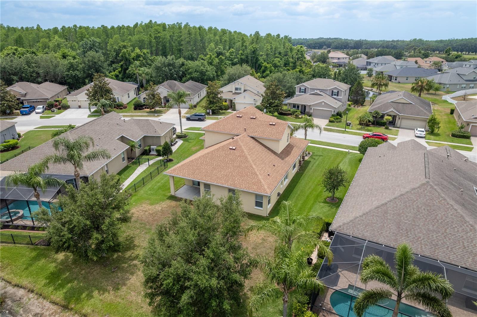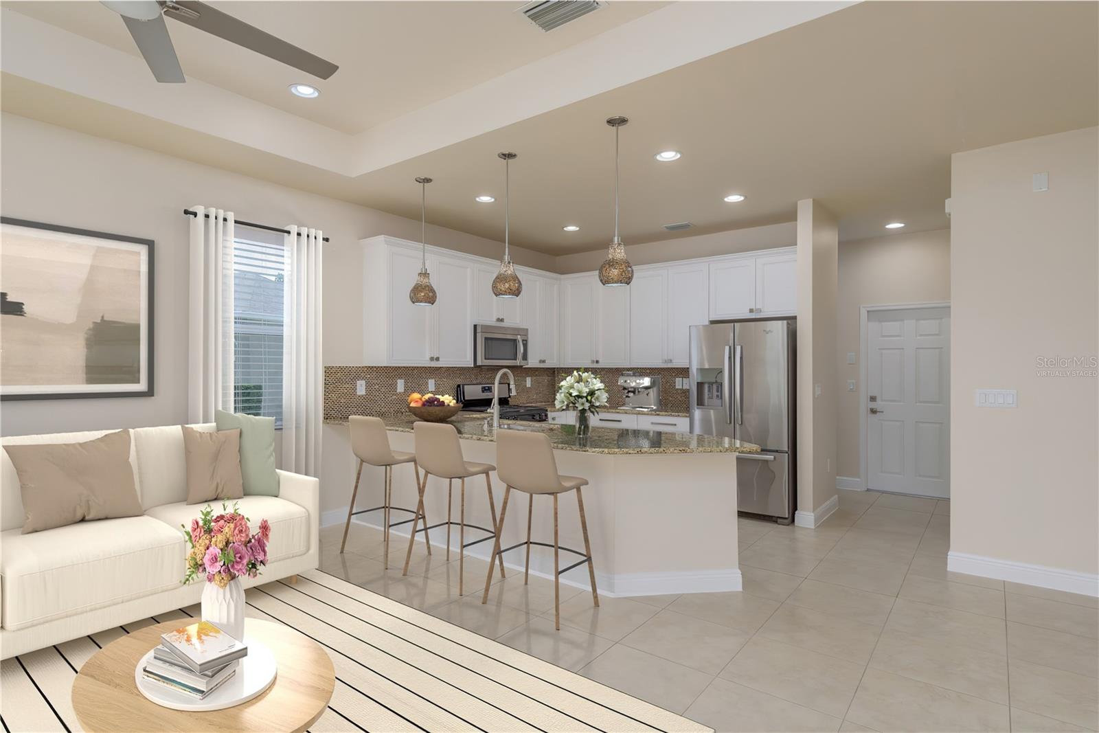 One or more photo(s) has been virtually staged. Explore Endless Possibilities in This Thoughtfully Designed Home. Step into a meticulously maintained four-bedroom, two-and-a-half-bathroom residence that blends flexibility, functionality, and fresh updates to suit your lifestyle. With fresh interior paint throughout, a new water heater installed in December 2024, and a new water softener added in April 2025, this home is ready for move-in and designed for comfort. On the first floor, enjoy a formal living room and dining room, both adaptable spaces that cater to your needs. The dining room features two pocket sliding doors, making it ideal for a private office. Meanwhile, the living room can easily transform into a secondary dining area or a cozy sitting space. The primary suite is also located on the first floor, offering a luxurious ensuite and serene pond views through sliding glass doors. Upstairs, you’ll find brand-new carpet throughout three spacious bedrooms and a dedicated office, perfect for remote work or study. One of the bedrooms is generously sized and can be reimagined as a bonus room for entertainment, play, or added privacy. At the heart of the home, an open-concept layout connects the kitchen, dining area, family room, and your choice of living or dining space. Sliding doors in both the family room and primary bedroom frame tranquil views of the large pond, creating a peaceful backdrop for everyday living. Outside, a sprawling backyard offers ample space for outdoor activities or the potential to add a custom pool. A three-car garage provides abundant storage and convenience. Community Highlights: This vibrant, 24-hour gated community features a multi-million-dollar clubhouse with top-tier amenities: • Three swimming pools: resort-style, heated lap, and kiddie pool • 24-hour fitness center, massage room, billiards, and ping-pong area • Basketball court, tennis/pickleball courts, fishing dock, and amphitheater playground • Dedicated dog park and year-round community events HOA fees include cable and high-speed internet. Mailboxes are conveniently located inside the clubhouse for secure, anytime access. Whether you're seeking a peaceful retreat, a flexible layout for work and play, or a vibrant community lifestyle, this home invites you to imagine the possibilities. Schedule your showing today and experience the potential firsthand!