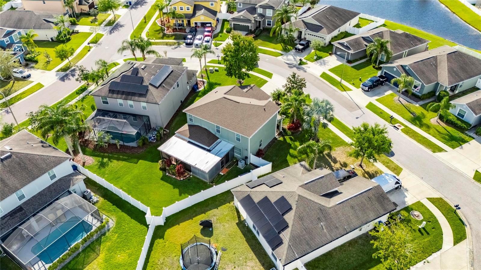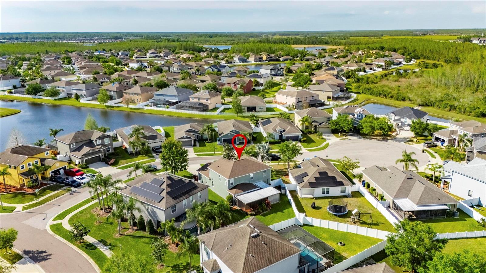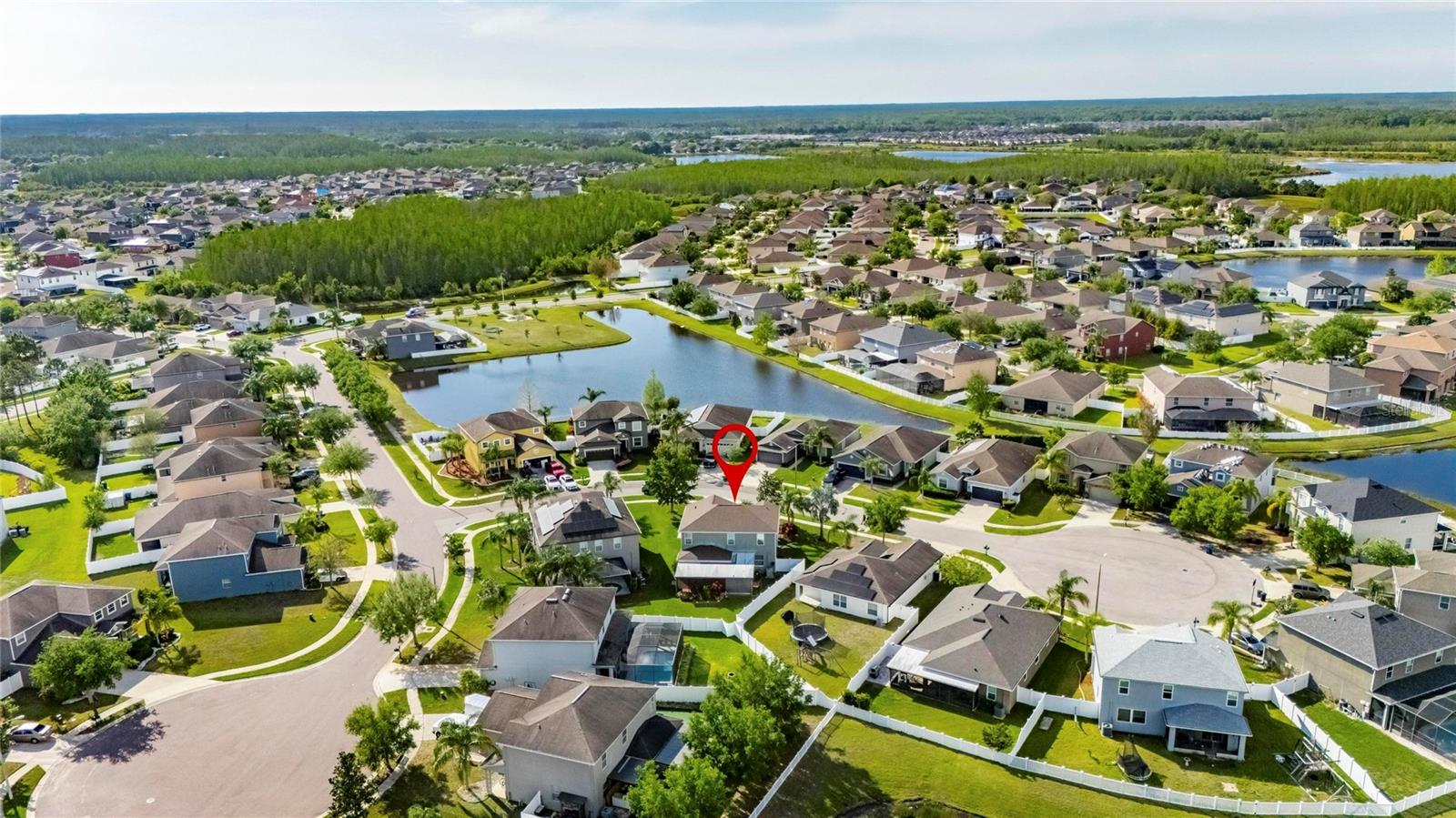 The only Lennar Model like this with sooo many extra features! On an oversized, pie-shaped, partially fenced 65-foot-wide lot measuring 9,060 S/F. Superb amenities and at the community clubhouse, pool and cabana, but if you want to install a pool, you have plenty of space! The home features five (5) bedrooms, and three (3) full baths (one downstairs that has a bidet seat attachment). The stairs and entire upstairs are accentuated by the wood-modeled LVP flooring, as does the 1st floor bedroom. This is a SMART HOME with: an ECOBEE WiFi smart thermostat; AMCREST WiFi video doorbell; HD SOLAR PTZ camera; WiFi hornbill electronic front door lock; and WiFi garage door opener. All SMART COMPONENTS are Subscription free! USB outlets have been installed on both floors, and the remote thermostat can be controlled from your cell phone. Motion-sensor camera in front. The first floor has 18’X18” ceramic-tile floors except for the LVP bedroom (perfect for visiting or live-in assistance-required parents or guests). The house comes with temperature sensors on both floors, that allow you to make the necessary adjustments before you get home. The KITCHEN has pendant lights, granite countertops, new disposal, faucet, and a stainless steel appliances including a 3-door refrigerator. Also a dishwasher, range and electric cooktop! Granite countertop serves as a great breakfast bar in front of the sink, and plenty of counter space along the walls for smaller appliances. The 36” raised- panel, gourmet-staggered maple cabinets add a certain elegance above the granite countertops! The MASTER BR is upstairs and has “His and HER (walk-in)” closets. The master bath is very well appointed with a large oval, roman tub, separate glass enclosed shower stall, granite double sink and a separate water closet! The other three bedrooms are across the hall, separated by the bathroom and an extra space at the top of the stairs previously occupying the library shelves. There are ceiling fans in all five bedrooms, family room and the extended, screened patio. The PATIO comes with an extra refrigerator and an almost new (used maybe 10 times) 64-jet hot tub that also comes with the special privacy screening in the corner to obscure viewing from outside. The home includes gutters and a Rain Bird sprinkler system. There are Double Pane Low “E” windows, a 3-yr old Water Heater, Radiant Barrier roof decking over the patio extension, 15-Seer A/C unit and a NEW ROOF (July 2024) replaced before the two hurricanes, Helene & Milton. Outstanding opportunity waiting for immediate occupancy! Oakstead Elementary, Charles S. Rushe Middle School, and Sunlake High School, all received “A” School Ratings! This is a solid foundation upon which to raise your family! Close to 275, 75, and 20 minutes to Hwy I-4, seven minutes to Veteran's Hwy, Close to Tampa, YBOR City, 25 minutes to the airport.