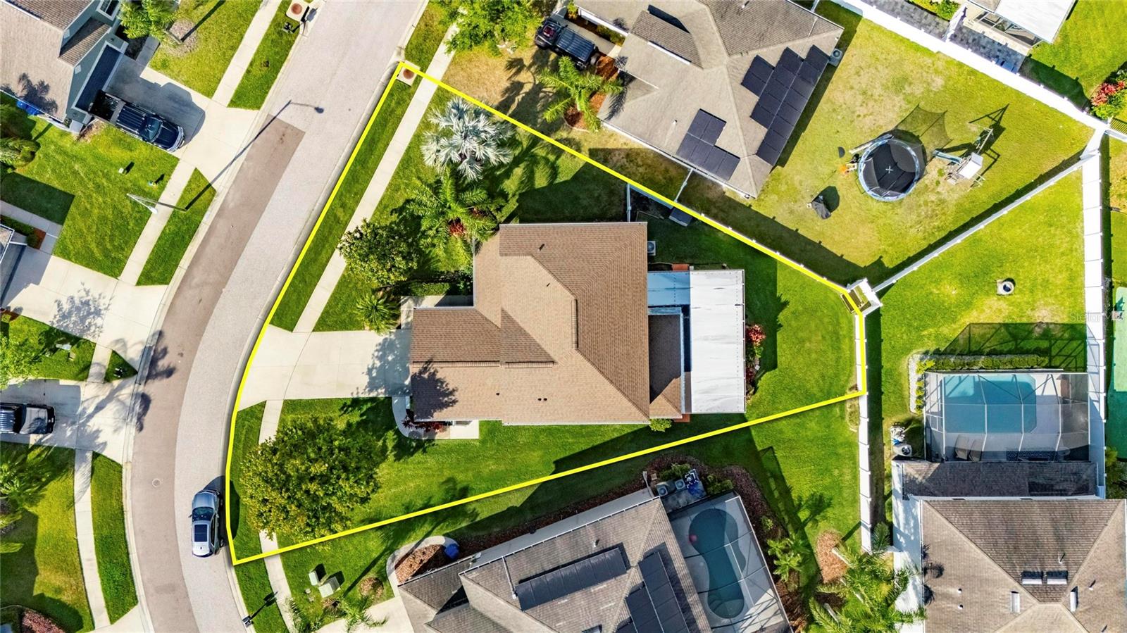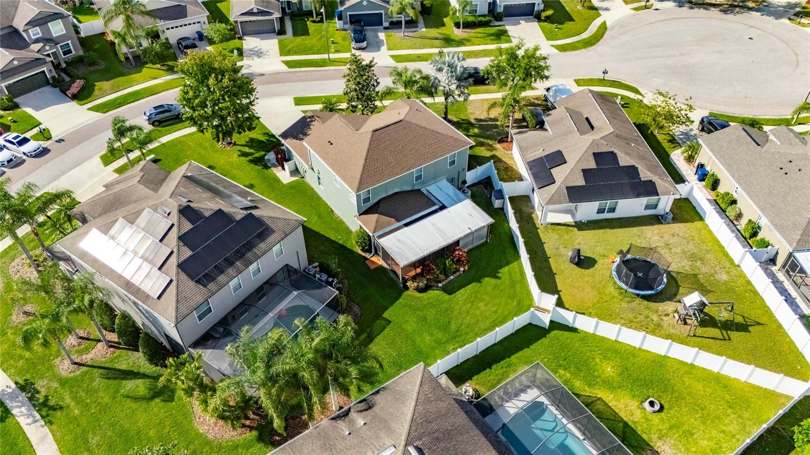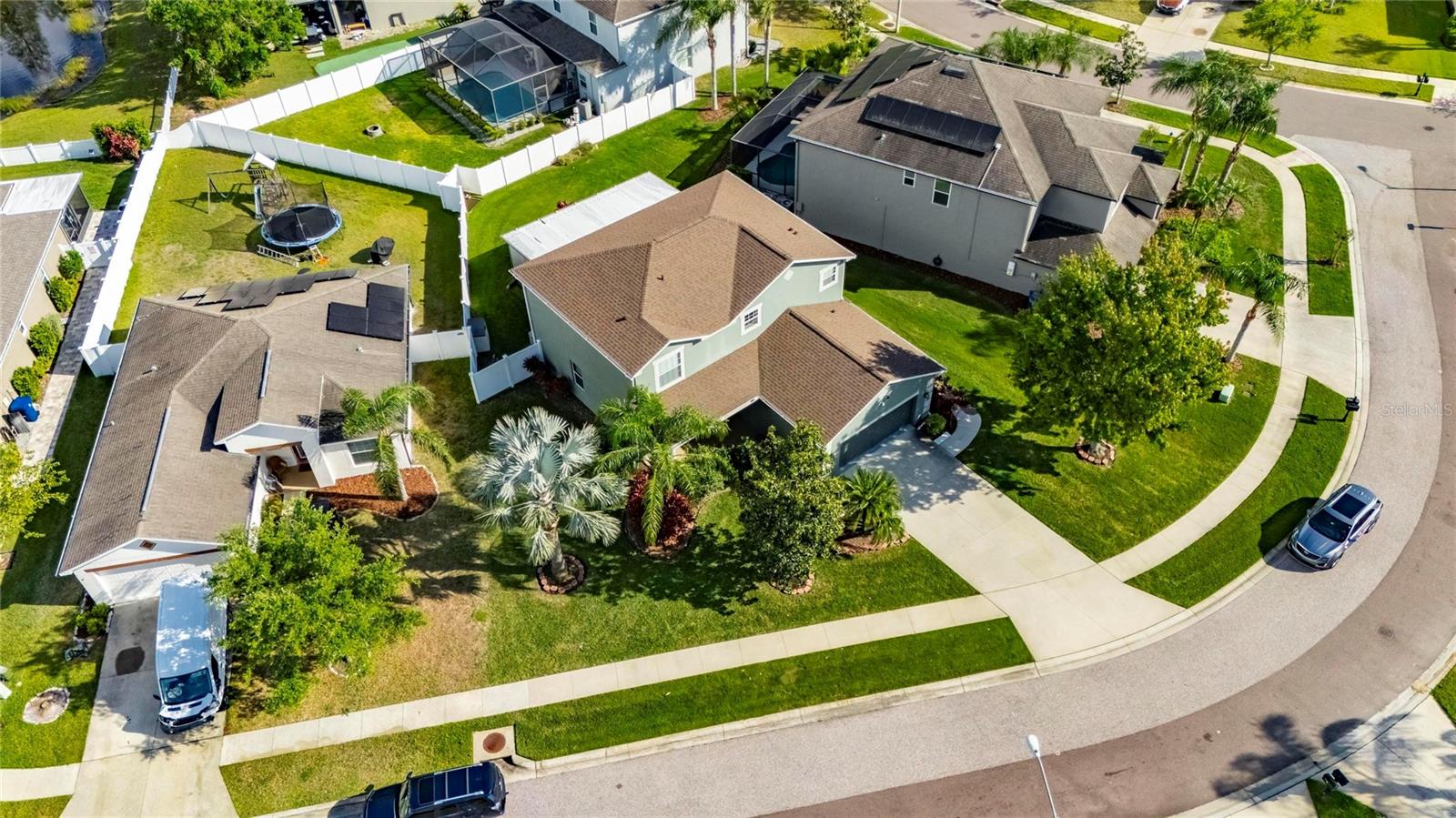 The only Lennar Model like this with sooo many extra features! On an oversized, pie-shaped, partially fenced 65-foot-wide lot measuring 9,060 S/F. Superb amenities and at the community clubhouse, pool and cabana, but if you want to install a pool, you have plenty of space! The home features five (5) bedrooms, and three (3) full baths (one downstairs that has a bidet seat attachment). The stairs and entire upstairs are accentuated by the wood-modeled LVP flooring, as does the 1st floor bedroom. This is a SMART HOME with: an ECOBEE WiFi smart thermostat; AMCREST WiFi video doorbell; HD SOLAR PTZ camera; WiFi hornbill electronic front door lock; and WiFi garage door opener. All SMART COMPONENTS are Subscription free! USB outlets have been installed on both floors, and the remote thermostat can be controlled from your cell phone. Motion-sensor camera in front. The first floor has 18’X18” ceramic-tile floors except for the LVP bedroom (perfect for visiting or live-in assistance-required parents or guests). The house comes with temperature sensors on both floors, that allow you to make the necessary adjustments before you get home. The KITCHEN has pendant lights, granite countertops, new disposal, faucet, and a stainless steel appliances including a 3-door refrigerator. Also a dishwasher, range and electric cooktop! Granite countertop serves as a great breakfast bar in front of the sink, and plenty of counter space along the walls for smaller appliances. The 36” raised- panel, gourmet-staggered maple cabinets add a certain elegance above the granite countertops! The MASTER BR is upstairs and has “His and HER (walk-in)” closets. The master bath is very well appointed with a large oval, roman tub, separate glass enclosed shower stall, granite double sink and a separate water closet! The other three bedrooms are across the hall, separated by the bathroom and an extra space at the top of the stairs previously occupying the library shelves. There are ceiling fans in all five bedrooms, family room and the extended, screened patio. The PATIO comes with an extra refrigerator and an almost new (used maybe 10 times) 64-jet hot tub that also comes with the special privacy screening in the corner to obscure viewing from outside. The home includes gutters and a Rain Bird sprinkler system. There are Double Pane Low “E” windows, a 3-yr old Water Heater, Radiant Barrier roof decking over the patio extension, 15-Seer A/C unit and a NEW ROOF (July 2024) replaced before the two hurricanes, Helene & Milton. Outstanding opportunity waiting for immediate occupancy! Oakstead Elementary, Charles S. Rushe Middle School, and Sunlake High School, all received “A” School Ratings! This is a solid foundation upon which to raise your family! Close to 275, 75, and 20 minutes to Hwy I-4, seven minutes to Veteran's Hwy, Close to Tampa, YBOR City, 25 minutes to the airport.