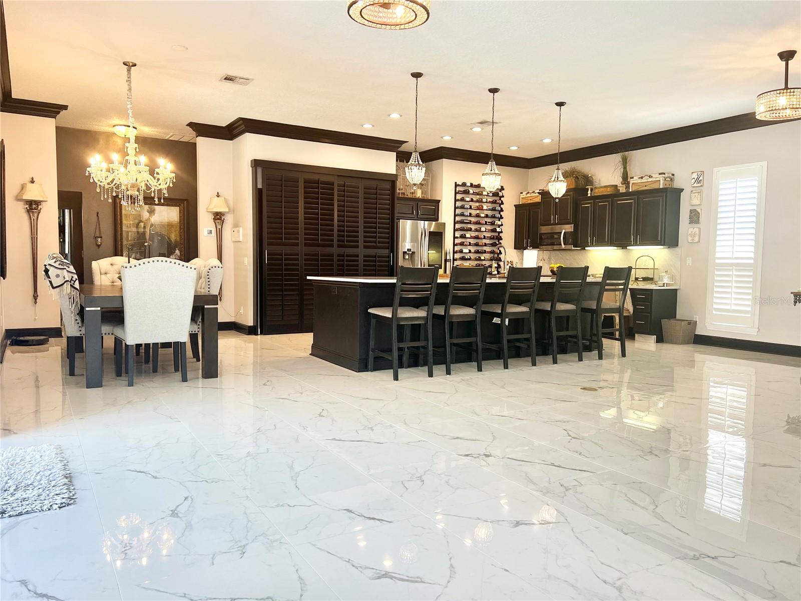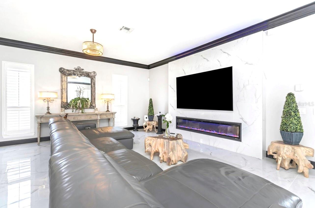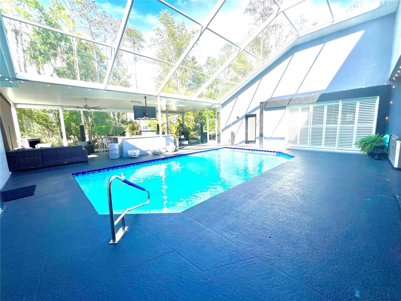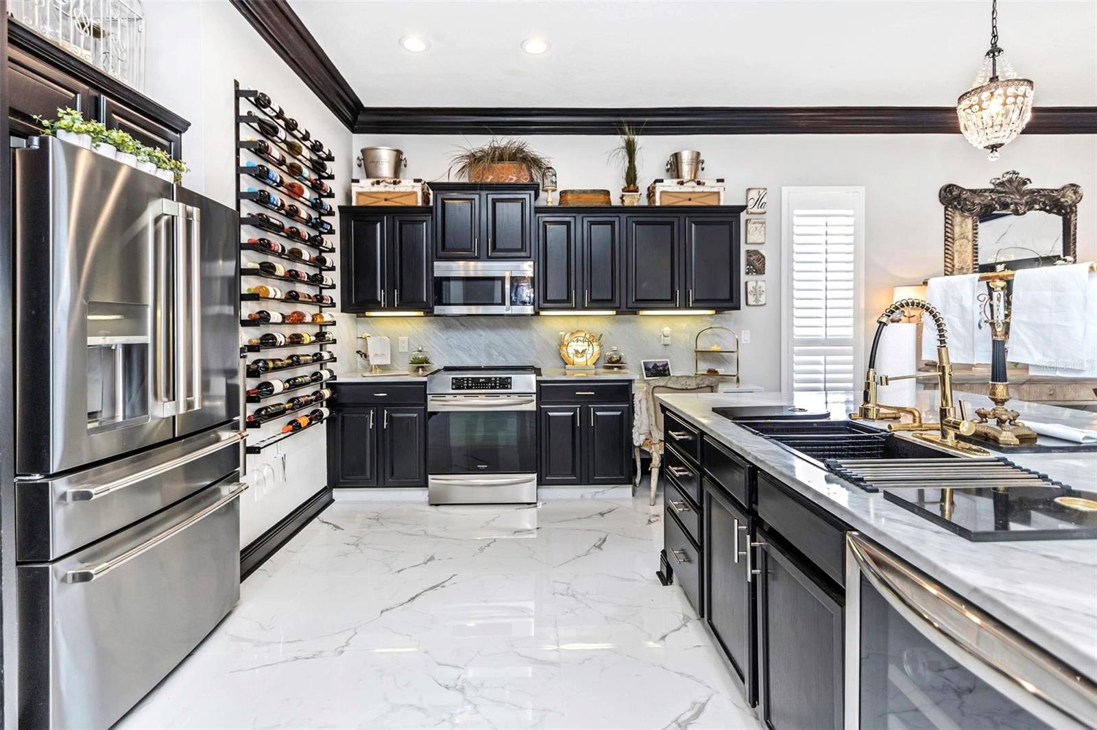 Luxurious Living in a Hybrid Community -- Discover the perfect balance of privacy and community in this exquisite 3,400+ sq. ft. home on a .76-acre corner lot in a gated community. The stunning residence backs up to a serene conservation area with a small year-round creek, this home offers tranquility, security, and freedom. The layout includes 4 bedrooms and 4 full bathrooms, with one suite featuring a private entrance from the expansive screened-in patio and pool area. This retreat-style space boasts a chef’s dream outdoor kitchen and bar, offering breathtaking views of the lush preserve—ideal for entertaining or private relaxation. Inside, luxurious finishes abound. High-end polished porcelain marble tile and luxury vinyl floors span the home, complemented by custom crown molding and designer lighting, including crystal chandeliers and hidden blade ceiling fans. The open-concept living, dining, and kitchen areas provide a seamless flow for hosting or unwinding. The gourmet kitchen boasts wide marble countertops, stainless steel appliances, a smooth surface induction range, an under-cabinet refrigerator, and a spacious pantry. Adjacent is the BUTLER’S PANTRY, leading to the SPEAKEASY BAR, where you can craft the perfect drink in a stylish setting. Entertainment reaches new heights with the CUSTOM HOME THEATER, featuring plush theater seating, a 168” screen, an Epson Laser Projector, and a Klipsch Dolby Atmos Sound System, all included. The adjoining bathroom has a Roman Shower, double vanity, back-lit mirrors, and vessel sinks. The primary suite is a sanctuary, featuring a large walk-in closet, an additional reach-in closet, and an ensuite bath with a porcelain tile accent wall, double vanity, garden tub, separate shower, and water closet. Custom plantation shutters throughout provide elegance and privacy, including on all sliding doors leading to the outdoor areas. The enclosed lanai features a resurfaced, salt-treated 21’x15’ in-ground pool with an electric heater, a new pool pump and motor, and a luxurious HotSpring SPA with lighting, a waterfall, and an insulated cover for up to seven. The outdoor kitchen, featuring the Paradise Grills Maui 10 & GX 10 Model, makes alfresco dining a delight. For added privacy, 6’ high retractable screens create an exclusive retreat. This home is equipped with 62 SOLAR PANELS, an instant recovery water heater, a NEW ROOF (2022), two NEW 4.5-ton A/C units, a third ductless A/C in the primary bedroom, and foam insulation throughout the roofline. A Generac 24K WHOLE-HOUSE GENERATOR ensures peace of mind, while an ELECTRIFY AMERICA SMART CHARGER in the spacious 3-CAR GARAGE supports EV owners. Minutes from shopping, dining, and entertainment, with easy access to I-75 and the Veteran’s Expressway. Tampa International Airport is only a 25-minute drive away. Located in an X Flood Zone with a low HOA fee and NO CDD fees, this home offers an unbeatable value. Live the life you love with the perfect blend of privacy, luxury, and community in this one-of-a-kind hybrid neighborhood home! Clothing required throughout the community except within the fenced clubhouse and pool area which is clothing optional.