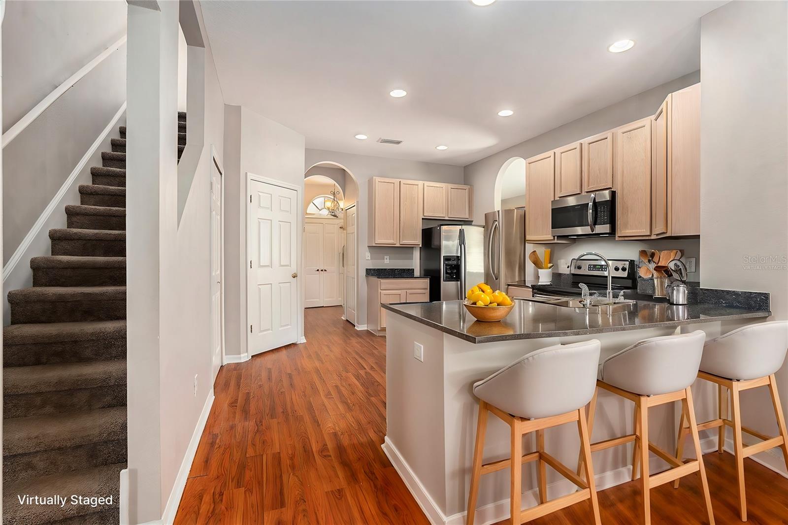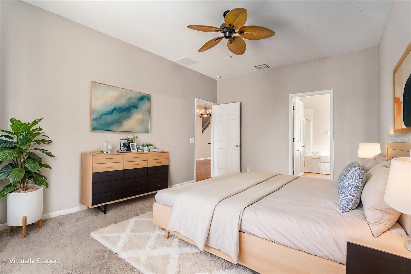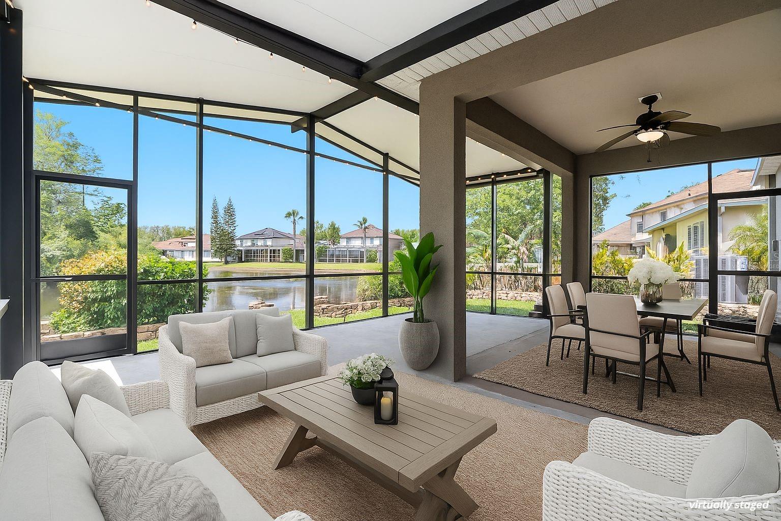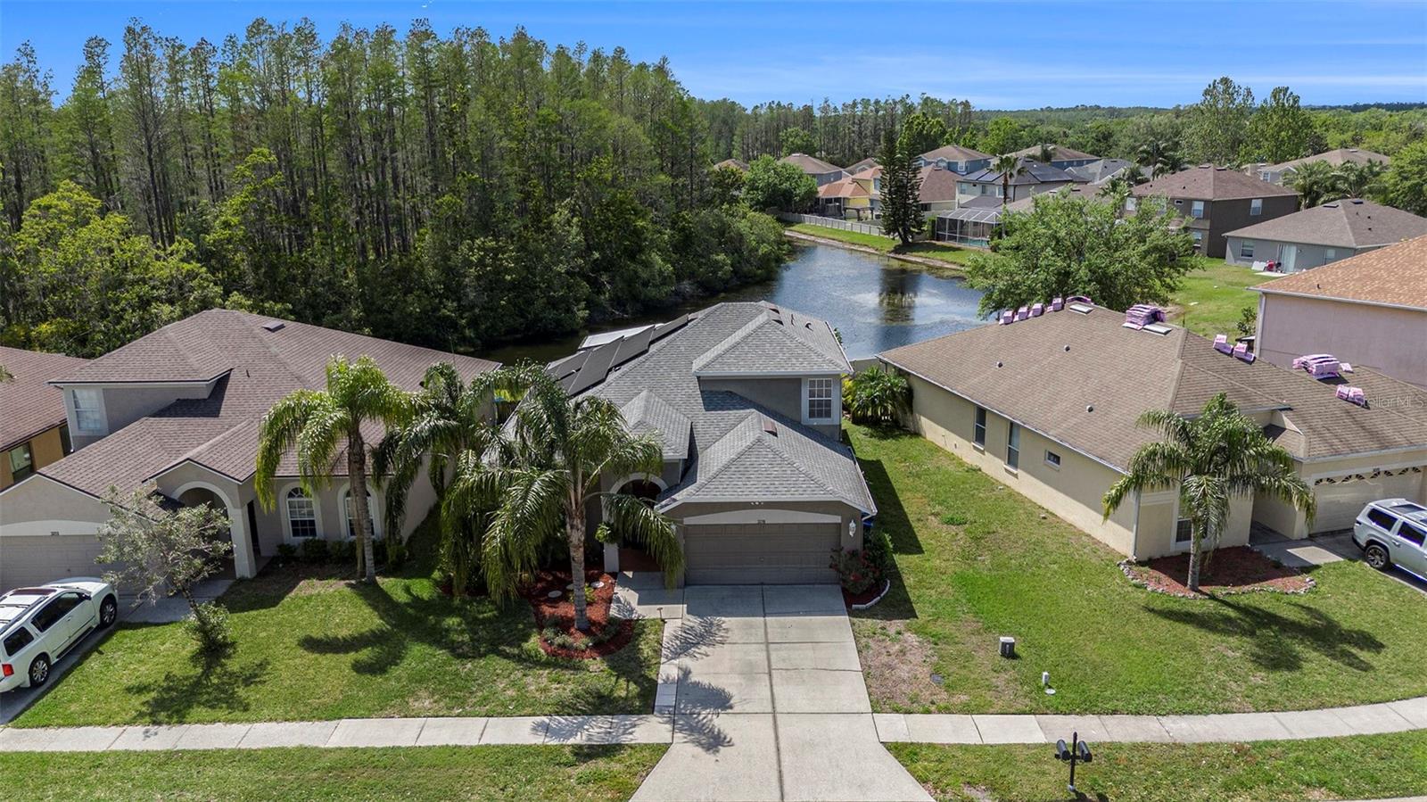 One or more photo(s) has been virtually staged. Experience Serene Living in Ballantrae Village: Your Dream Home Awaits! Discover unparalleled comfort and style in this expansive five-bedroom, three-bathroom sanctuary, nestled within the sought-after Ballantrae Village community. This home seamlessly blends functionality with modern elegance, boasting energy-efficient features and breathtaking pond vistas. Step inside to find a welcoming formal living and dining area, perfect for entertaining, which gracefully flows into an open-concept kitchen and great room. Culinary enthusiasts will adore the kitchen, featuring sleek stone countertops, stainless steel appliances, and abundant cabinet space for all your culinary creations. Retreat to the luxurious primary suite, a true haven of relaxation, complete with a generous walk-in closet and a spa-like five-piece en-suite bathroom. Two additional well-appointed bedrooms and a full bathroom are conveniently located on the main level, offering privacy and comfort. Ascend to the versatile upstairs loft, a flexible space designed for entertainment and relaxation. This area includes a convenient wet bar with a fridge, a full bathroom, and a spacious additional bedroom – perfect for guests, a home office, or a media room. Embrace sustainable living with the home's efficient solar panels, reducing your carbon footprint and energy costs. Enjoy the convenience of an indoor laundry room and a two-car garage, providing ample storage and practicality. Step outside to your private backyard oasis, where tranquil pond views create a serene backdrop for outdoor enjoyment. Ballantrae Village offers more than just a home; it's a lifestyle. Enjoy low HOA fees and a wealth of resort-style amenities, including a sparkling community pool, clubhouse, park, basketball courts, tennis courts, beach volleyball, and scenic biking/running trails. With shopping, dining, and major highways just minutes away, convenience and leisure are always within reach. Don’t miss the opportunity to make this exceptional property your own. Schedule your private showing today and begin your next chapter in Ballantrae Village!