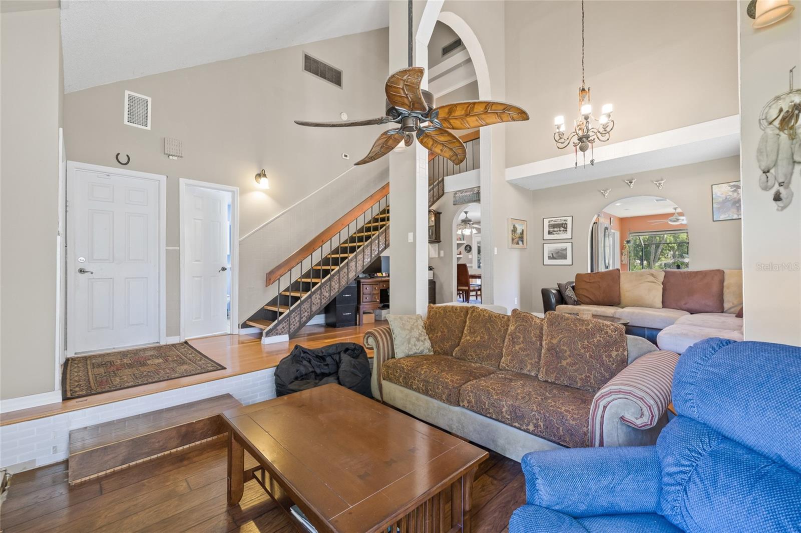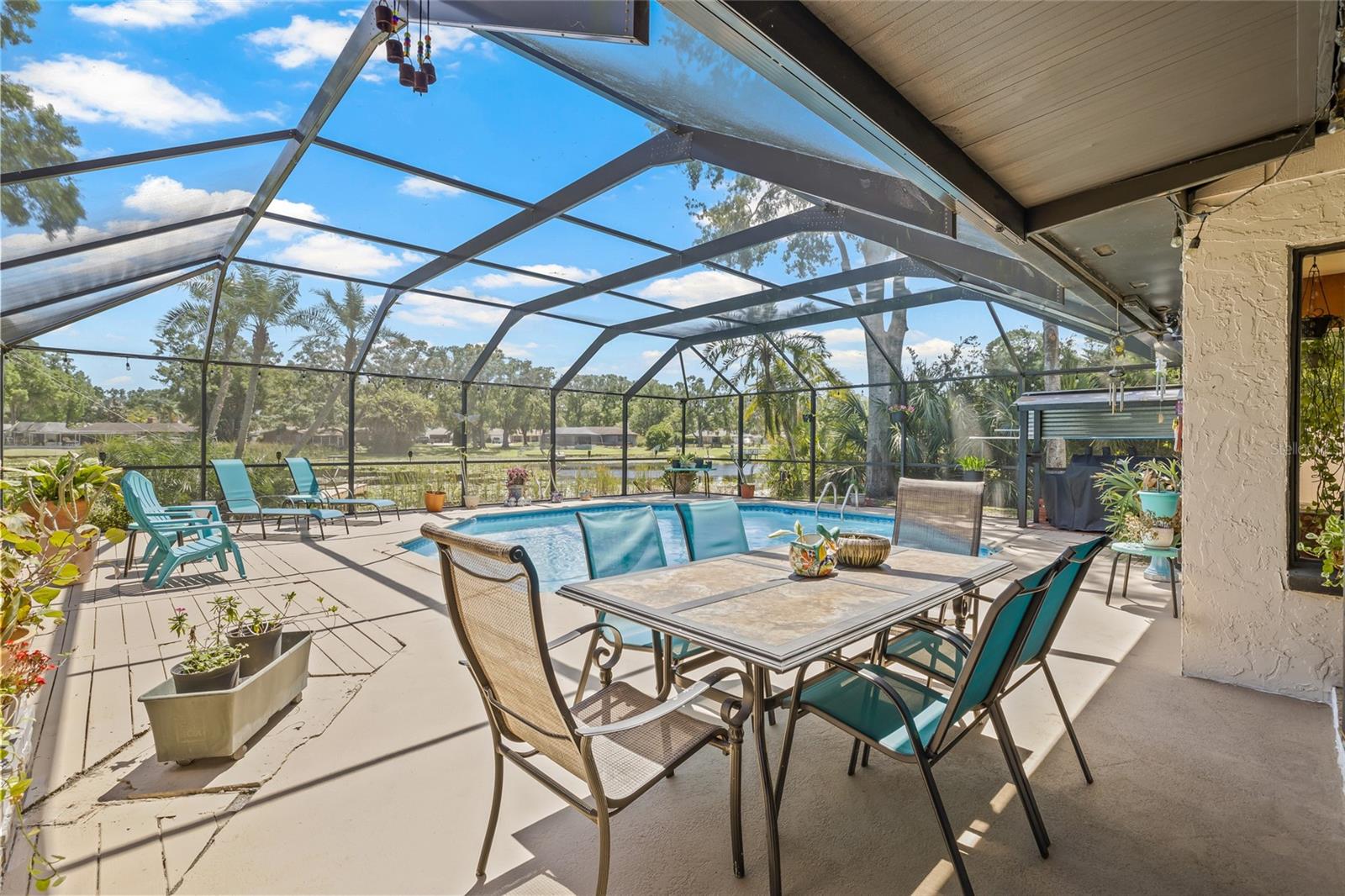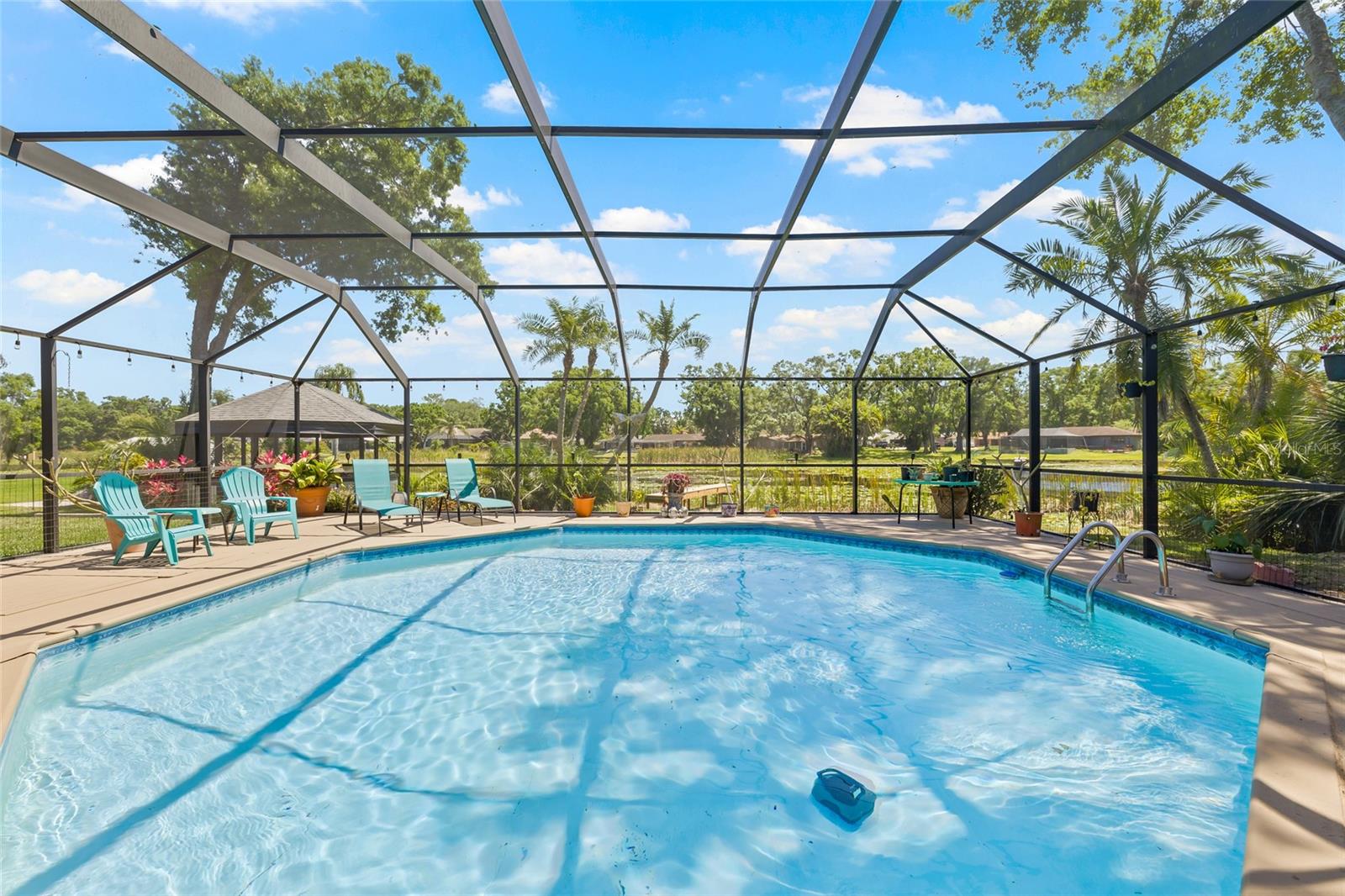 Lakefront Living in Lake Padgett Estates! Welcome to your dream retreat in the heart of Lake Padgett Estates! This beautifully maintained 4-bedroom, 2.5-bath home sits on a serene .47-acre lot, offering stunning lake views, generous space, and a lifestyle that blends comfort with resort-style living. The master bedroom is conveniently located on the main floor, while three additional bedrooms upstairs with plenty of room for family or guests. The inviting sunken living room features a wood-burning fireplace, creating a warm and cozy atmosphere. Enjoy breathtaking sun rises from your second-floor balcony overlooking an 18-acre lake, large kitchen picture windows or take a dip in your in-ground vinyl lined pool just steps from the water. A charming gazebo sits right on the lakefront, perfect for morning coffee or peaceful evenings. Key Features: 2 Car garage, 22kW Generac generator with automatic transfer switch, Newer septic field & newer roof, Walk-in attic for ample storage. Located in a golf cart-friendly neighborhood with festive parades and community spirit, 3 ski Lakes and 5 parks. Access to horse stables. Close to the Premium Outlets, I-75. Lake Padgett Estates offers a unique blend of tranquility and active lifestyle amenities, no HOA— and this home is your chance to enjoy it all.