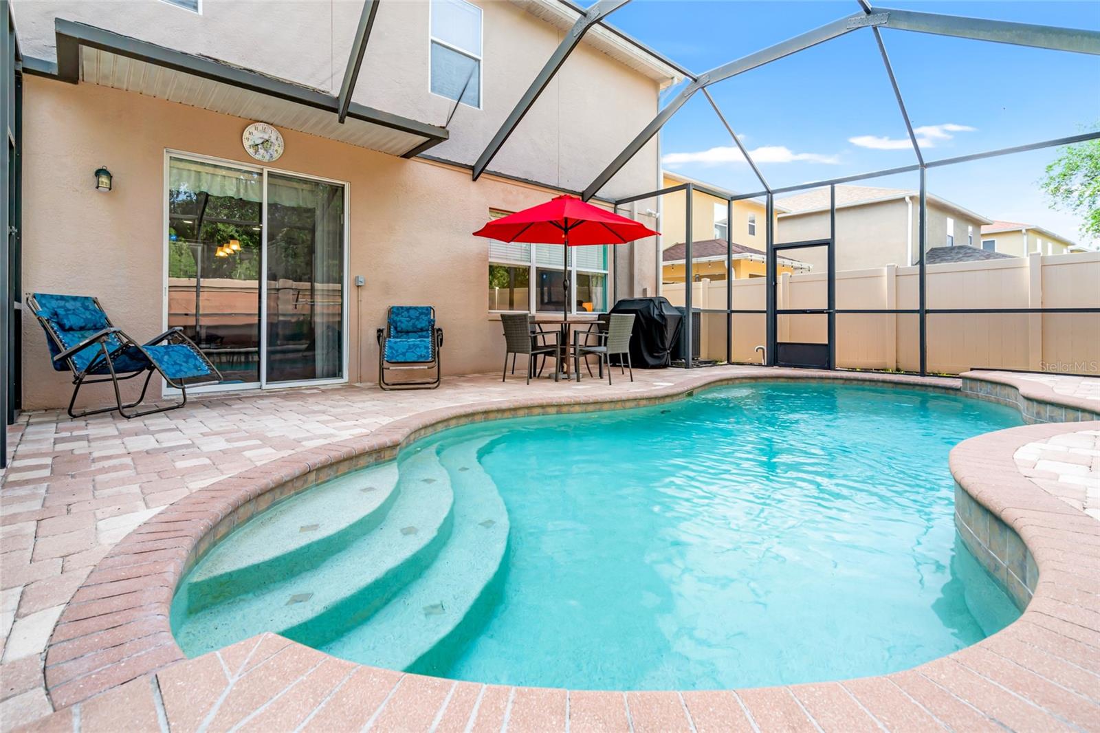 **PRICE IMPROVEMENT** **MOTIVATED SELLER** Here is your chance to get the BEST VALUE in the desirable community of Ballantre with this AMAZING POOL HOME that has been updated from top to bottom! Pulling up to this two-story home, you’ll immediately note the great curb appeal with recently refreshed landscaping. Once inside, you are greeted by NEW luxury vinyl plank flooring throughout the entire first floor. There is a LARGE formal dining room with a beautiful built-in wine center, and an UPDATED half-bath. This WONDERFUL OPEN FLOOR PLAN has a HUGE great room that leads to an UPDATED KITCHEN with plenty of counter space to prepare your favorite meals, with NEW QUARTZ countertops, updated cabinetry, dual oven, & newer appliances. Outside the sliding glass doors is your spacious two story screened-in lanai with pavers AND a salt-water pool that will keep you cool, tanned & refreshed! Outside the lanai, there is a fenced yard space for pets, children, gardening, or a fire pit. Back inside on the second floor, all carpet has been removed and replaced with beautiful oak wood floors. You’ll have a really nice bonus space/loft that works perfectly as a home office, exercise space, or sitting room. The owner’s retreat is spacious with a HUMONGOUS walk in closet that has a custom organization system! The ensuite bathroom has been updated with quartz countertops, dual vanities, and new waterproof luxury vinyl plank. The guest bathroom has also been UPDATED with quartz countertops. The two secondary bedrooms are generously sized with built in closet systems. The two car garage has SIGNIFICANT storage shelving that conveys, a work bench, and a whole house water softener & filtration system that comes with a lifetime warranty. Updates: Kitchen Remodel (2025), Primary Bathroom Remodel (2025), New Roof (2024), New Vinyl Fence (2024), New Flooring (2024 & 2025), Microwave (2024), Closet Organization System (2024), Refrigerator (2023), Hot Water Heater (2023), New Sod (2023), Pool Pump & Salt System (2021), Dishwasher (2019), Water Filtration System (2016). Ballantrae, located just north of State Road 54, is a fabulous neighborhood that offers upgraded cable TV, a community pool with splash pad, basketball & tennis courts, sand volleyball, playgrounds, and lots of shaded paths for a jog or walk. An IDEAL location in Land O' Lakes, you are close to great schools, restaurants, shopping, medical facilities, places of worship, and the Suncoast Parkway/Veterans Expressway. Don't miss out on this gem, make your appointment to tour TODAY!