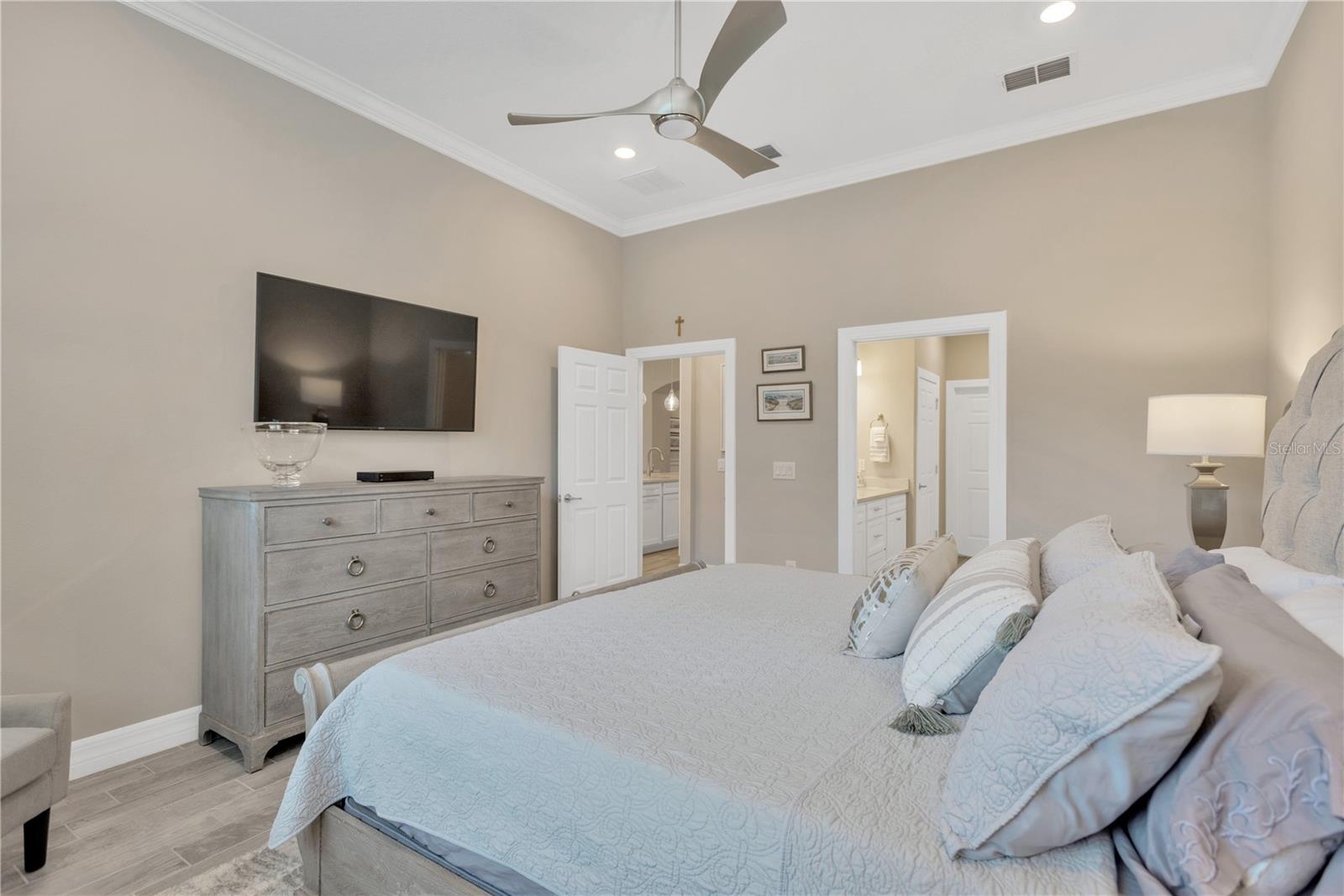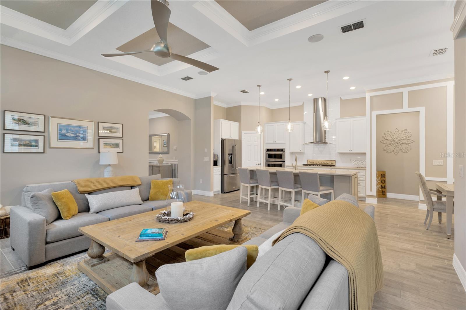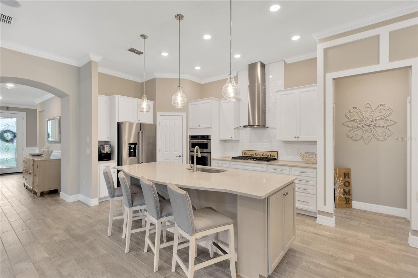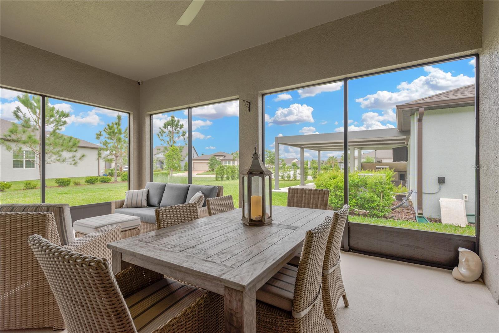 Welcome to Del Webb Bexley, a premier 55+ gated active lifestyle community located in the heart of Land O’ Lakes just minutes from top-rated shopping, dining, and the beautiful beaches along Florida’s West Coast. Built in 2021 by Pulte Homes, this meticulously maintained Summerwood model offers 2,020 square feet of thoughtfully designed living space, blending modern luxury, high-end finishes, and exceptional craftsmanship throughout. From the moment you arrive, you’ll be captivated by the home’s pristine curb appeal, featuring manicured landscaping and a sealed paver driveway. Step inside to discover an open-concept floor plan filled with natural light and adorned with elegant touches including tile flooring throughout, crown molding, plantation shutters, and custom Fanimation ceiling fans. The gourmet kitchen is a chef’s dream, complete with quartz countertops, soft-close cabinetry with pull-out shelves, under-island storage, a spacious walk-in pantry, and top-of-the-line KitchenAid stainless steel appliances including a gas range, built-in oven, and microwave. A large dining area flows seamlessly into the main living space, making it perfect for entertaining. The primary suite offers a peaceful retreat with a walk-in California closet upgrade and a luxurious en-suite bathroom featuring dual vanities with pull-out drawers and a large walk-in shower. The home also includes a spacious second bedroom and guest bath, a third bedroom, and a bonus room that adds flexibility for use as a home office, den, or creative space. The two-car garage includes an additional and features sleek epoxy flooring. The fully equipped laundry room for everyday convenience. Additional upgrades include a central vacuum system, overhead living room speakers, three outdoor security cameras , gas grill ready and an attached bookshelf that conveys with the property. Outdoor living is elevated by a spacious screened-in lanai overlooking a serene pond perfect for enjoying peaceful mornings, colorful sunsets, and the tranquility of Florida living. Residents of Del Webb Bexley enjoy access to an impressive array of resort-style amenities, including a heated pool with lap lanes, resistance pool and spa, walking trails, pickleball, bocce and tennis courts, a dog park, and a community garden. A full-time lifestyle director curates a robust calendar of fitness classes, social events, and group activities. With lawn maintenance included through the HOA, this is true low-maintenance living at its finest. This exceptional home offers the perfect blend of luxury, comfort, and community. Don’t miss your opportunity to own this stunning pond view property and schedule your private showing today, as homes like this don’t stay on the market for long!