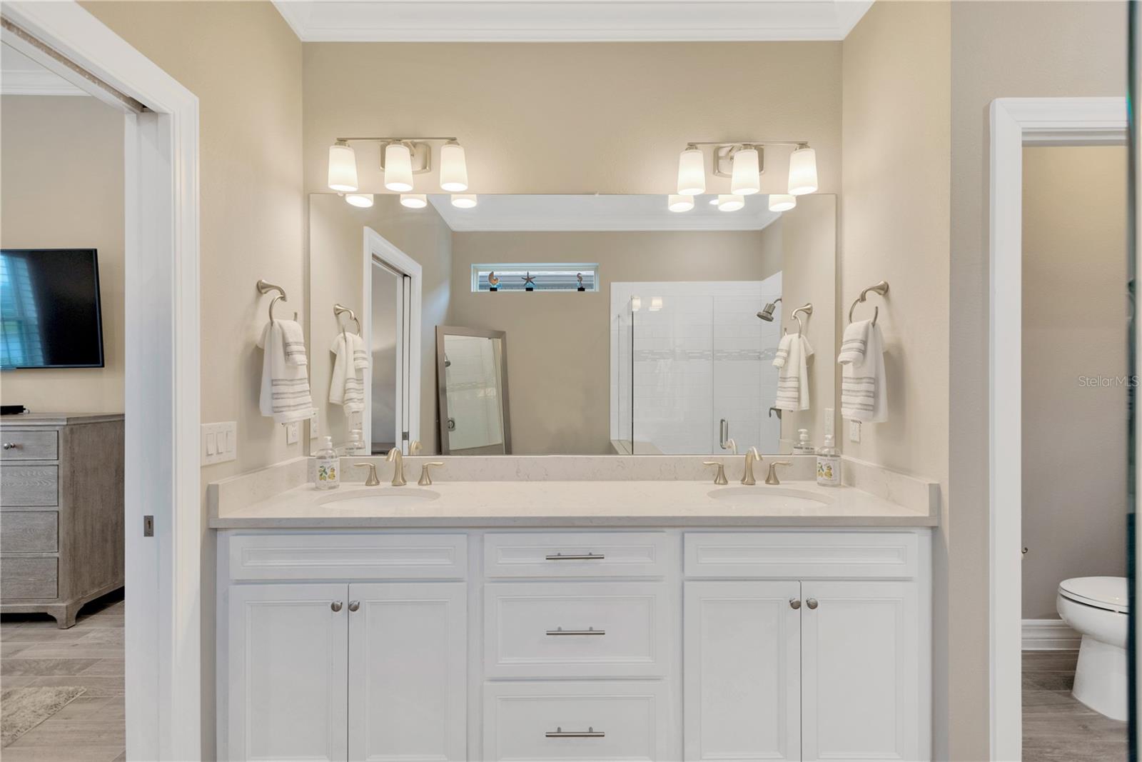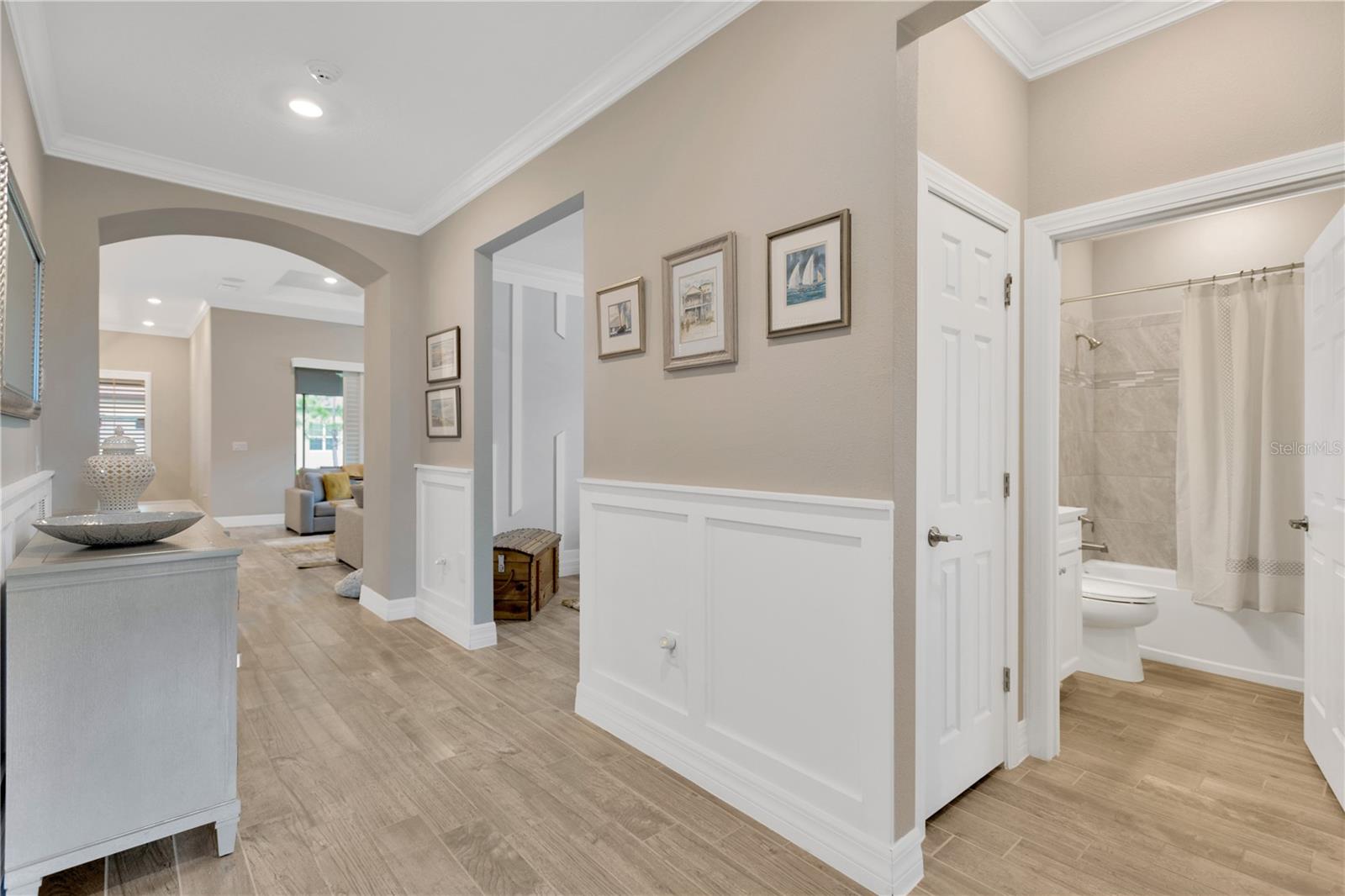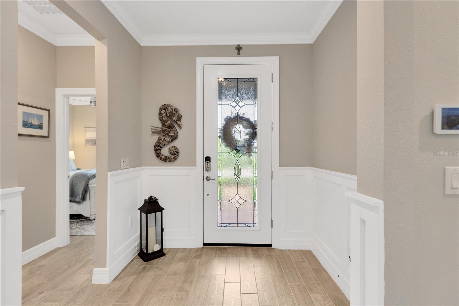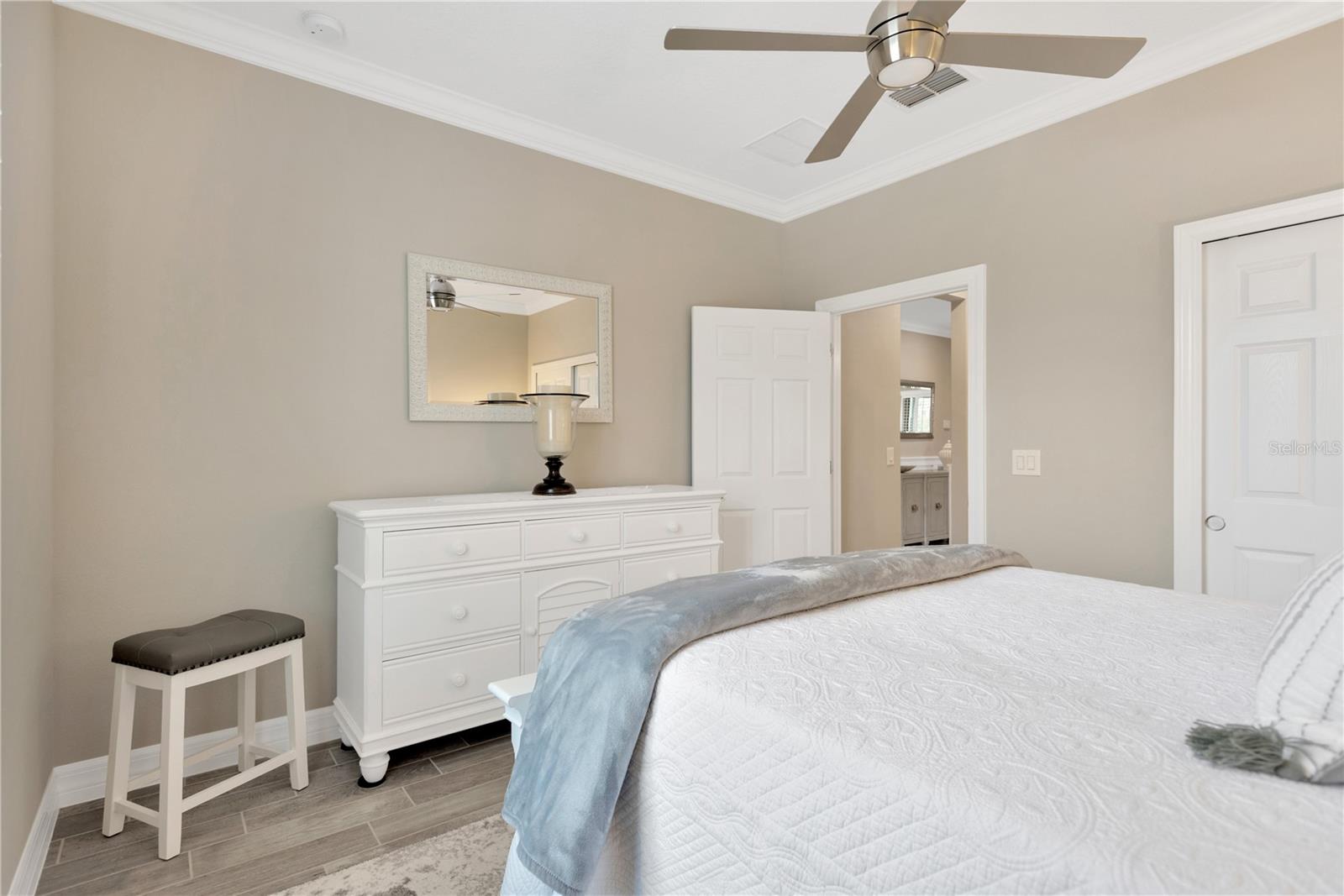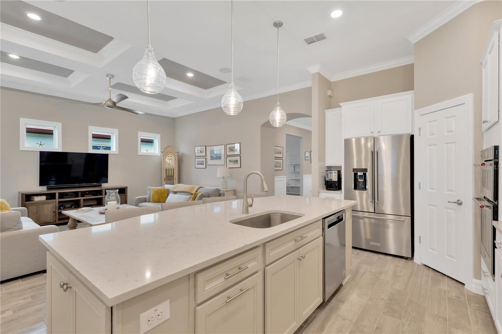 Welcome to Del Webb Bexley, a premier 55+ gated active lifestyle community located in the heart of Land O’ Lakes just minutes from top-rated shopping, dining, and the beautiful beaches along Florida’s West Coast. Built in 2021 by Pulte Homes, this meticulously maintained Summerwood model offers 2,020 square feet of thoughtfully designed living space, blending modern luxury, high-end finishes, and exceptional craftsmanship throughout. From the moment you arrive, you’ll be captivated by the home’s pristine curb appeal, featuring manicured landscaping and a sealed paver driveway. Step inside to discover an open-concept floor plan filled with natural light and adorned with elegant touches including tile flooring throughout, crown molding, plantation shutters, and custom Fanimation ceiling fans. The gourmet kitchen is a chef’s dream, complete with quartz countertops, soft-close cabinetry with pull-out shelves, under-island storage, a spacious walk-in pantry, and top-of-the-line KitchenAid stainless steel appliances including a gas range, built-in oven, and microwave. A large dining area flows seamlessly into the main living space, making it perfect for entertaining. The primary suite offers a peaceful retreat with a walk-in California closet upgrade and a luxurious en-suite bathroom featuring dual vanities with pull-out drawers and a large walk-in shower. The home also includes a spacious second bedroom and guest bath, a third bedroom, and a bonus room that adds flexibility for use as a home office, den, or creative space. The two-car garage includes an additional and features sleek epoxy flooring. The fully equipped laundry room for everyday convenience. Additional upgrades include a central vacuum system, overhead living room speakers, three outdoor security cameras , gas grill ready and an attached bookshelf that conveys with the property. Outdoor living is elevated by a spacious screened-in lanai overlooking a serene pond perfect for enjoying peaceful mornings, colorful sunsets, and the tranquility of Florida living. Residents of Del Webb Bexley enjoy access to an impressive array of resort-style amenities, including a heated pool with lap lanes, resistance pool and spa, walking trails, pickleball, bocce and tennis courts, a dog park, and a community garden. A full-time lifestyle director curates a robust calendar of fitness classes, social events, and group activities. With lawn maintenance included through the HOA, this is true low-maintenance living at its finest. This exceptional home offers the perfect blend of luxury, comfort, and community. Don’t miss your opportunity to own this stunning pond view property and schedule your private showing today, as homes like this don’t stay on the market for long!