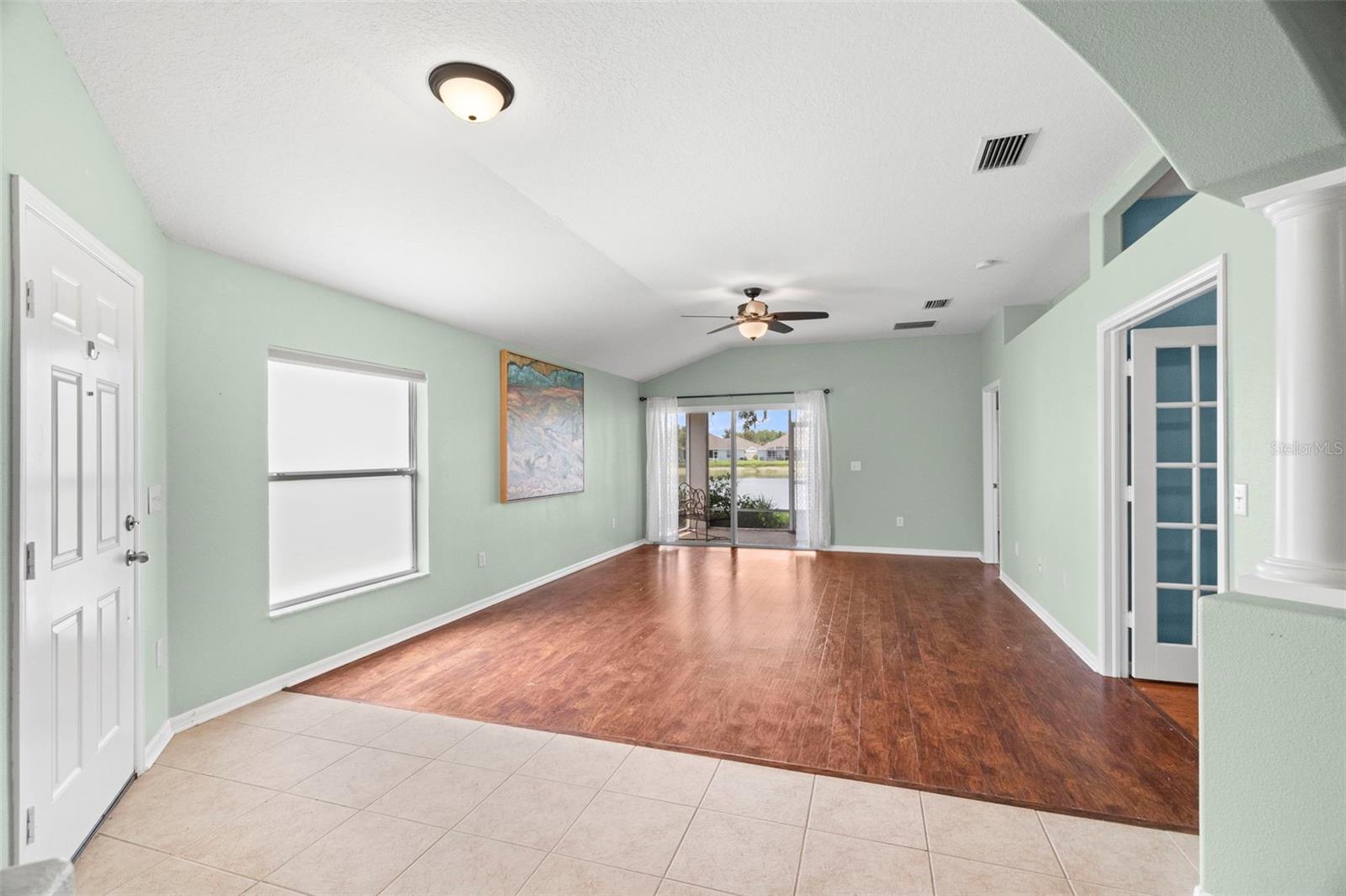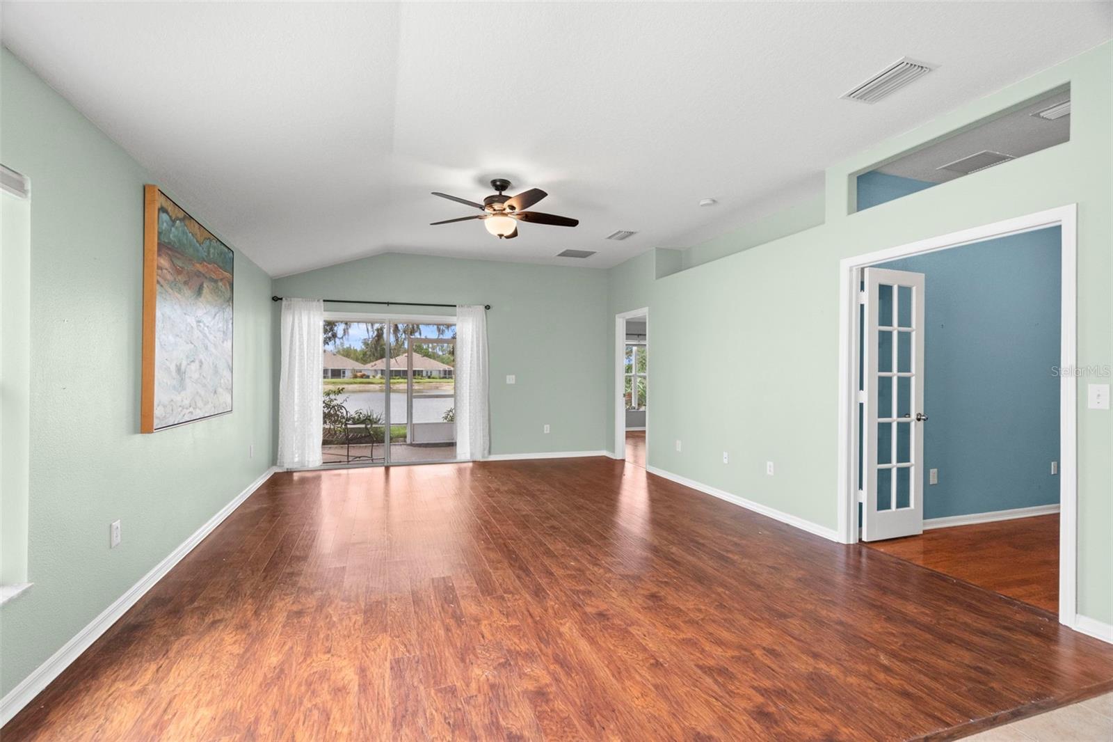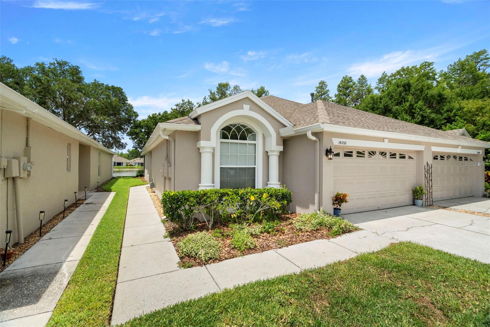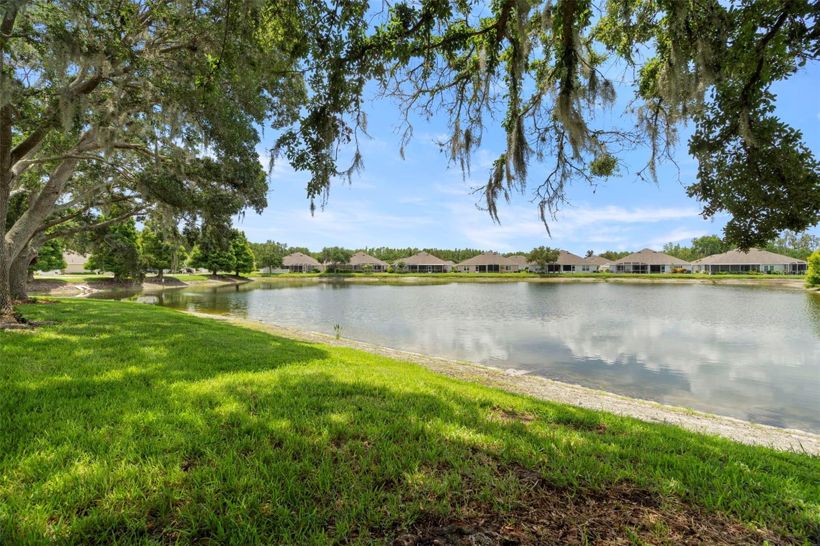 Waterfront villa with tranquil pond views- now at a reduced price! Nestled on a peaceful conservation lot with no rear neighbors, this 2-bedroom, 2-bath home also features a spacious den that can serve as a third bedroom. The open floor plan includes a bright living room, formal dining area, and gourmet kitchen with granite countertops, wood cabinets, stainless appliances, and a gas cooktop. Sliding doors lead to a screened patio overlooking a tranquil pond—perfect for relaxing or entertaining. The primary suite offers a walk-in closet, dual vanities, and oversized shower, while the guest bedroom and bath are located at the front for privacy. Enjoy maintenance-free living with HOA-covered roof, exterior paint, lawn care, and irrigation. Community amenities include a pool, tennis courts, and playground. Located on a quiet cul-de-sac, this villa offers privacy, convenience, and natural beauty—Don't miss this incredible value!