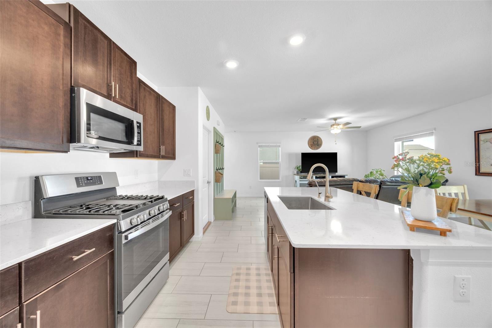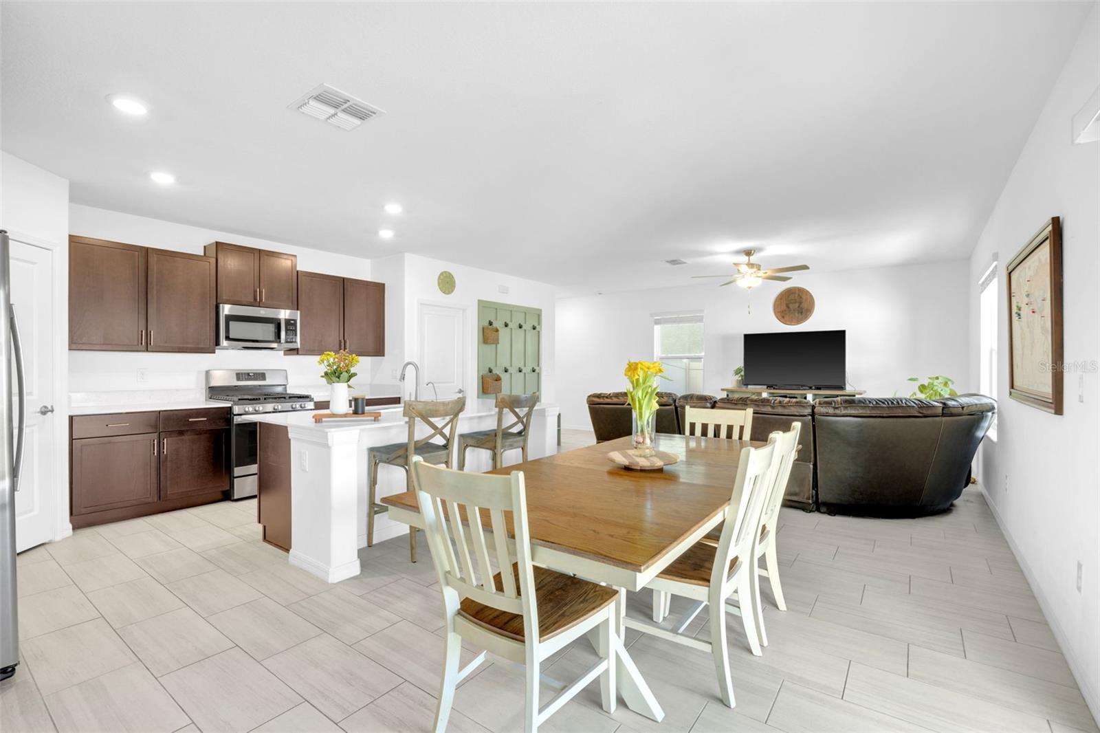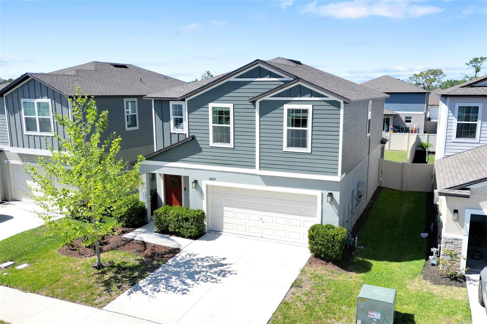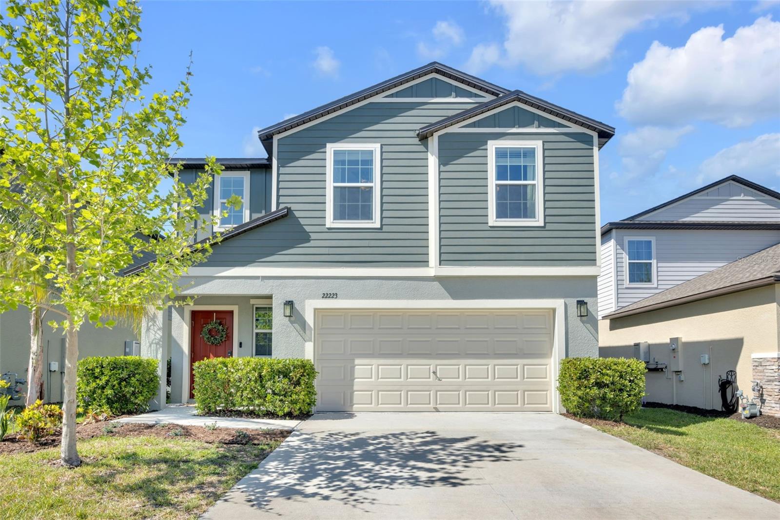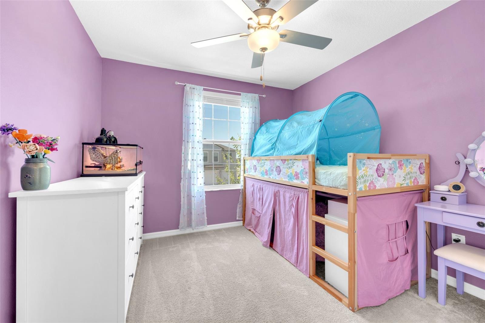 Welcome to this beautifully maintained, nearly new two-story home featuring 4 spacious bedrooms, a versatile loft, and 2.5 bathrooms—designed for both everyday comfort and effortless entertaining. From the moment you step inside, you’ll notice the bright, open floorplan filled with natural light, creating a warm and inviting atmosphere. The heart of the home is a generous living area that flows seamlessly into the dining space and modern kitchen, complete with a deep single-bowl stainless steel sink and sleek quartz countertops—perfect for hosting guests or enjoying a quiet night in. Upstairs, all four bedrooms have ample space, including a serene primary suite with a private ensuite bath. The conveniently located upstairs laundry room adds ease to daily routines. Outside, a fully fenced backyard with a covered patio makes for the perfect spot to unwind or entertain during warmer months. Nestled in a picturesque neighborhood, this home offers quick access to shopping, dining, and major highways, with two schools just minutes away. A brand-new amenity center is currently underway and will feature a pool and gym. Existing community features include a pool, splash pad, park with gazebo, playground, sports court, scenic nature trails, and more.