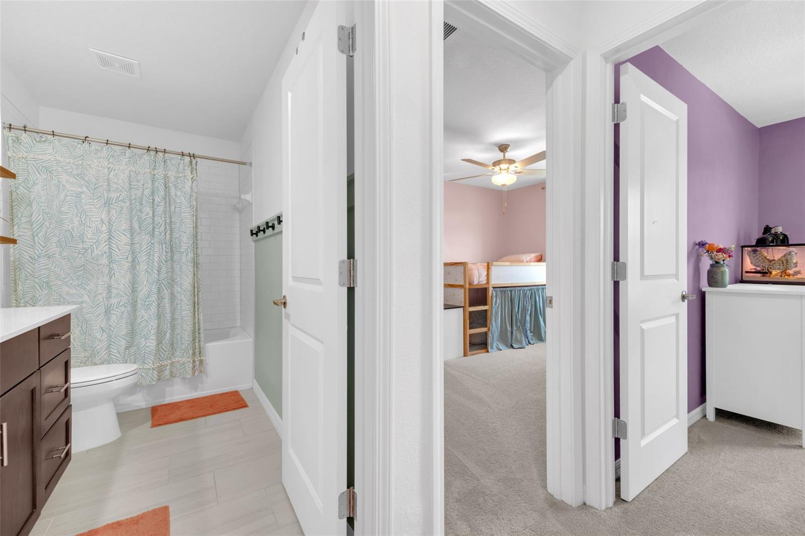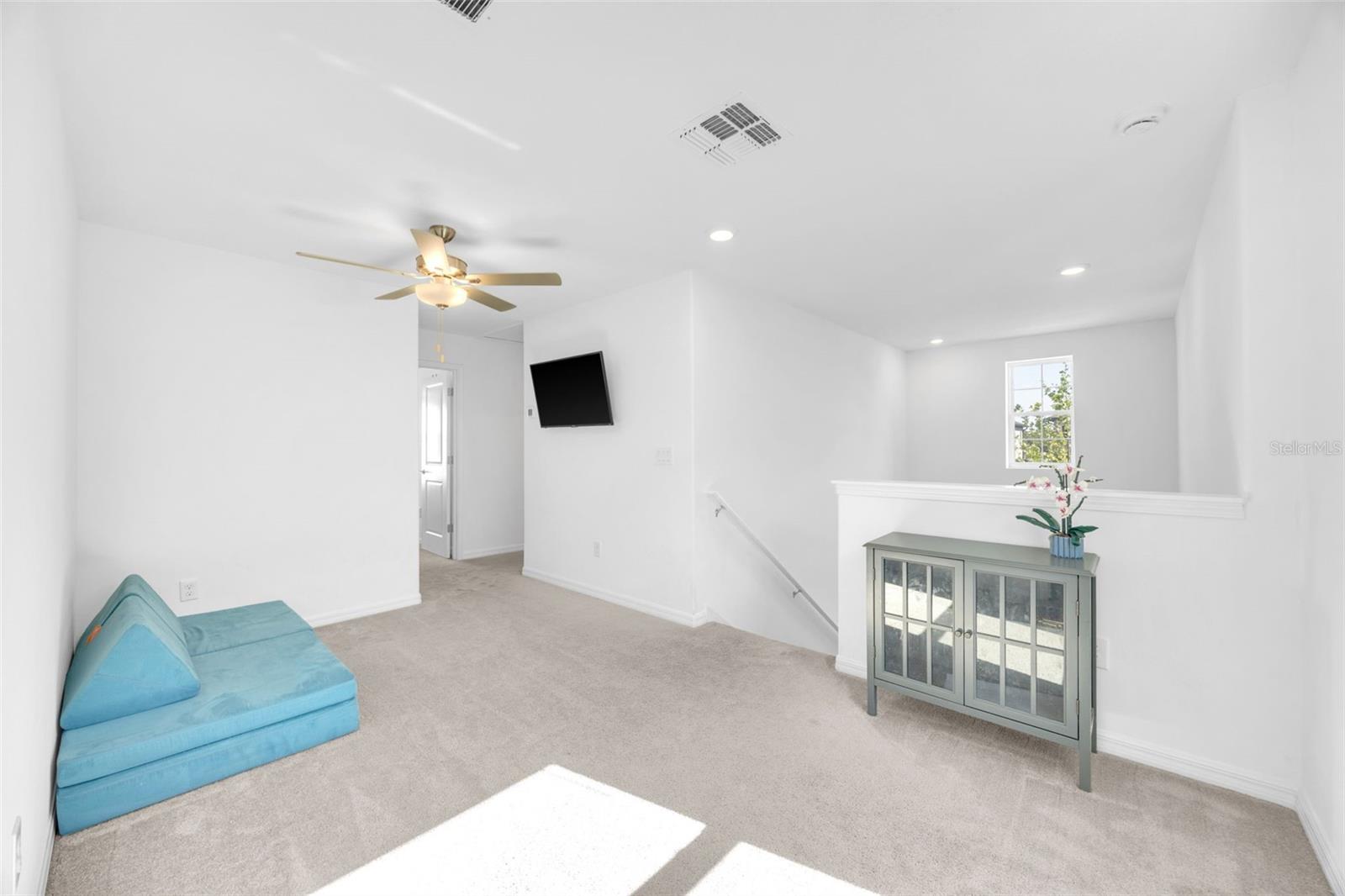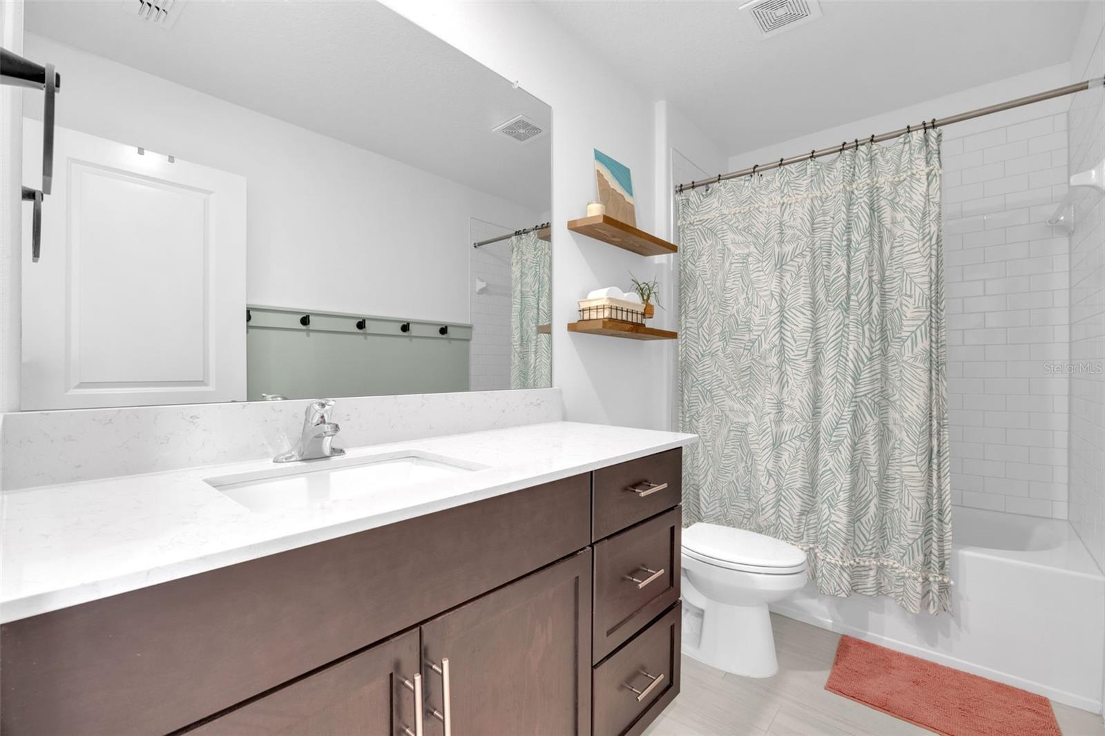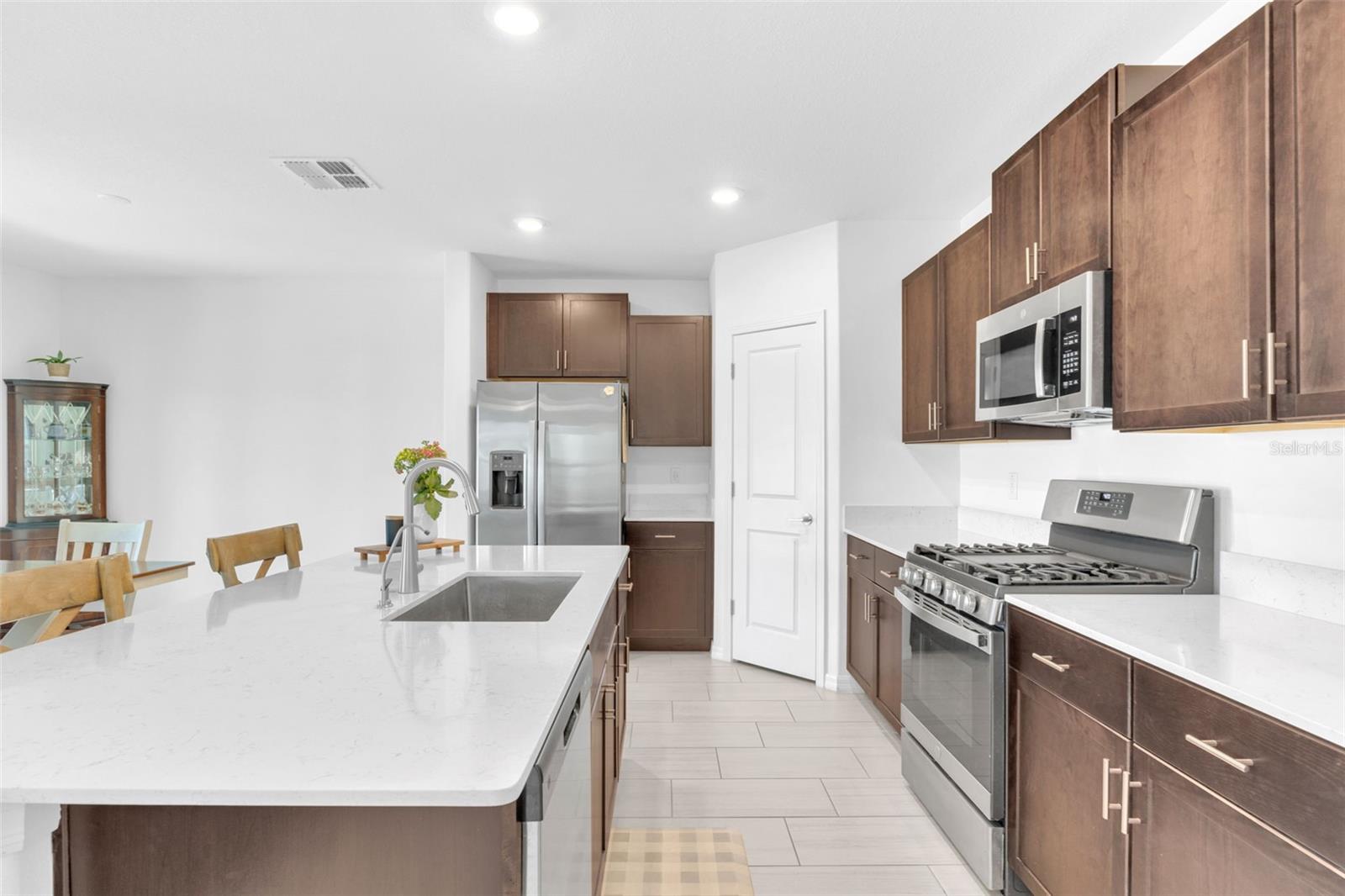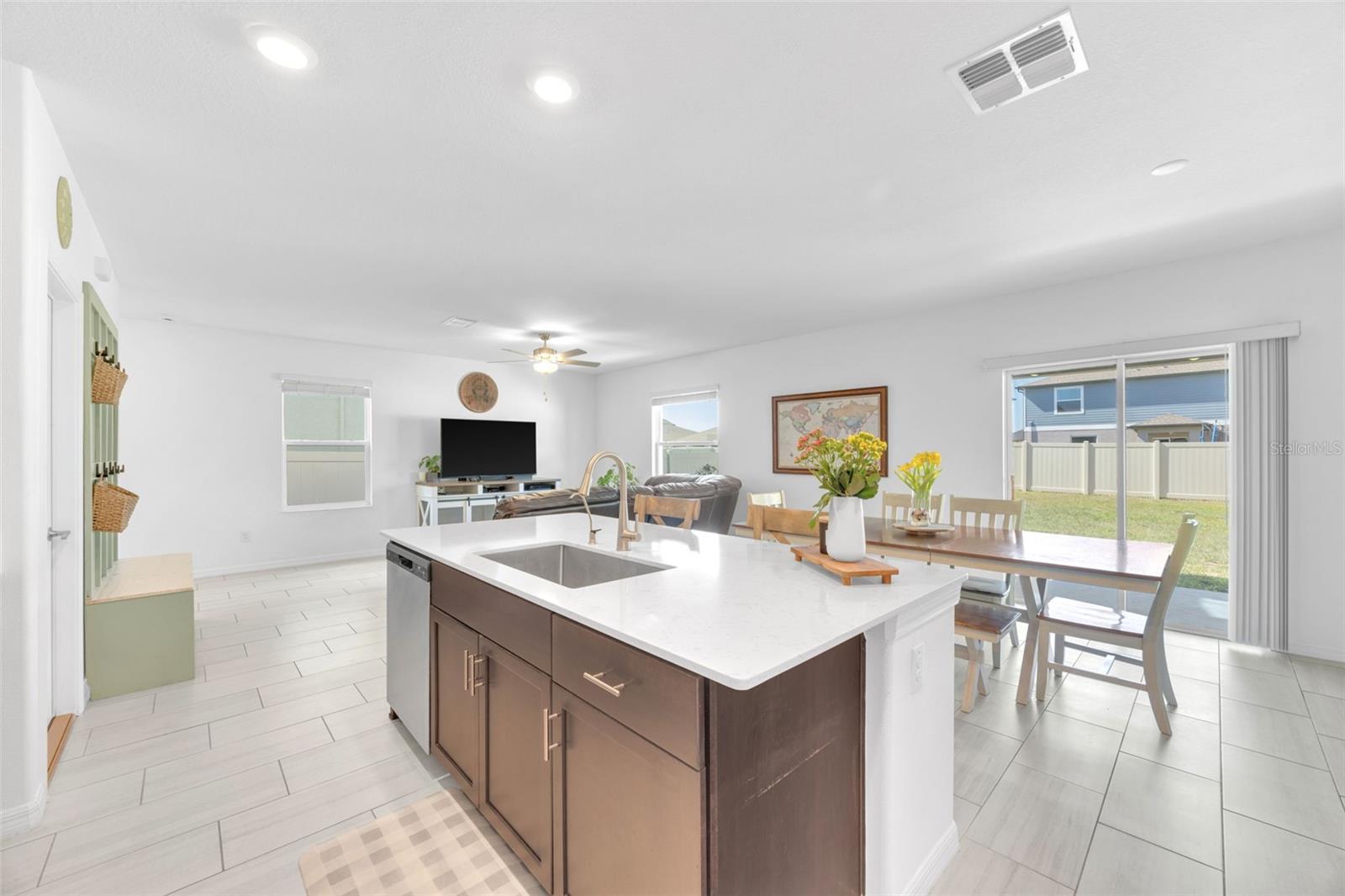 Welcome to this beautifully maintained, nearly new two-story home featuring 4 spacious bedrooms, a versatile loft, and 2.5 bathrooms—designed for both everyday comfort and effortless entertaining. From the moment you step inside, you’ll notice the bright, open floorplan filled with natural light, creating a warm and inviting atmosphere. The heart of the home is a generous living area that flows seamlessly into the dining space and modern kitchen, complete with a deep single-bowl stainless steel sink and sleek quartz countertops—perfect for hosting guests or enjoying a quiet night in. Upstairs, all four bedrooms have ample space, including a serene primary suite with a private ensuite bath. The conveniently located upstairs laundry room adds ease to daily routines. Outside, a fully fenced backyard with a covered patio makes for the perfect spot to unwind or entertain during warmer months. Nestled in a picturesque neighborhood, this home offers quick access to shopping, dining, and major highways, with two schools just minutes away. A brand-new amenity center is currently underway and will feature a pool and gym. Existing community features include a pool, splash pad, park with gazebo, playground, sports court, scenic nature trails, and more.