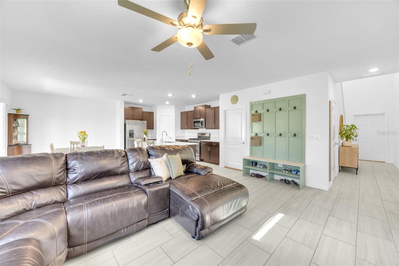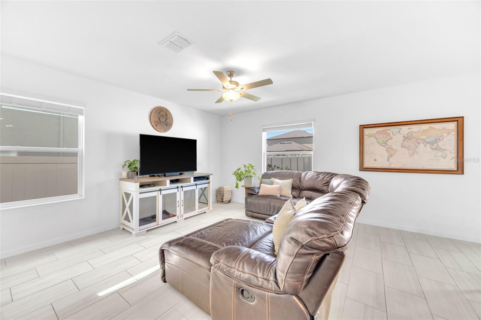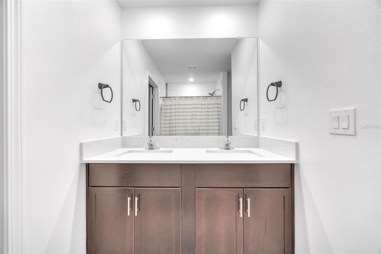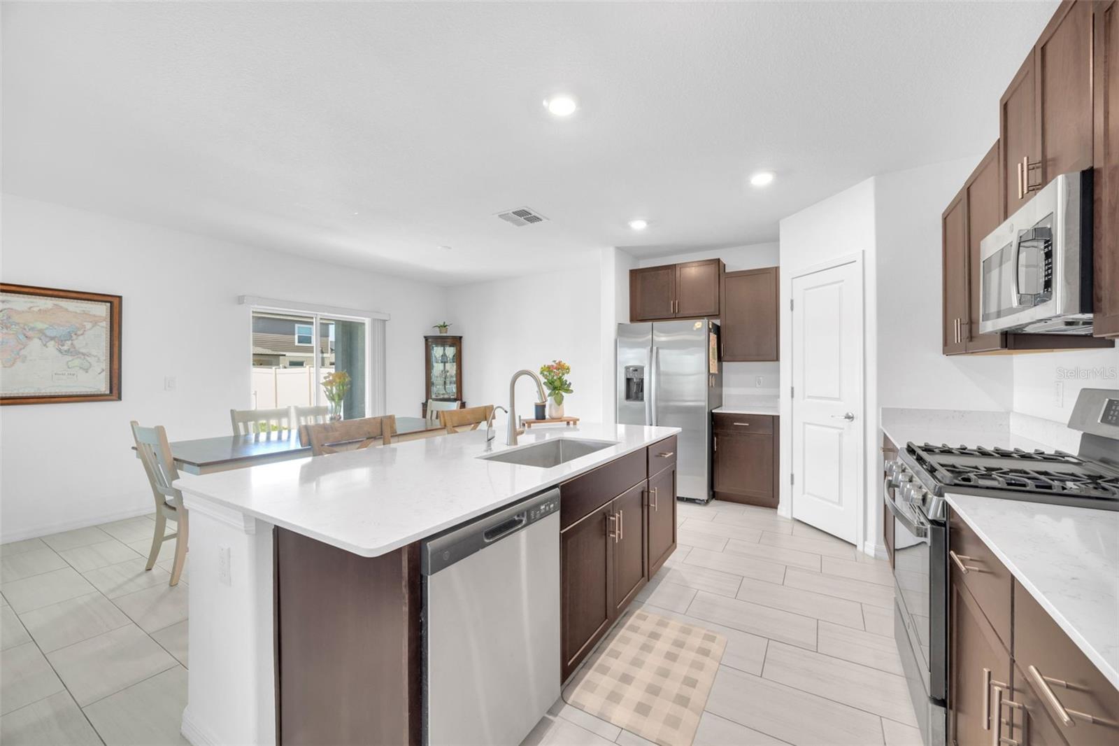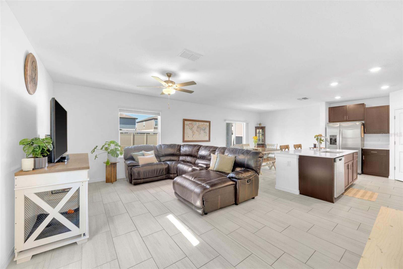 Welcome to this beautifully maintained, nearly new two-story home featuring 4 spacious bedrooms, a versatile loft, and 2.5 bathrooms—designed for both everyday comfort and effortless entertaining. From the moment you step inside, you’ll notice the bright, open floorplan filled with natural light, creating a warm and inviting atmosphere. The heart of the home is a generous living area that flows seamlessly into the dining space and modern kitchen, complete with a deep single-bowl stainless steel sink and sleek quartz countertops—perfect for hosting guests or enjoying a quiet night in. Upstairs, all four bedrooms have ample space, including a serene primary suite with a private ensuite bath. The conveniently located upstairs laundry room adds ease to daily routines. Outside, a fully fenced backyard with a covered patio makes for the perfect spot to unwind or entertain during warmer months. Nestled in a picturesque neighborhood, this home offers quick access to shopping, dining, and major highways, with two schools just minutes away. A brand-new amenity center is currently underway and will feature a pool and gym. Existing community features include a pool, splash pad, park with gazebo, playground, sports court, scenic nature trails, and more.