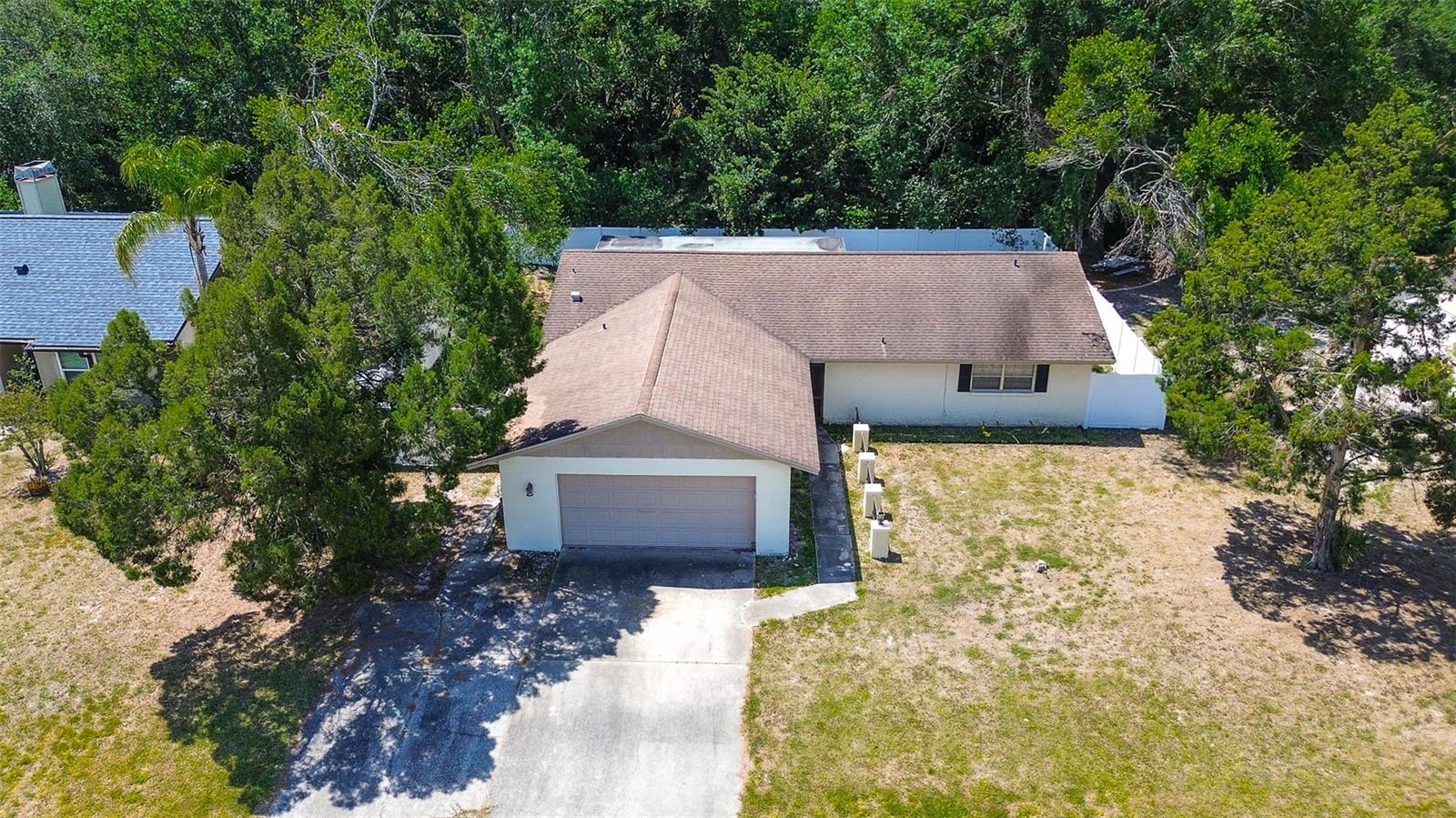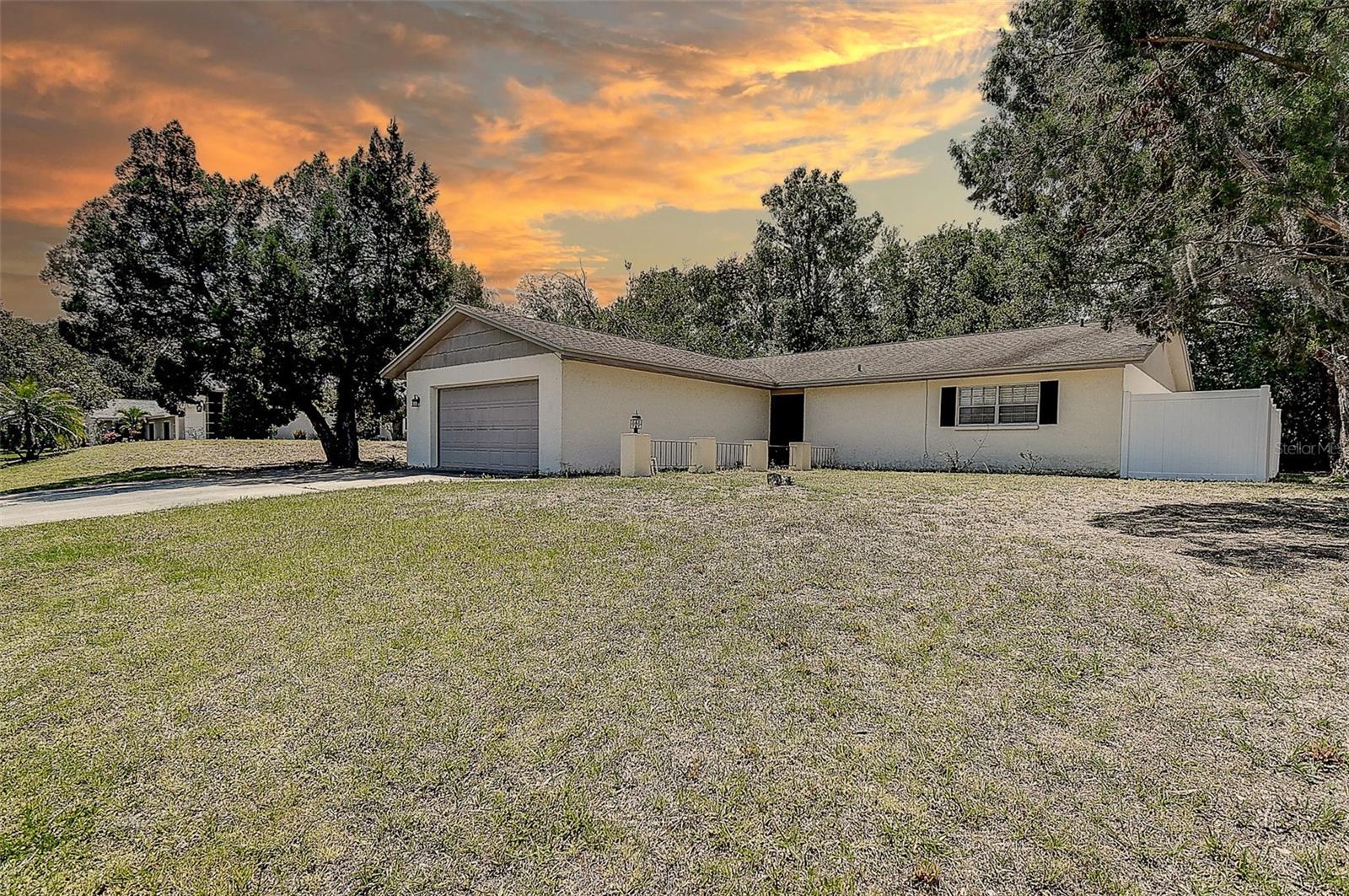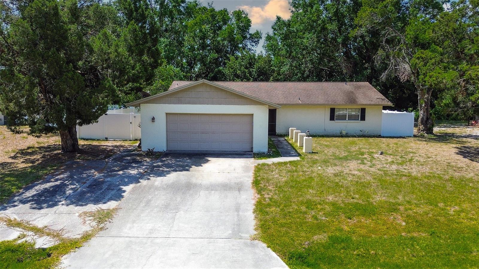 Welcome to your future home — a 3-bedroom, 2-bath ranch that’s ready for you to move right in! Nestled along a peaceful creek and surrounded by mature oak trees, this charming property offers over 1,600 square feet of inviting living space designed for comfort and everyday enjoyment. Step inside to find bright, open spaces filled with natural light, sleek laminate flooring, and a seamless flow between the living, dining, and family rooms — perfect for relaxing or entertaining. The spacious kitchen comes fully equipped with all appliances, while the oversized screened-in rear porch invites you to sit back and savor the tranquil Florida afternoons. The primary bedroom features a generous walk-in closet and a private en-suite bathroom, while two additional bedrooms offer built-in closets and versatile space for family, guests, or a home office. With central air, a two-car garage, bonus family room, and a lush, private quarter-acre lot, this home checks every box on your list. Plus, enjoy access to fantastic community amenities including a sparkling pool, tennis courts, and a clubhouse — all with low monthly fees! Homes like this don’t stay available for long! Don’t miss your chance to tour this beautiful property and fall in love firsthand. Call us today to schedule your private showing before it’s gone!