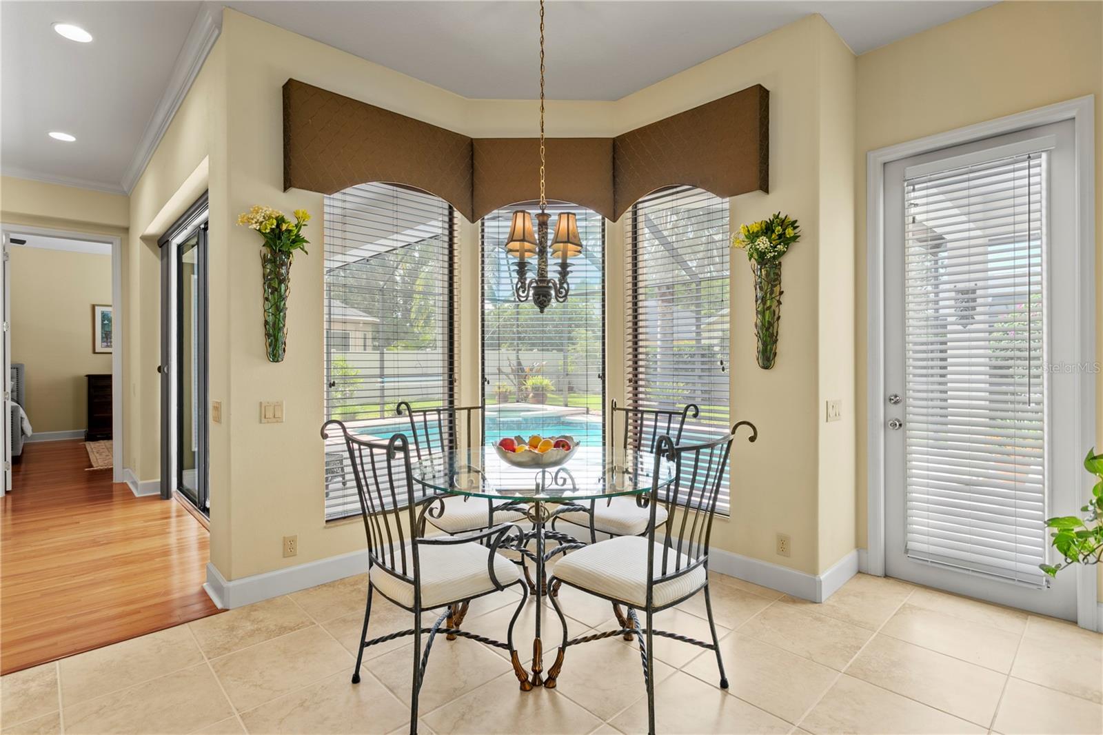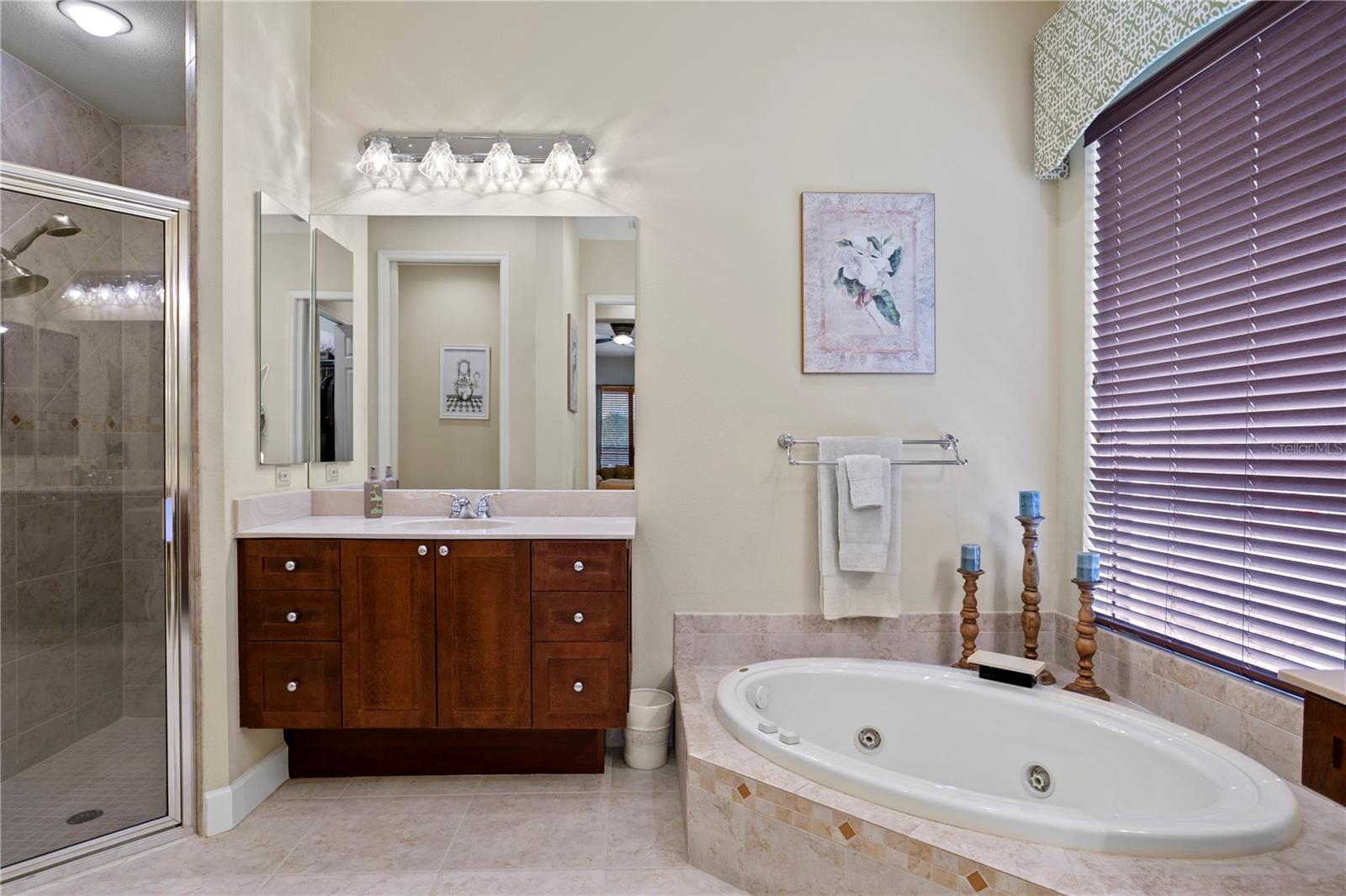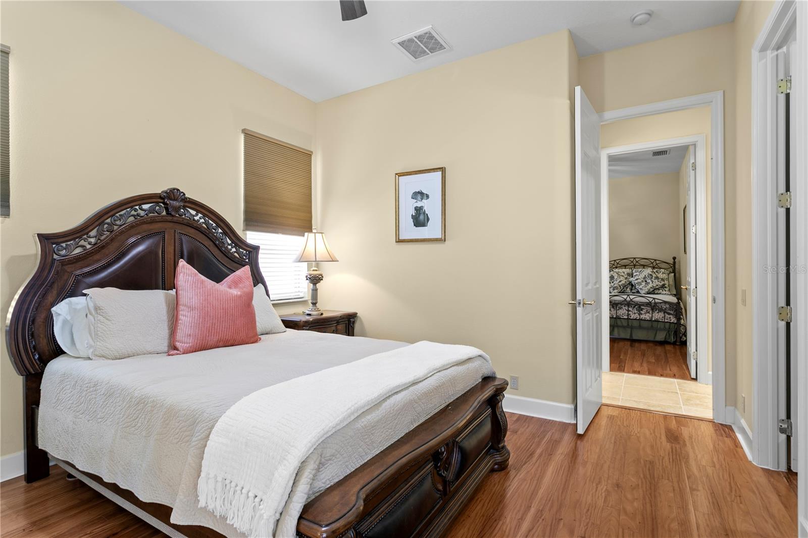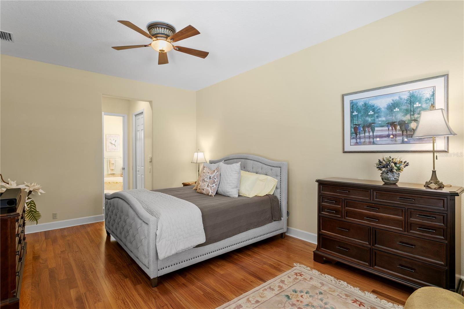 Welcome to your dream home in the gated Strathmore Village. This gorgeous Arthur Rutenberg Coquina pool/spa home boasts undeniable curb appeal and is nestled in the Oakstead Development. This home features 3 spacious bedrooms, 3 baths, and den/office with custom built-ins (which can be easily converted into a 4th bedroom) and 3 car garage. Step inside and discover architectural design details that include 12’ tray ceilings in the formal dining area and great room separated by a pass-through granite top with wood cabinets and tapered columns. Engineered hardwood floors, tiled wet areas and SOARING 10’ ceilings throughout along with 8’ doors. Custom plantation shutters, shades, cornice window treatments and blinds add a touch of class. The triple sliders are completely retractable and offer access to the large oversized lanai with pool/spa that includes surround sound and outdoor shower. All fixed glass have bronze tinted windows. The CHEF’S KITCHEN boasts 42” wood cabinetry with crown, breakfast bar, morning room, tile backsplash, granite countertops, Double Sink, desirable GAS COOKTOP, built-in oven and convection /microwave, large central work island with separate PREP SINK, desk area with additional storage, roll-out pan drawers and walk-in pantry. The spacious owner’s suite offers private access to the pool area, 2 spacious walk-in closets, a large jetted jacuzzi soaking tub, walk-in shower with dual shower heads, linen closet and 2 separate vanity areas. 2nd bedroom has a walk-in closet with custom built-ins, double slider with access to cabana, an ensuite with walk-in shower, vanity and access to the pool. The 3rd bedroom has a bathroom with shower and tub conveniently located just outside the door and features a linen closet. The 3-car garage features 10.5’ ceilings with a side door, work benches and additional storage added (all convey), water softener, pull down stairs for easy access to the attic and bike pulleys. This home is complete with a NEW ROOF (2024), a NEW HVAC (2024), interior LED lighting and MOEN FIXTURES, CROWN MOLDING, newer rescreened pool cage, gutters, EXTERIOR PAINTED (2021) and large interior laundry room with utility sink, cabinets, storage closet and LG washer and dryer both recently replaced. NEST THERMOSTATS, Nest front door camera, Google kitchen hub monitor and Nest backyard camera all convey. Professional lush landscaping includes irrigation system, palm trees along with other landscaping details. Oakstead is a natural gas, deed-restricted community with resort-style amenities which include a clubhouse, lap/kiddie pool, fitness center, tennis and pickle ball courts, covered playground, and scenic 3-mile walking trail. AMAZING LOCATION with easy access to I-75, I-275, Suncoast Pkwy, Tampa International and St. Pete/Clearwater Airports, Restaurants, Shopping, Hospitals, Sports Venues and more! Please call today to schedule your private showing!