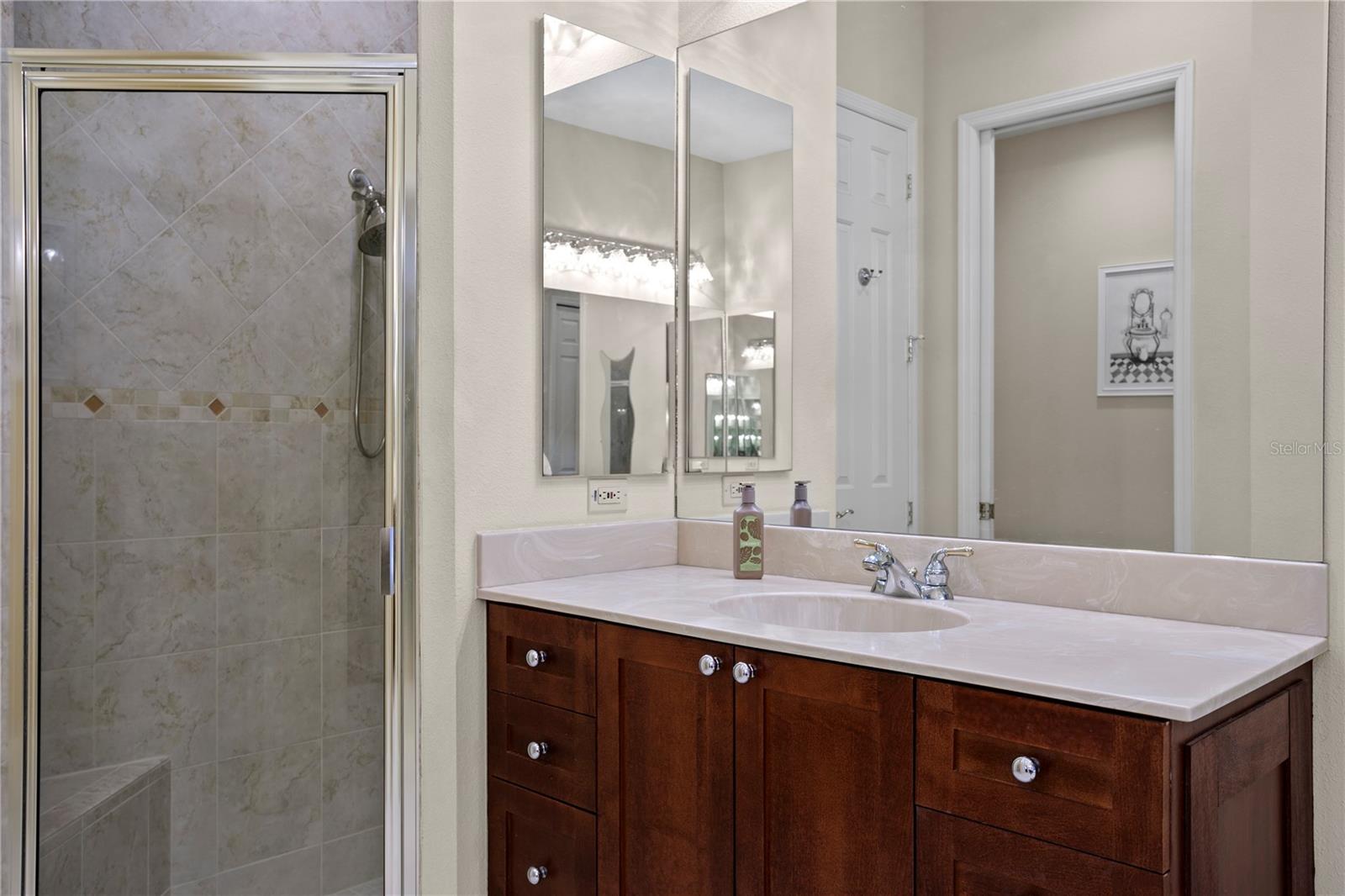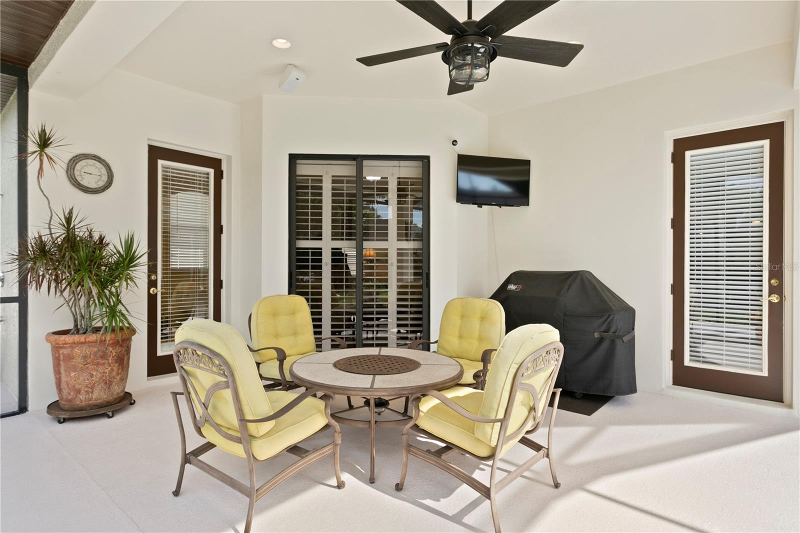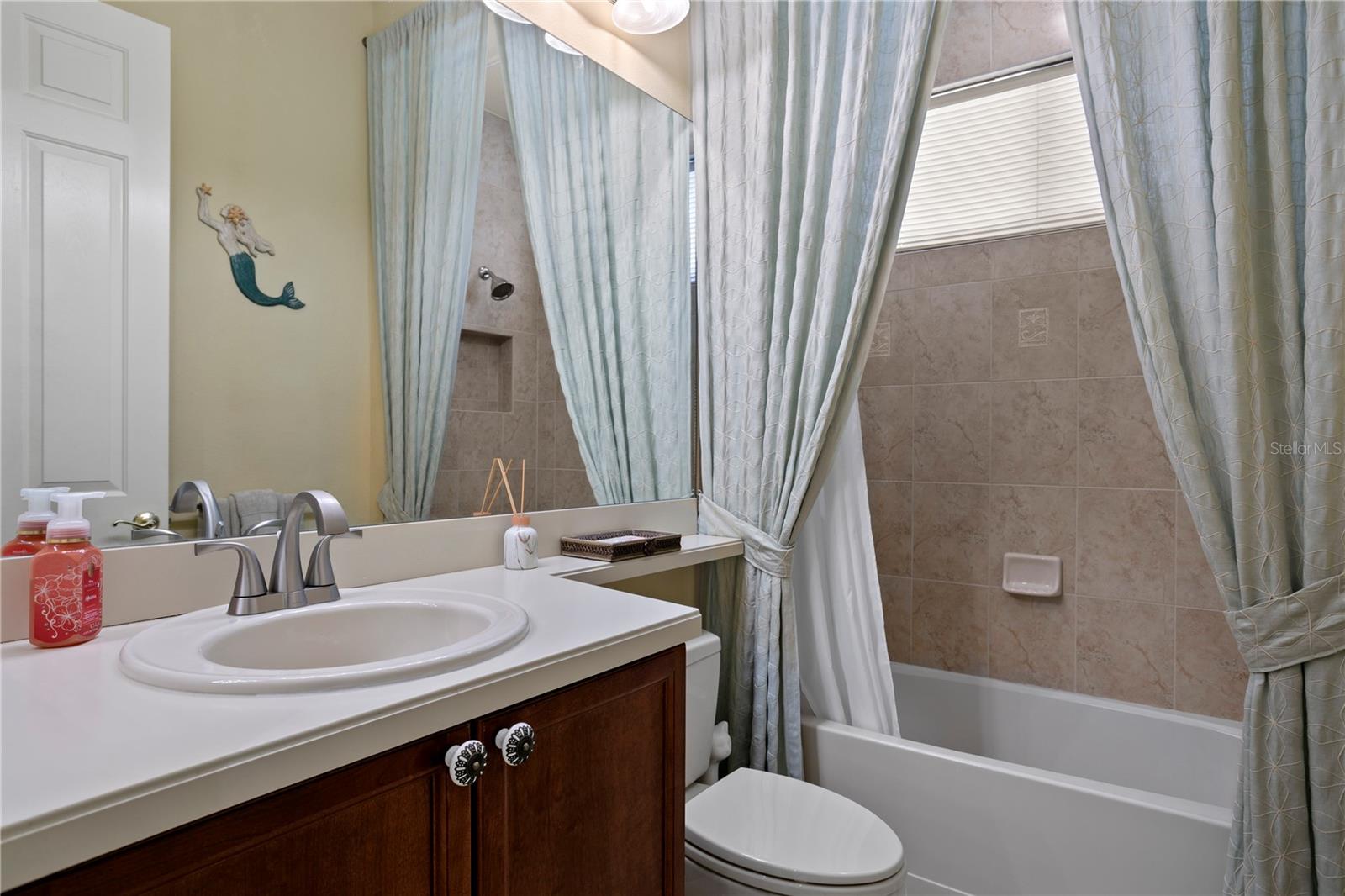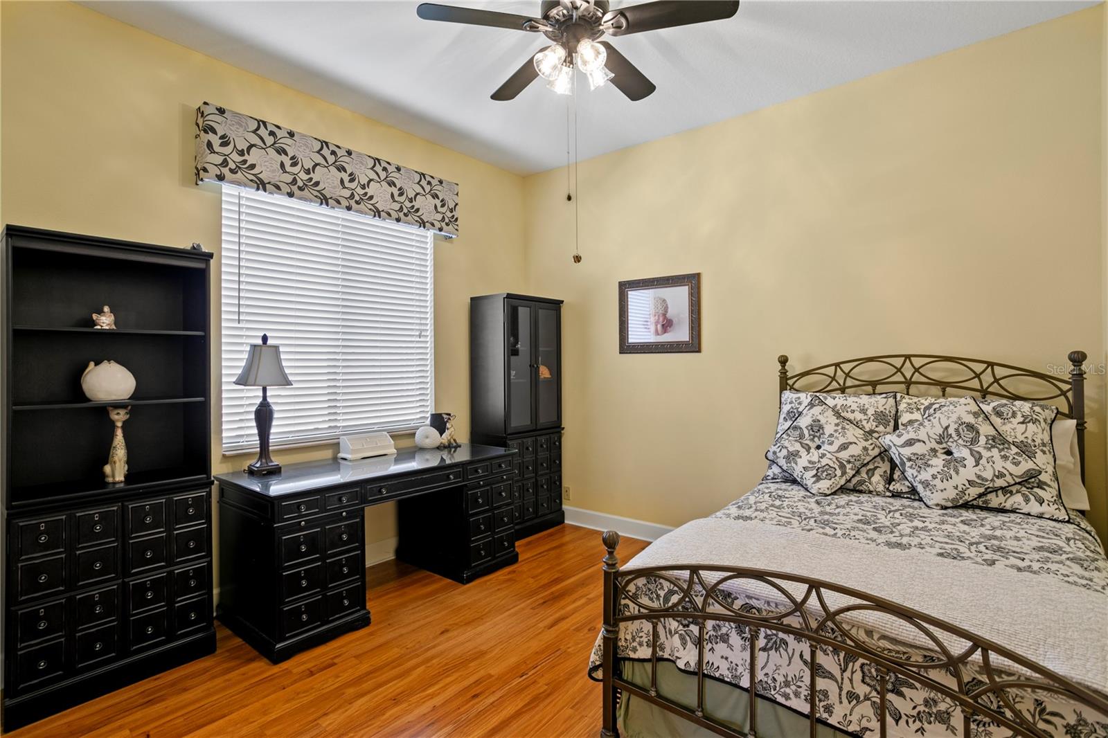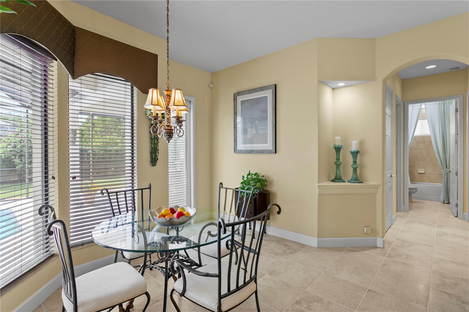 Welcome to your dream home in the gated Strathmore Village. This gorgeous Arthur Rutenberg Coquina pool/spa home boasts undeniable curb appeal and is nestled in the Oakstead Development. This home features 3 spacious bedrooms, 3 baths, and den/office with custom built-ins (which can be easily converted into a 4th bedroom) and 3 car garage. Step inside and discover architectural design details that include 12’ tray ceilings in the formal dining area and great room separated by a pass-through granite top with wood cabinets and tapered columns. Engineered hardwood floors, tiled wet areas and SOARING 10’ ceilings throughout along with 8’ doors. Custom plantation shutters, shades, cornice window treatments and blinds add a touch of class. The triple sliders are completely retractable and offer access to the large oversized lanai with pool/spa that includes surround sound and outdoor shower. All fixed glass have bronze tinted windows. The CHEF’S KITCHEN boasts 42” wood cabinetry with crown, breakfast bar, morning room, tile backsplash, granite countertops, Double Sink, desirable GAS COOKTOP, built-in oven and convection /microwave, large central work island with separate PREP SINK, desk area with additional storage, roll-out pan drawers and walk-in pantry. The spacious owner’s suite offers private access to the pool area, 2 spacious walk-in closets, a large jetted jacuzzi soaking tub, walk-in shower with dual shower heads, linen closet and 2 separate vanity areas. 2nd bedroom has a walk-in closet with custom built-ins, double slider with access to cabana, an ensuite with walk-in shower, vanity and access to the pool. The 3rd bedroom has a bathroom with shower and tub conveniently located just outside the door and features a linen closet. The 3-car garage features 10.5’ ceilings with a side door, work benches and additional storage added (all convey), water softener, pull down stairs for easy access to the attic and bike pulleys. This home is complete with a NEW ROOF (2024), a NEW HVAC (2024), interior LED lighting and MOEN FIXTURES, CROWN MOLDING, newer rescreened pool cage, gutters, EXTERIOR PAINTED (2021) and large interior laundry room with utility sink, cabinets, storage closet and LG washer and dryer both recently replaced. NEST THERMOSTATS, Nest front door camera, Google kitchen hub monitor and Nest backyard camera all convey. Professional lush landscaping includes irrigation system, palm trees along with other landscaping details. Oakstead is a natural gas, deed-restricted community with resort-style amenities which include a clubhouse, lap/kiddie pool, fitness center, tennis and pickle ball courts, covered playground, and scenic 3-mile walking trail. AMAZING LOCATION with easy access to I-75, I-275, Suncoast Pkwy, Tampa International and St. Pete/Clearwater Airports, Restaurants, Shopping, Hospitals, Sports Venues and more! Please call today to schedule your private showing!