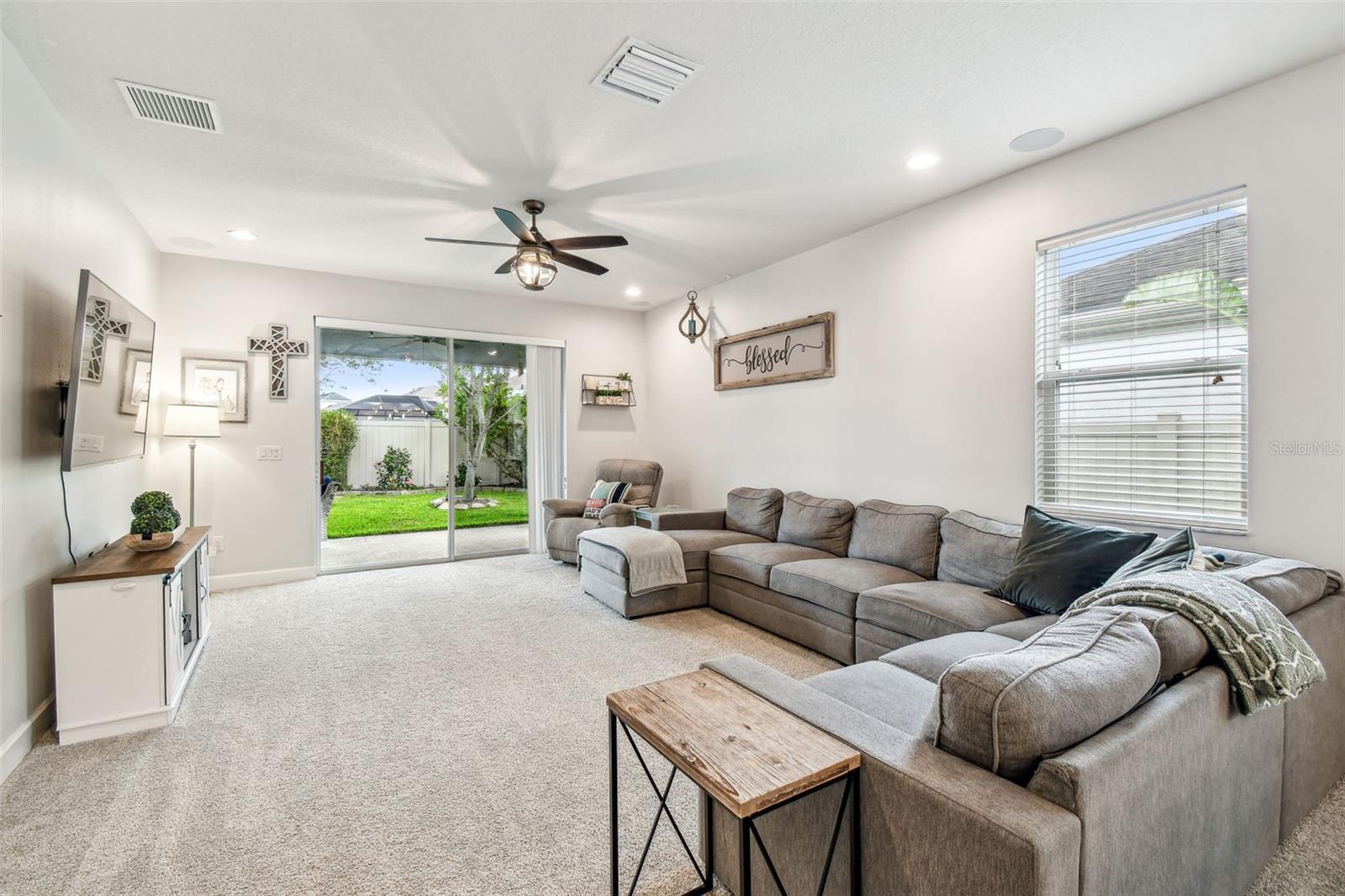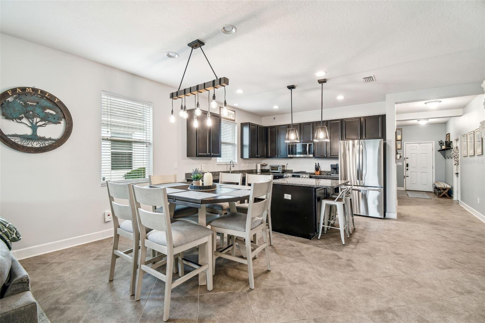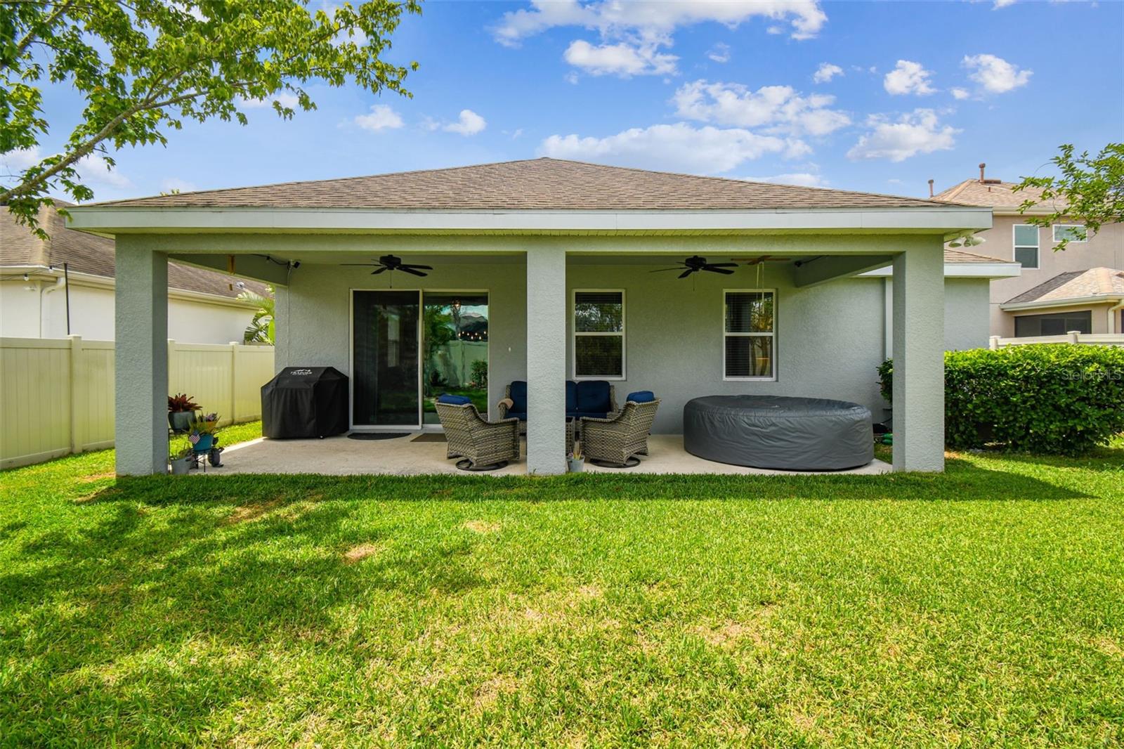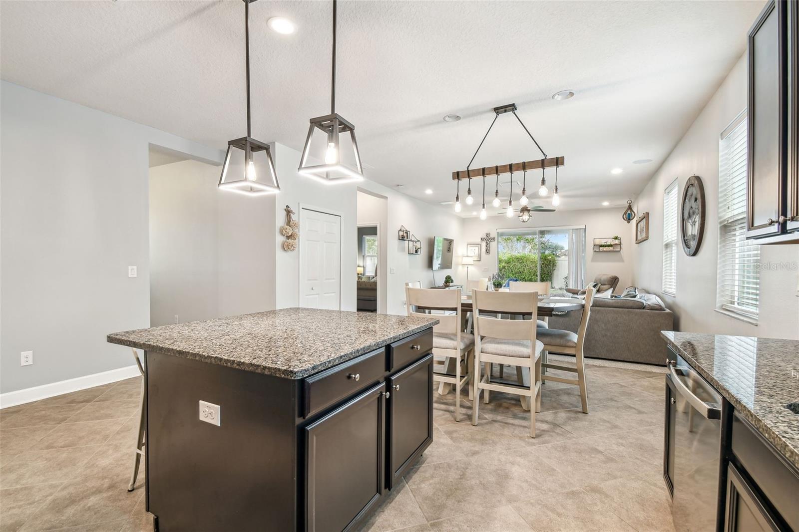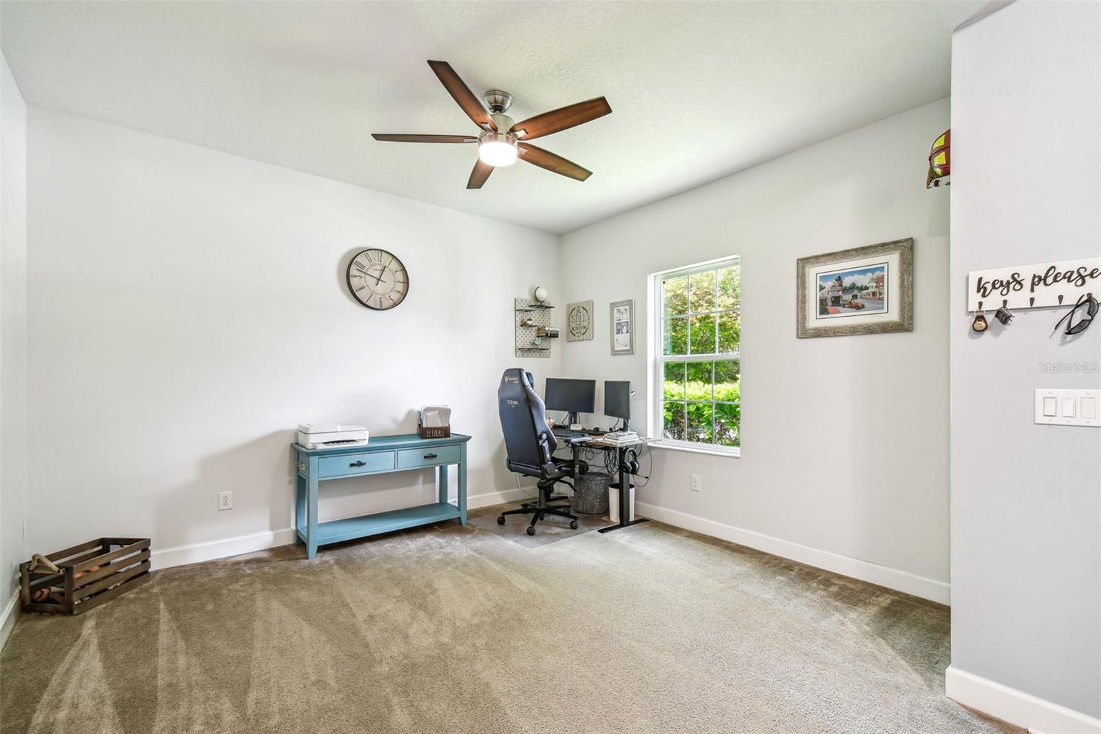 Your dream home awaits in award-winning Connerton; a master-planned community known for its resort-style living, nature preserves, and miles of scenic trails and elevated boardwalks. This move-in ready home offers 2,091 square feet of thoughtfully designed space, featuring 3 bedrooms, 2 full bathrooms, a den/office that can easily be converted into a 4th bedroom, a bonus/media room, and a 2-car garage. Step inside to an inviting open-concept layout perfect for both relaxing and entertaining. The heart of the home is the beautifully updated kitchen, featuring new stainless steel appliances, including a gas range, built-in microwave, dishwasher, and refrigerator. With 42” wood cabinets featuring custom pull-out drawers, abundant granite countertops, and a large prep island, the space is as functional as it is stylish—ideal for preparing meals and gathering with friends and family. The kitchen opens seamlessly to the dining area and spacious great room, creating a bright and connected living space. From the great room, enjoy views of the extended lanai and beautifully landscaped, fenced backyard, offering both privacy and the perfect setting for outdoor living. The split-bedroom floor plan ensures comfort and privacy, with the owner's suite featuring a walk-in closet, ceiling fan, and a private ensuite bath complete with a tiled walk-in shower, linen closet, and granite-topped vanity. The two additional bedrooms are generously sized with ceiling fans and carpeted flooring. The bonus room offers a flexible retreat, ideal for a media or game room. Additional upgrades include a new whole-home tankless water heater with self-descaling system, ensuring energy efficiency and long-term comfort. Living in Connerton means access to top-tier community amenities, including a 10,000 sq. ft. clubhouse, Fit & Flourish Fitness Center, resort-style pool with water slides and splash pad, adult pool, dog parks, sports courts, and an outdoor amphitheater. An additional clubhouse and pool are currently under construction, expanding the community’s offerings even further. The home is located less than a 5-minute walk to Connerton’s park, which features a playground, soccer fields, ping pong tables, and bags courts, making it perfect for active families. Commuters will love the upcoming entrance to the Veterans/Suncoast Expressway, providing quick access to Tampa, Clearwater, and St. Pete. Educational options are exceptional, with Pinecrest Academy recently built in the neighborhood, and Dayspring Academy and Angeline Academy just minutes away.