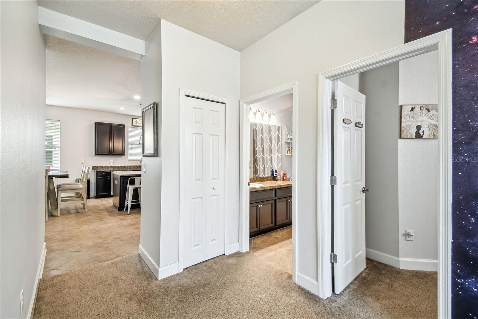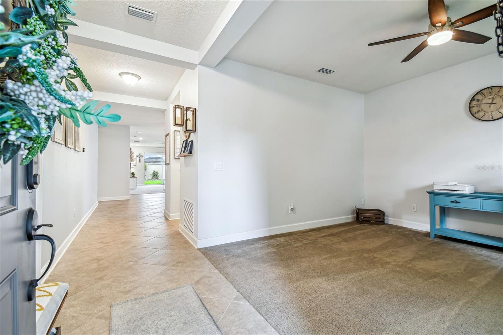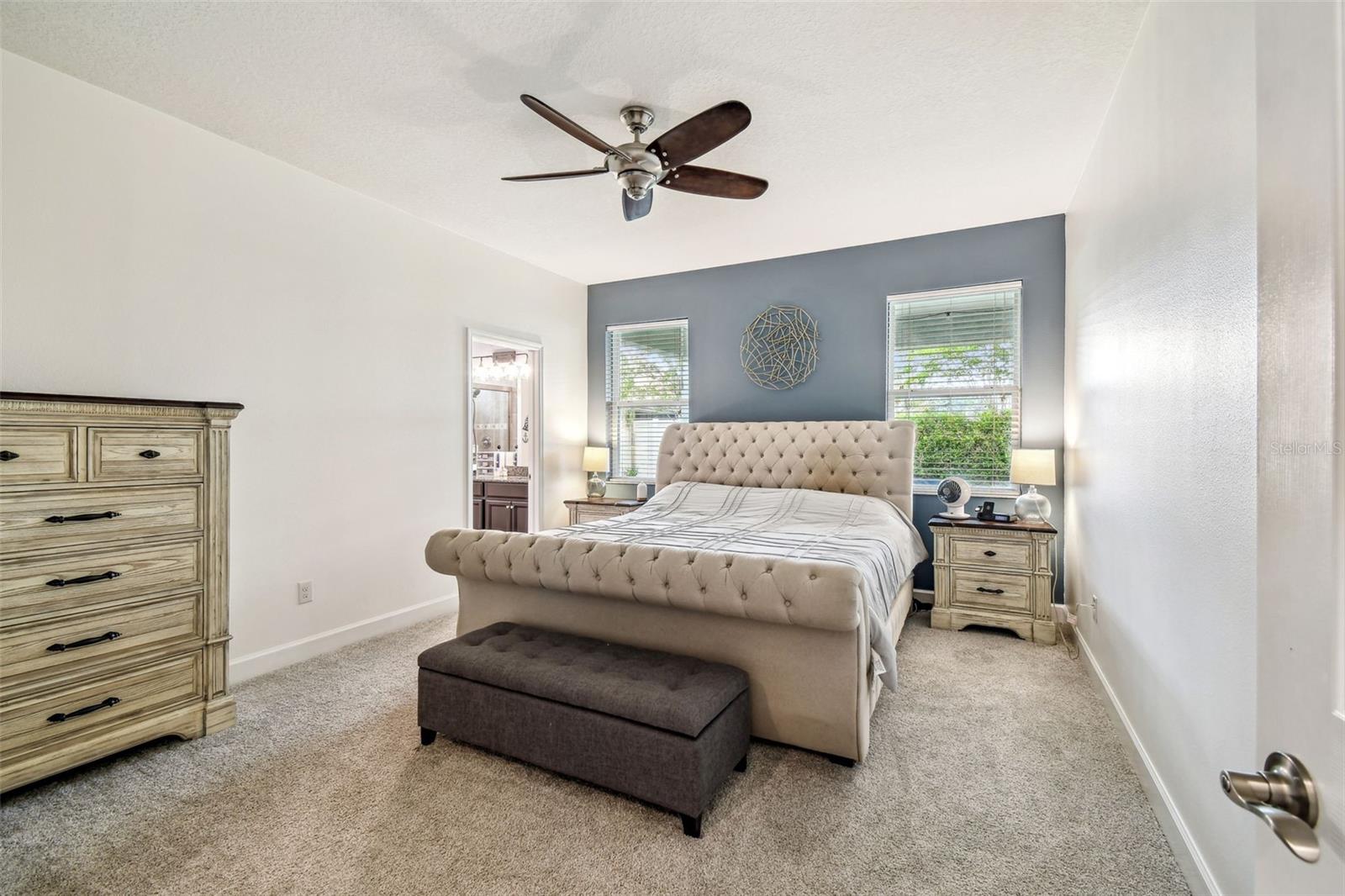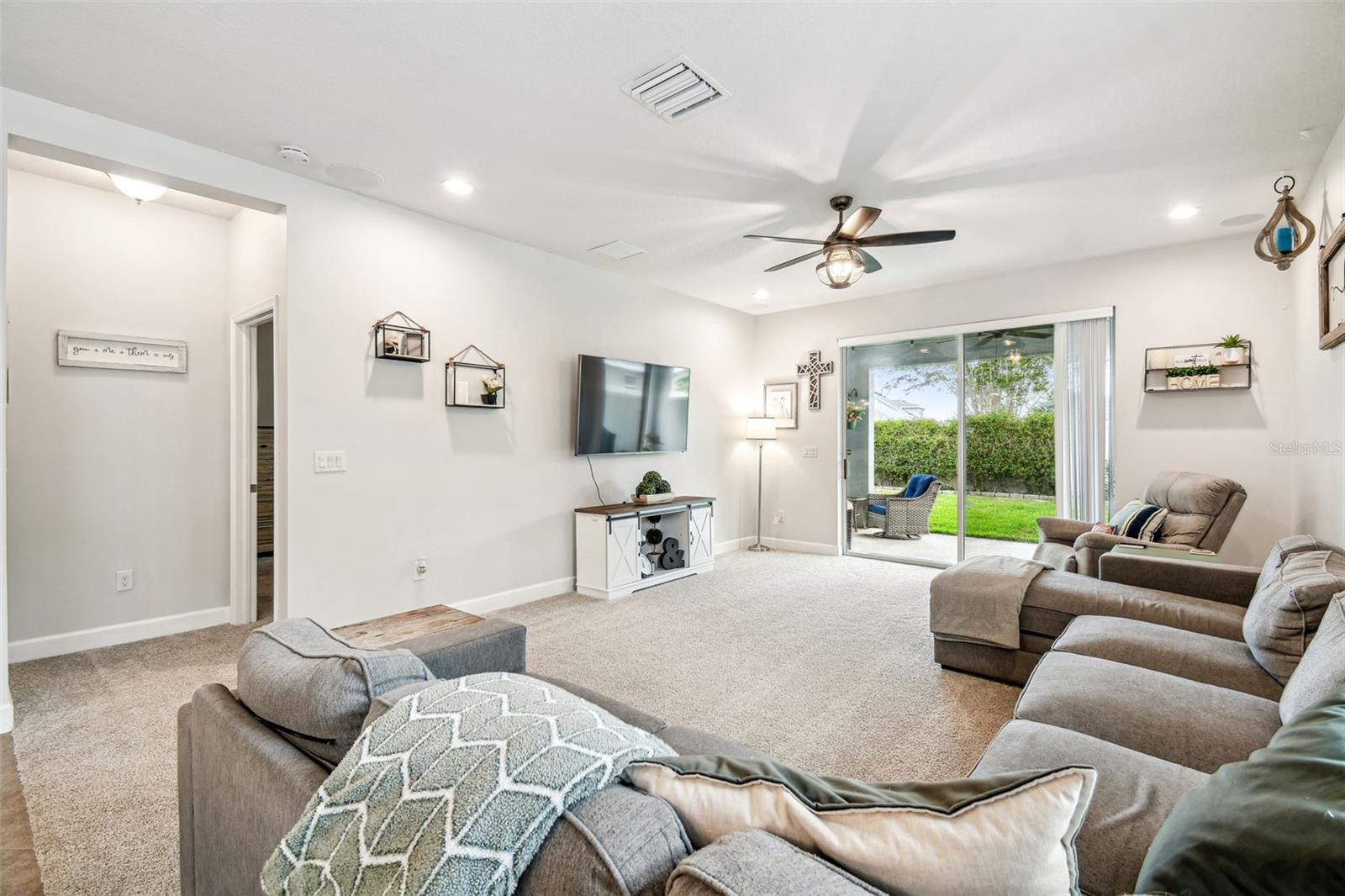 Your dream home awaits in award-winning Connerton; a master-planned community known for its resort-style living, nature preserves, and miles of scenic trails and elevated boardwalks. This move-in ready home offers 2,091 square feet of thoughtfully designed space, featuring 3 bedrooms, 2 full bathrooms, a den/office that can easily be converted into a 4th bedroom, a bonus/media room, and a 2-car garage. Step inside to an inviting open-concept layout perfect for both relaxing and entertaining. The heart of the home is the beautifully updated kitchen, featuring new stainless steel appliances, including a gas range, built-in microwave, dishwasher, and refrigerator. With 42” wood cabinets featuring custom pull-out drawers, abundant granite countertops, and a large prep island, the space is as functional as it is stylish—ideal for preparing meals and gathering with friends and family. The kitchen opens seamlessly to the dining area and spacious great room, creating a bright and connected living space. From the great room, enjoy views of the extended lanai and beautifully landscaped, fenced backyard, offering both privacy and the perfect setting for outdoor living. The split-bedroom floor plan ensures comfort and privacy, with the owner's suite featuring a walk-in closet, ceiling fan, and a private ensuite bath complete with a tiled walk-in shower, linen closet, and granite-topped vanity. The two additional bedrooms are generously sized with ceiling fans and carpeted flooring. The bonus room offers a flexible retreat, ideal for a media or game room. Additional upgrades include a new whole-home tankless water heater with self-descaling system, ensuring energy efficiency and long-term comfort. Living in Connerton means access to top-tier community amenities, including a 10,000 sq. ft. clubhouse, Fit & Flourish Fitness Center, resort-style pool with water slides and splash pad, adult pool, dog parks, sports courts, and an outdoor amphitheater. An additional clubhouse and pool are currently under construction, expanding the community’s offerings even further. The home is located less than a 5-minute walk to Connerton’s park, which features a playground, soccer fields, ping pong tables, and bags courts, making it perfect for active families. Commuters will love the upcoming entrance to the Veterans/Suncoast Expressway, providing quick access to Tampa, Clearwater, and St. Pete. Educational options are exceptional, with Pinecrest Academy recently built in the neighborhood, and Dayspring Academy and Angeline Academy just minutes away.