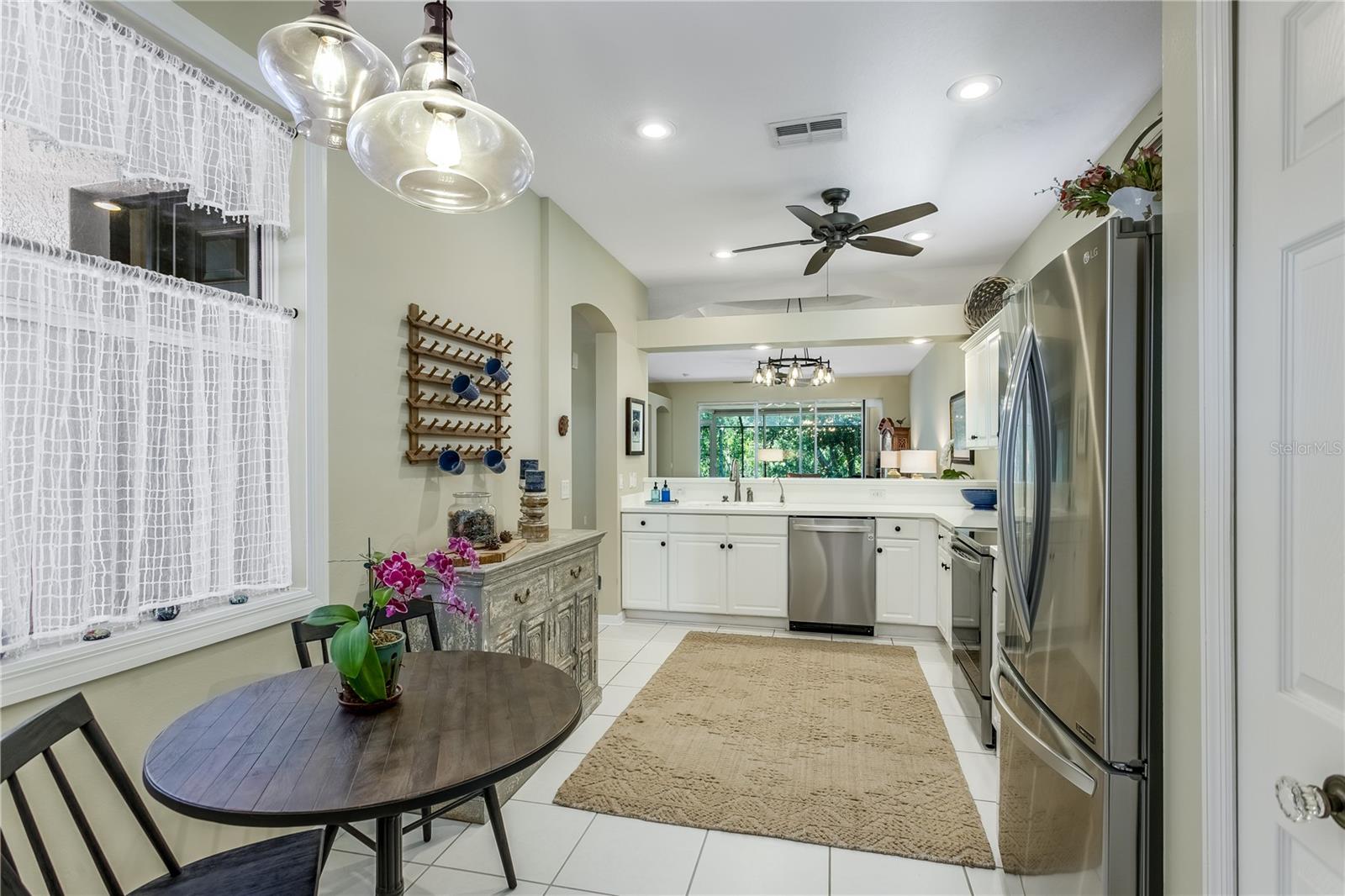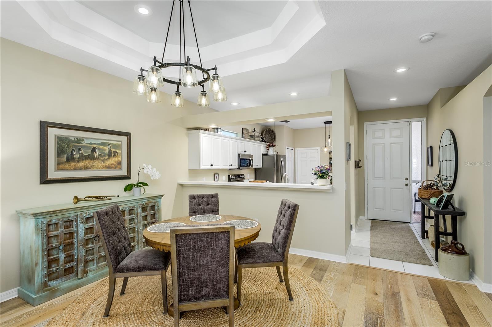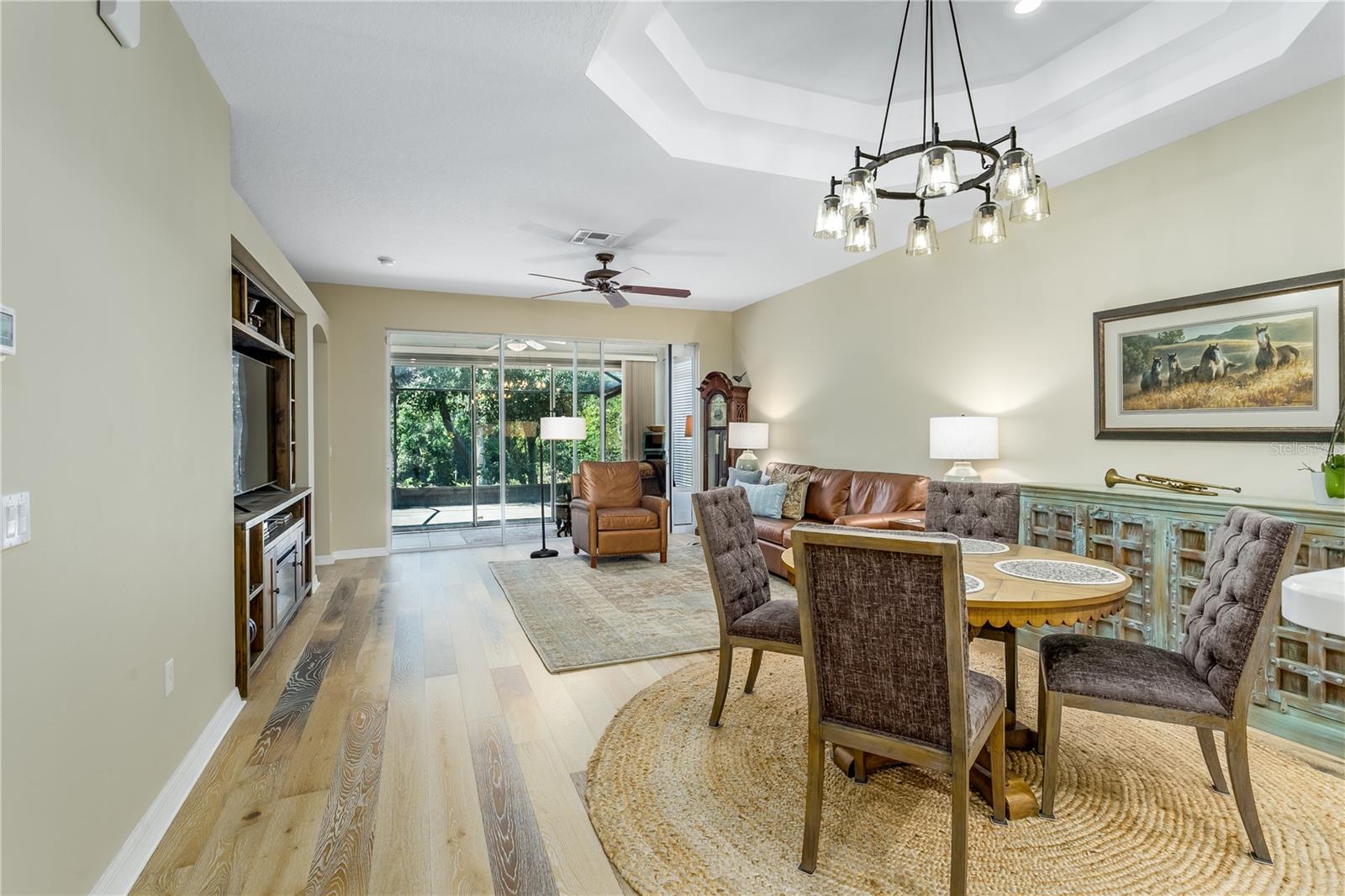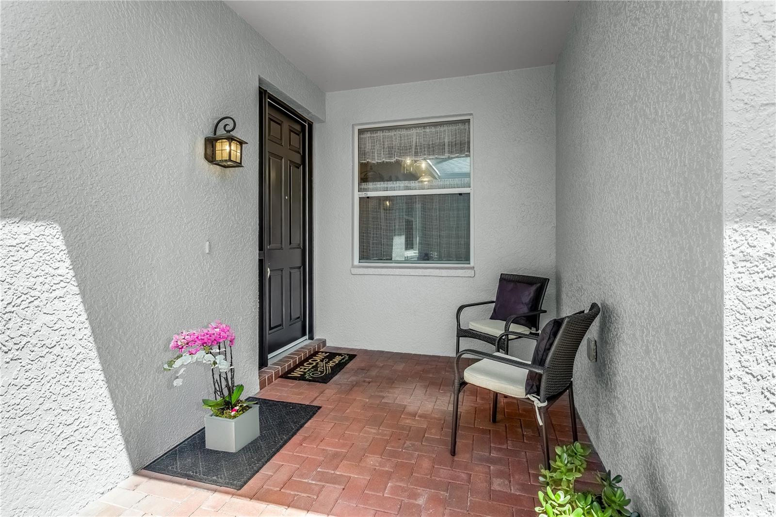 One or more photo(s) has been virtually staged. Easy Living in This Beautiful End-Unit Villa! Enjoy all the fun of the Active 55+ Lifestyle in this well-maintained and updated home. This lovely villa features numerous recent improvements, including: • Roof (2021) • A/C (2023) • Water Softener (2025), Reverse osmosis filter • Kitchen Appliances (2020) Modern Range with Convection Oven and Built-in Air Fryer • Fresh Interior Paint • Stunning Brushed Oak engineered wood floors • Re-screened Garage Door & Courtyard Entryway. *Solar panel attic fan and extra insulation. Step inside and you’ll love the spacious, bright open floorplan with a combined living and dining area, enhanced by a tray ceiling and elegant chandelier. The kitchen offers plenty of cabinets and counter space, along with a cozy breakfast nook. The split-bedroom layout provides privacy, with the primary suite tucked away at the rear overlooking the tranquil nature preserve. It features a bay window, en-suite bath with dual sinks and shower, and a large walk-in closet. The guest bedroom enjoys a charming view of the front courtyard, with a nearby full bath and an indoor laundry room adding to the convenience. Enjoy the wonderful outdoor living space featuring an enclosed patio and a spacious private screened-in lanai with serene views of the preserve Located in a sought-after gated golf community, you’ll enjoy a full calendar of amenities and activities including a clubhouse with restaurant, library, fitness center, ballroom, 18-hole golf course, driving range, plus courts for tennis, pickleball, bocce, shuffleboard, and even a dog park. The quarterly HOA fee covers roof replacement, exterior paint, cable TV, internet, lawn care—even the lawn sprinklers. Conveniently located just outside the guard gate is a Publix plaza offering restaurants, a bank, hair and nail salon, animal hospital, and more for your everyday needs. Beautiful inside and out – come experience the lifestyle you’ve been looking for!