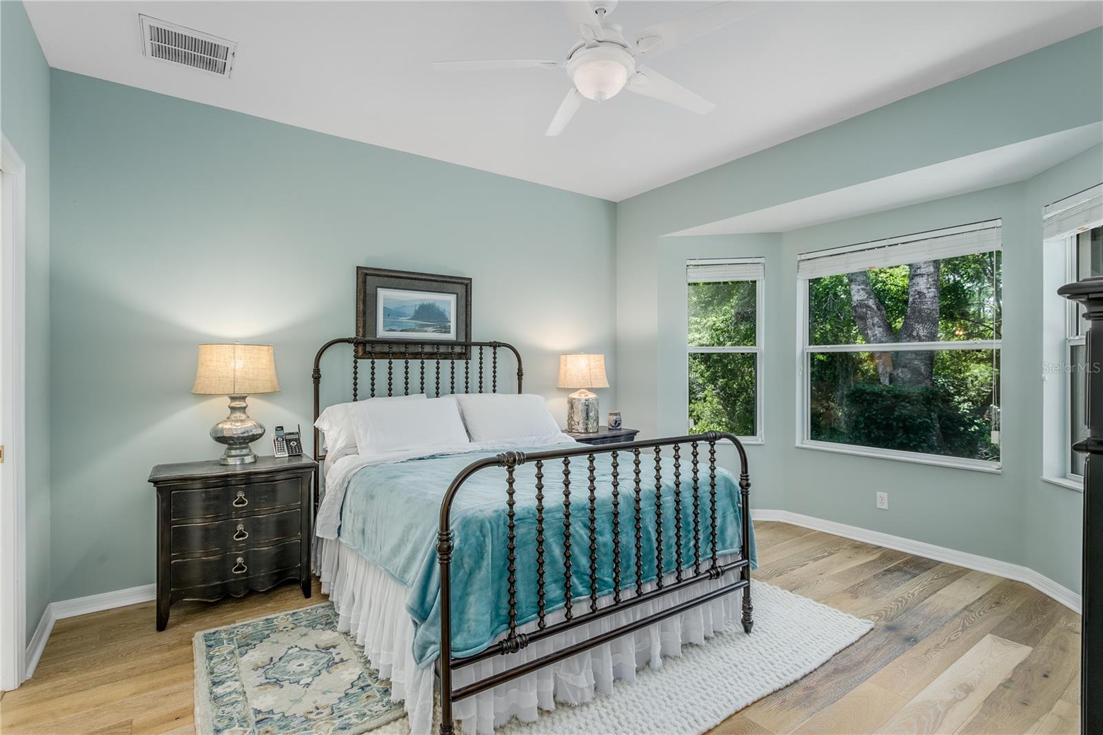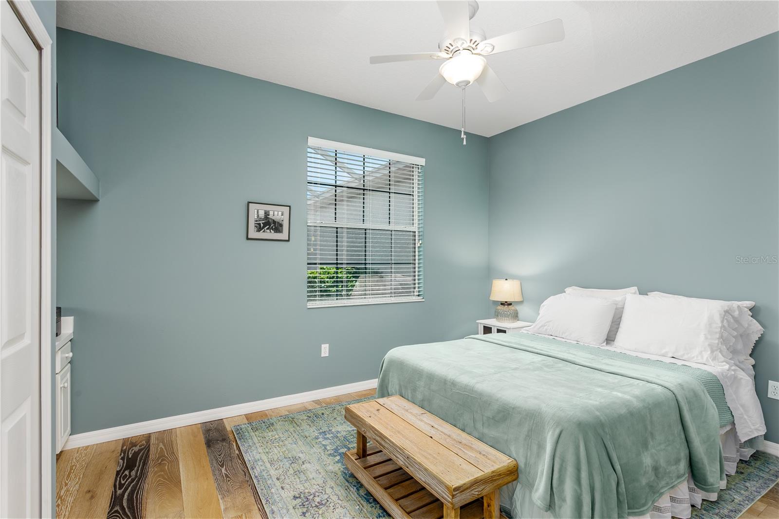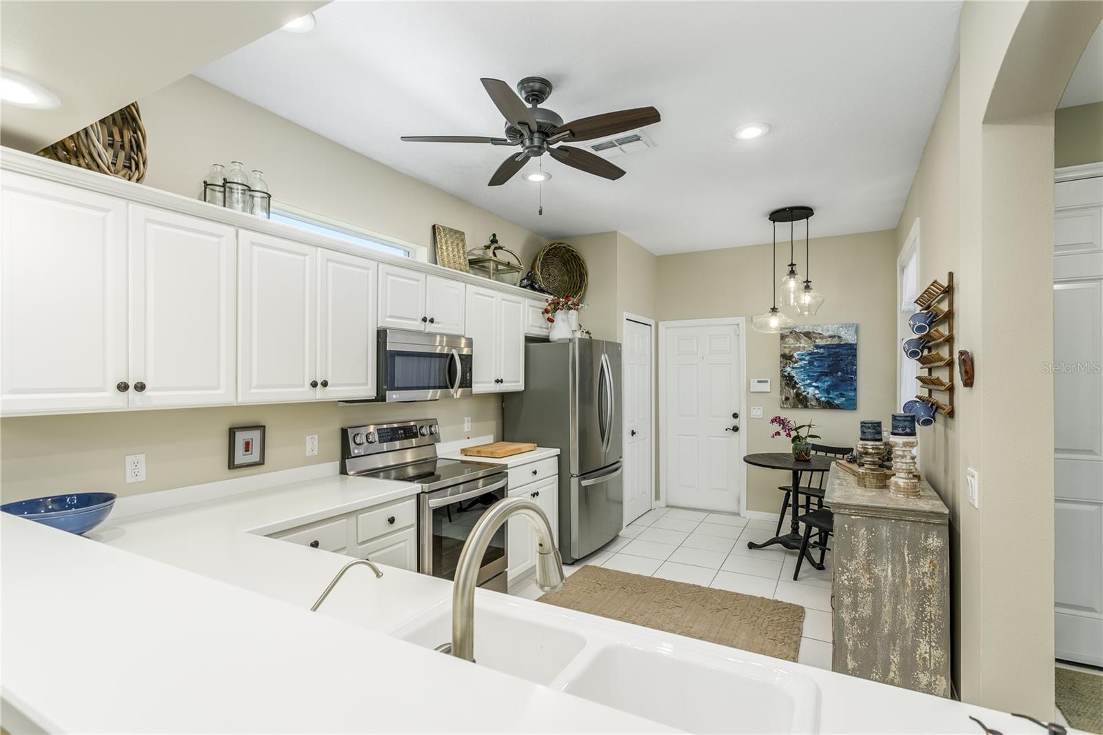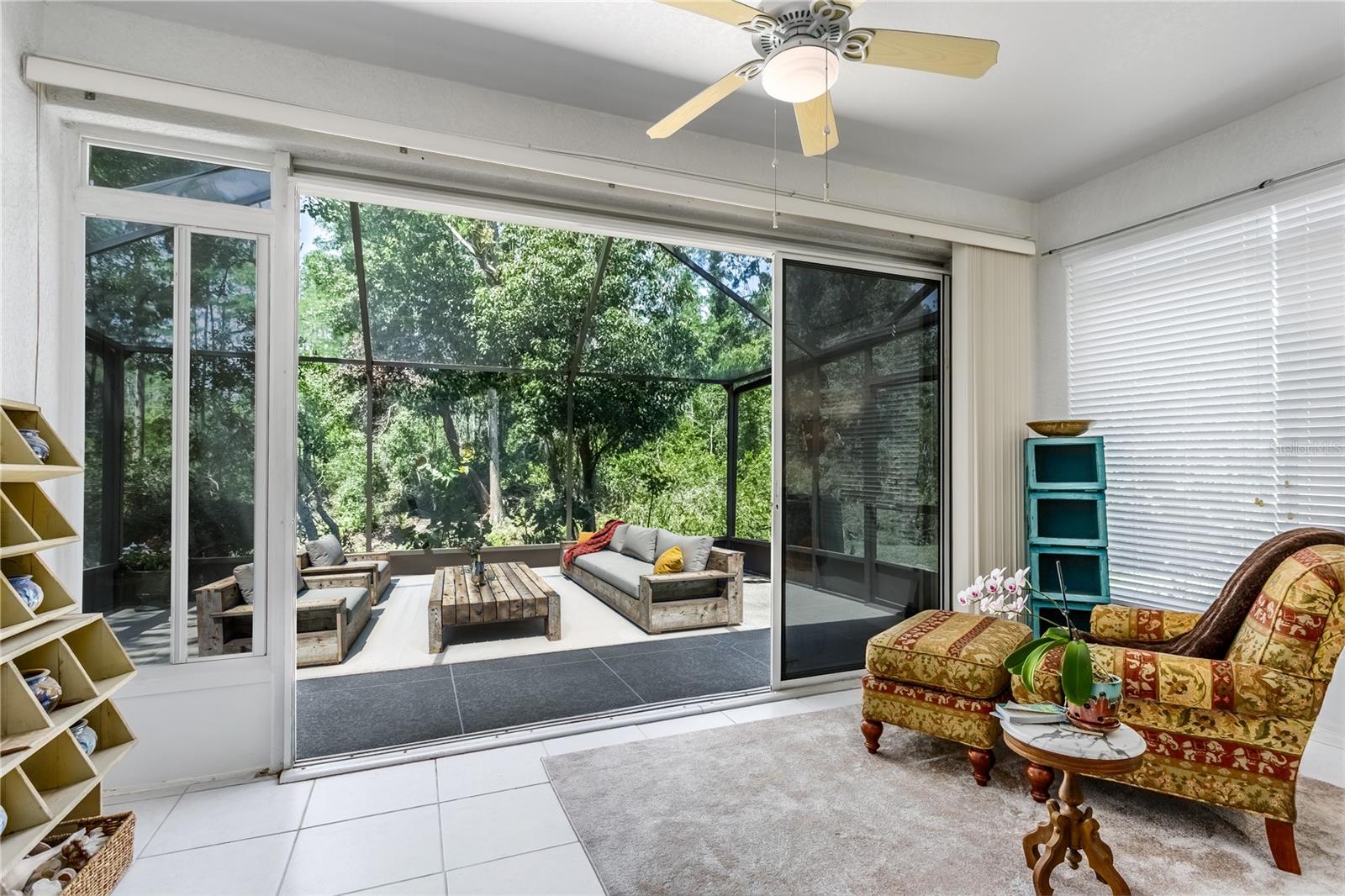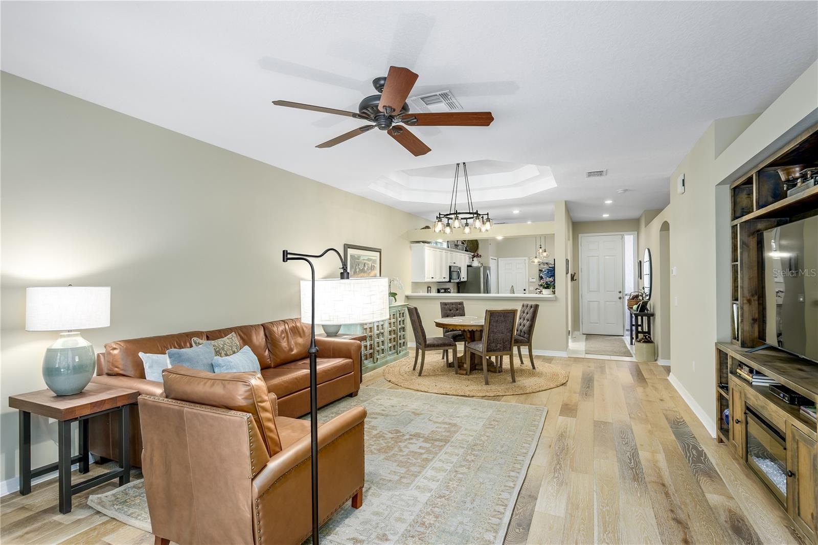 One or more photo(s) has been virtually staged. Easy Living in This Beautiful End-Unit Villa! Enjoy all the fun of the Active 55+ Lifestyle in this well-maintained and updated home. This lovely villa features numerous recent improvements, including: • Roof (2021) • A/C (2023) • Water Softener (2025), Reverse osmosis filter • Kitchen Appliances (2020) Modern Range with Convection Oven and Built-in Air Fryer • Fresh Interior Paint • Stunning Brushed Oak engineered wood floors • Re-screened Garage Door & Courtyard Entryway. *Solar panel attic fan and extra insulation. Step inside and you’ll love the spacious, bright open floorplan with a combined living and dining area, enhanced by a tray ceiling and elegant chandelier. The kitchen offers plenty of cabinets and counter space, along with a cozy breakfast nook. The split-bedroom layout provides privacy, with the primary suite tucked away at the rear overlooking the tranquil nature preserve. It features a bay window, en-suite bath with dual sinks and shower, and a large walk-in closet. The guest bedroom enjoys a charming view of the front courtyard, with a nearby full bath and an indoor laundry room adding to the convenience. Enjoy the wonderful outdoor living space featuring an enclosed patio and a spacious private screened-in lanai with serene views of the preserve Located in a sought-after gated golf community, you’ll enjoy a full calendar of amenities and activities including a clubhouse with restaurant, library, fitness center, ballroom, 18-hole golf course, driving range, plus courts for tennis, pickleball, bocce, shuffleboard, and even a dog park. The quarterly HOA fee covers roof replacement, exterior paint, cable TV, internet, lawn care—even the lawn sprinklers. Conveniently located just outside the guard gate is a Publix plaza offering restaurants, a bank, hair and nail salon, animal hospital, and more for your everyday needs. Beautiful inside and out – come experience the lifestyle you’ve been looking for!