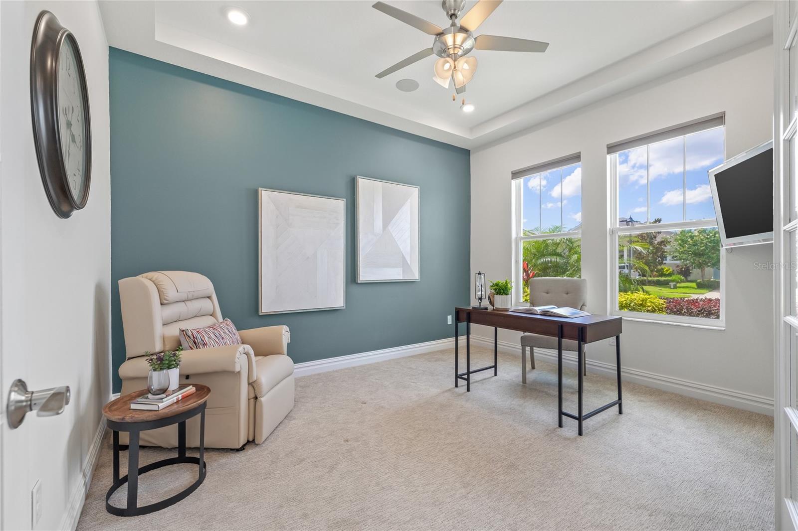 Luxury and lifestyle meet in this rare, elegant one-story estate—The St. Lucia by Cardel Homes—Bexley’s largest single-story floor plan. Over 3,000 square feet of living space, soaring 12-foot ceilings, and a flowing, custom-designed layout, this home delivers timeless style and exceptional value. A $17,000 lender-paid incentive toward a rate buy-down or closing costs is available on accepted offers. From the striking 8-foot front door, you’re welcomed into a dramatic foyer that opens to a formal dining room with an elegant waffle tray ceiling and a private home office behind French doors. The spacious great room seamlessly connects to a gourmet kitchen featuring quartz countertops, abundant cabinetry, and a charming dinette area ideal for casual meals. A versatile bonus room with custom built-ins, full bath, and direct pool access offers the perfect spot for a media room, playroom, or guest suite. The private owner’s suite is a true retreat with dual walk-in closets, a spa-inspired bath with soaking tub and separate shower, and direct access to the heated pool and patio. Additional highlights include a dedicated laundry room with custom cabinetry, dual-zone air conditioning, and a welcoming front porch perfect for morning coffee. Step outside to your personal backyard oasis featuring a heated resort-style pool with elegant travertine decking, all set against tranquil conservation and pond views. This space was designed for both entertaining and quiet relaxation. Nestled on the serene western edge of Bexley, the home offers privacy while keeping you close to the Veterans Expressway and Tampa Bay’s top destinations. Residents enjoy award-winning amenities including resort-style pools, more than 10 miles of scenic trails, playgrounds, a state-of-the-art fitness center, clubhouse, dog parks, and The Hub at Bexley—a lively spot for dining, shopping, and community events. This is a rare opportunity to own one of Bexley’s most distinguished single-story homes, now with exceptional buyer incentives. Schedule your private tour today.