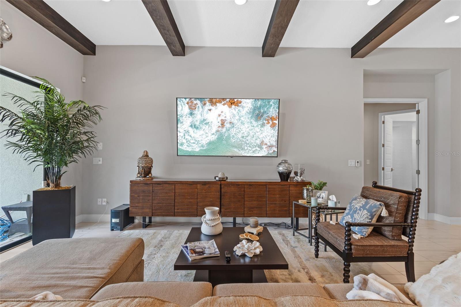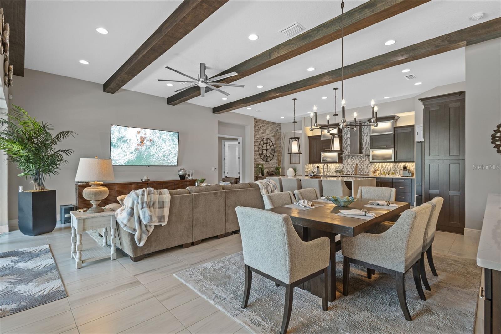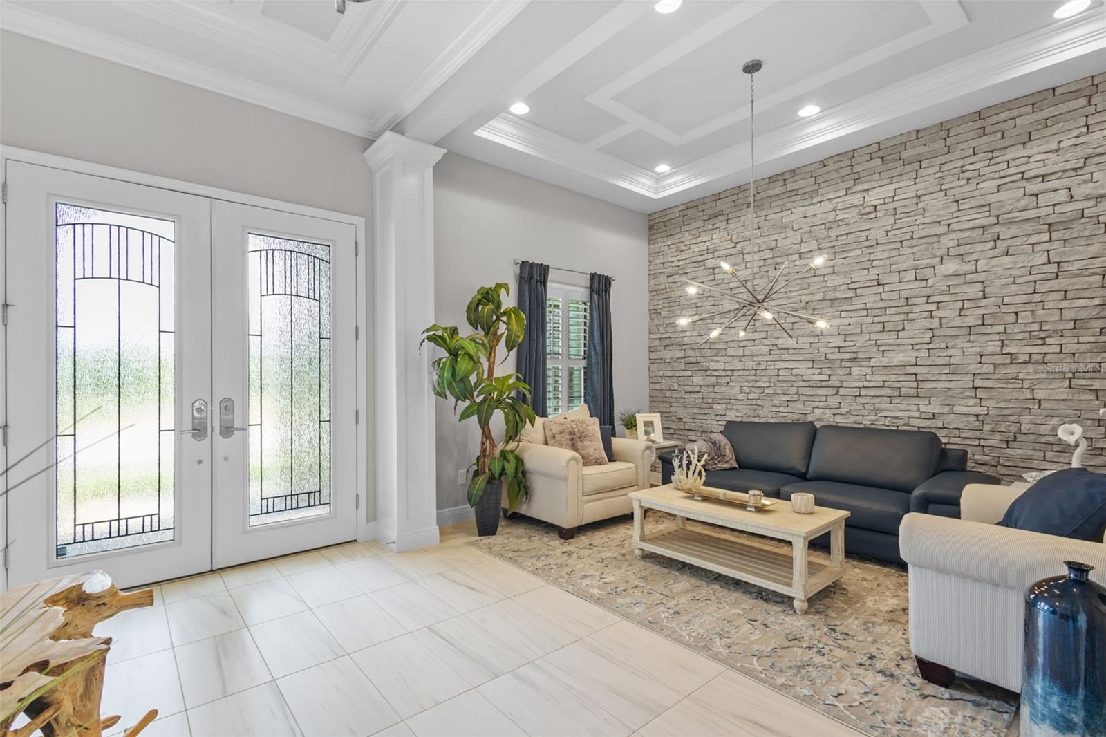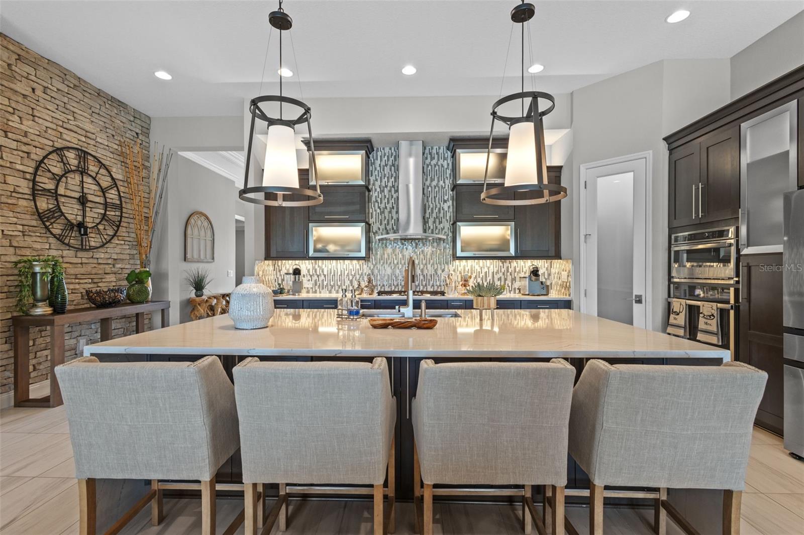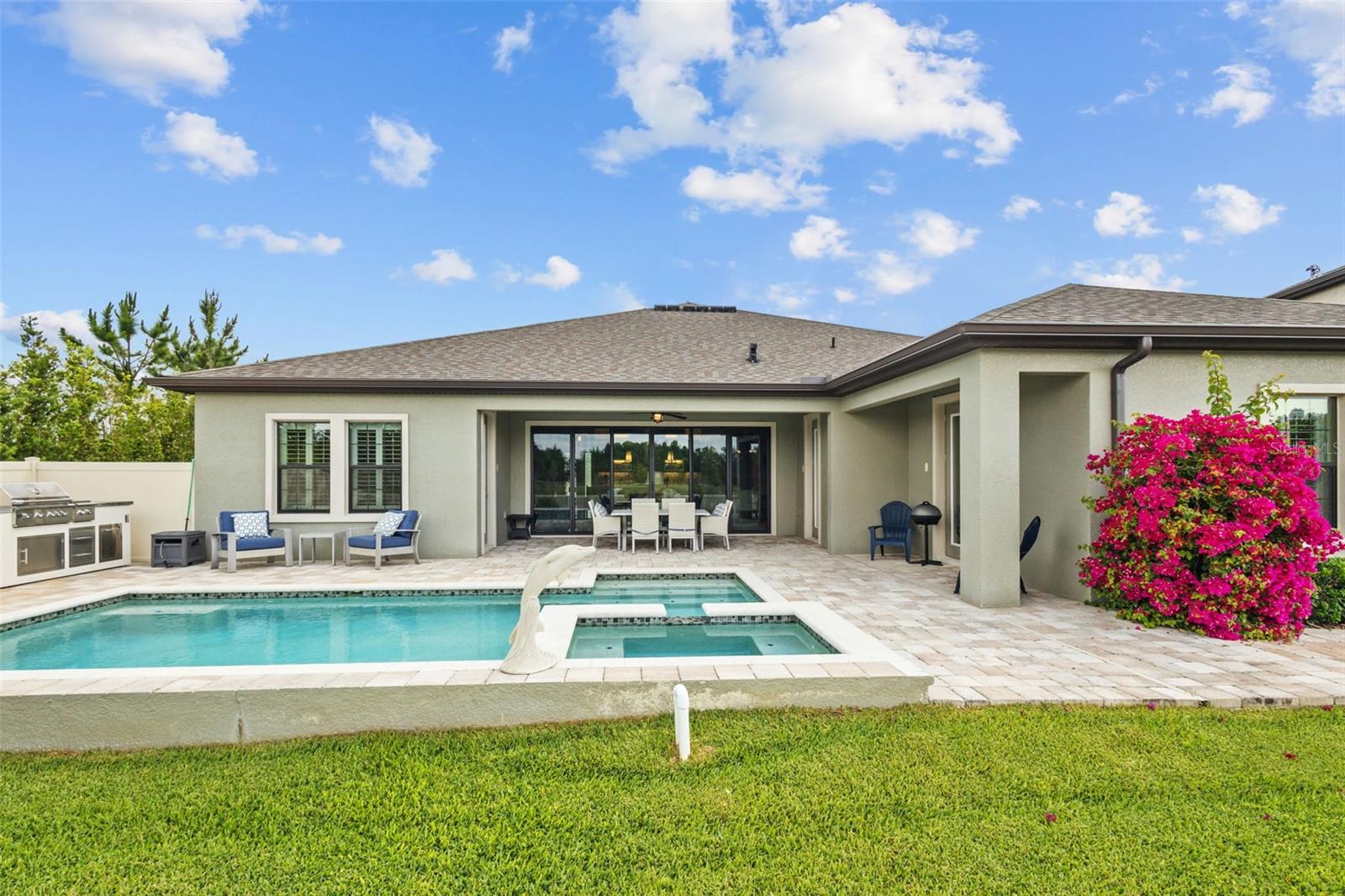 EXQUISITE LUXURY LIVING IN THE HEART OF LAND O' LAKES! Welcome to this stunning 4-bedroom, 3-bathroom lakefront estate with a dedicated HOME OFFICE, formal living room, BONUS room, and 3-car garage, located in the prestigious Connerton Village. Meticulously maintained and thoughtfully upgraded, this elegant residence combines timeless sophistication with resort-style living. This one-of-a-kind home boasts an exceptional layout with over 3,250 sq ft of living space, showcasing refined design elements including stone accent walls, ceiling beams, and elegant finishes throughout. Upon entry, you're greeted by a formal living room — a refined space ideal for receiving guests or enjoying quiet moments. From there, the home flows effortlessly into the heart of the residence: an expansive open kitchen with a quartz waterfall island, stainless steel appliances, walk-in pantry, and abundant cabinet space. Adjacent, the family room and dining area create the ideal setting for entertaining or relaxing with family. The dedicated home office, located near the front entry, provides a quiet retreat perfect for remote work or study. Toward the back of the home, you'll find a spacious bonus room, offering flexible use as a media room, playroom, fitness space, or additional lounge area — all while enjoying views of the serene backyard. The primary suite is privately situated with lake views and includes a spa-like en-suite bath with a freestanding tub, oversized walk-in shower, dual vanities, and a spacious walk-in closet. The additional three bedrooms are generously sized and located in separate wings for enhanced privacy and versatility. Step outside to your own private sanctuary. The pavered outdoor living area is perfect for Florida living, complete with a spa-style pool and breathtaking views of the tranquil lake/pond just beyond your backyard. Whether you're enjoying a quiet morning coffee or entertaining under the stars, this home delivers a seamless indoor-outdoor experience. Residents of Connerton Village enjoy access to resort-style amenities including a luxurious clubhouse, fitness center, resort pool, nature trails, playgrounds, dog parks, and vibrant community events — all designed to elevate your lifestyle. Conveniently located near top-rated schools, upscale shopping, dining, and just a short drive from downtown Tampa, this exceptional home offers both elegance and everyday convenience. Schedule your private tour today and experience unmatched luxury and lifestyle!