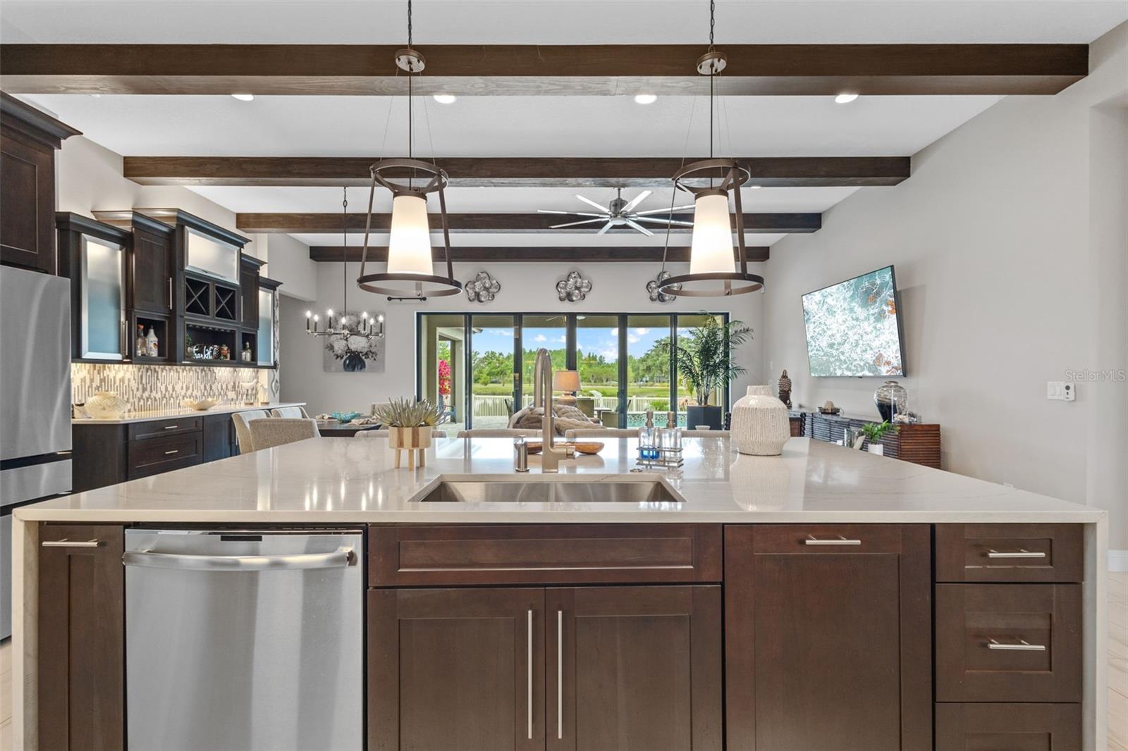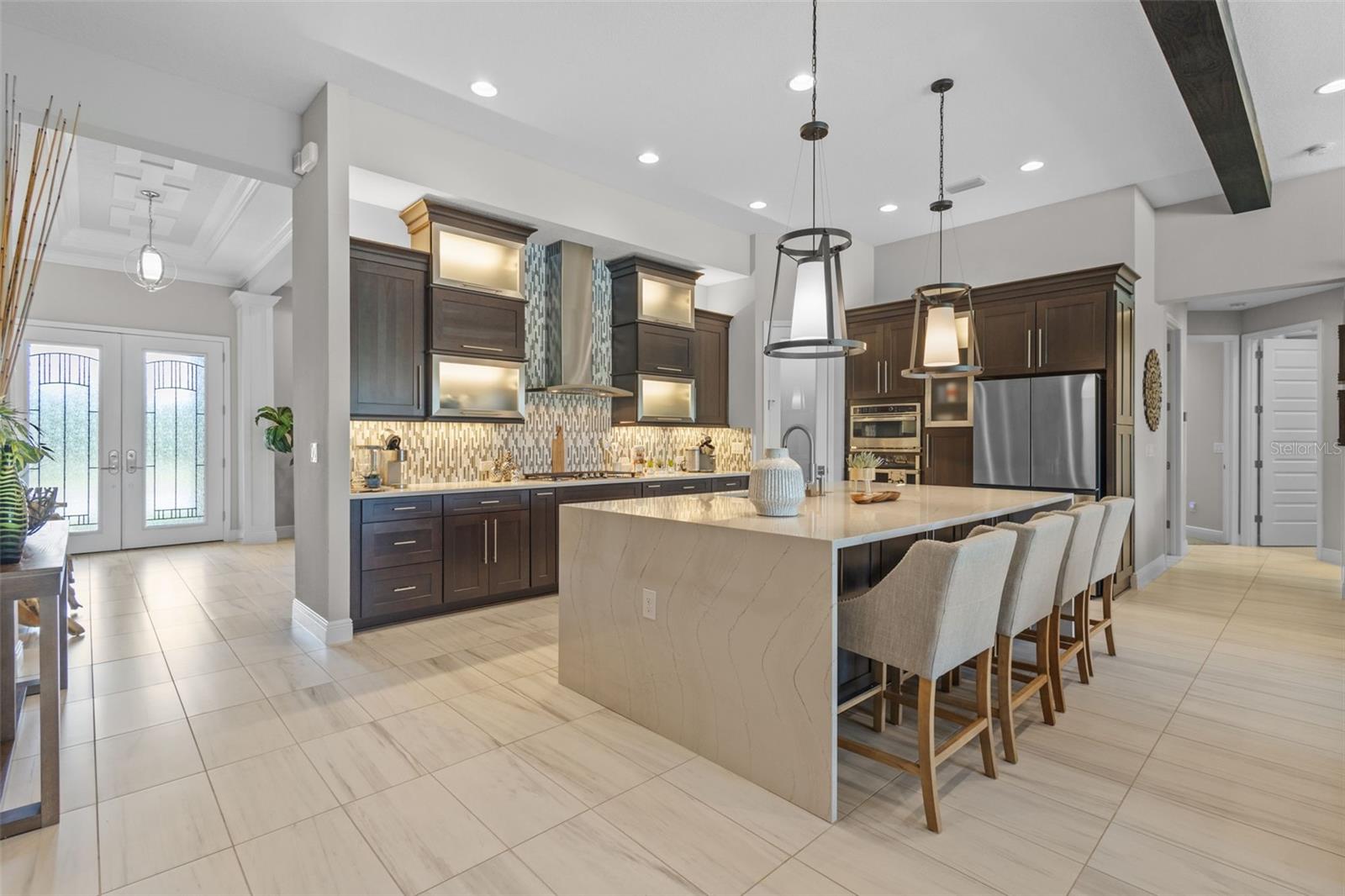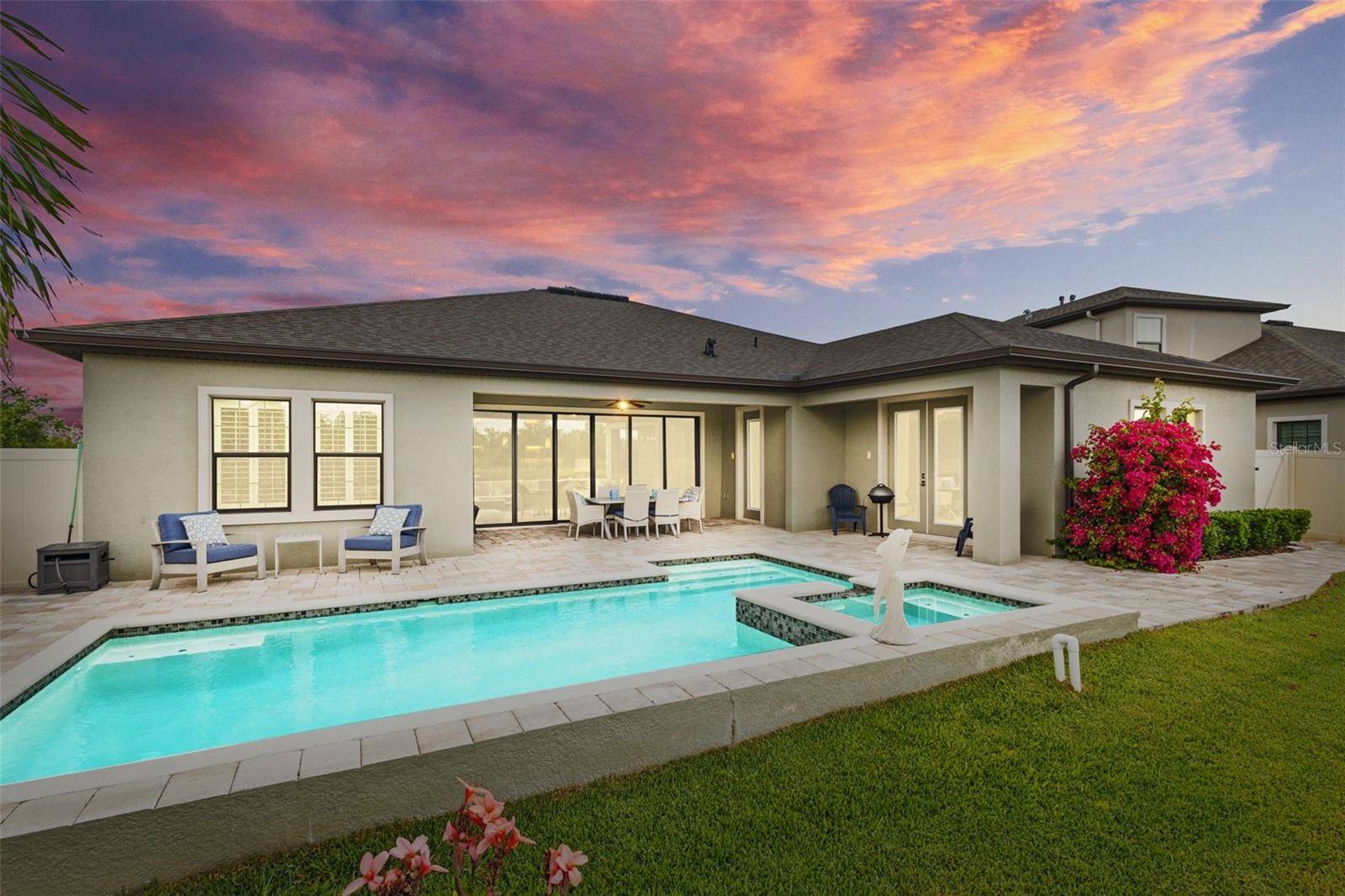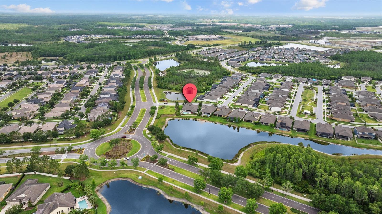 EXQUISITE LUXURY LIVING IN THE HEART OF LAND O' LAKES! Welcome to this stunning 4-bedroom, 3-bathroom lakefront estate with a dedicated HOME OFFICE, formal living room, BONUS room, and 3-car garage, located in the prestigious Connerton Village. Meticulously maintained and thoughtfully upgraded, this elegant residence combines timeless sophistication with resort-style living. This one-of-a-kind home boasts an exceptional layout with over 3,250 sq ft of living space, showcasing refined design elements including stone accent walls, ceiling beams, and elegant finishes throughout. Upon entry, you're greeted by a formal living room — a refined space ideal for receiving guests or enjoying quiet moments. From there, the home flows effortlessly into the heart of the residence: an expansive open kitchen with a quartz waterfall island, stainless steel appliances, walk-in pantry, and abundant cabinet space. Adjacent, the family room and dining area create the ideal setting for entertaining or relaxing with family. The dedicated home office, located near the front entry, provides a quiet retreat perfect for remote work or study. Toward the back of the home, you'll find a spacious bonus room, offering flexible use as a media room, playroom, fitness space, or additional lounge area — all while enjoying views of the serene backyard. The primary suite is privately situated with lake views and includes a spa-like en-suite bath with a freestanding tub, oversized walk-in shower, dual vanities, and a spacious walk-in closet. The additional three bedrooms are generously sized and located in separate wings for enhanced privacy and versatility. Step outside to your own private sanctuary. The pavered outdoor living area is perfect for Florida living, complete with a spa-style pool and breathtaking views of the tranquil lake/pond just beyond your backyard. Whether you're enjoying a quiet morning coffee or entertaining under the stars, this home delivers a seamless indoor-outdoor experience. Residents of Connerton Village enjoy access to resort-style amenities including a luxurious clubhouse, fitness center, resort pool, nature trails, playgrounds, dog parks, and vibrant community events — all designed to elevate your lifestyle. Conveniently located near top-rated schools, upscale shopping, dining, and just a short drive from downtown Tampa, this exceptional home offers both elegance and everyday convenience. Schedule your private tour today and experience unmatched luxury and lifestyle!