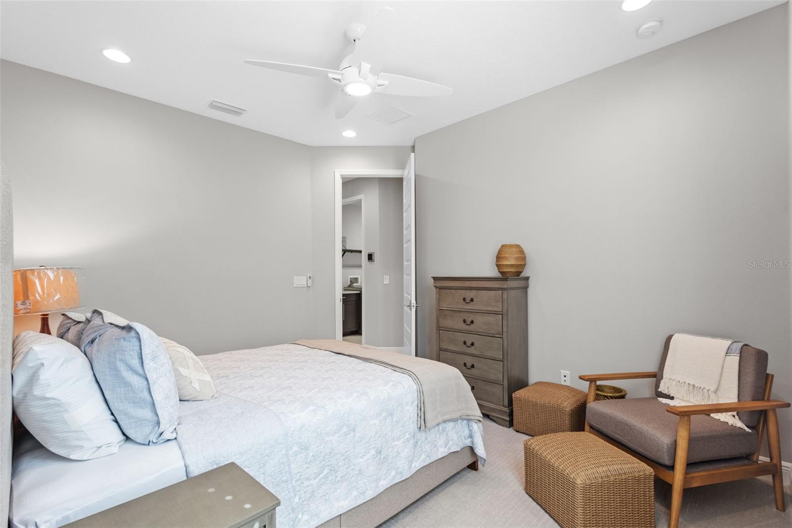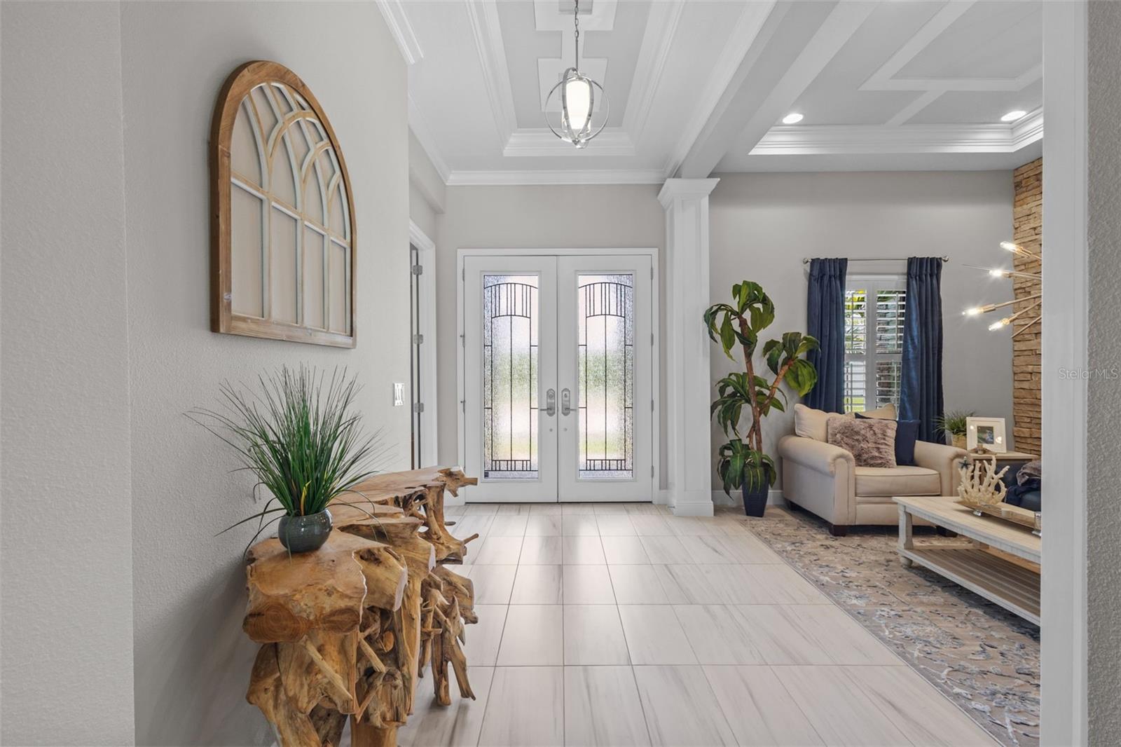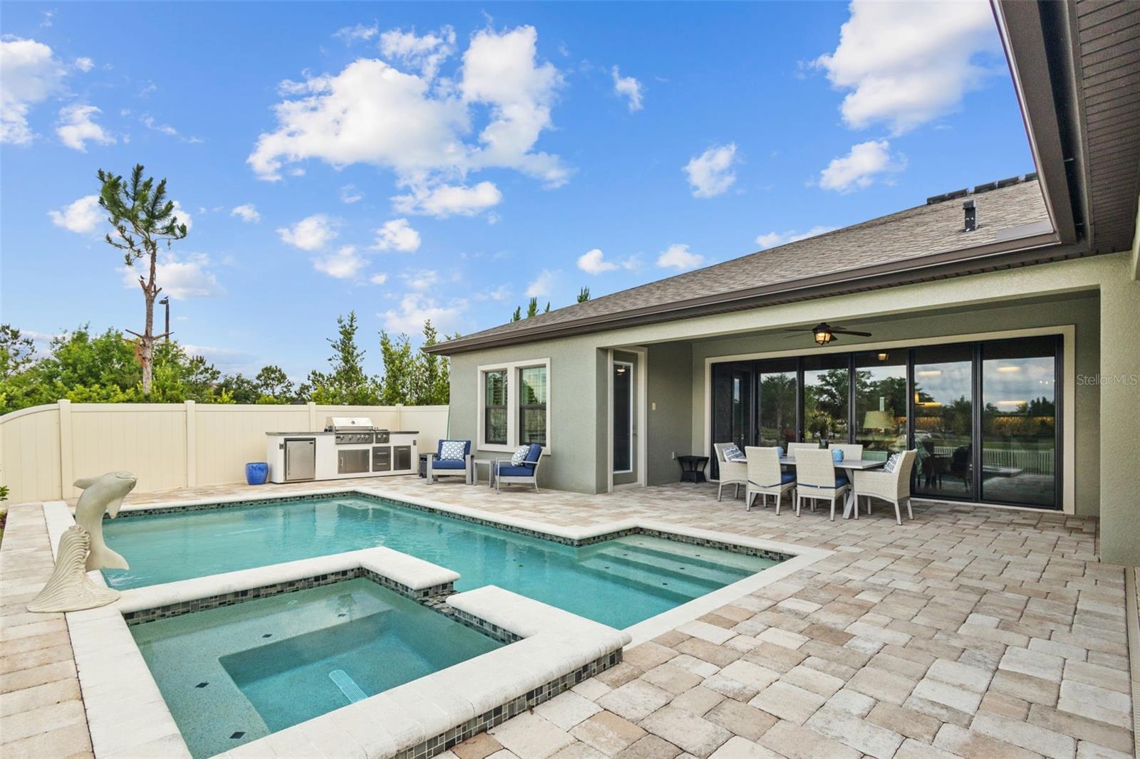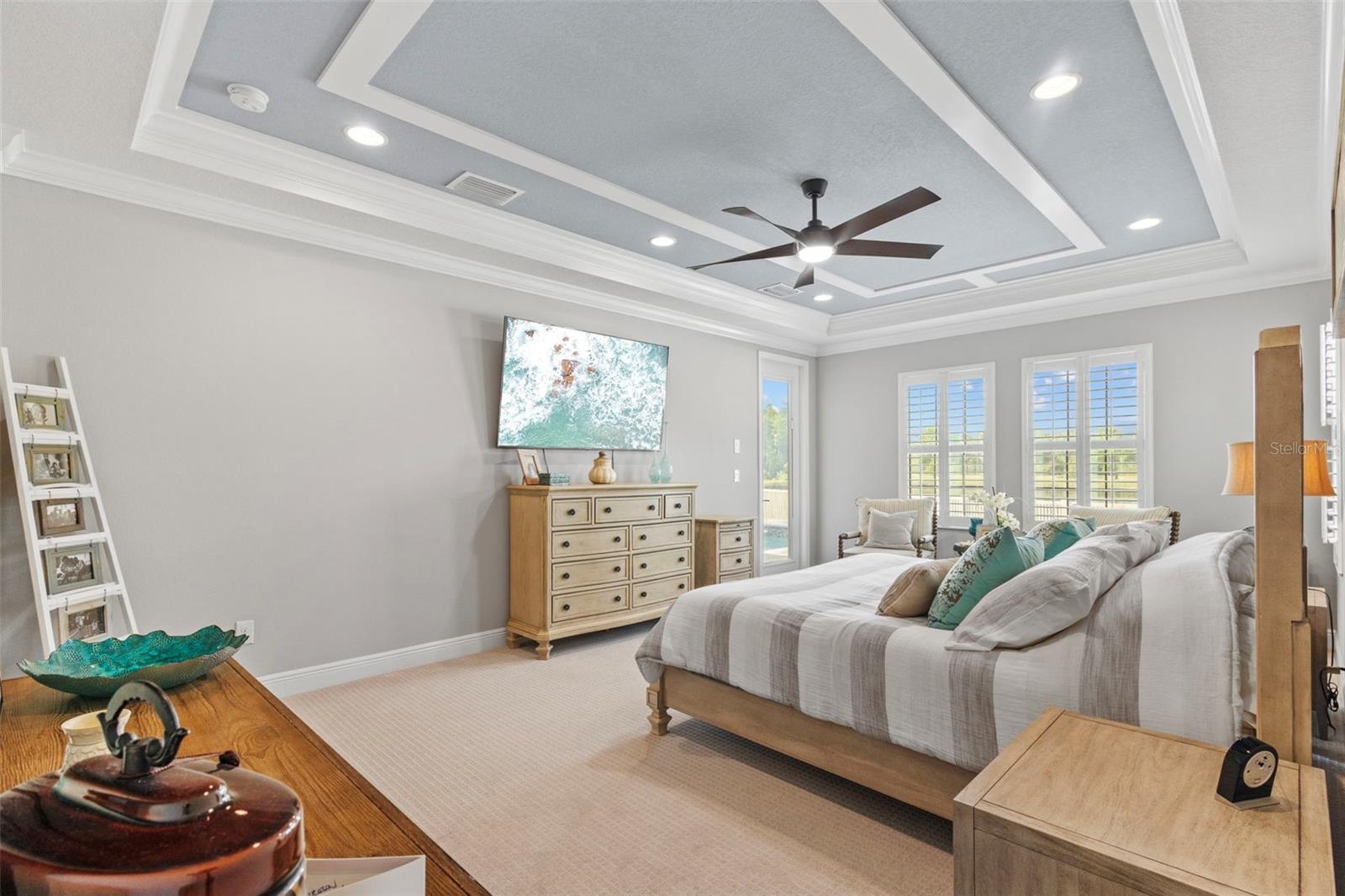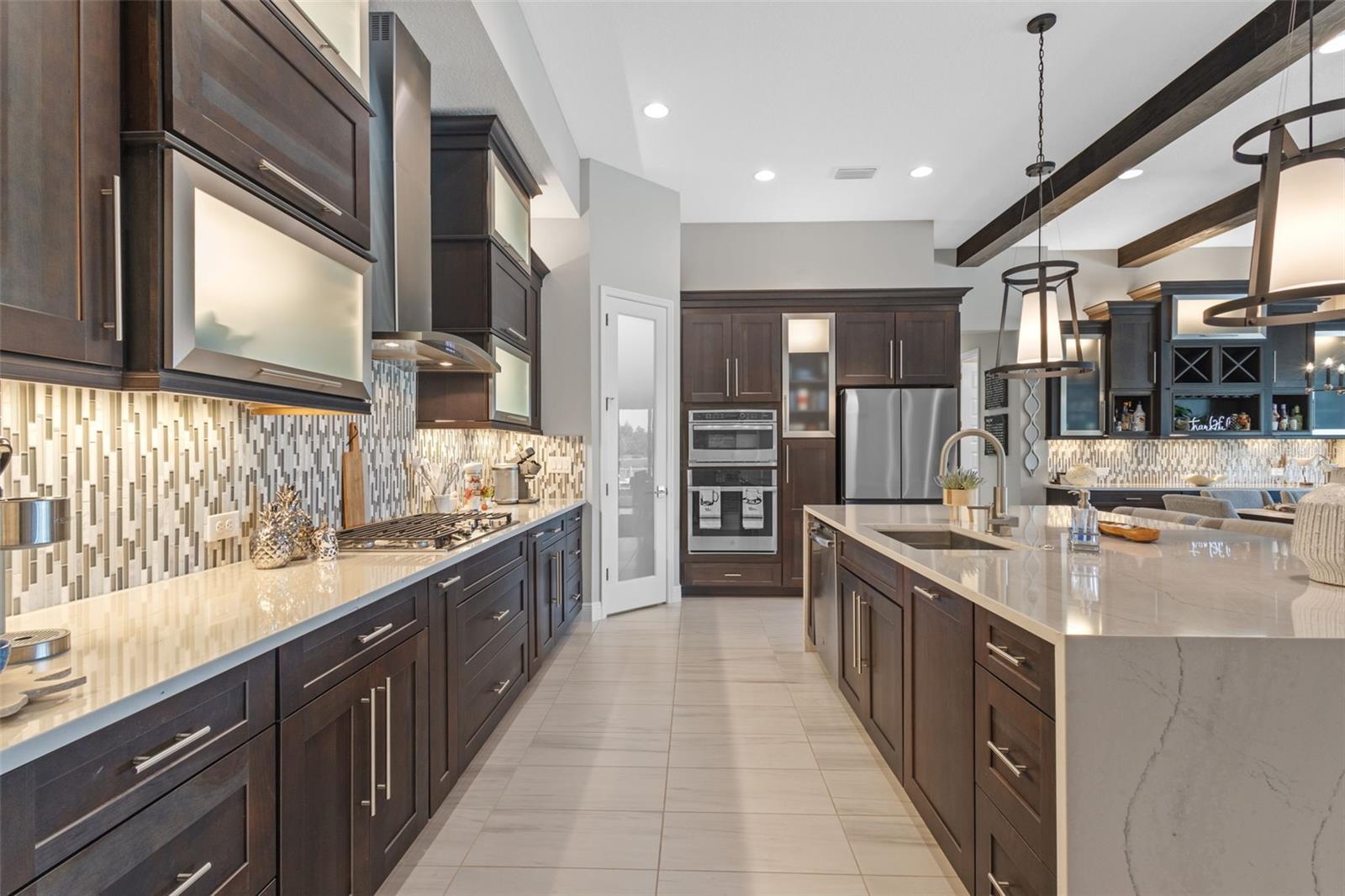EXQUISITE LUXURY LIVING IN THE HEART OF LAND O' LAKES! Welcome to this stunning 4-bedroom, 3-bathroom lakefront estate with a dedicated HOME OFFICE, formal living room, BONUS room, and 3-car garage, located in the prestigious Connerton Village. Meticulously maintained and thoughtfully upgraded, this elegant residence combines timeless sophistication with resort-style living. This one-of-a-kind home boasts an exceptional layout with over 3,250 sq ft of living space, showcasing refined design elements including stone accent walls, ceiling beams, and elegant finishes throughout. Upon entry, you're greeted by a formal living room — a refined space ideal for receiving guests or enjoying quiet moments. From there, the home flows effortlessly into the heart of the residence: an expansive open kitchen with a quartz waterfall island, stainless steel appliances, walk-in pantry, and abundant cabinet space. Adjacent, the family room and dining area create the ideal setting for entertaining or relaxing with family. The dedicated home office, located near the front entry, provides a quiet retreat perfect for remote work or study. Toward the back of the home, you'll find a spacious bonus room, offering flexible use as a media room, playroom, fitness space, or additional lounge area — all while enjoying views of the serene backyard. The primary suite is privately situated with lake views and includes a spa-like en-suite bath with a freestanding tub, oversized walk-in shower, dual vanities, and a spacious walk-in closet. The additional three bedrooms are generously sized and located in separate wings for enhanced privacy and versatility. Step outside to your own private sanctuary. The pavered outdoor living area is perfect for Florida living, complete with a spa-style pool and breathtaking views of the tranquil lake/pond just beyond your backyard. Whether you're enjoying a quiet morning coffee or entertaining under the stars, this home delivers a seamless indoor-outdoor experience. Residents of Connerton Village enjoy access to resort-style amenities including a luxurious clubhouse, fitness center, resort pool, nature trails, playgrounds, dog parks, and vibrant community events — all designed to elevate your lifestyle. Conveniently located near top-rated schools, upscale shopping, dining, and just a short drive from downtown Tampa, this exceptional home offers both elegance and everyday convenience. Schedule your private tour today and experience unmatched luxury and lifestyle!