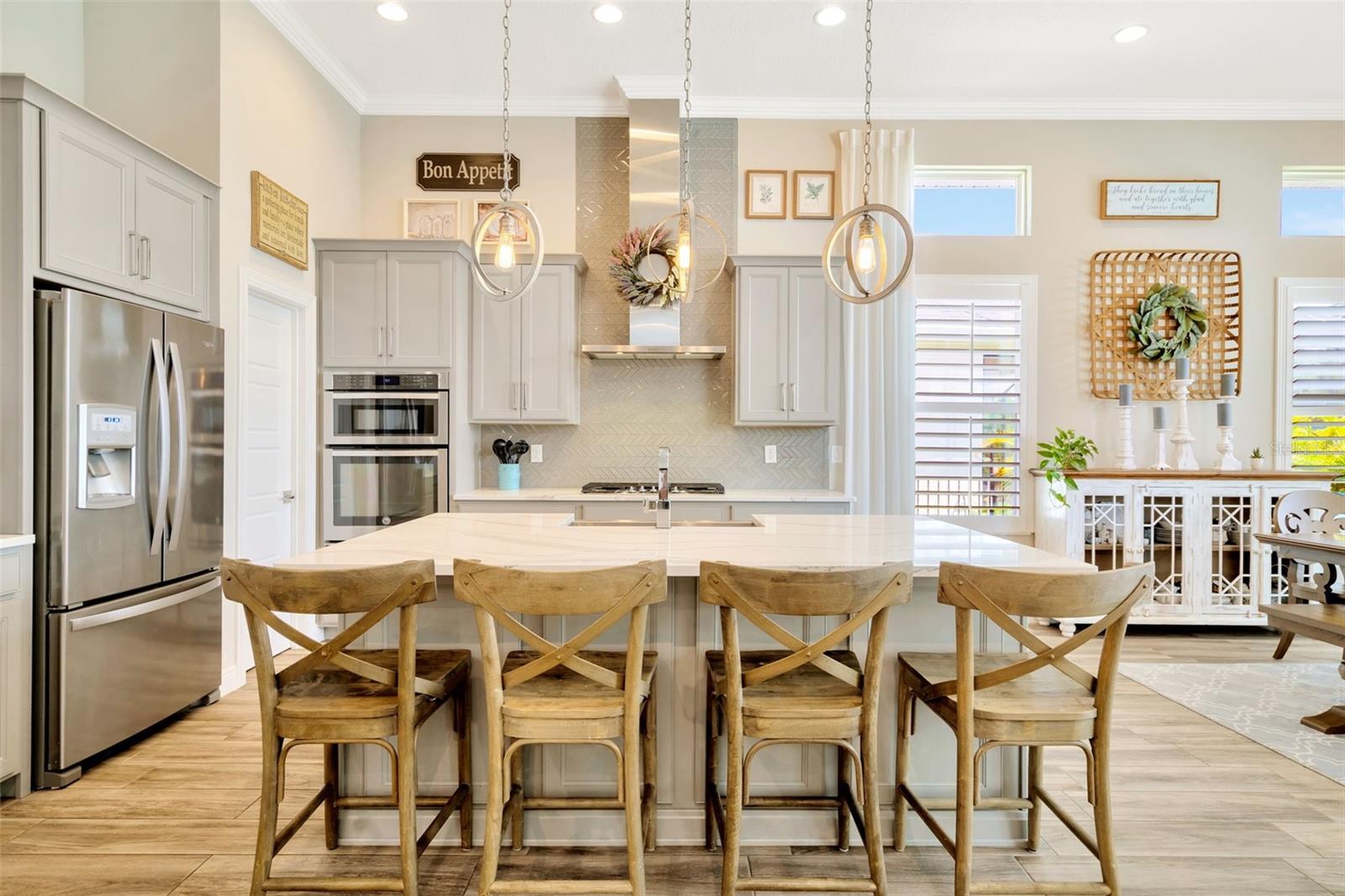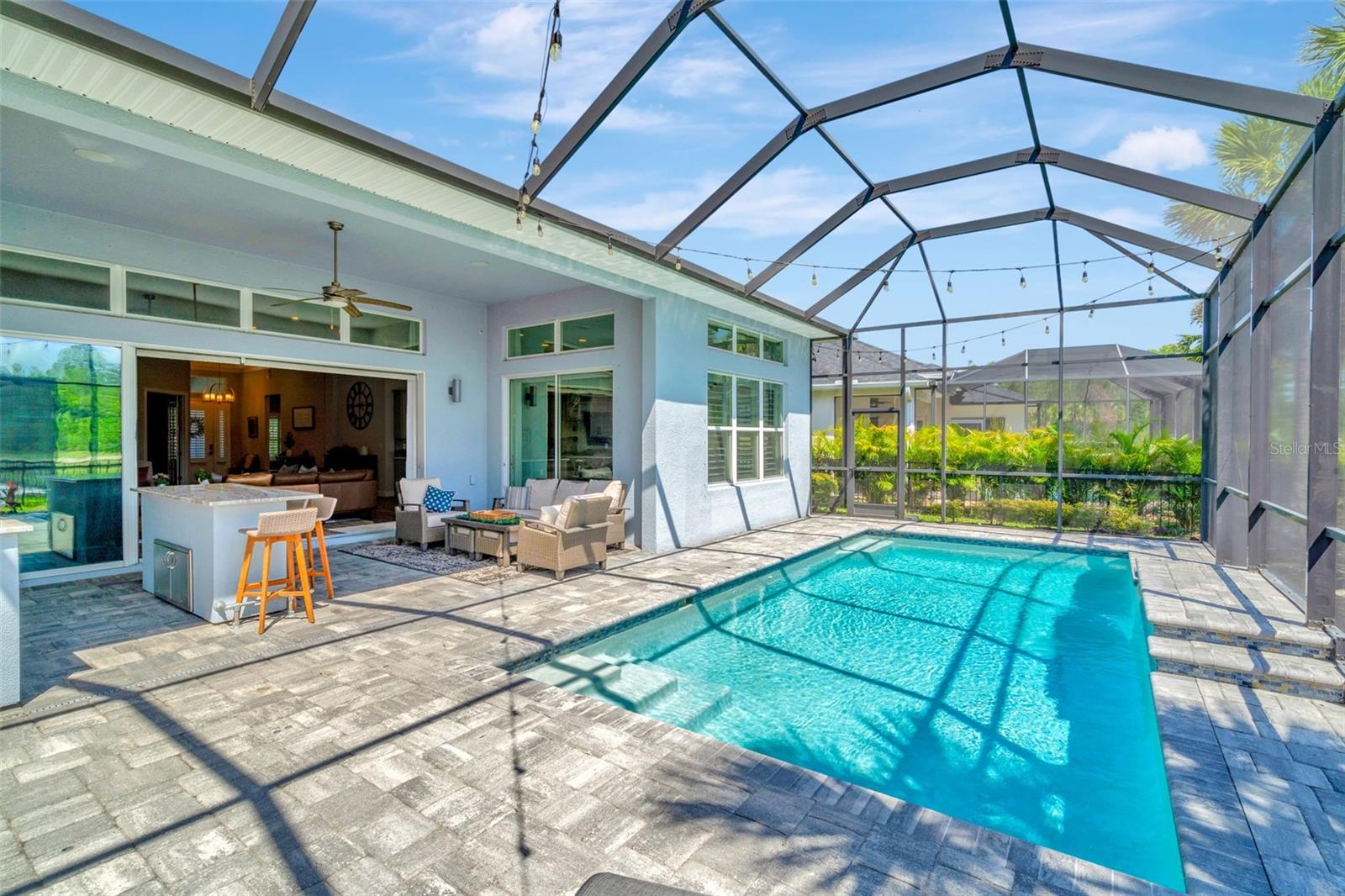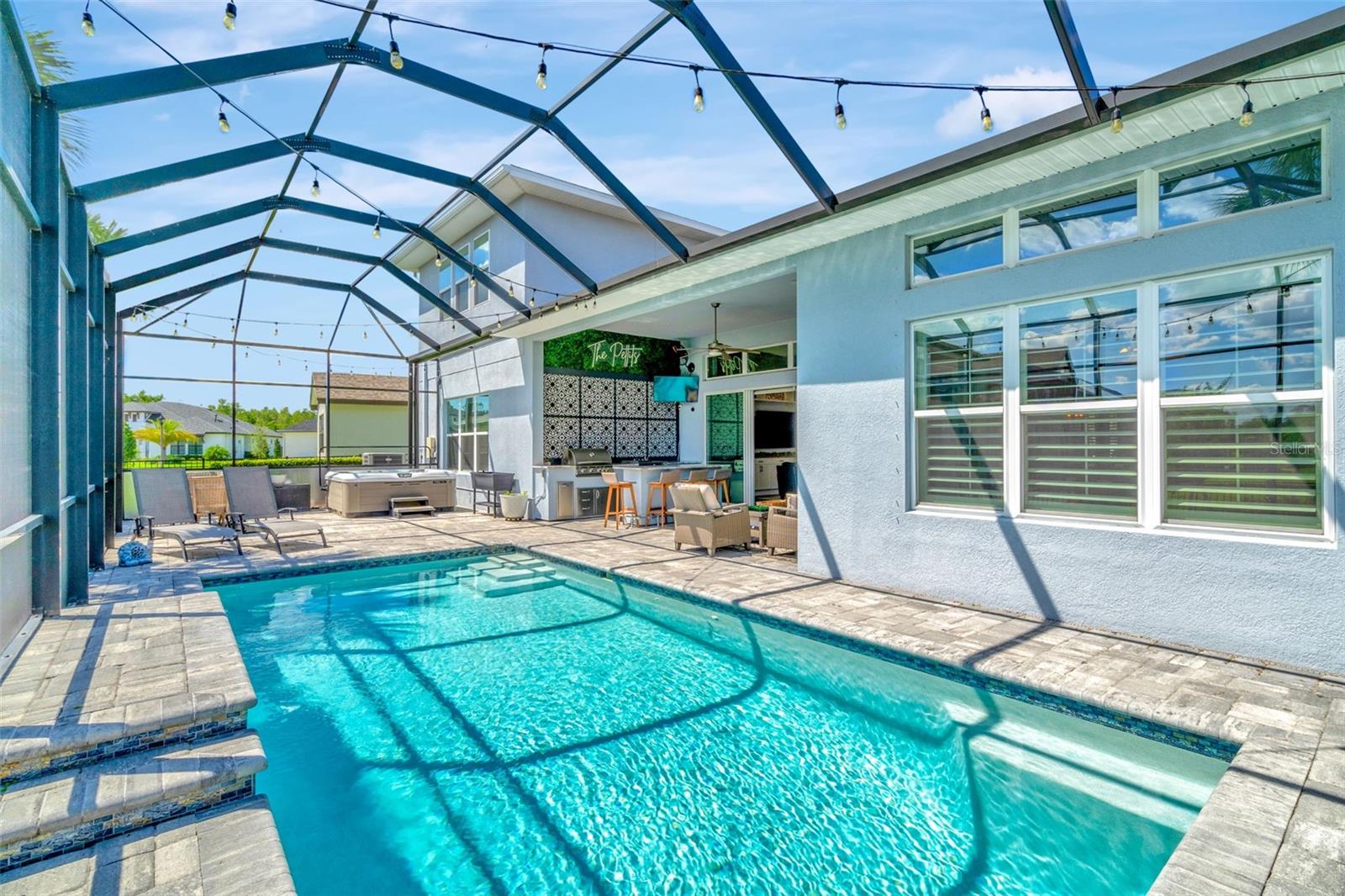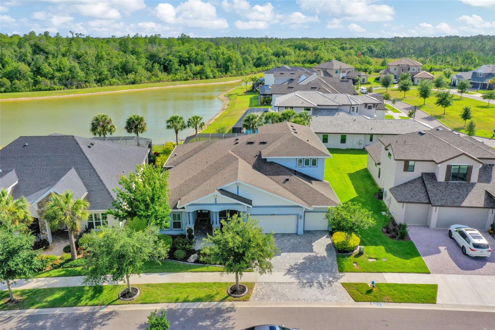 Welcome to luxury waterside living at its finest in the pristine neighborhood of Bexley! This stunning, custom-built “Henley” model by Cardel features 5 bedrooms, 4 full baths, den/office and large bonus room. Your new estate home will boast elegance, comfort and easy living throughout. Step into a world of refined beauty with elevated ceilings bathed in natural light that accentuates every corner of this gorgeous two-story home. You will love the well-appointed, large living area with custom built-in cabinetry and prewired surround sound. The chef’s dream kitchen is equipped with top-of-the-line appliances, quartz countertops, a large pantry, and the perfect amount of space for all of your culinary creations. The large kitchen island has plenty of room for seating and entertaining. Entertain in style with multiple sliding glass doors that seamlessly connect the indoors to the outdoors where you will find a fully equipped outdoor kitchen and heated pool along with a separate hot tub. The sliding glass doors feature electric blinds for convenience and privacy. Relax and unwind in the first floor, luxurious owners’ suite, complete with a large shower and a large free-standing tub. The walk-in closet with custom organization system will be the envy of your friends and family. Also, downstairs, you will find 2 large bedrooms that share one of 4 total bathrooms, another large 4th bedroom, and a large office that is great for those that may work from home. Upstairs, discover a stunning bonus room with captivating water views, a 5th bedroom, and a full 4th bath. The interior laundry room features plenty of cabinets for storage, a full sink, and generous countertop space. You will really love the functionality of the mudroom from the garage entrance featuring built-in cabinetry. You will also enjoy the views of the tranquil pond and wetlands beyond from your own backyard. Additional features include a 3-car garage, and whole-house water softener and filtration system, as well as new concrete landscape curbing, and “Govee” app-controlled soffit lighting for easy holiday lighting. Don’t miss this rare opportunity to own a piece of paradise in the heart of Bexley. This community offers it all, from community pools and playgrounds, 26 miles of biking, hiking, and walking trails, fitness center, game rooms, and of course, the Twisted Sprocket Café. Be sure to check out the virtual tours! Schedule your private tour today and experience luxury living at its finest!