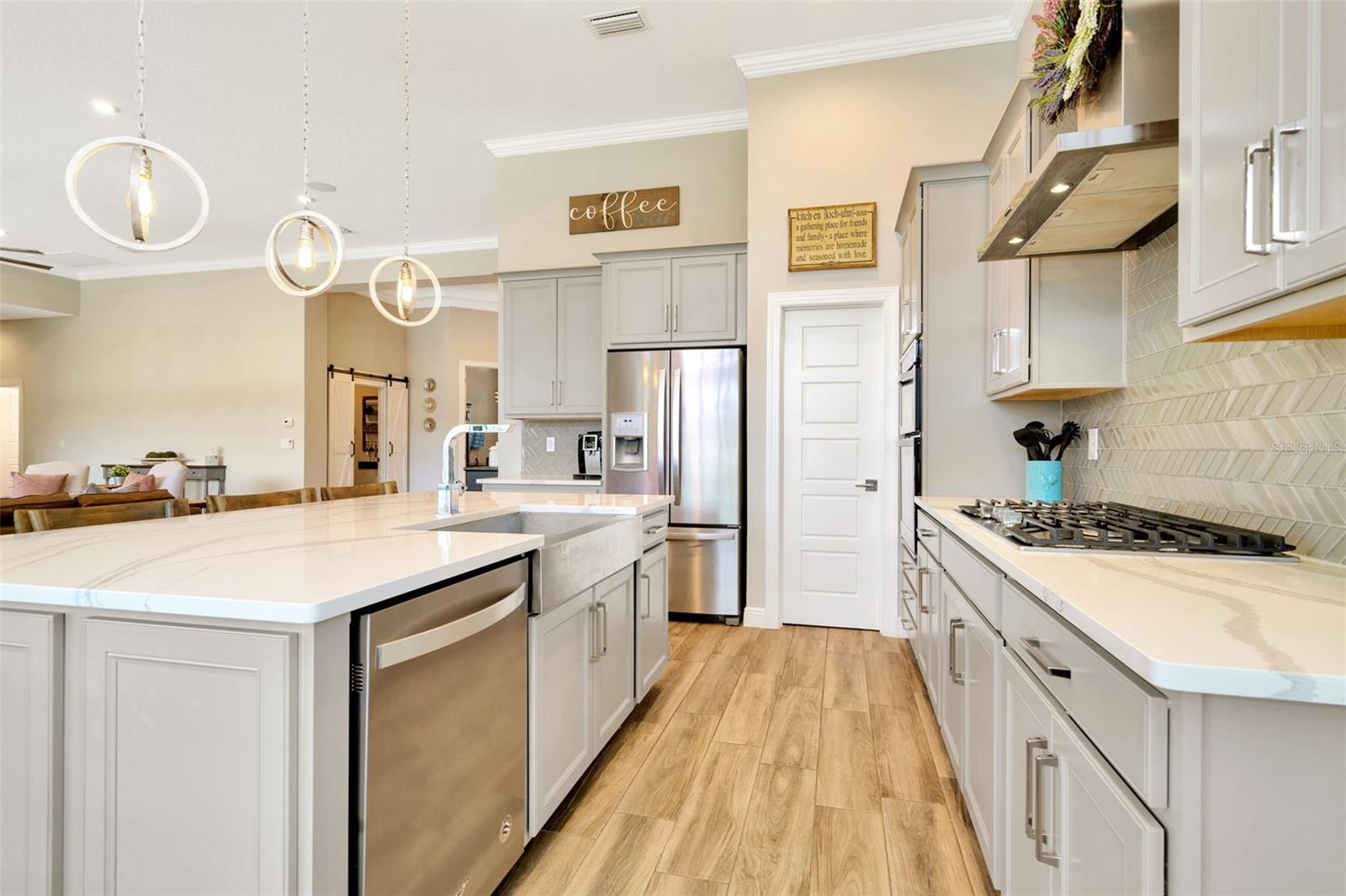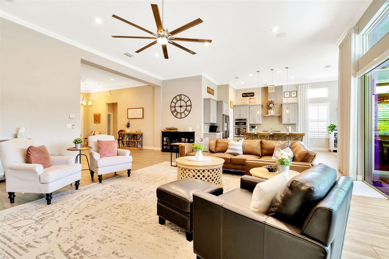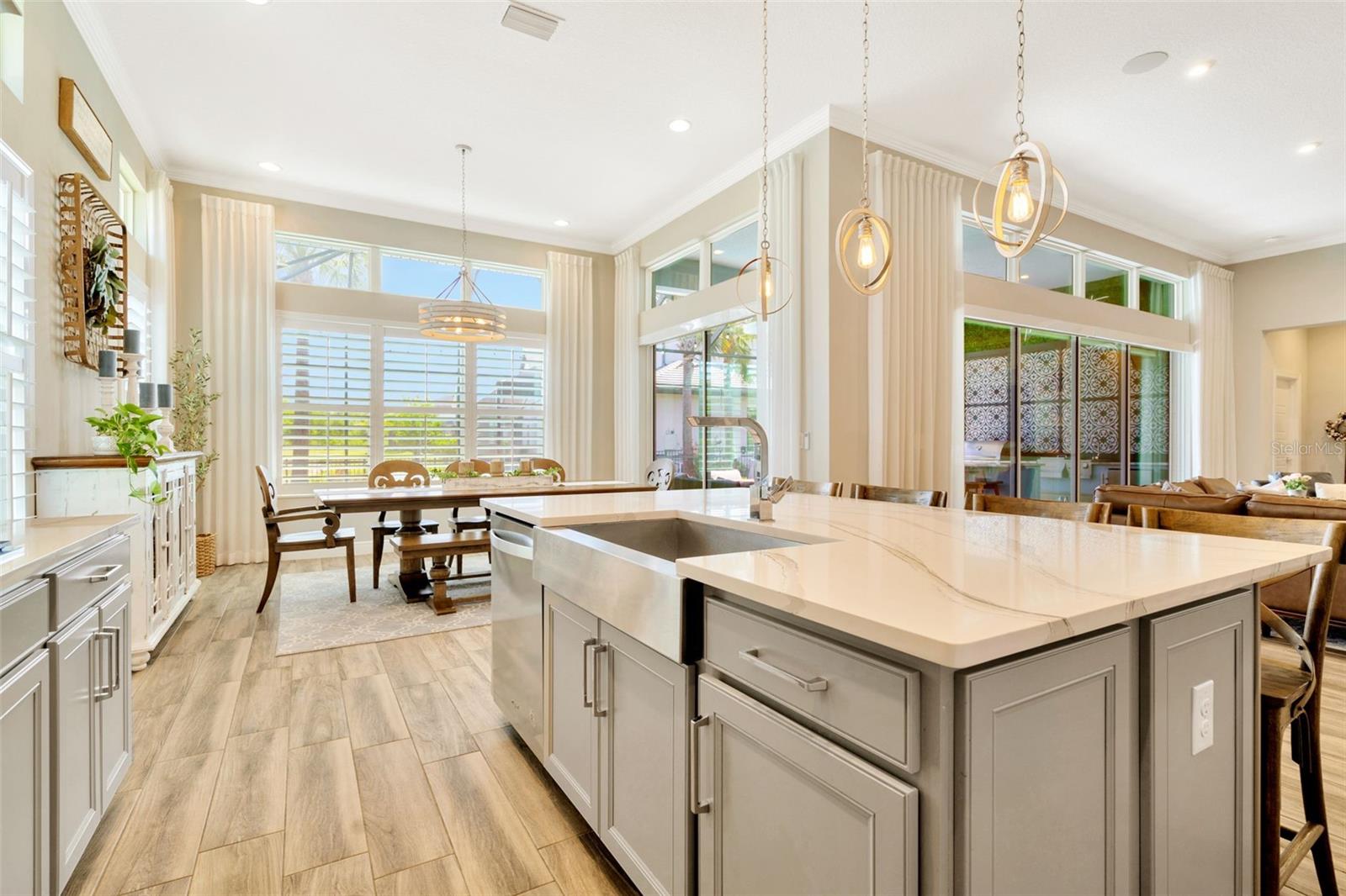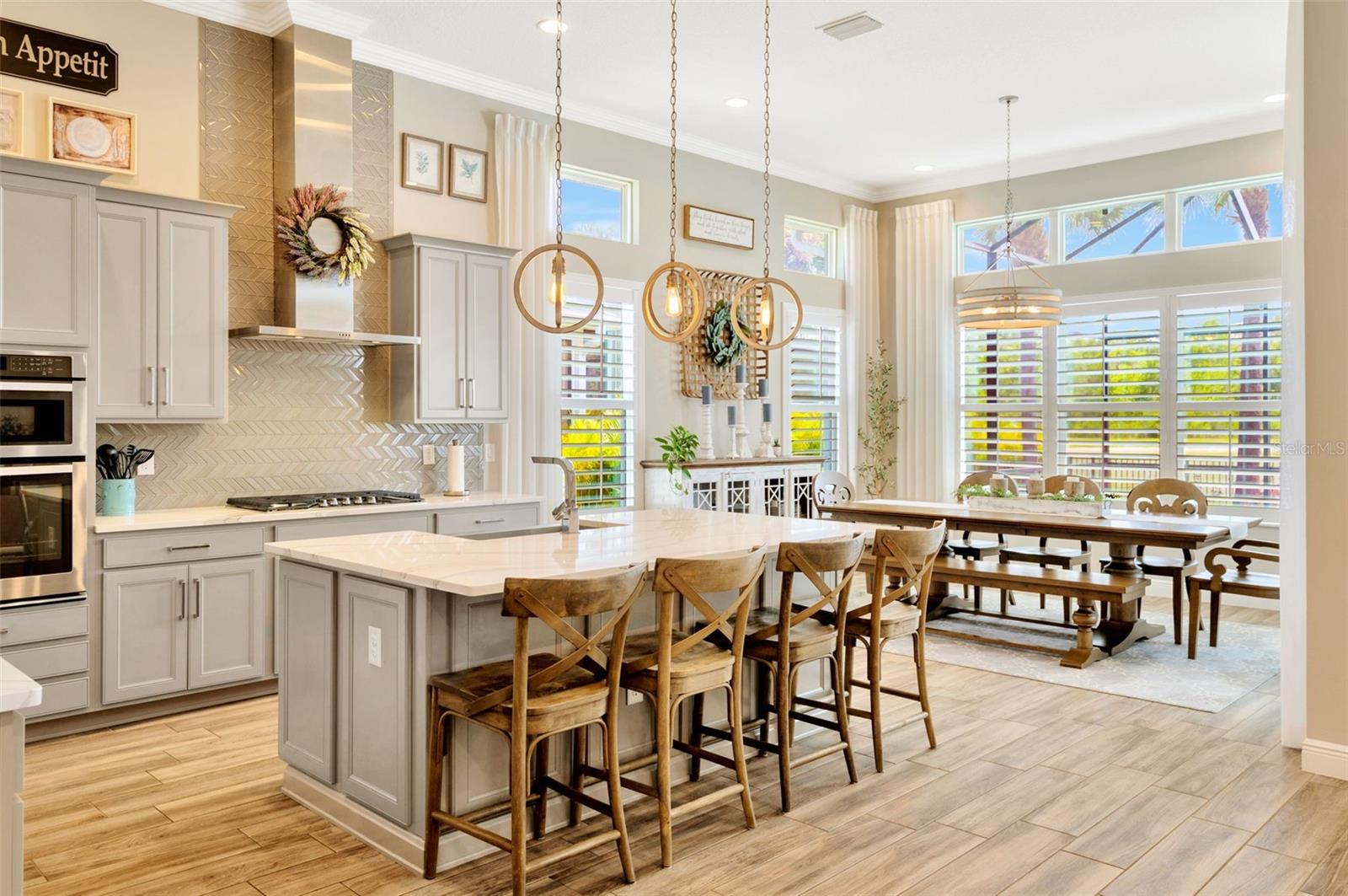 Welcome to luxury waterside living at its finest in the pristine neighborhood of Bexley! This stunning, custom-built “Henley” model by Cardel features 5 bedrooms, 4 full baths, den/office and large bonus room. Your new estate home will boast elegance, comfort and easy living throughout. Step into a world of refined beauty with elevated ceilings bathed in natural light that accentuates every corner of this gorgeous two-story home. You will love the well-appointed, large living area with custom built-in cabinetry and prewired surround sound. The chef’s dream kitchen is equipped with top-of-the-line appliances, quartz countertops, a large pantry, and the perfect amount of space for all of your culinary creations. The large kitchen island has plenty of room for seating and entertaining. Entertain in style with multiple sliding glass doors that seamlessly connect the indoors to the outdoors where you will find a fully equipped outdoor kitchen and heated pool along with a separate hot tub. The sliding glass doors feature electric blinds for convenience and privacy. Relax and unwind in the first floor, luxurious owners’ suite, complete with a large shower and a large free-standing tub. The walk-in closet with custom organization system will be the envy of your friends and family. Also, downstairs, you will find 2 large bedrooms that share one of 4 total bathrooms, another large 4th bedroom, and a large office that is great for those that may work from home. Upstairs, discover a stunning bonus room with captivating water views, a 5th bedroom, and a full 4th bath. The interior laundry room features plenty of cabinets for storage, a full sink, and generous countertop space. You will really love the functionality of the mudroom from the garage entrance featuring built-in cabinetry. You will also enjoy the views of the tranquil pond and wetlands beyond from your own backyard. Additional features include a 3-car garage, and whole-house water softener and filtration system, as well as new concrete landscape curbing, and “Govee” app-controlled soffit lighting for easy holiday lighting. Don’t miss this rare opportunity to own a piece of paradise in the heart of Bexley. This community offers it all, from community pools and playgrounds, 26 miles of biking, hiking, and walking trails, fitness center, game rooms, and of course, the Twisted Sprocket Café. Be sure to check out the virtual tours! Schedule your private tour today and experience luxury living at its finest!
