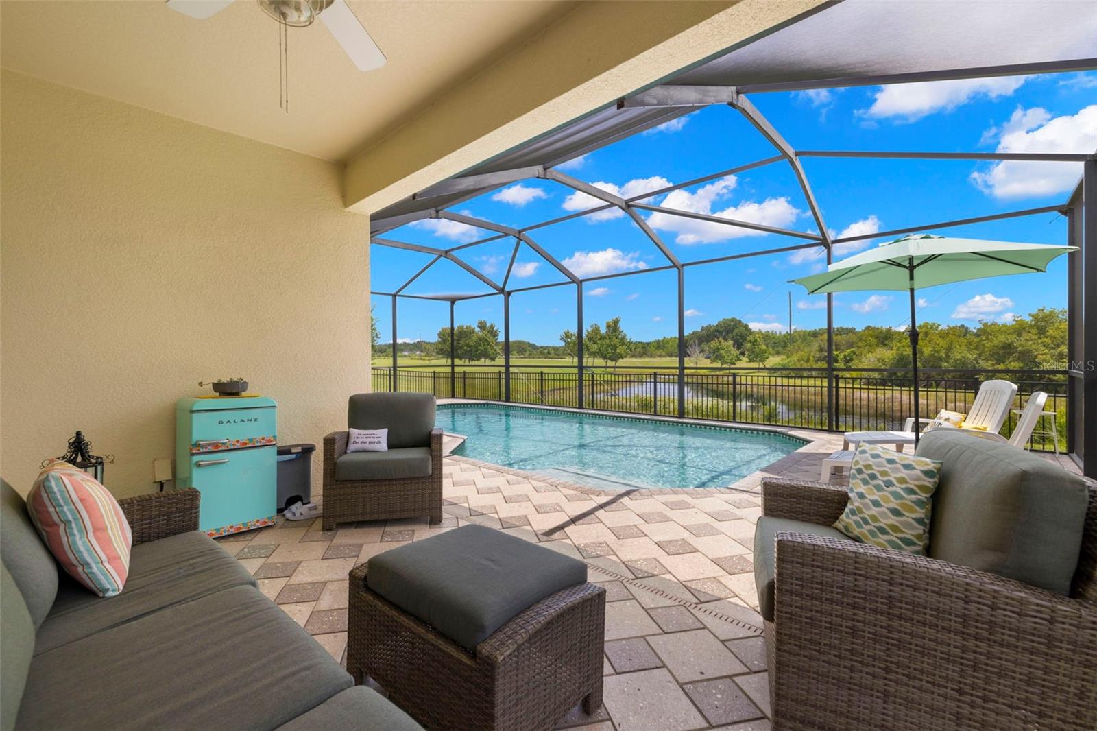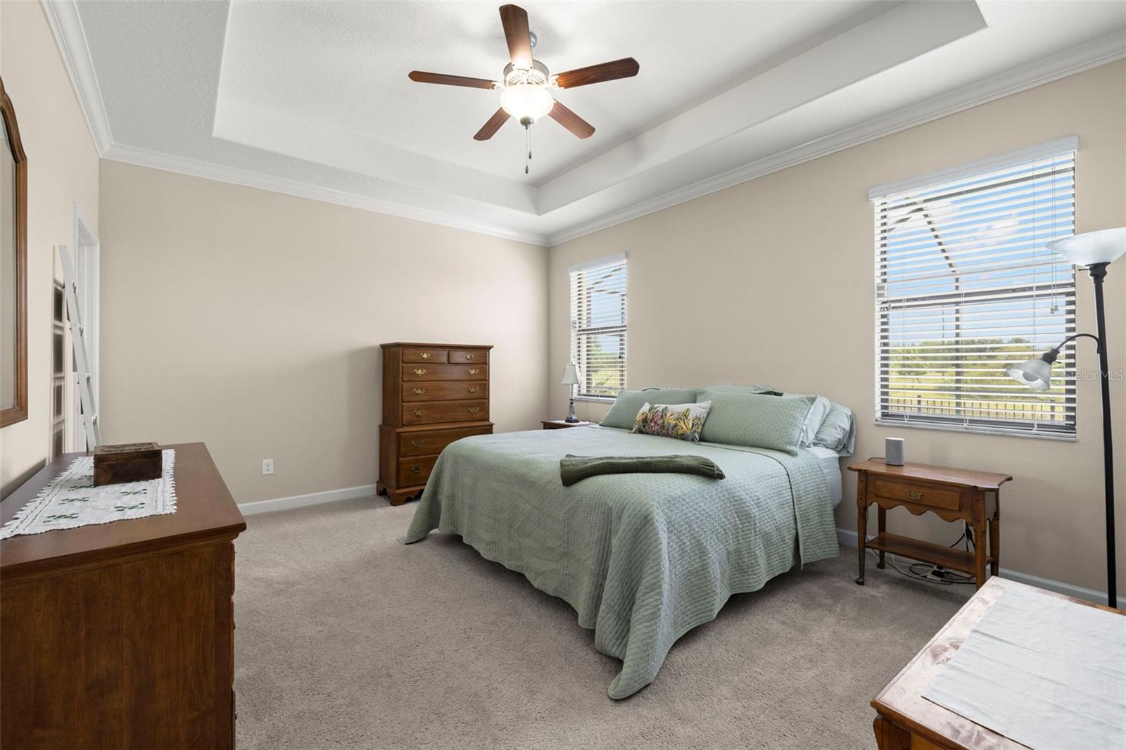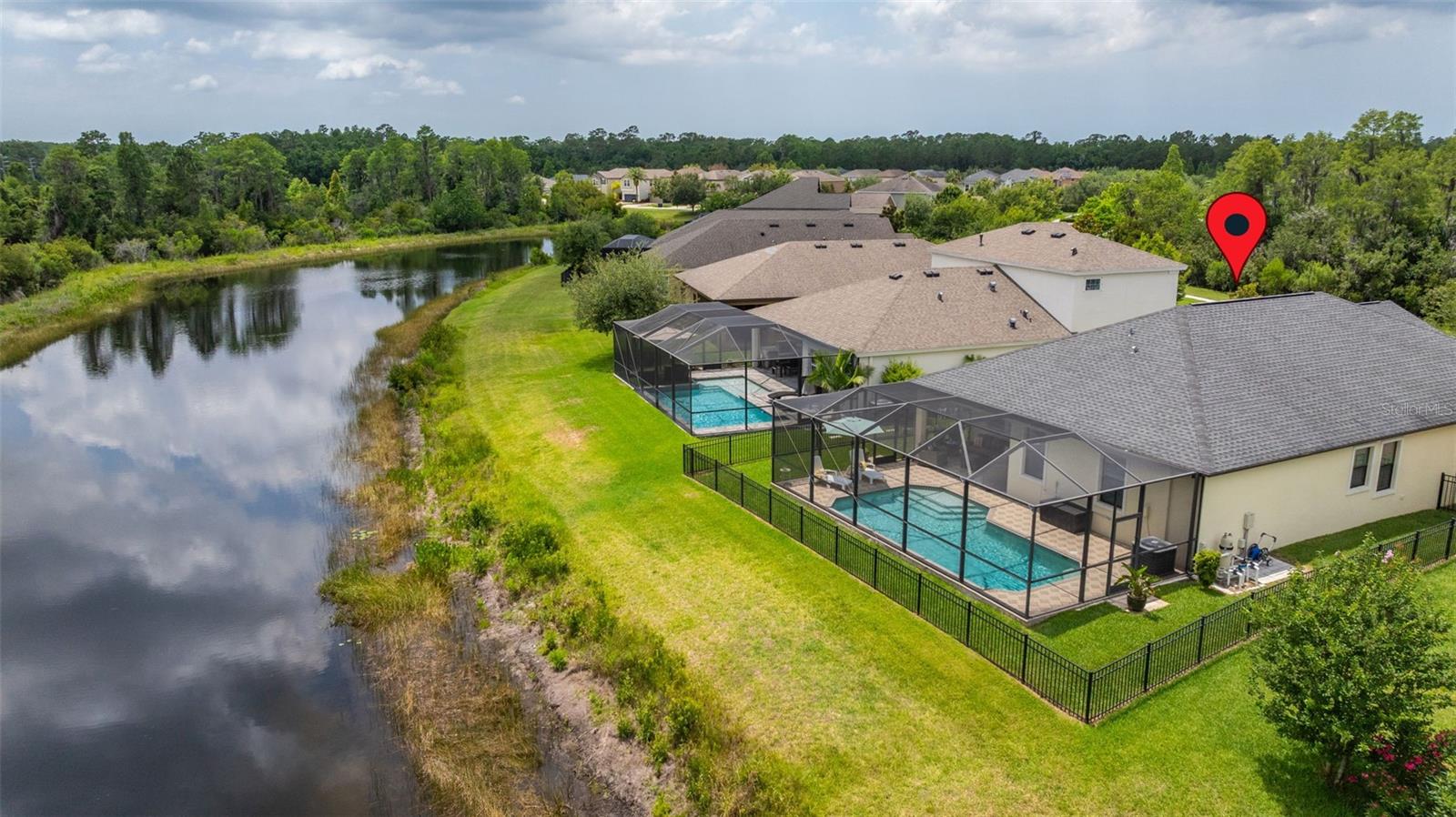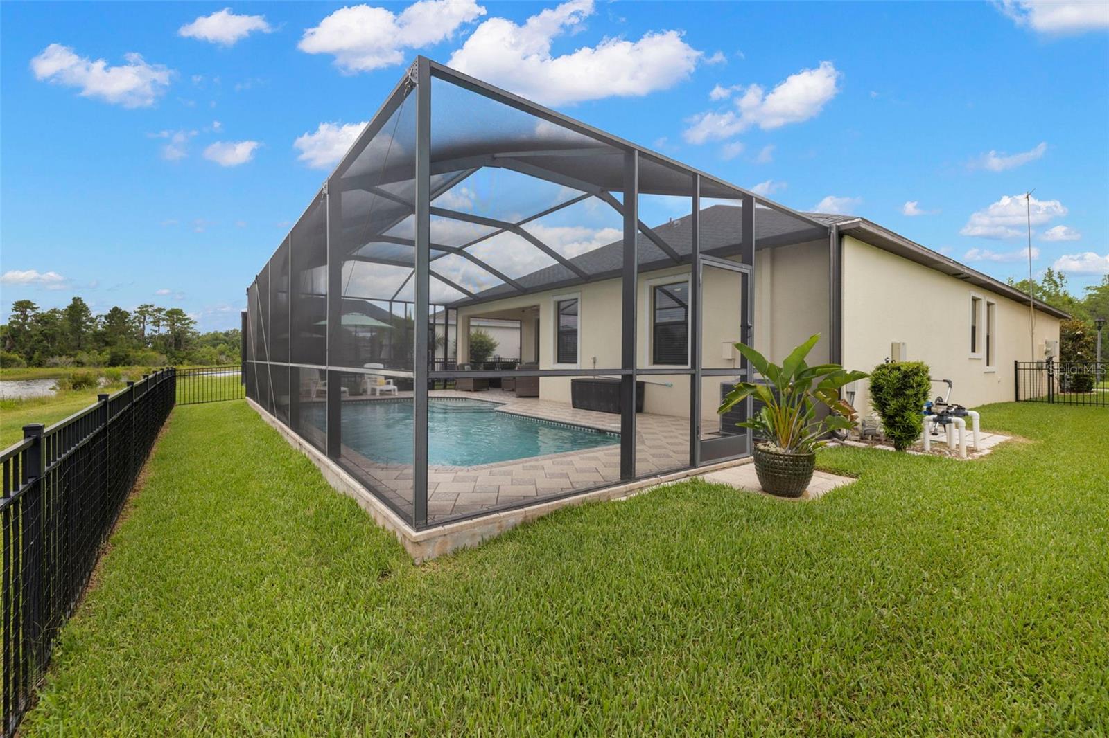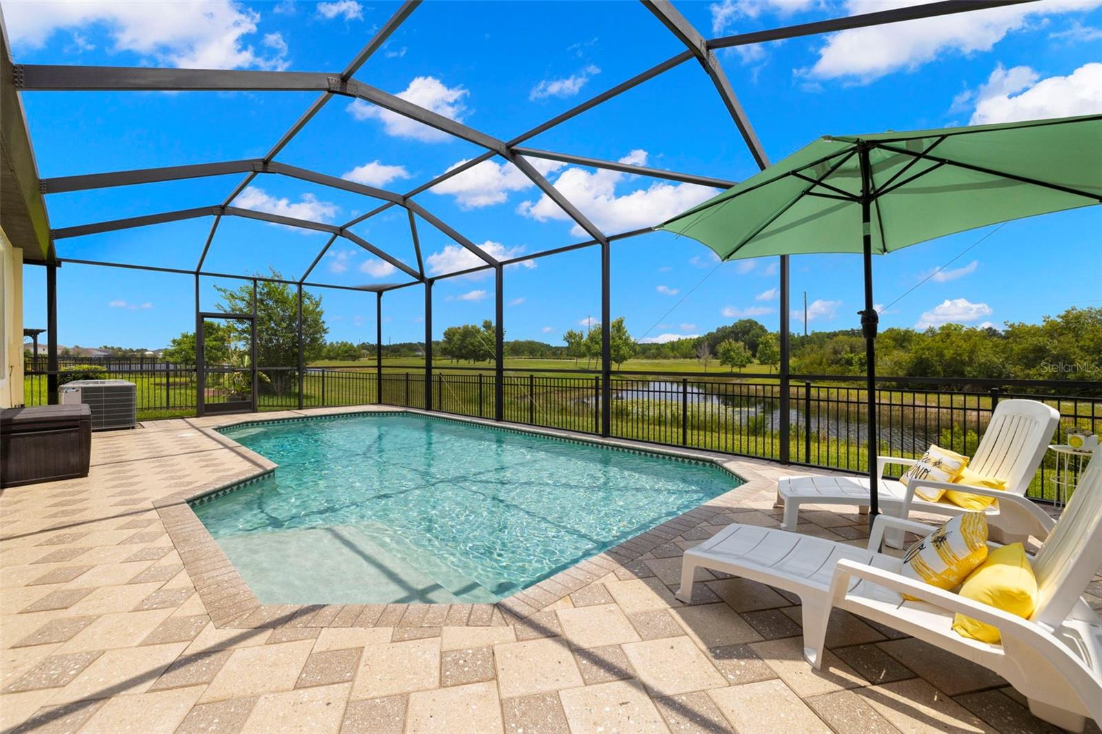 Escape to a world of privacy, tranquility and comfort, enveloped by mature landscaping and enhanced by waterfront views and lush conservation extending from the front to the back of this amazing pool home. Located in Prestigious Bexley, this true gem hosts the popular North Carolina floor plan with 4 bedrooms, 3 baths, great room plan with split bedrooms plus custom pool package. Stroll up the pavered driveway to the quaint front porch to enter this thoughtfully designed home and step into the double foyer featuring a tray ceiling, crown molding, custom tile on the diagonal & colonial baseboards. The desirable open great room encompasses the family living spaces, dining room and impressive kitchen. Great room is outstanding and offers volume ceilings, crown molding, designer ceiling fan with light, French door to lanai, custom diagonal tile throughout & window treatments. The Dining Room boasts a custom chandelier, tile throughout and window treatments. Outstanding Kitchen is complete with granite counters, 42" staggered white cabinetry, island with designer lighting above and custom fixtures, spacious walk-in pantry, tons of counter space, all stainless steel appliances including a side by side refrigerator, range, microwave & dishwasher plus convenient entrance to inside laundry room. Owners suite features tray ceiling, an abundance of light, designer ceiling fan with light, master bath with dual vanity, granite counters with integrated sinks, wood cabinetry, garden tub, separate glass enclosed shower, water closet, designer fixtures, tile flooring and massive walk-in closet complete with extra shelving and florescent lighting. Inside utility room can be accessed from master suite and kitchen and included the washer & dryer, upper cabinets and tile flooring. Spectacular pool package is exquisite with upgraded pavers, soaring cage, covered lanai, black vinyl open fencing overlooking pristine views of pond and lush conservation providing peace & tranquility. 2-Car Garage offers coach lights, extra storage racks and automatic opener. Superior location with access to the Suncoast Hwy, Tampa International Airport, excellent highly rated schools, shopping , professional services & restaurants. Residents of Bexley enjoy resort styled amenities including 2 resort styled pools, clubhouse, fitness center, restaurant, playgrounds, nature walking & biking trails & dog parks. Notables include sweeping conservation views in the front & rear of home, neutral colors, large extra hall with coffee bar, secondary bath with dual vanity, granite counters throughout, custom fixtures, immaculate turn- key interior, split bedroom plan, inside utility & all appliances convey. This home has been impeccably maintained and ready for its new owners. An absolute Must See !!!!