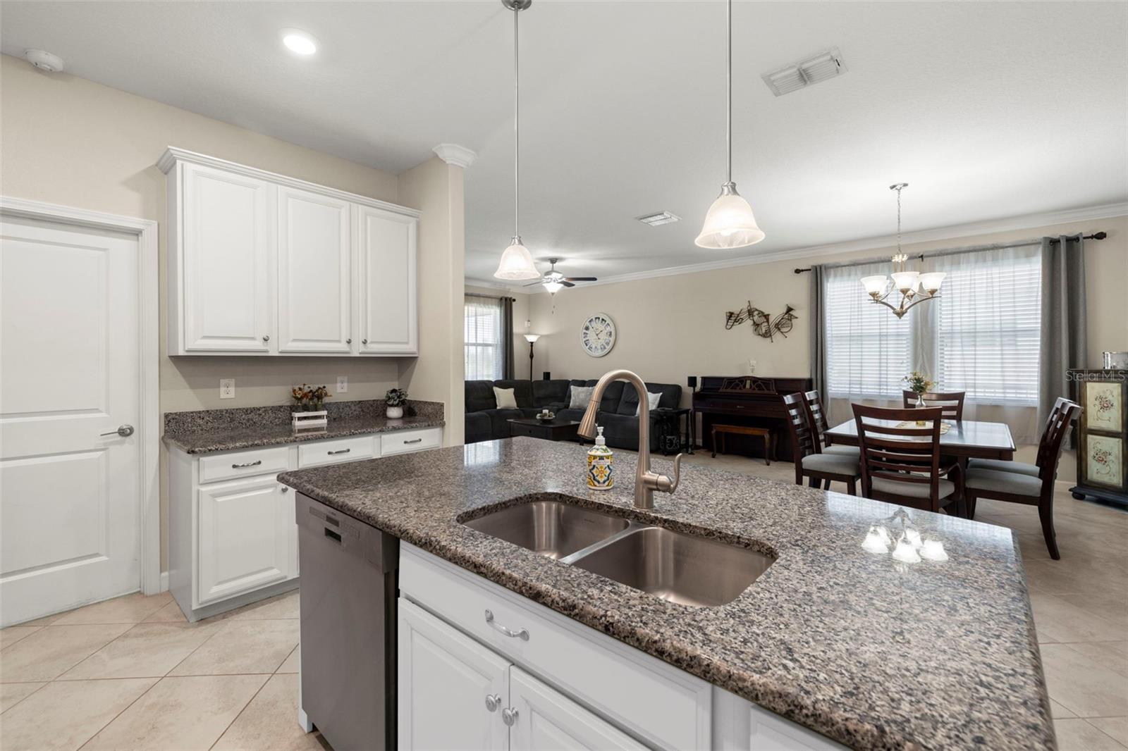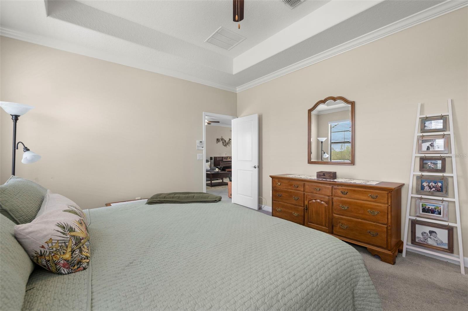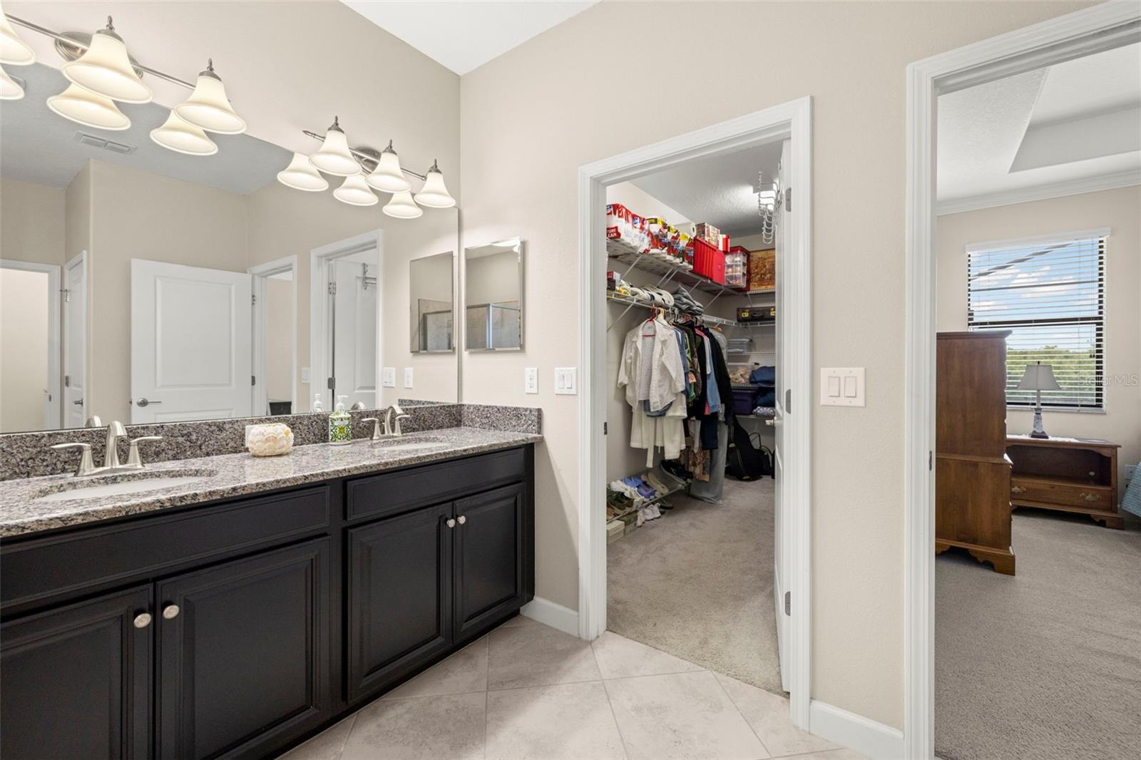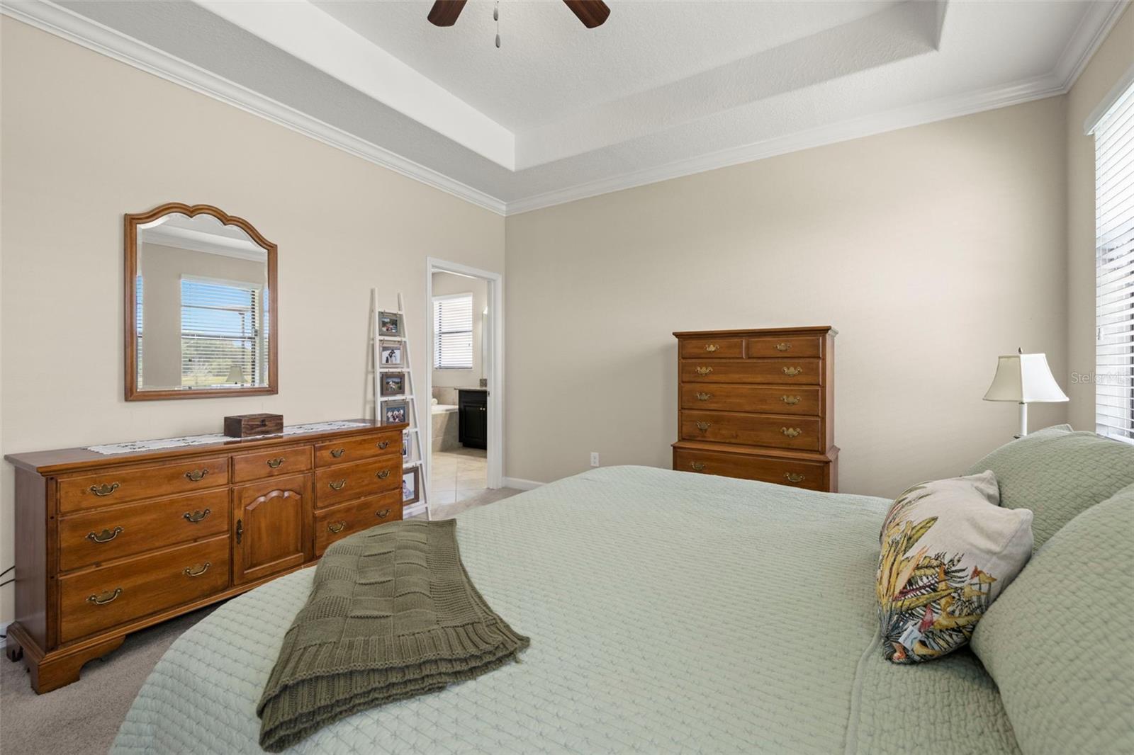 Escape to a world of privacy, tranquility and comfort, enveloped by mature landscaping and enhanced by waterfront views and lush conservation extending from the front to the back of this amazing pool home. Located in Prestigious Bexley, this true gem hosts the popular North Carolina floor plan with 4 bedrooms, 3 baths, great room plan with split bedrooms plus custom pool package. Stroll up the pavered driveway to the quaint front porch to enter this thoughtfully designed home and step into the double foyer featuring a tray ceiling, crown molding, custom tile on the diagonal & colonial baseboards. The desirable open great room encompasses the family living spaces, dining room and impressive kitchen. Great room is outstanding and offers volume ceilings, crown molding, designer ceiling fan with light, French door to lanai, custom diagonal tile throughout & window treatments. The Dining Room boasts a custom chandelier, tile throughout and window treatments. Outstanding Kitchen is complete with granite counters, 42" staggered white cabinetry, island with designer lighting above and custom fixtures, spacious walk-in pantry, tons of counter space, all stainless steel appliances including a side by side refrigerator, range, microwave & dishwasher plus convenient entrance to inside laundry room. Owners suite features tray ceiling, an abundance of light, designer ceiling fan with light, master bath with dual vanity, granite counters with integrated sinks, wood cabinetry, garden tub, separate glass enclosed shower, water closet, designer fixtures, tile flooring and massive walk-in closet complete with extra shelving and florescent lighting. Inside utility room can be accessed from master suite and kitchen and included the washer & dryer, upper cabinets and tile flooring. Spectacular pool package is exquisite with upgraded pavers, soaring cage, covered lanai, black vinyl open fencing overlooking pristine views of pond and lush conservation providing peace & tranquility. 2-Car Garage offers coach lights, extra storage racks and automatic opener. Superior location with access to the Suncoast Hwy, Tampa International Airport, excellent highly rated schools, shopping , professional services & restaurants. Residents of Bexley enjoy resort styled amenities including 2 resort styled pools, clubhouse, fitness center, restaurant, playgrounds, nature walking & biking trails & dog parks. Notables include sweeping conservation views in the front & rear of home, neutral colors, large extra hall with coffee bar, secondary bath with dual vanity, granite counters throughout, custom fixtures, immaculate turn- key interior, split bedroom plan, inside utility & all appliances convey. This home has been impeccably maintained and ready for its new owners. An absolute Must See !!!!