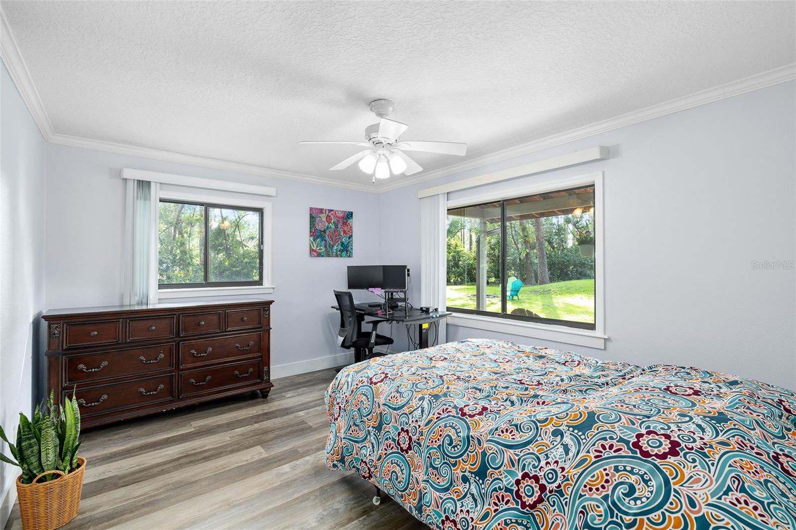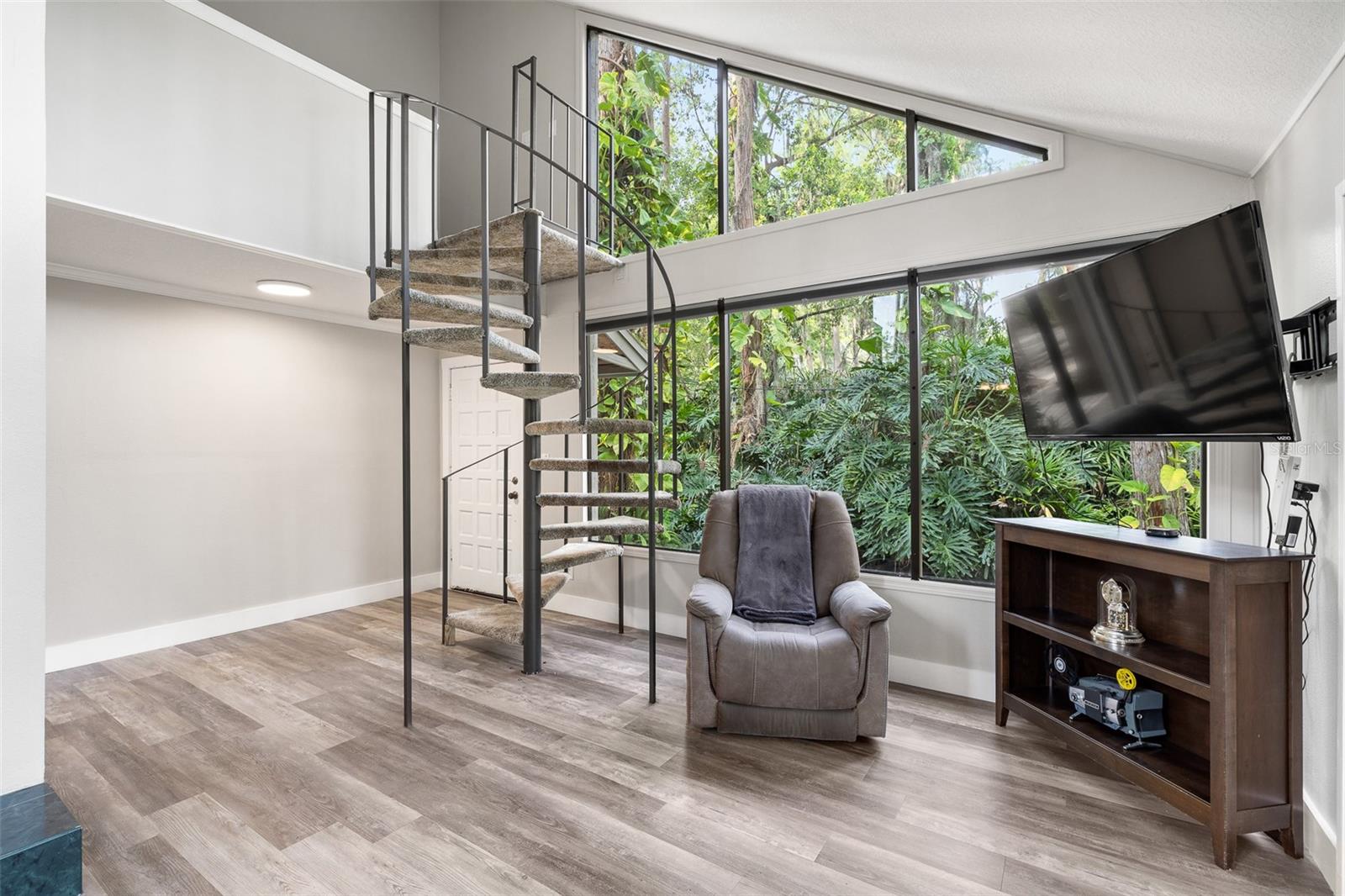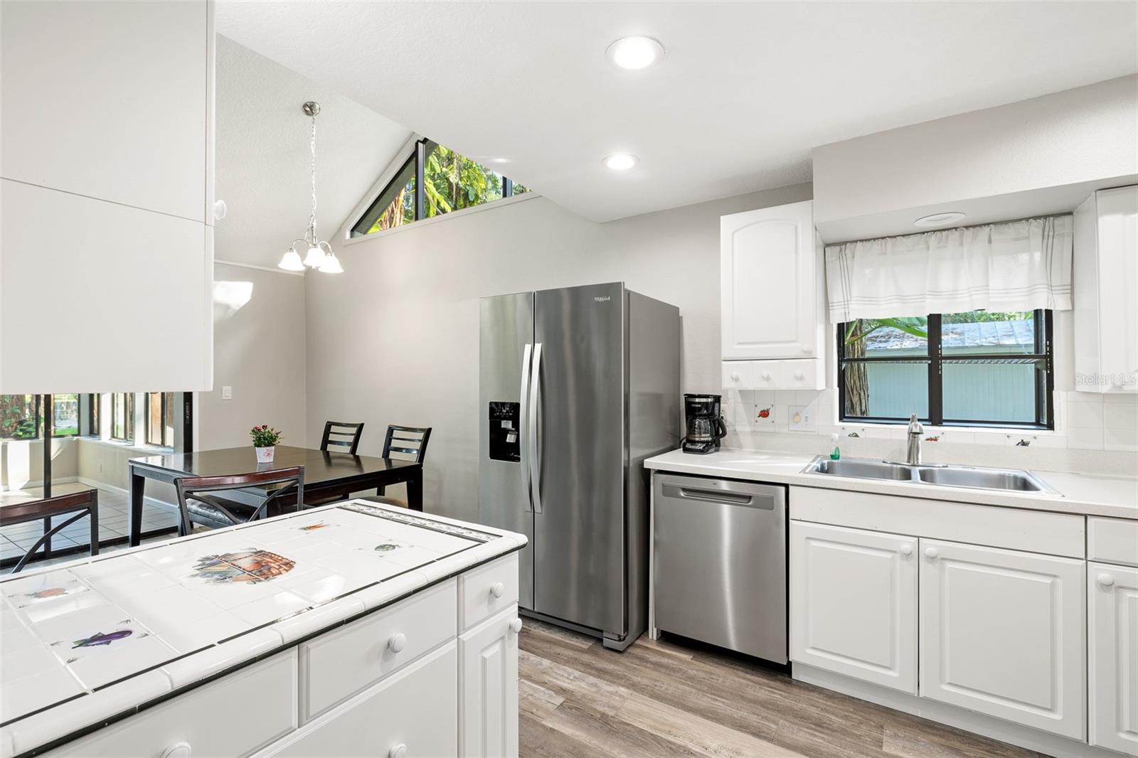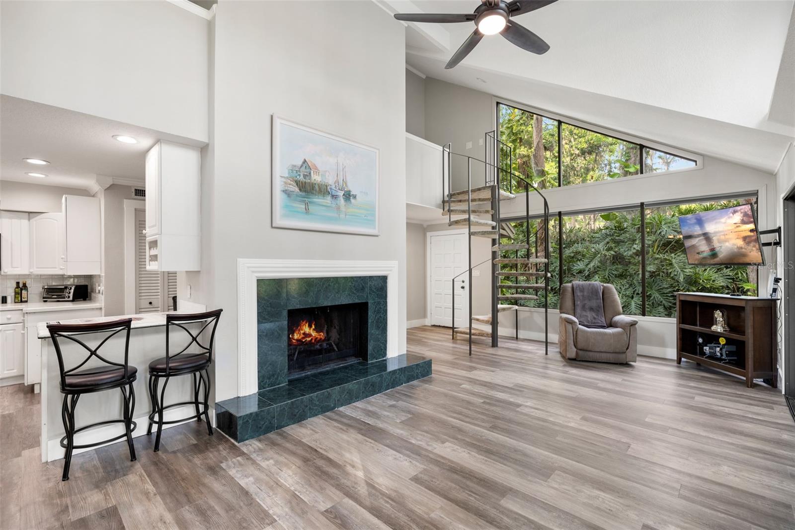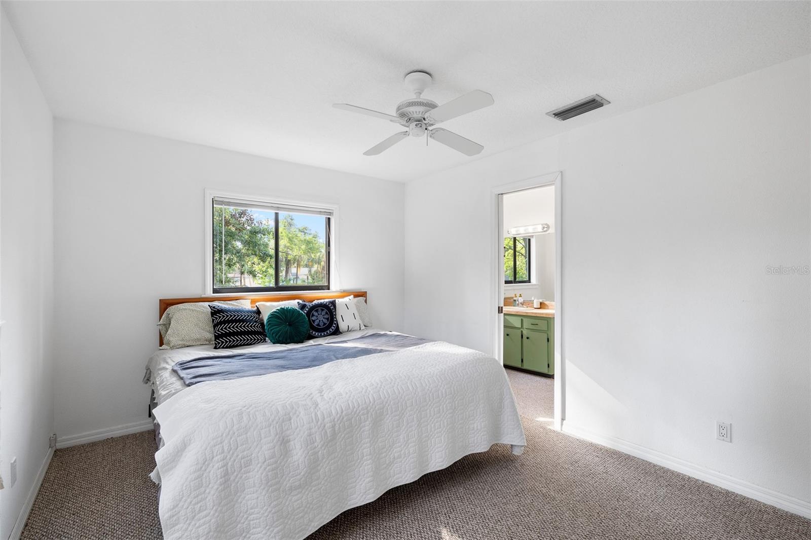 One or more photo(s) has been virtually staged. Charming Lakefront Retreat ... just under one acre! As you drive up, notice the landscaping. After a long day, relax around the fire pit and enjoy eating a s'more!! As you enter the home you will notice the newer storm door. There is a large walk-in storage closet off the entry. The kitchen features stainless steel appliances (range, microwave, and dishwasher have been replaced). The disposal has also been replaced. Behind the kitchen sink there is a charming garden window. Adjacent to kitchen there is a spacious dining area which overlooks the great room with wood-burning fireplace & upgraded ceiling fan. There is a downstairs bedroom with crown molding. The downstairs bath features a jetted tub/shower with upgraded tile and listello. There is a newer vanity with solid surface counter & the commode has been replaced. There is vinyl plank flooring throughout the downstairs with the exception of the Florida/Bonus room which is tiled. The Florida/Bonus room features a newer mini split central heat and air and new lighting. A storm door off the Florida/Bonus room leads to a wood deck & has been replaced. The kitchen, dining area, great room, and Florida/Bonus room all have beautiful lake views!! There is also a laundry room on the first floor & the newer washer/dryer are included. Upstairs there are 2 spacious bedrooms and Jack N Jill bath. Also upstairs is a small loft area ... perfect for an office. The roof was replaced in Sept of 2019, the septic tank pump has been replaced, and an alarm system for tank has been installed. The electrical panel was recently replaced and electrical has been updated in the shed. The majority of the interior is freshly painted! There are 2 sheds ... the large shed has a concrete floor, new metal roof in 2024 & shelving. The well equipment and water softener is also located in this shed. There is a 2-car carport. Serene lake life yet close to the Suncoast Expressway, Outlets Mall, and Wiregrass Mall.