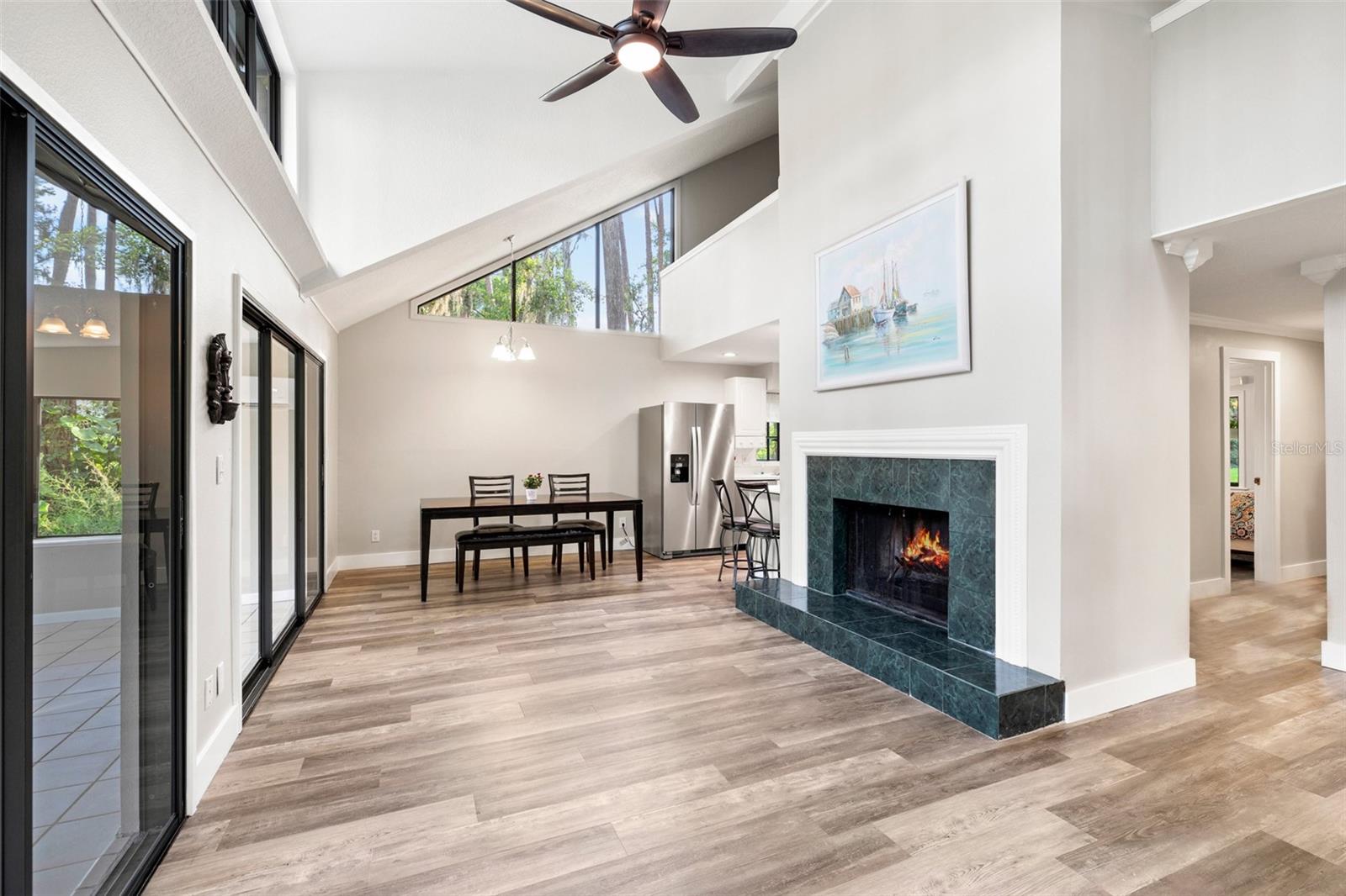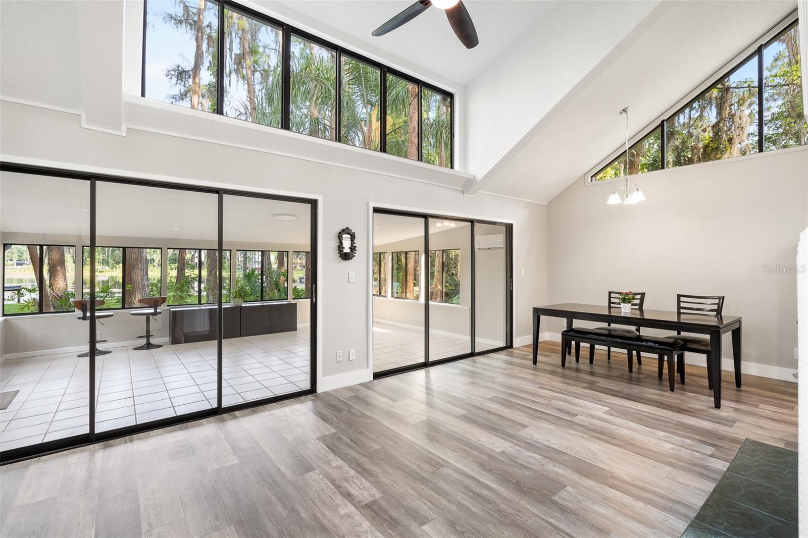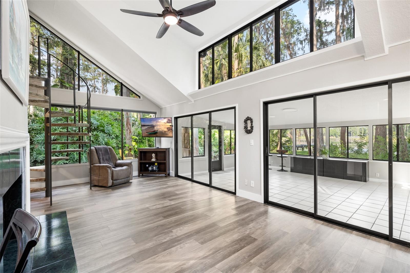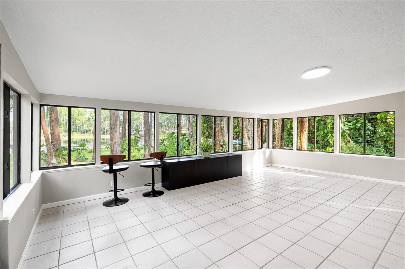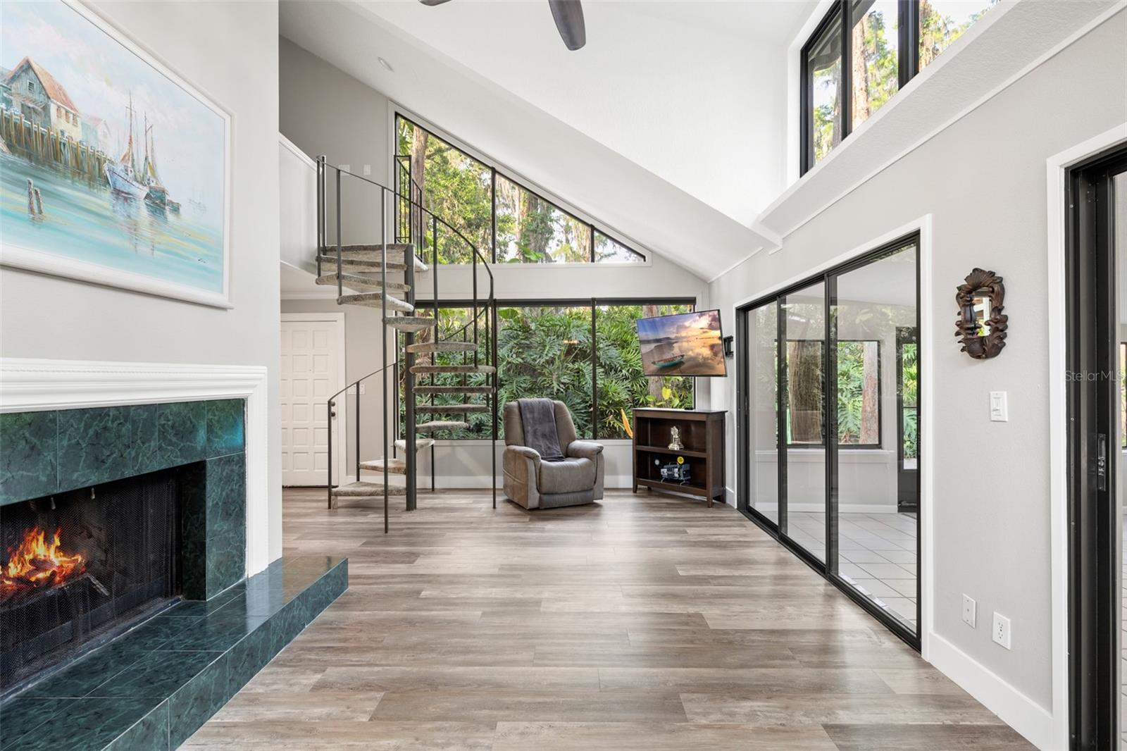 One or more photo(s) has been virtually staged. Charming Lakefront Retreat ... just under one acre! As you drive up, notice the landscaping. After a long day, relax around the fire pit and enjoy eating a s'more!! As you enter the home you will notice the newer storm door. There is a large walk-in storage closet off the entry. The kitchen features stainless steel appliances (range, microwave, and dishwasher have been replaced). The disposal has also been replaced. Behind the kitchen sink there is a charming garden window. Adjacent to kitchen there is a spacious dining area which overlooks the great room with wood-burning fireplace & upgraded ceiling fan. There is a downstairs bedroom with crown molding. The downstairs bath features a jetted tub/shower with upgraded tile and listello. There is a newer vanity with solid surface counter & the commode has been replaced. There is vinyl plank flooring throughout the downstairs with the exception of the Florida/Bonus room which is tiled. The Florida/Bonus room features a newer mini split central heat and air and new lighting. A storm door off the Florida/Bonus room leads to a wood deck & has been replaced. The kitchen, dining area, great room, and Florida/Bonus room all have beautiful lake views!! There is also a laundry room on the first floor & the newer washer/dryer are included. Upstairs there are 2 spacious bedrooms and Jack N Jill bath. Also upstairs is a small loft area ... perfect for an office. The roof was replaced in Sept of 2019, the septic tank pump has been replaced, and an alarm system for tank has been installed. The electrical panel was recently replaced and electrical has been updated in the shed. The majority of the interior is freshly painted! There are 2 sheds ... the large shed has a concrete floor, new metal roof in 2024 & shelving. The well equipment and water softener is also located in this shed. There is a 2-car carport. Serene lake life yet close to the Suncoast Expressway, Outlets Mall, and Wiregrass Mall.