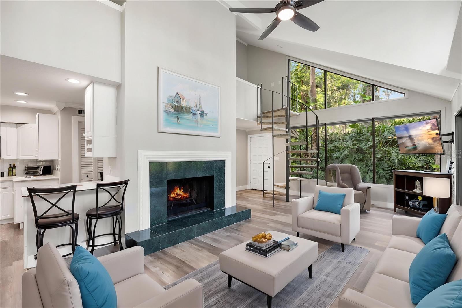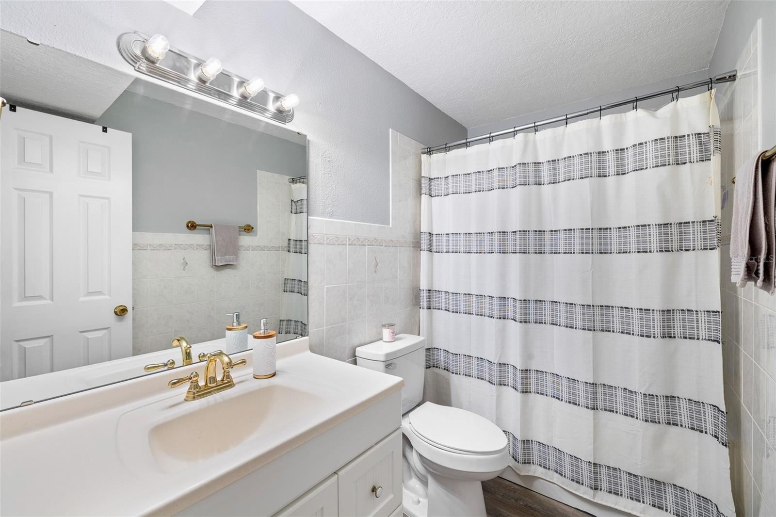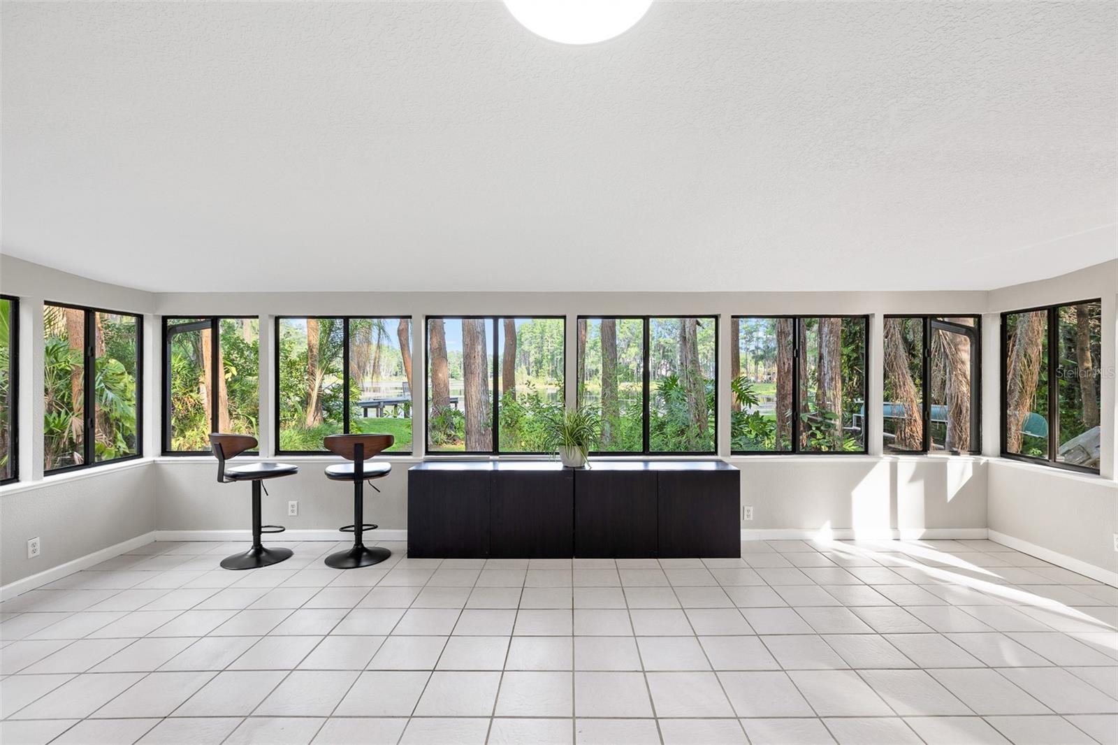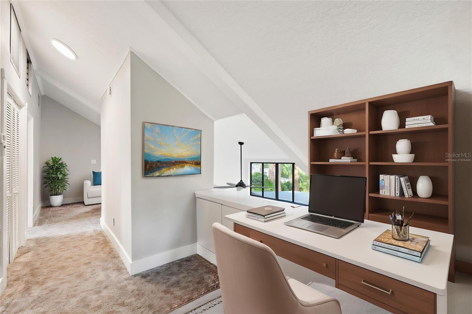 One or more photo(s) has been virtually staged. Charming Lakefront Retreat ... just under one acre! As you drive up, notice the landscaping. After a long day, relax around the fire pit and enjoy eating a s'more!! As you enter the home you will notice the newer storm door. There is a large walk-in storage closet off the entry. The kitchen features stainless steel appliances (range, microwave, and dishwasher have been replaced). The disposal has also been replaced. Behind the kitchen sink there is a charming garden window. Adjacent to kitchen there is a spacious dining area which overlooks the great room with wood-burning fireplace & upgraded ceiling fan. There is a downstairs bedroom with crown molding. The downstairs bath features a jetted tub/shower with upgraded tile and listello. There is a newer vanity with solid surface counter & the commode has been replaced. There is vinyl plank flooring throughout the downstairs with the exception of the Florida/Bonus room which is tiled. The Florida/Bonus room features a newer mini split central heat and air and new lighting. A storm door off the Florida/Bonus room leads to a wood deck & has been replaced. The kitchen, dining area, great room, and Florida/Bonus room all have beautiful lake views!! There is also a laundry room on the first floor & the newer washer/dryer are included. Upstairs there are 2 spacious bedrooms and Jack N Jill bath. Also upstairs is a small loft area ... perfect for an office. The roof was replaced in Sept of 2019, the septic tank pump has been replaced, and an alarm system for tank has been installed. The electrical panel was recently replaced and electrical has been updated in the shed. The majority of the interior is freshly painted! There are 2 sheds ... the large shed has a concrete floor, new metal roof in 2024 & shelving. The well equipment and water softener is also located in this shed. There is a 2-car carport. Serene lake life yet close to the Suncoast Expressway, Outlets Mall, and Wiregrass Mall.