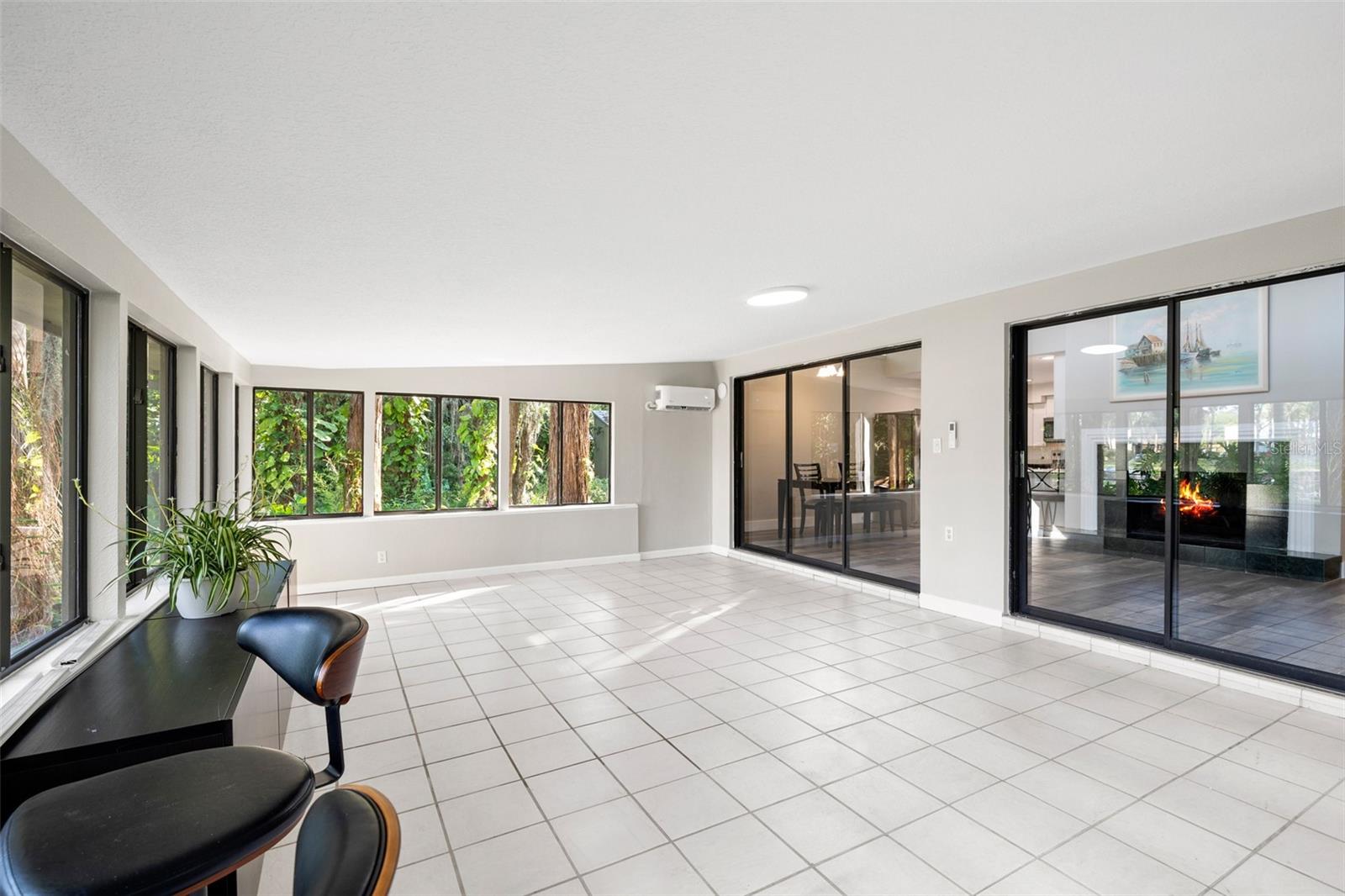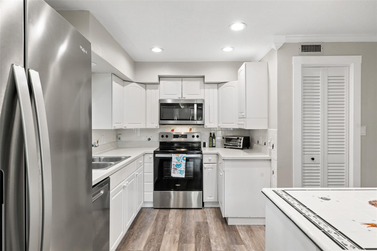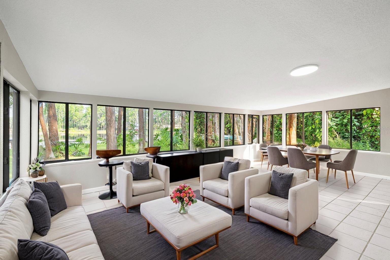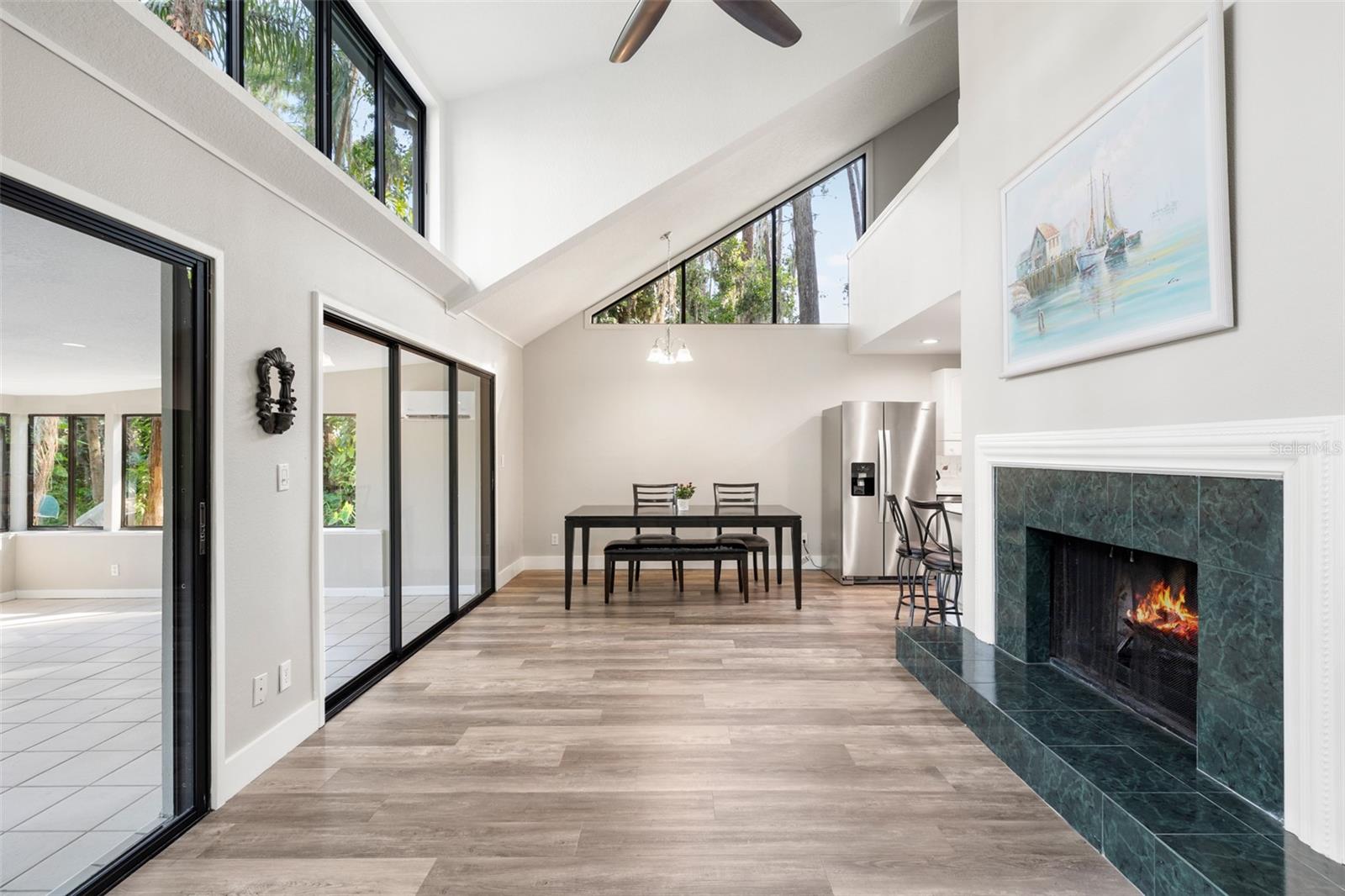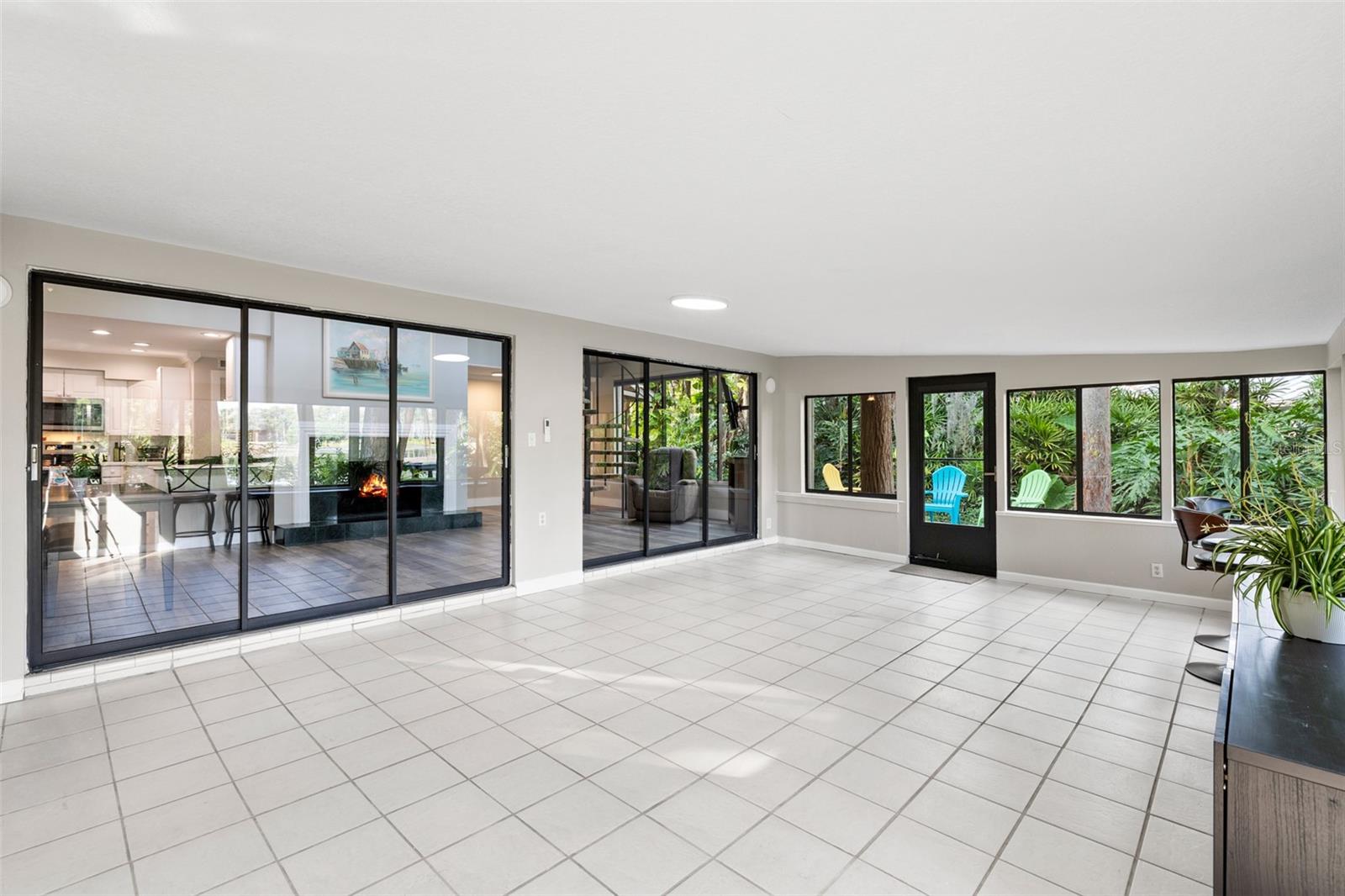 One or more photo(s) has been virtually staged. Charming Lakefront Retreat ... just under one acre! As you drive up, notice the landscaping. After a long day, relax around the fire pit and enjoy eating a s'more!! As you enter the home you will notice the newer storm door. There is a large walk-in storage closet off the entry. The kitchen features stainless steel appliances (range, microwave, and dishwasher have been replaced). The disposal has also been replaced. Behind the kitchen sink there is a charming garden window. Adjacent to kitchen there is a spacious dining area which overlooks the great room with wood-burning fireplace & upgraded ceiling fan. There is a downstairs bedroom with crown molding. The downstairs bath features a jetted tub/shower with upgraded tile and listello. There is a newer vanity with solid surface counter & the commode has been replaced. There is vinyl plank flooring throughout the downstairs with the exception of the Florida/Bonus room which is tiled. The Florida/Bonus room features a newer mini split central heat and air and new lighting. A storm door off the Florida/Bonus room leads to a wood deck & has been replaced. The kitchen, dining area, great room, and Florida/Bonus room all have beautiful lake views!! There is also a laundry room on the first floor & the newer washer/dryer are included. Upstairs there are 2 spacious bedrooms and Jack N Jill bath. Also upstairs is a small loft area ... perfect for an office. The roof was replaced in Sept of 2019, the septic tank pump has been replaced, and an alarm system for tank has been installed. The electrical panel was recently replaced and electrical has been updated in the shed. The majority of the interior is freshly painted! There are 2 sheds ... the large shed has a concrete floor, new metal roof in 2024 & shelving. The well equipment and water softener is also located in this shed. There is a 2-car carport. Serene lake life yet close to the Suncoast Expressway, Outlets Mall, and Wiregrass Mall.