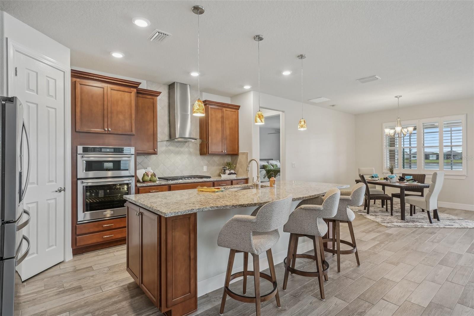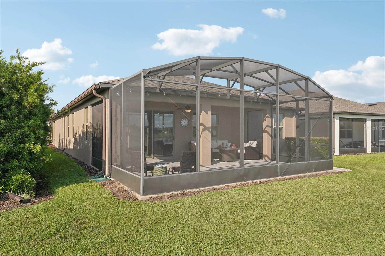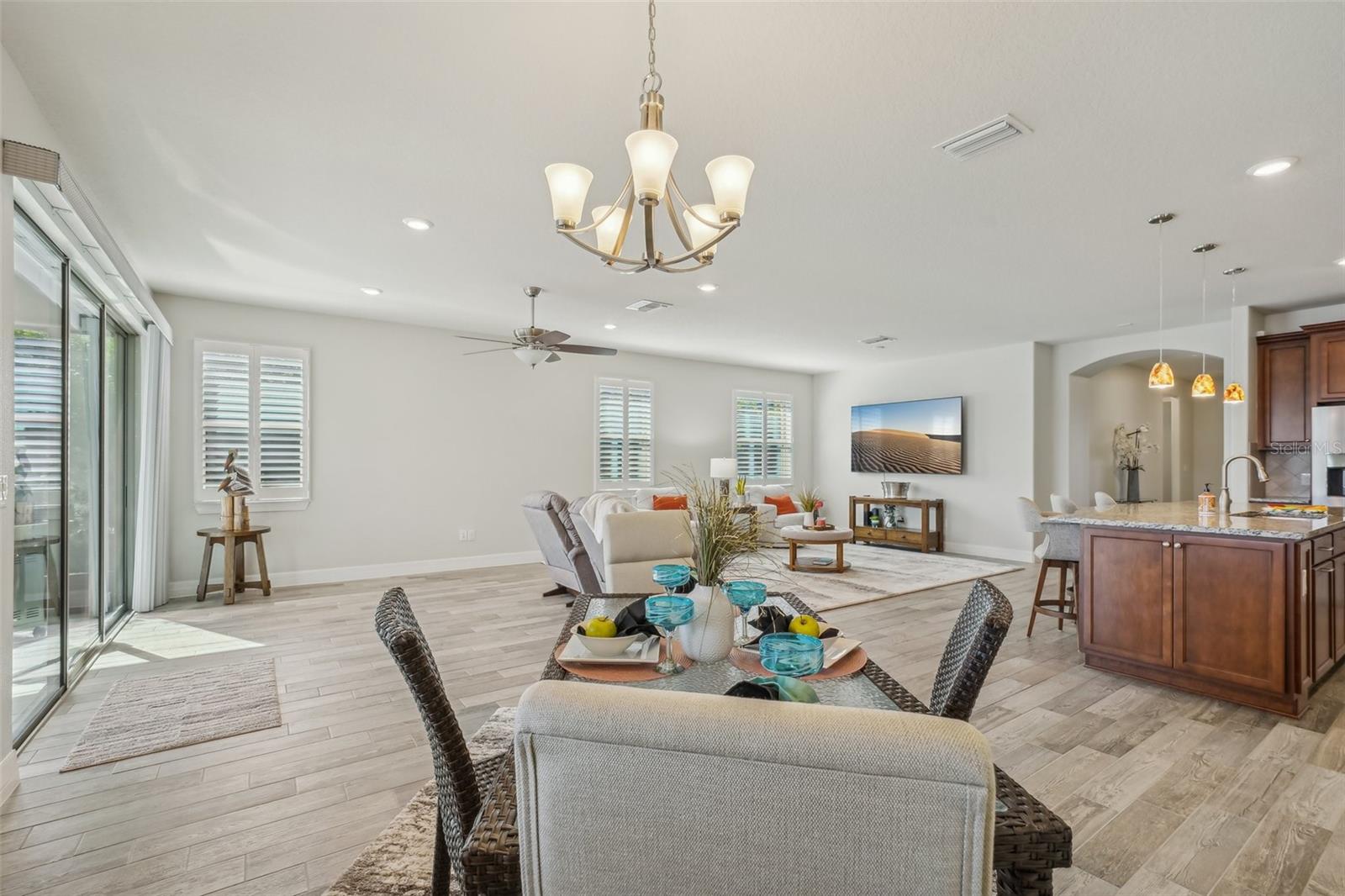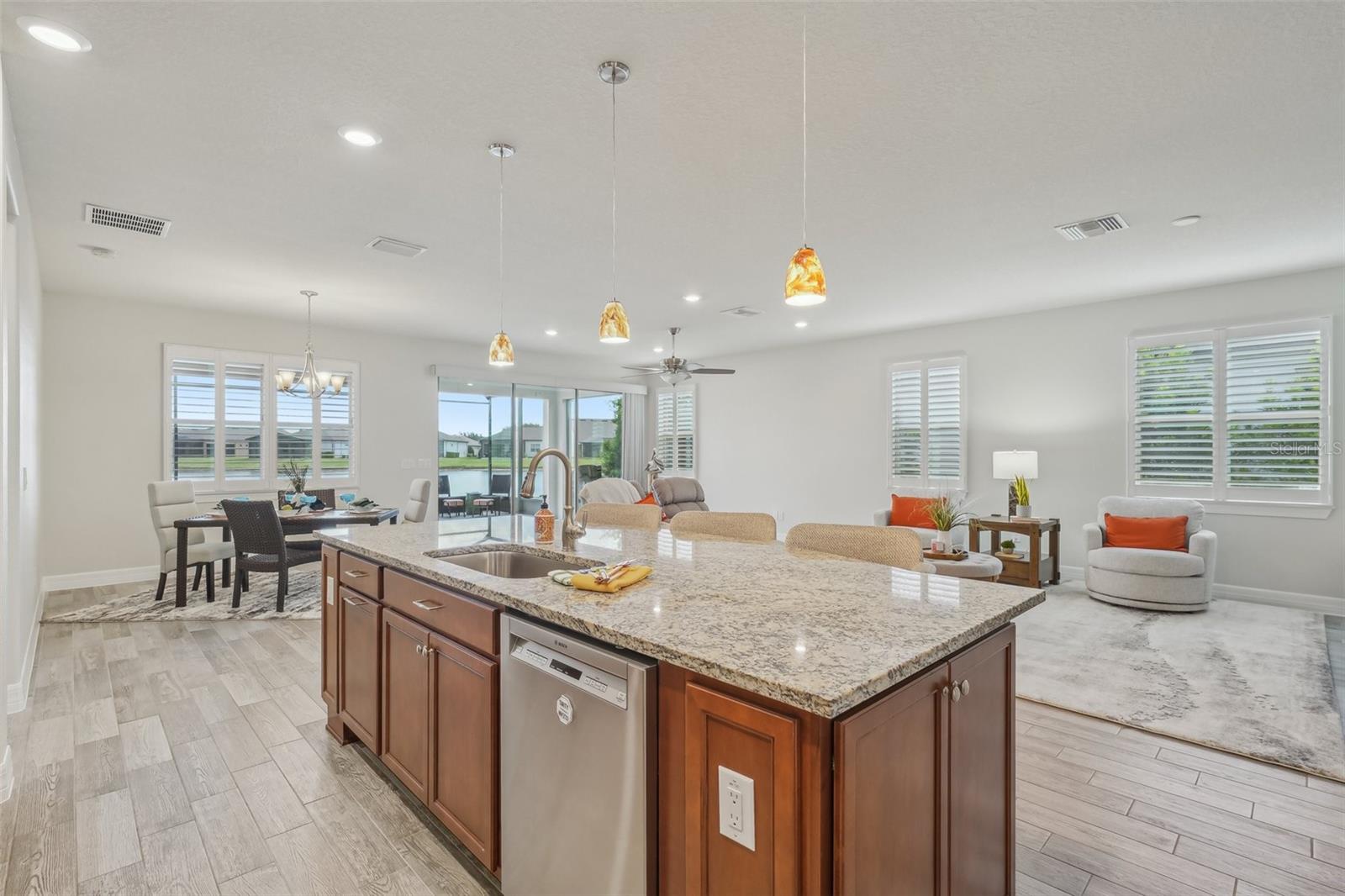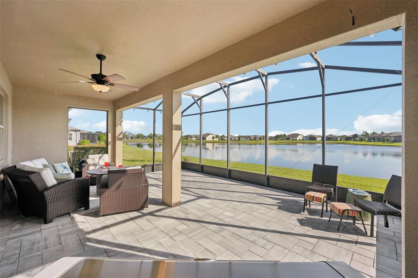 Step into elevated Florida living in this meticulously maintained, model-perfect 2019 home—located in the newly built subdivision of Del Webb Bexley, a premier 55+ active community known for its vibrant lifestyle and high-end amenities. This single-story, standalone home showcases a Mediterranean transitional design with architectural details that include curved archways, rounded corners, and ceramic clay tile flooring throughout. It’s as well-built as it is beautiful. Stately rectangular columns and real stone accents enhance the façade, while a covered front porch and smooth brick pavers create a warm, welcoming first impression. The interior and exterior were freshly painted just over a year ago. A coordinating slate blue garage and front door add a sophisticated pop of color that complement the neutral palette and ties into the surrounding stonework. Beneath the beauty, insulated concrete block construction provides enhanced thermal efficiency—reducing energy use and maintaining year-round comfort. With over 3,100 SF of total space, this home is designed to blend indoor and outdoor living. From the moment you enter, your eye is drawn through the open-concept layout—where the kitchen, living, and dining areas flow together—toward the lanai and vast pond view. At the heart of the home is the entertainer’s kitchen, designed to impress and built to perform. It features granite countertops, a sprawling center island with sink and breakfast bar seating, soft-close wood cabinetry with pull-out shelves and deep drawers, a professionally designed walk-in pantry with pull-out baskets and wine storage, and a KitchenAid natural gas griddle stove with exhaust hood. The primary suite is located at the back of the home, offering serene pond views. The en-suite bath is filled with natural light and includes dual vanities, a walk-in linear shower with bench and dual shower heads, a large linen closet, a private water closet, and a walk-in closet with built-in organizational shelving. Two guest bedrooms are thoughtfully positioned for guest privacy. Step outside to your oversized 24’ x 19’ lanai, with cement-tile flooring and a durable tension-cable screen that preserves wide-open water views—perfect for evening gatherings around the firepit table. The extended garage offers space for 2 cars + a golf cart and is outfitted with epoxy flooring, ceiling storage, and an insulated, impact-rated door with a raised threshold to help keep out debris. A full-sized laundry room provides upper and lower cabinetry, a washtub sink, and LG washer and dryer. Additional upgrades include: 8' interior doors, modern wide baseboards, gas-powered tankless water heater, whole-house water softener and RO system, and an in-wall pest control system with exterior access. Del Webb Bexley’s gated entrance leads to an exceptional amenity center featuring a 19,000-square-foot clubhouse, resort-style pools with lap and resistance lanes, hot tub, a fitness center, amphitheater, walking trails, pickleball and tennis courts, dog parks, a community garden, and a full calendar of social events. This home offers the perfect blend of style, comfort, and active living in one of Land O’ Lakes’ most desirable communities. Come experience the resort lifestyle every day.