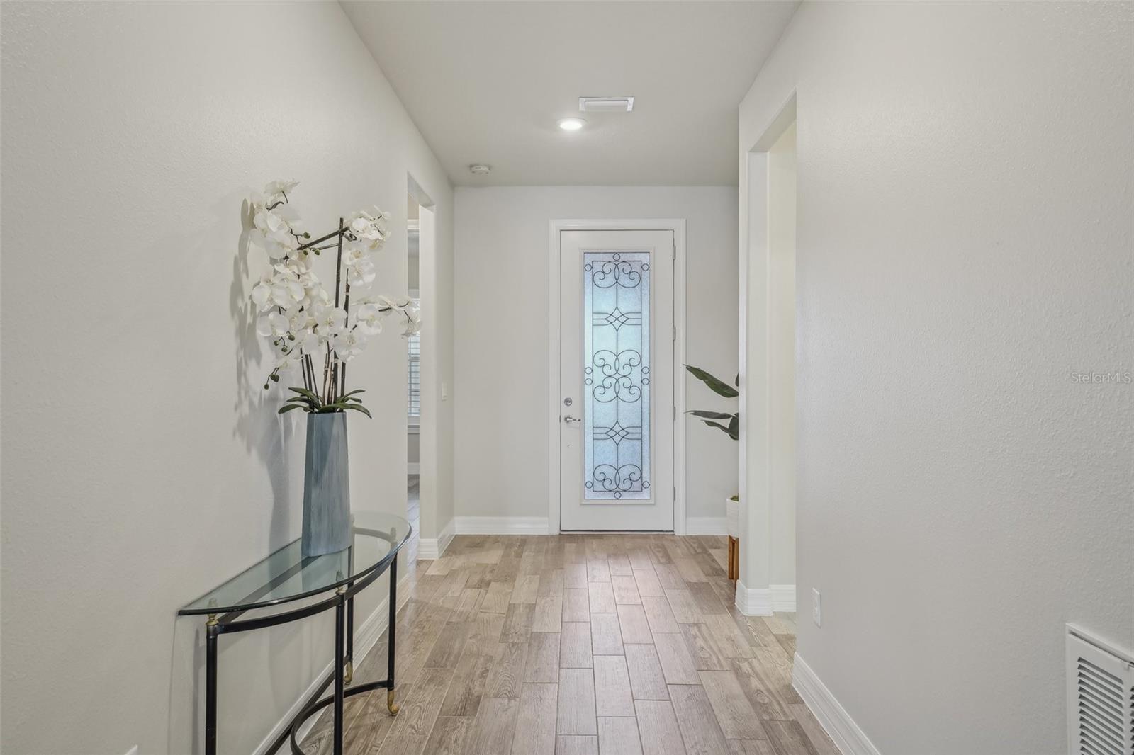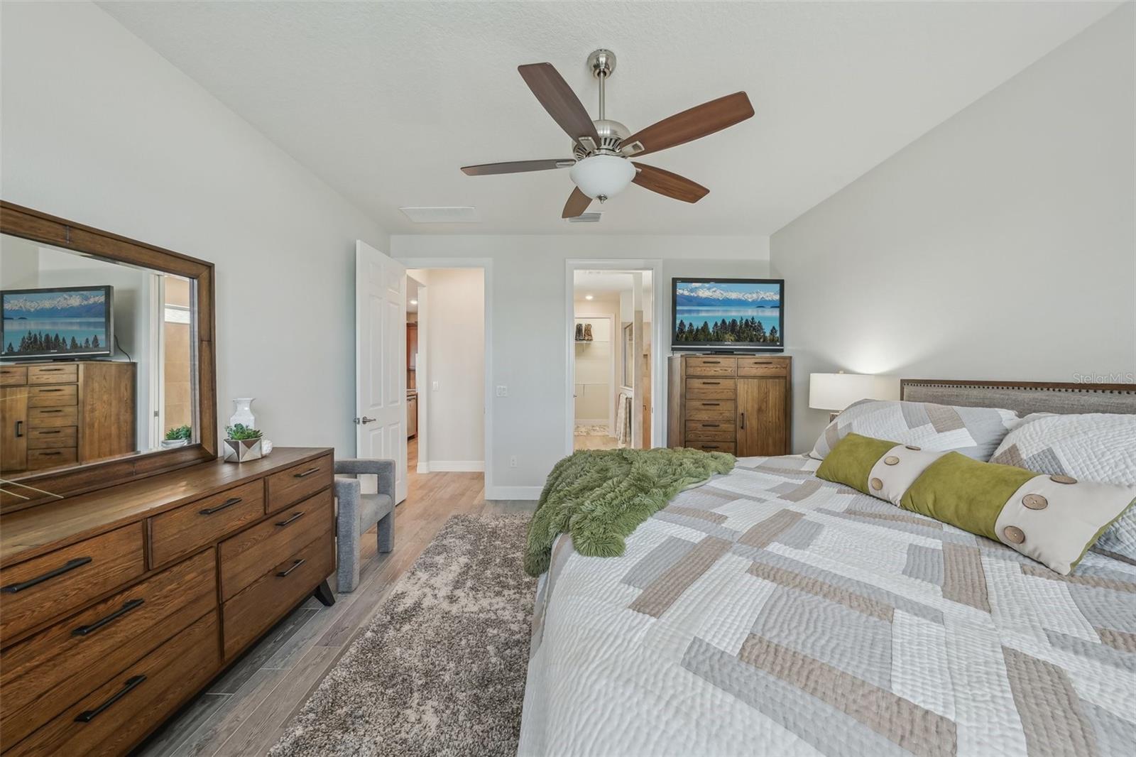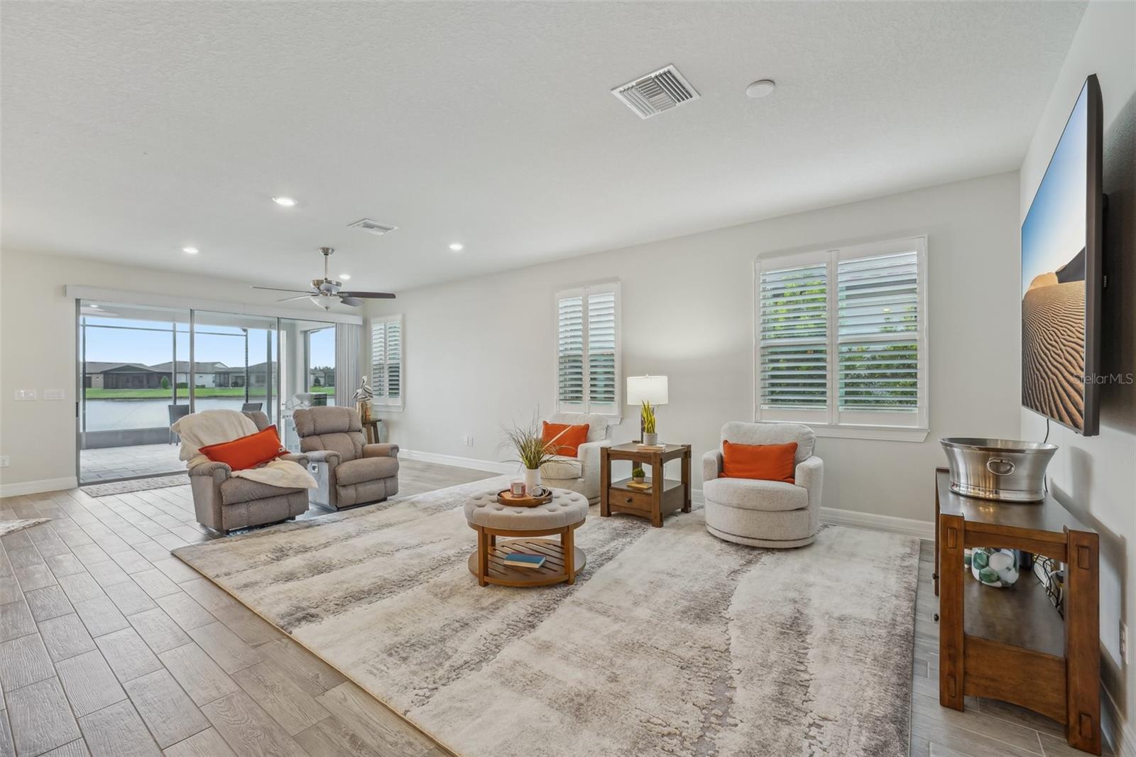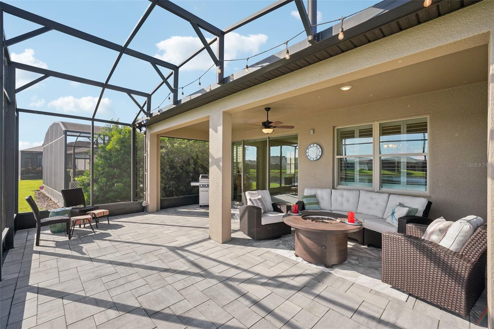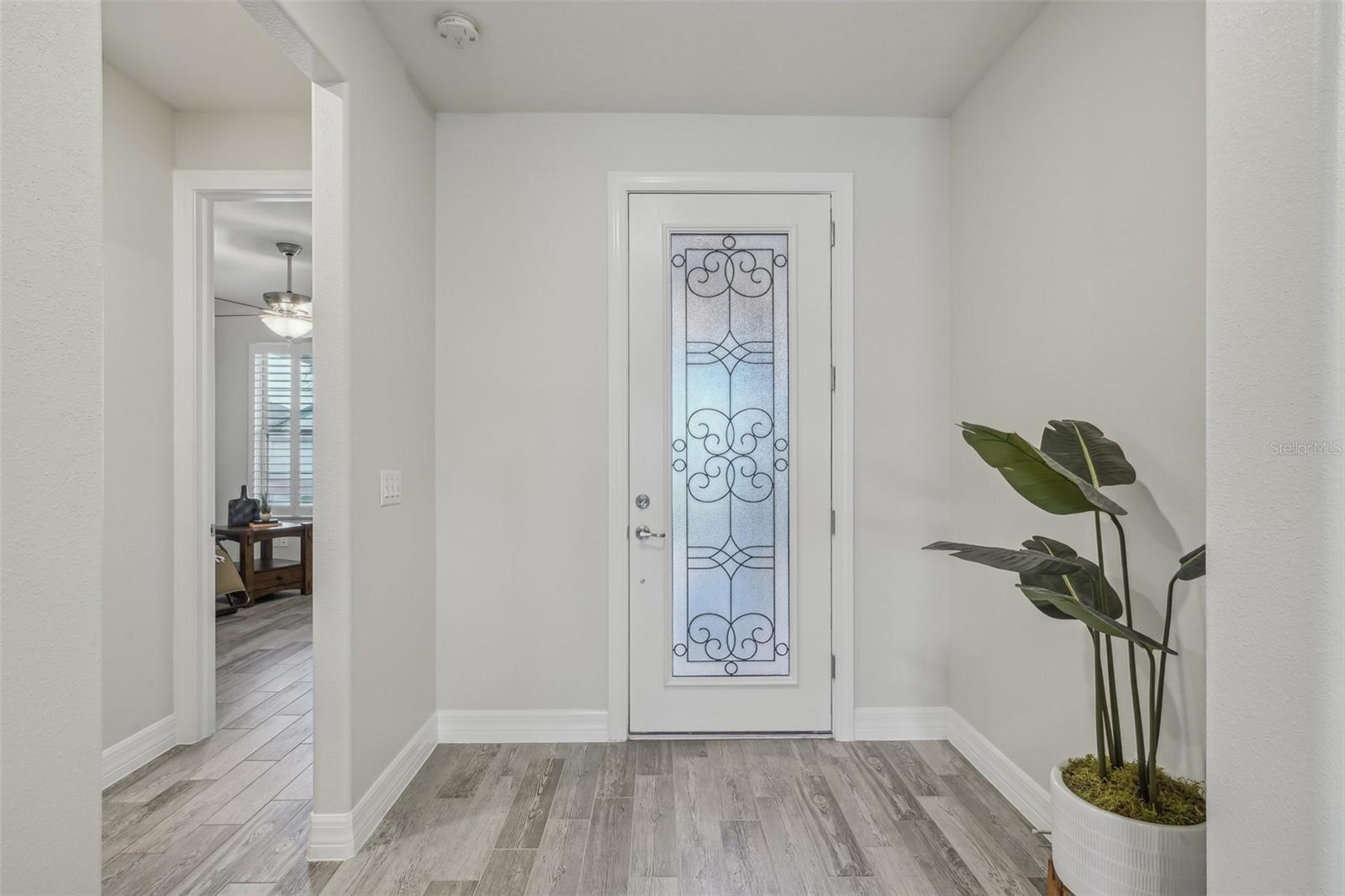 Step into elevated Florida living in this meticulously maintained, model-perfect 2019 home—located in the newly built subdivision of Del Webb Bexley, a premier 55+ active community known for its vibrant lifestyle and high-end amenities. This single-story, standalone home showcases a Mediterranean transitional design with architectural details that include curved archways, rounded corners, and ceramic clay tile flooring throughout. It’s as well-built as it is beautiful. Stately rectangular columns and real stone accents enhance the façade, while a covered front porch and smooth brick pavers create a warm, welcoming first impression. The interior and exterior were freshly painted just over a year ago. A coordinating slate blue garage and front door add a sophisticated pop of color that complement the neutral palette and ties into the surrounding stonework. Beneath the beauty, insulated concrete block construction provides enhanced thermal efficiency—reducing energy use and maintaining year-round comfort. With over 3,100 SF of total space, this home is designed to blend indoor and outdoor living. From the moment you enter, your eye is drawn through the open-concept layout—where the kitchen, living, and dining areas flow together—toward the lanai and vast pond view. At the heart of the home is the entertainer’s kitchen, designed to impress and built to perform. It features granite countertops, a sprawling center island with sink and breakfast bar seating, soft-close wood cabinetry with pull-out shelves and deep drawers, a professionally designed walk-in pantry with pull-out baskets and wine storage, and a KitchenAid natural gas griddle stove with exhaust hood. The primary suite is located at the back of the home, offering serene pond views. The en-suite bath is filled with natural light and includes dual vanities, a walk-in linear shower with bench and dual shower heads, a large linen closet, a private water closet, and a walk-in closet with built-in organizational shelving. Two guest bedrooms are thoughtfully positioned for guest privacy. Step outside to your oversized 24’ x 19’ lanai, with cement-tile flooring and a durable tension-cable screen that preserves wide-open water views—perfect for evening gatherings around the firepit table. The extended garage offers space for 2 cars + a golf cart and is outfitted with epoxy flooring, ceiling storage, and an insulated, impact-rated door with a raised threshold to help keep out debris. A full-sized laundry room provides upper and lower cabinetry, a washtub sink, and LG washer and dryer. Additional upgrades include: 8' interior doors, modern wide baseboards, gas-powered tankless water heater, whole-house water softener and RO system, and an in-wall pest control system with exterior access. Del Webb Bexley’s gated entrance leads to an exceptional amenity center featuring a 19,000-square-foot clubhouse, resort-style pools with lap and resistance lanes, hot tub, a fitness center, amphitheater, walking trails, pickleball and tennis courts, dog parks, a community garden, and a full calendar of social events. This home offers the perfect blend of style, comfort, and active living in one of Land O’ Lakes’ most desirable communities. Come experience the resort lifestyle every day.