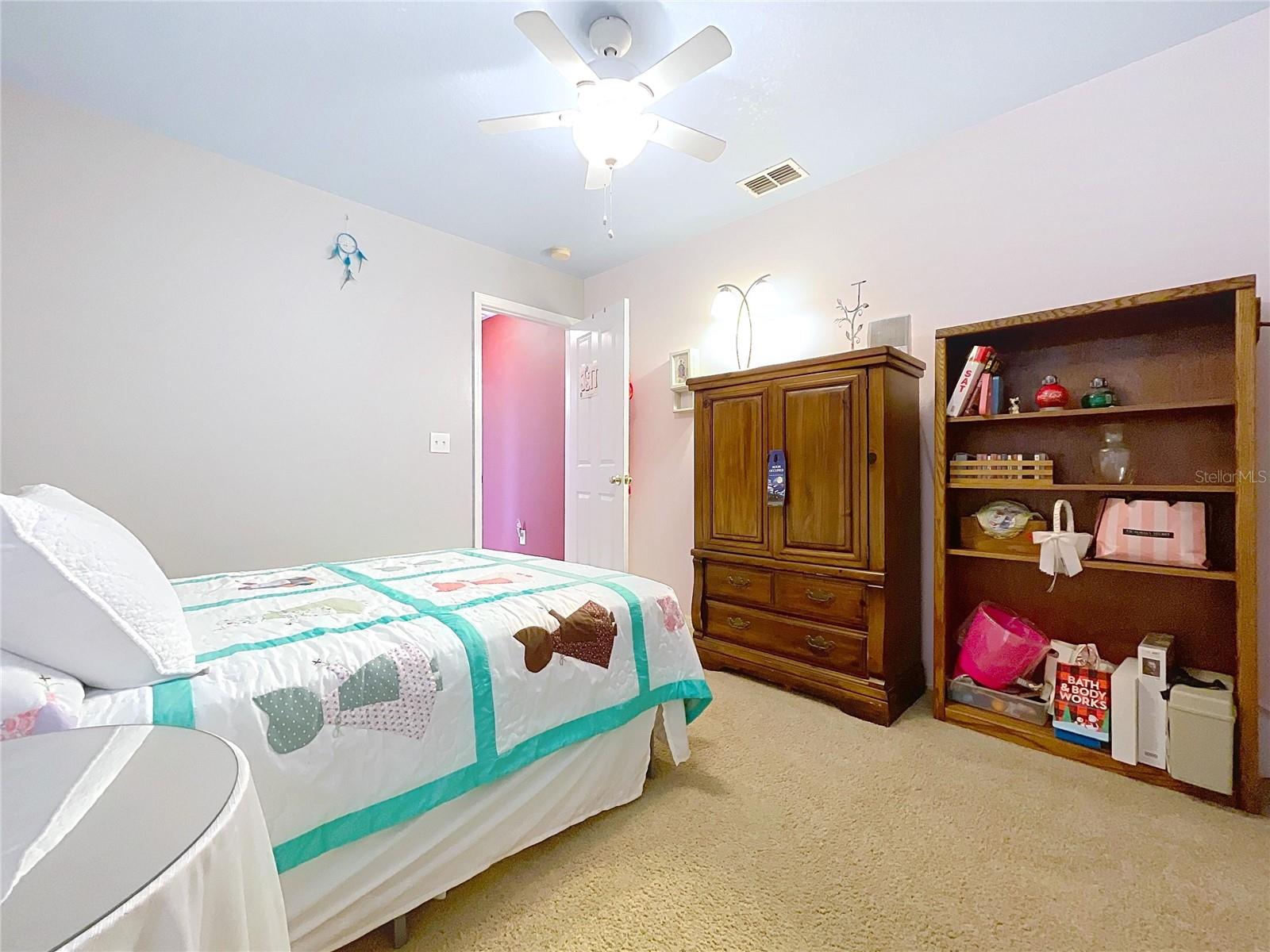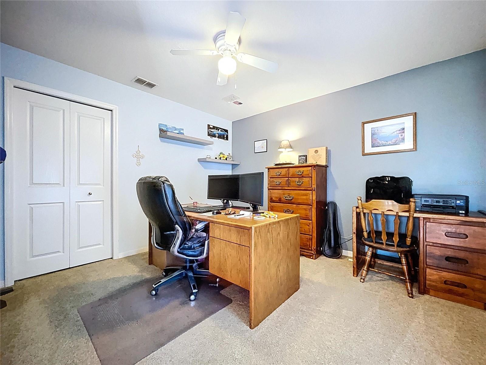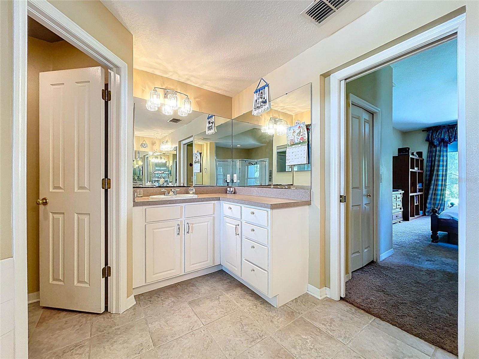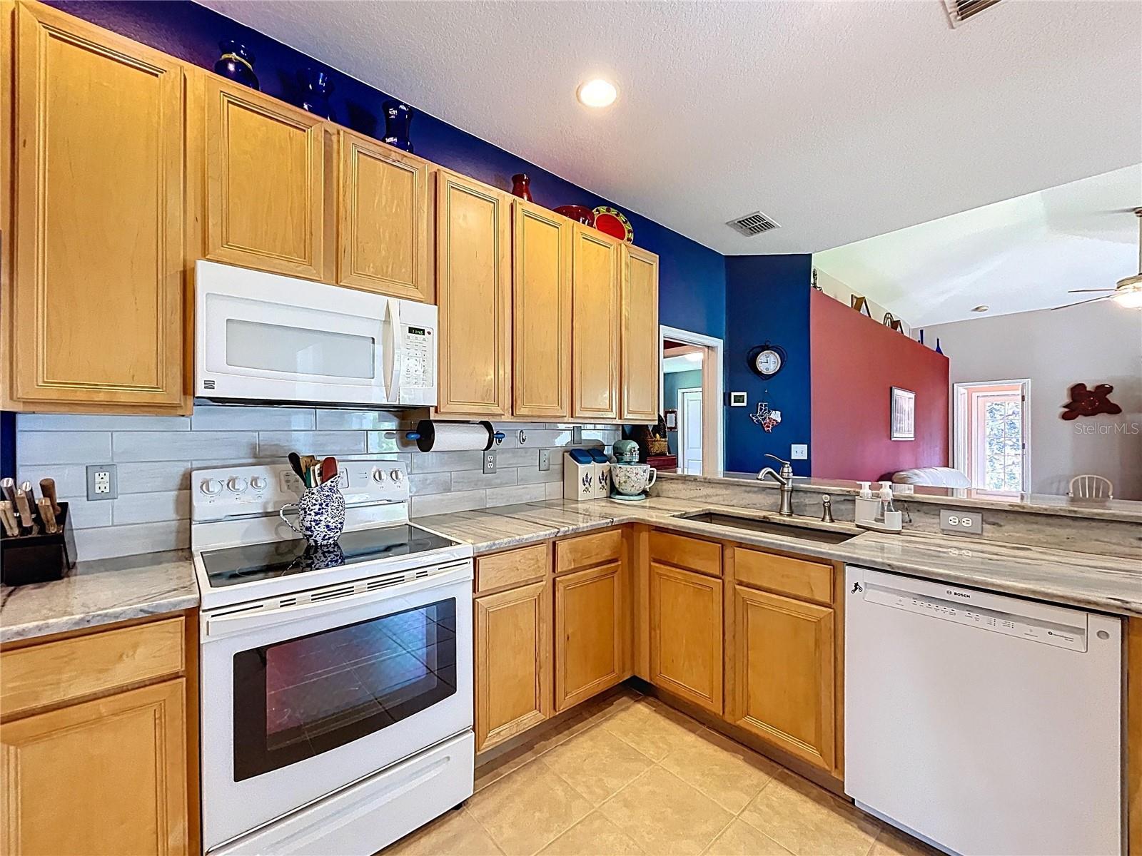 GREAT LOCATION! Price just reduced on this 2222 Square Foot, 4 Bedroom 3 Bath that offers a popular 3-Way Split Floor Plan with the 4th Bedroom & 3rd Bath located at the back of the home with a separate entry creating a great In-Law Quarters or Teen Retreat. High ceilings & arched windows greet you as you enter the front door. The Formal Living & Dining Rooms have gleaming Brazilian Cherry Wood Flooring and sliding glass doors. Spacious Family Room has decorative plant shelf and in combination with the kitchen create a wonderful gathering area. The Kitchen has Premium Ocean Blue Granite, Coordinating Tile Backsplash and 42 inch cabinetry, In addition there is a pantry & breakfast serving bar. The Dinette offers an additional eating area located between the kitchen & family rooms. The Primary Suite has 2 walk-in closets, an ensuite bath with 2 vanities, private commode, separate shower & relaxing garden soaking tub. The other secondary bedrooms share a hall bath. Convenient Interior Laundry Room. Garage is OVERSIZED with 2.5 Car Spaces. Covered Lanai is great for Barbeques and Plenty of Privacy as the back yard has a conservation view. Please note that stained glass light fixture and Drapes in the Primary Bedroom do not stay. Ice-maker as-is. Water softener is a monthly rental and can only convey with a new buyer contract with company.
